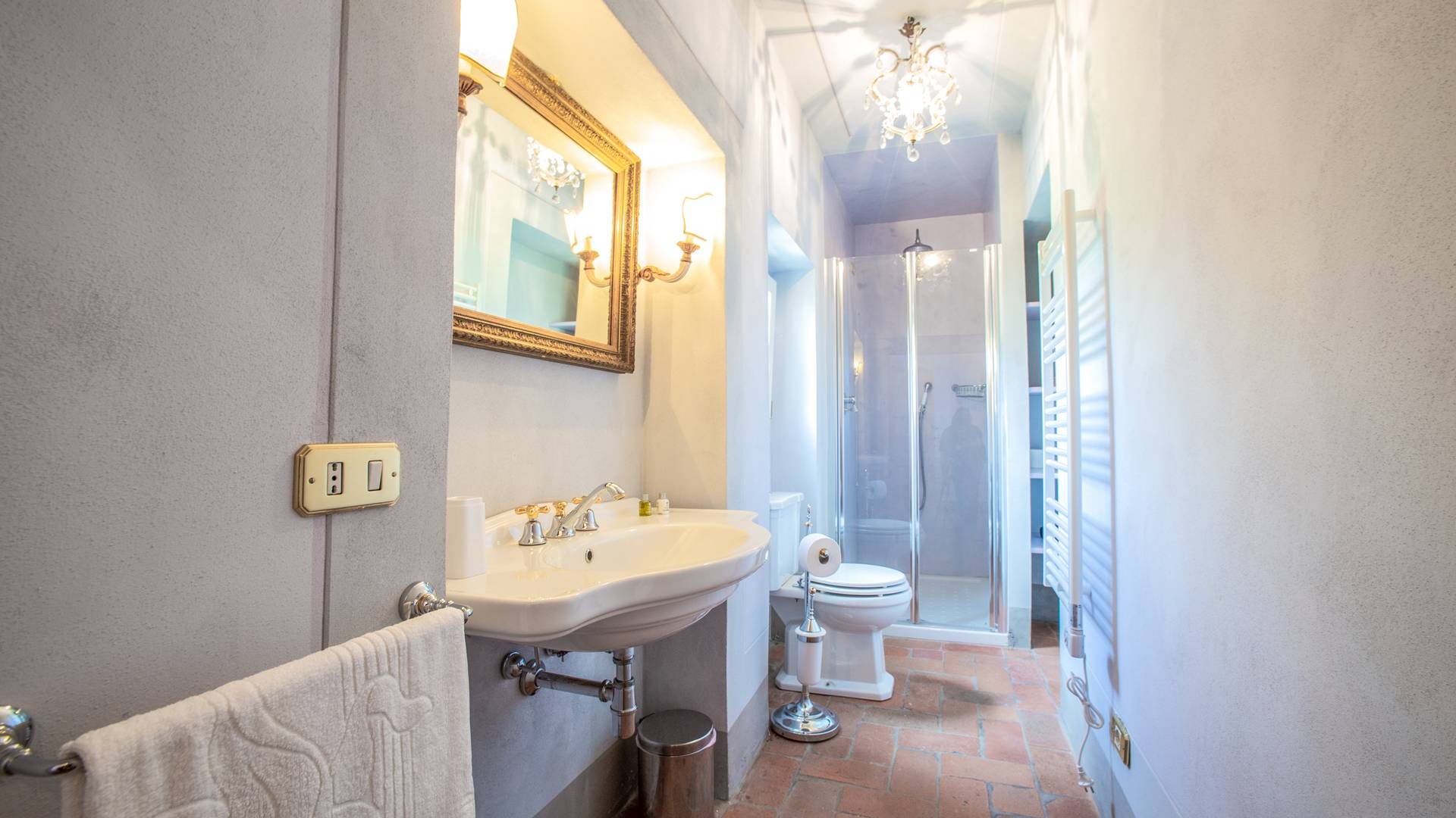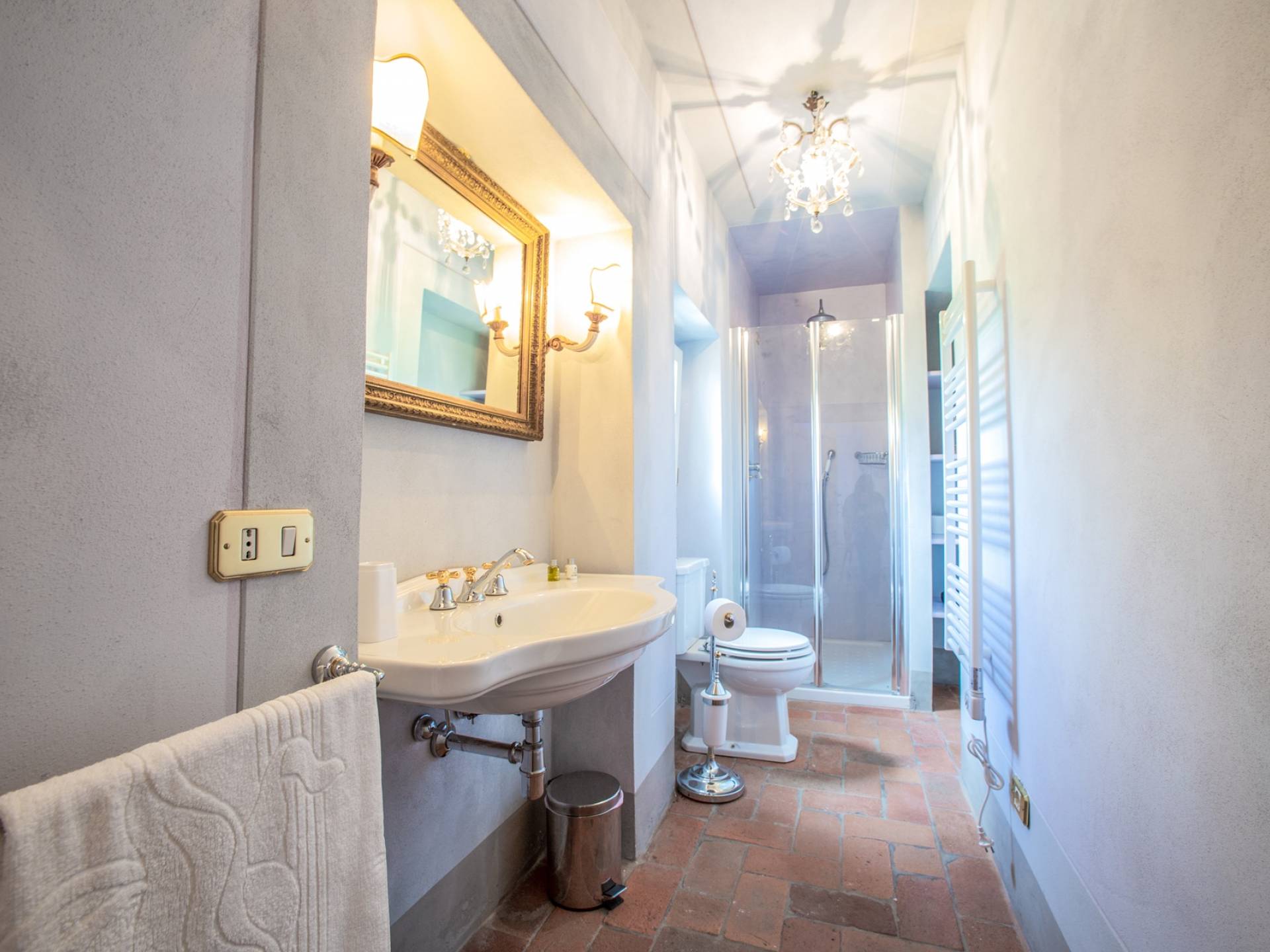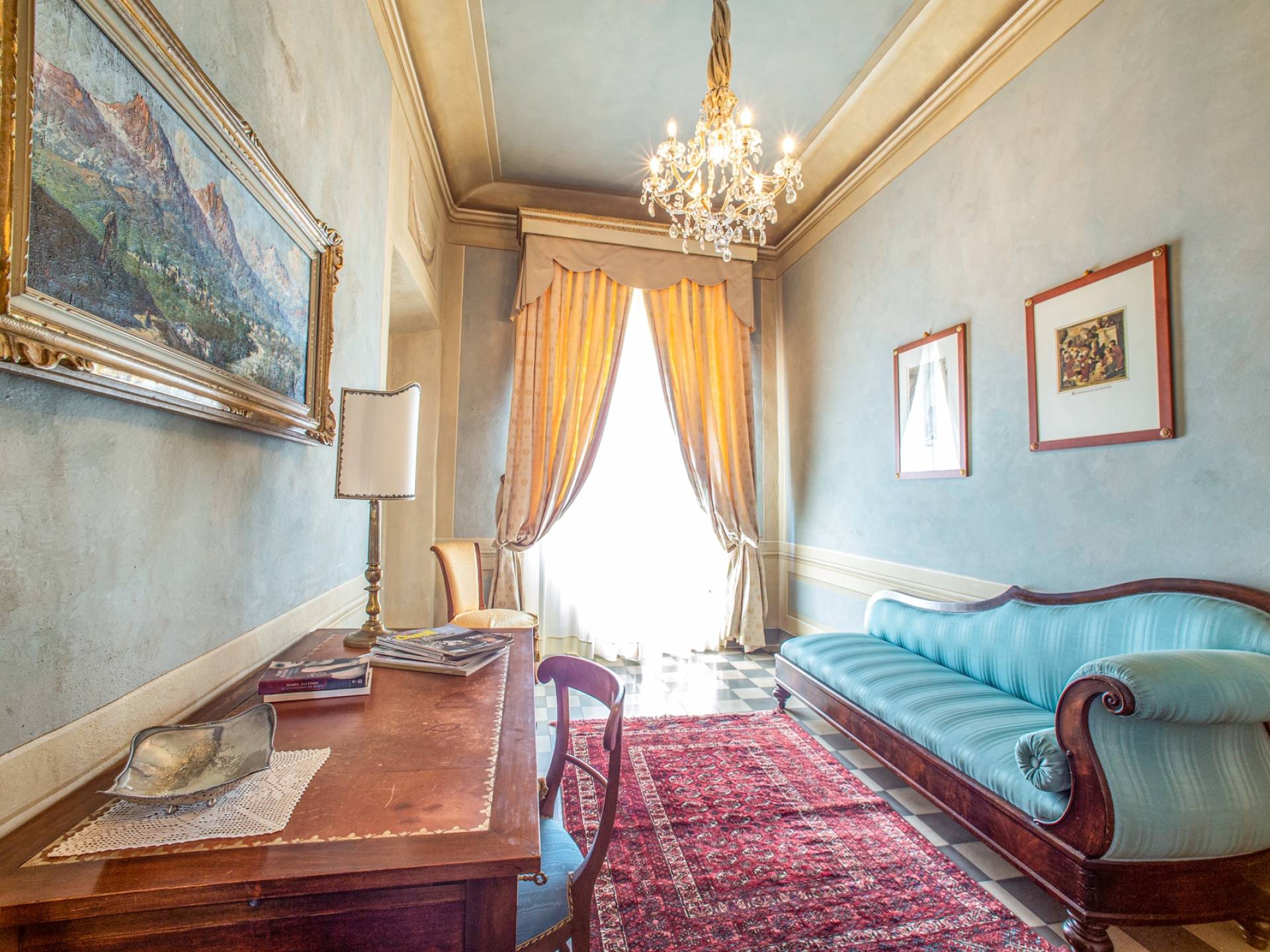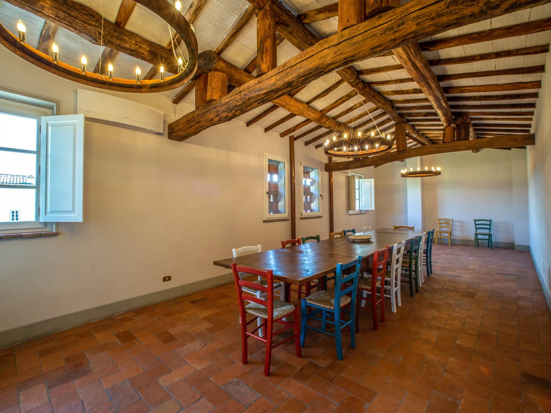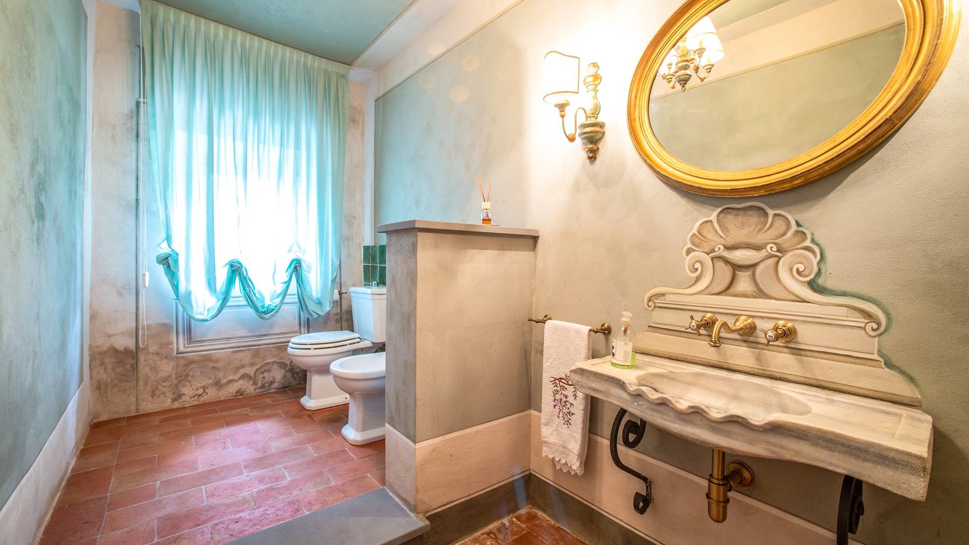 El interior de la villa está decorado con frescos de 1600/1700, restaurados a su esplendor original en 2018. Todos los elementos que decoran esta espectacular propiedad son del más alto valor histórico debido a su autenticidad. Desde los originales pavimentos de terracota hasta los techos con vigas de madera, las encantadoras chimeneas, las columnas de mármol, los preciosos frescos y las decoraciones. Los muebles elegantes y sofisticados con materiales preciosos y dorados elegantes otorgan un gran encanto y emociones únicas a este edificio antiguo. La villa, de aproximadamente 1.000 m2, tiene tres plantas y tiene capacidad para 20 invitados.