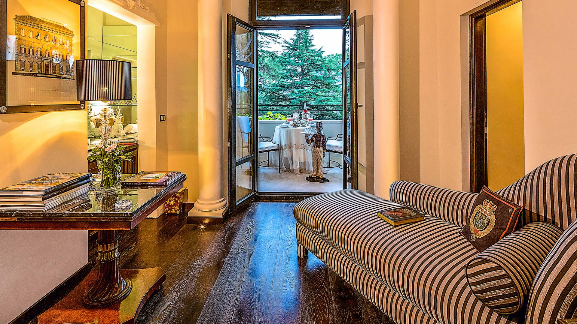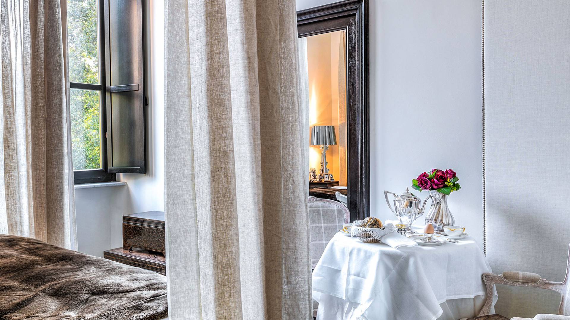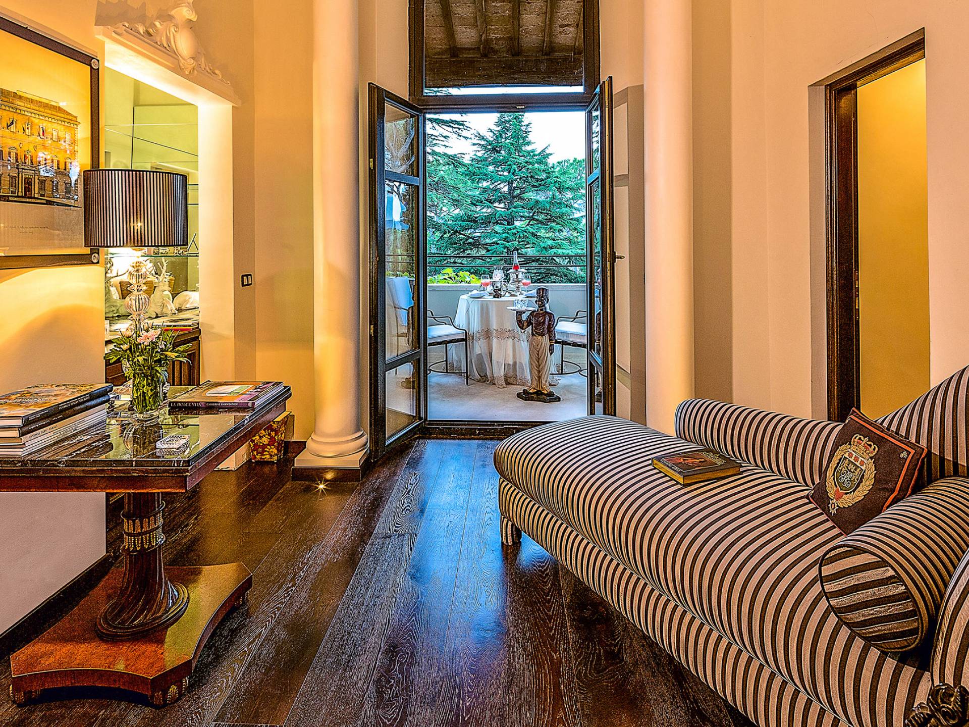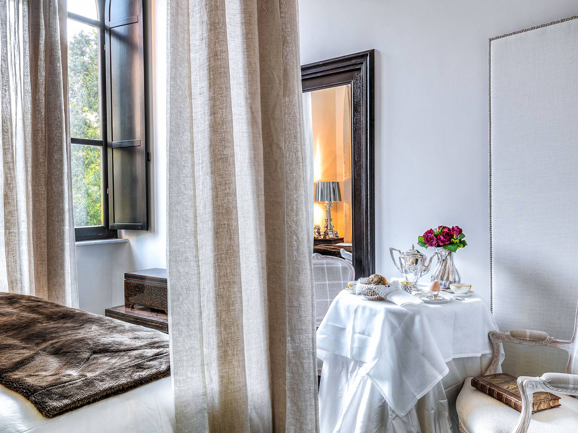 Un gran ojo para los detalles y un estilo inimitable de diseño de interiores se siente en toda la propiedad: este es un lugar de autenticidad con un alma verdaderamente poética. Otros proyectos de diseño completados por el propietario incluyen la remodelación del Hotel Hassler, Roma, y la 'Academia Internacional del Vino de Roma', también conocida como 'Il Palazzetto' en la parte superior de la Plaza de España.