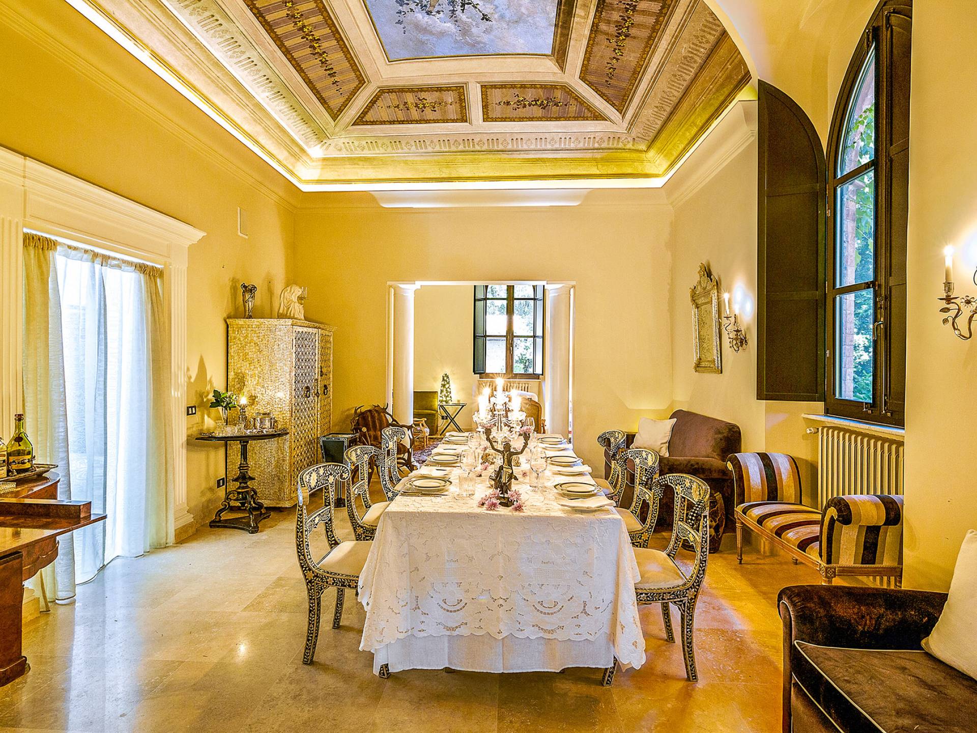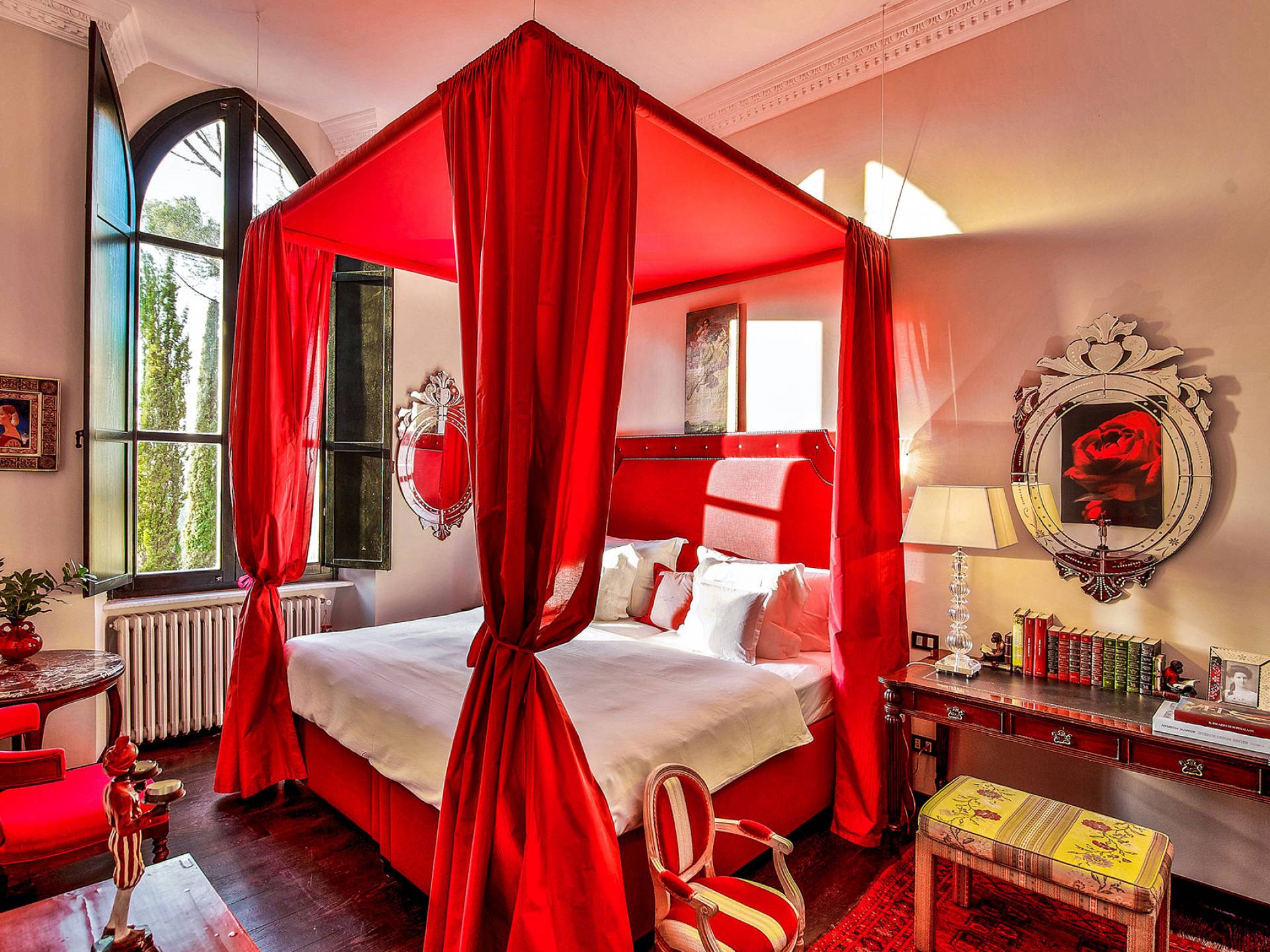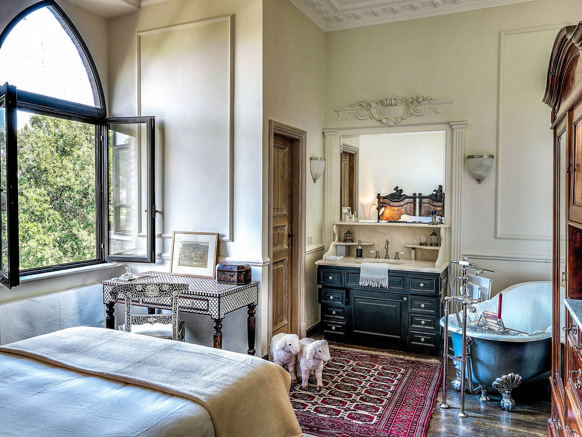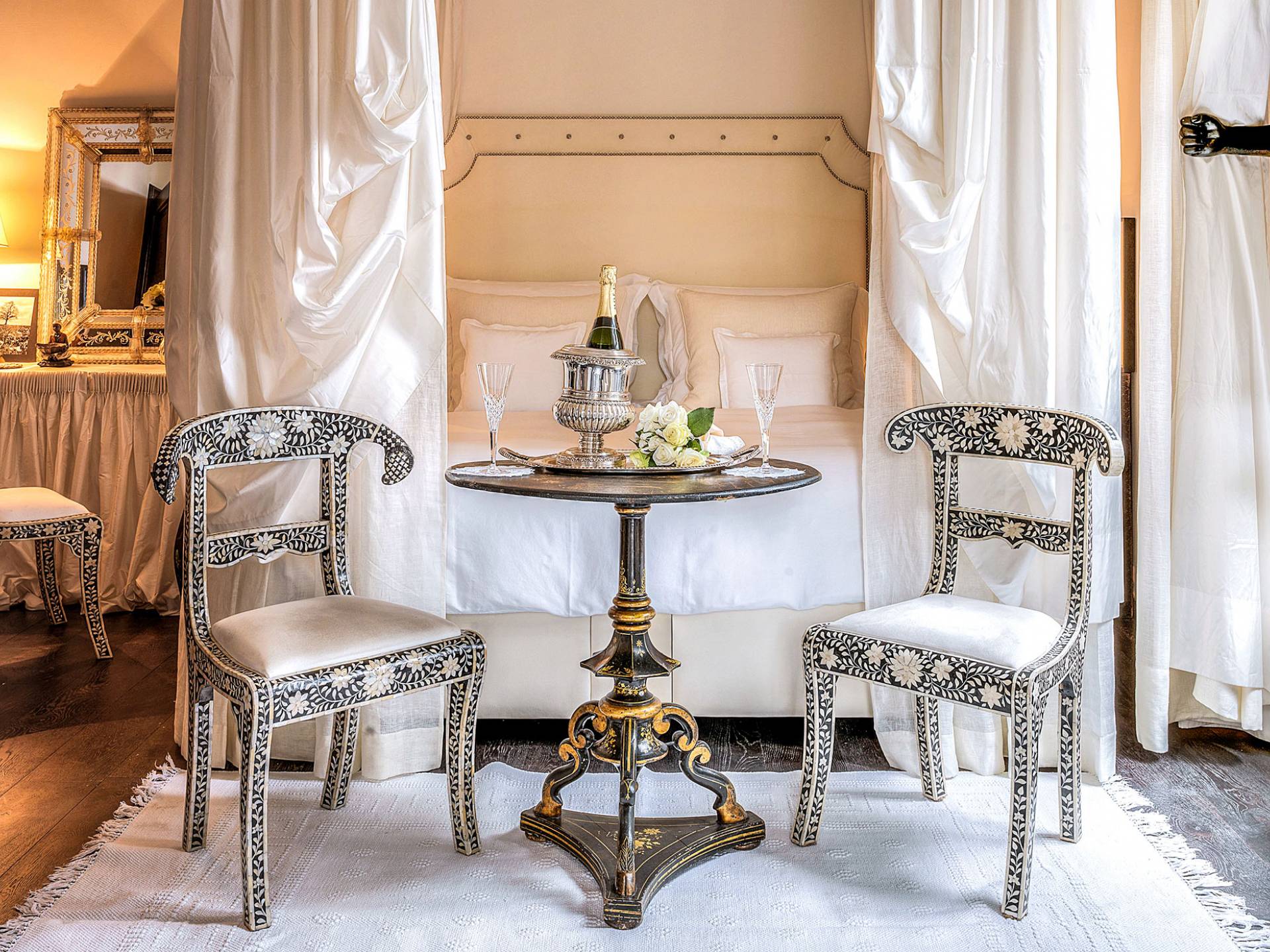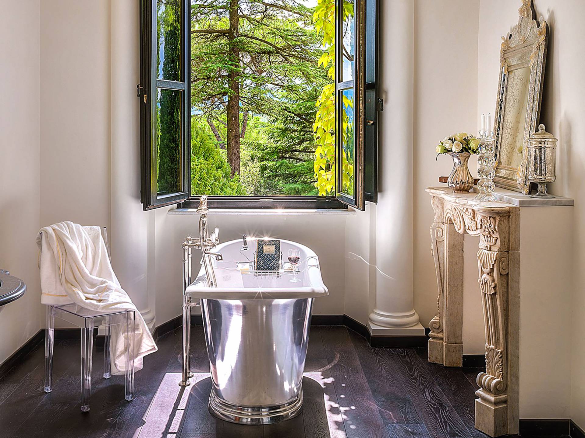 Un gran ojo para los detalles y un estilo inimitable de diseño de interiores se siente en toda la propiedad: este es un lugar de autenticidad con un alma verdaderamente poética. Otros proyectos de diseño completados por el propietario incluyen la remodelación del Hotel Hassler, Roma, y la 'Academia Internacional del Vino de Roma', también conocida como 'Il Palazzetto' en la parte superior de la Plaza de España.