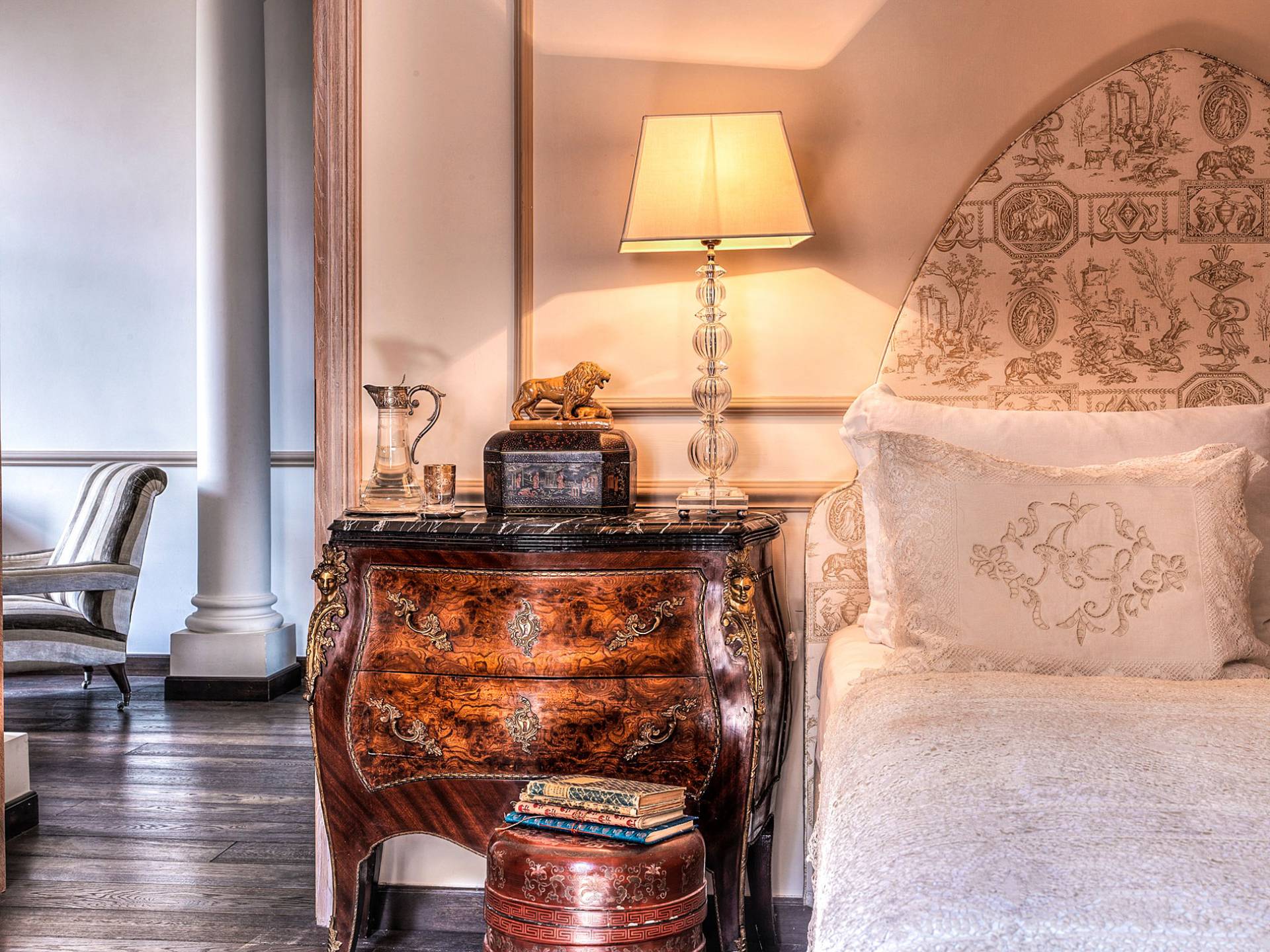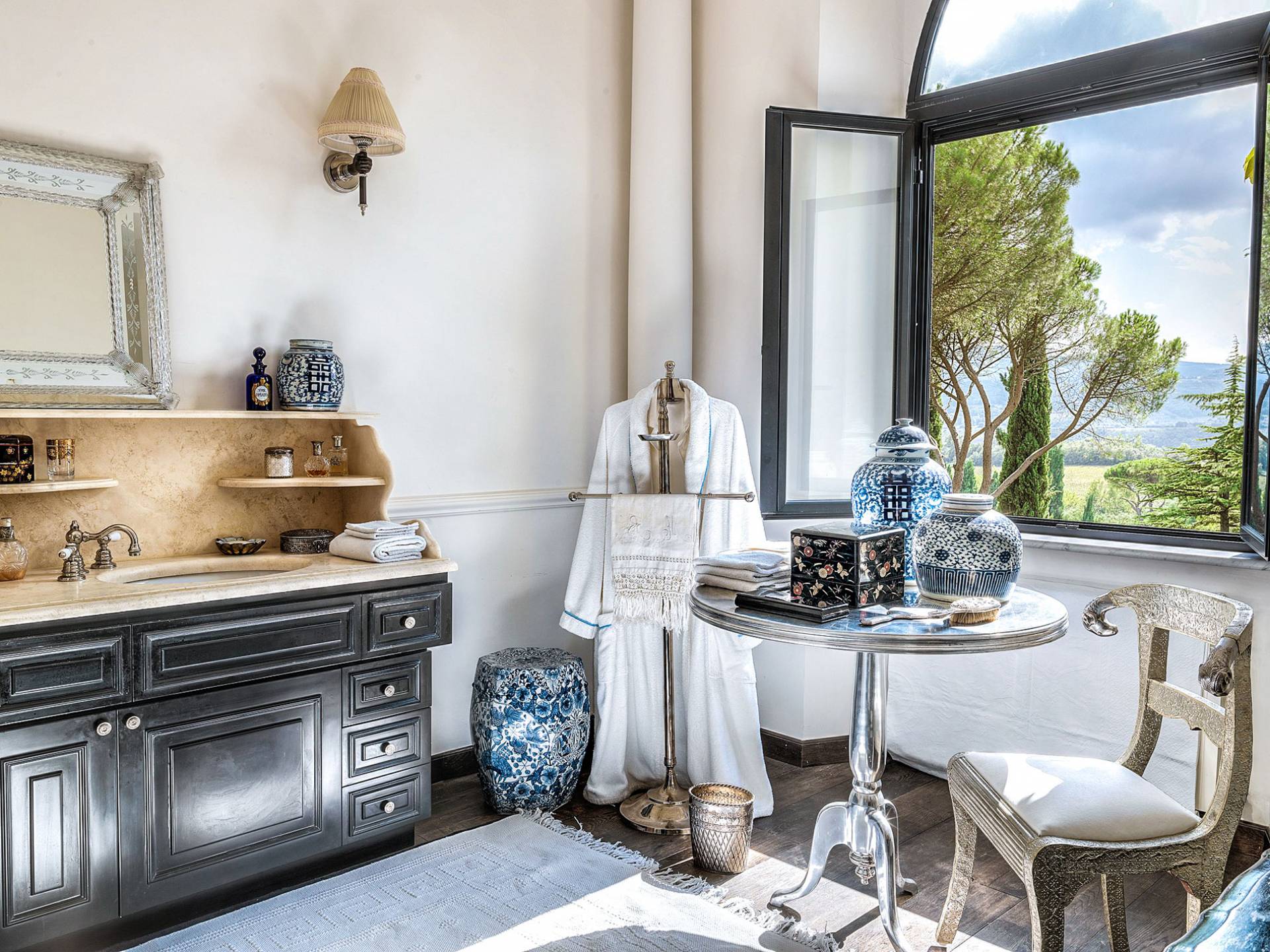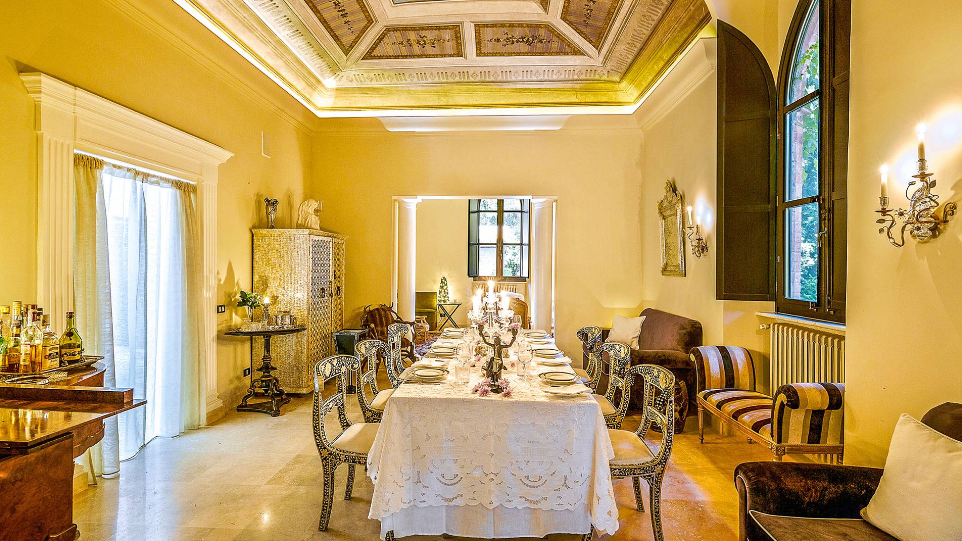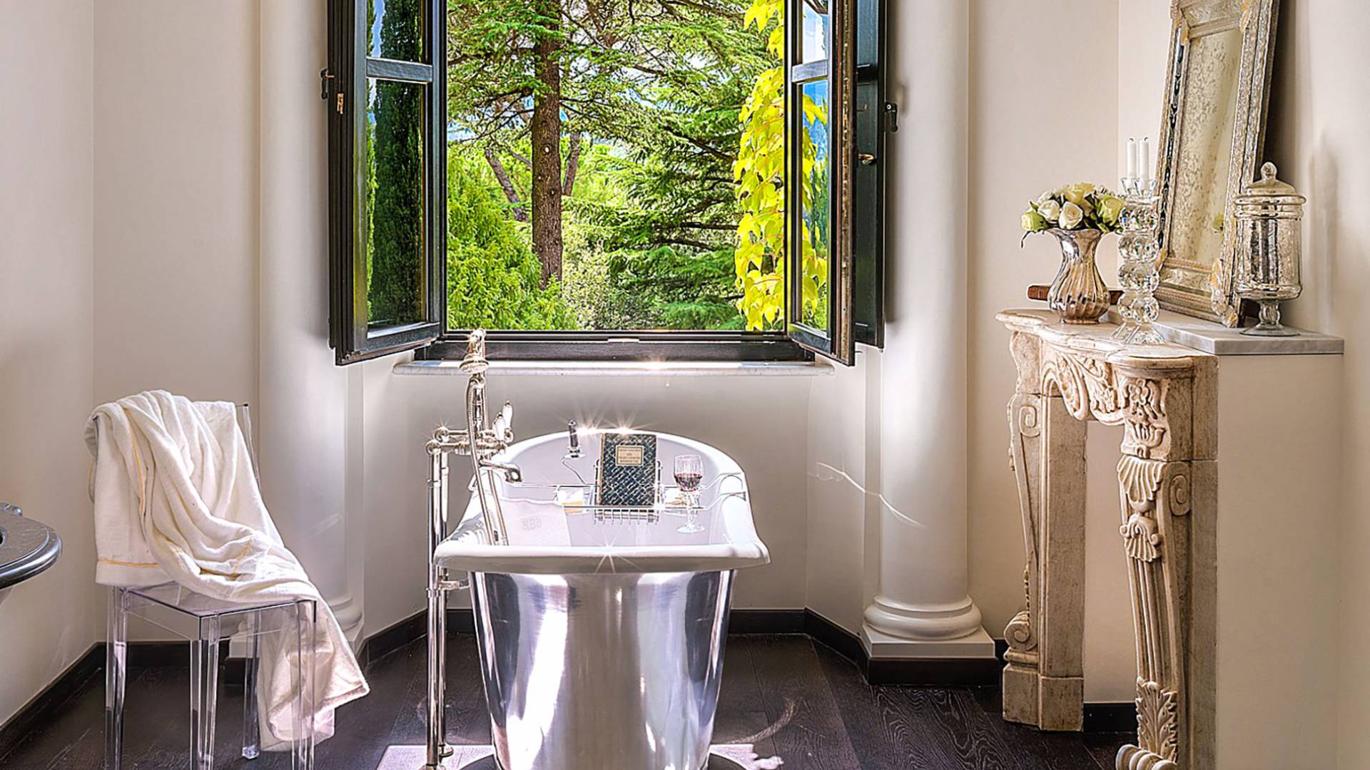 Un gran ojo para los detalles y un estilo inimitable de diseño de interiores se siente en toda la propiedad: este es un lugar de autenticidad con un alma verdaderamente poética. Otros proyectos de diseño completados por el propietario incluyen la remodelación del Hotel Hassler, Roma, y la 'Academia Internacional del Vino de Roma', también conocida como 'Il Palazzetto' en la parte superior de la Plaza de España.