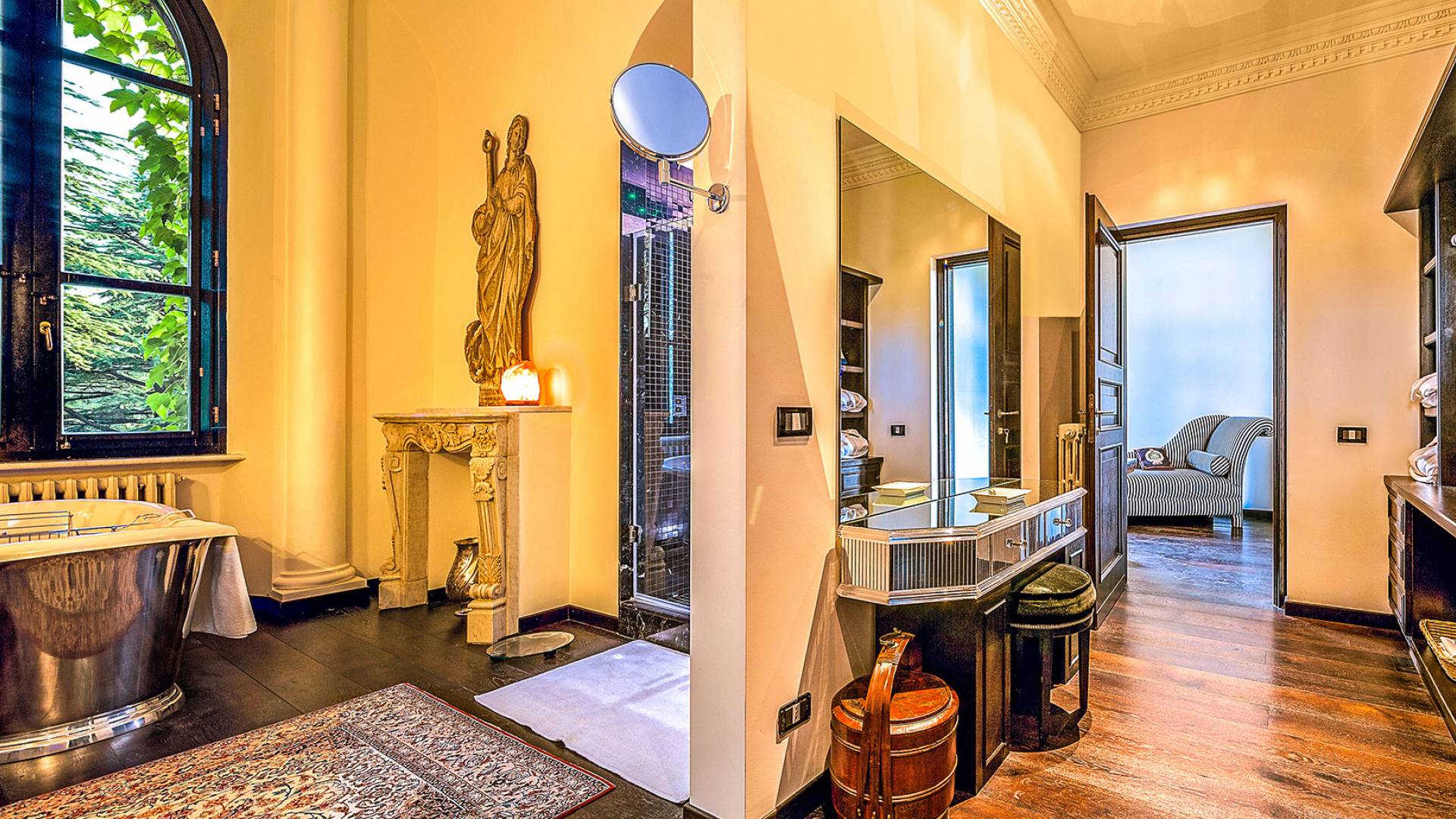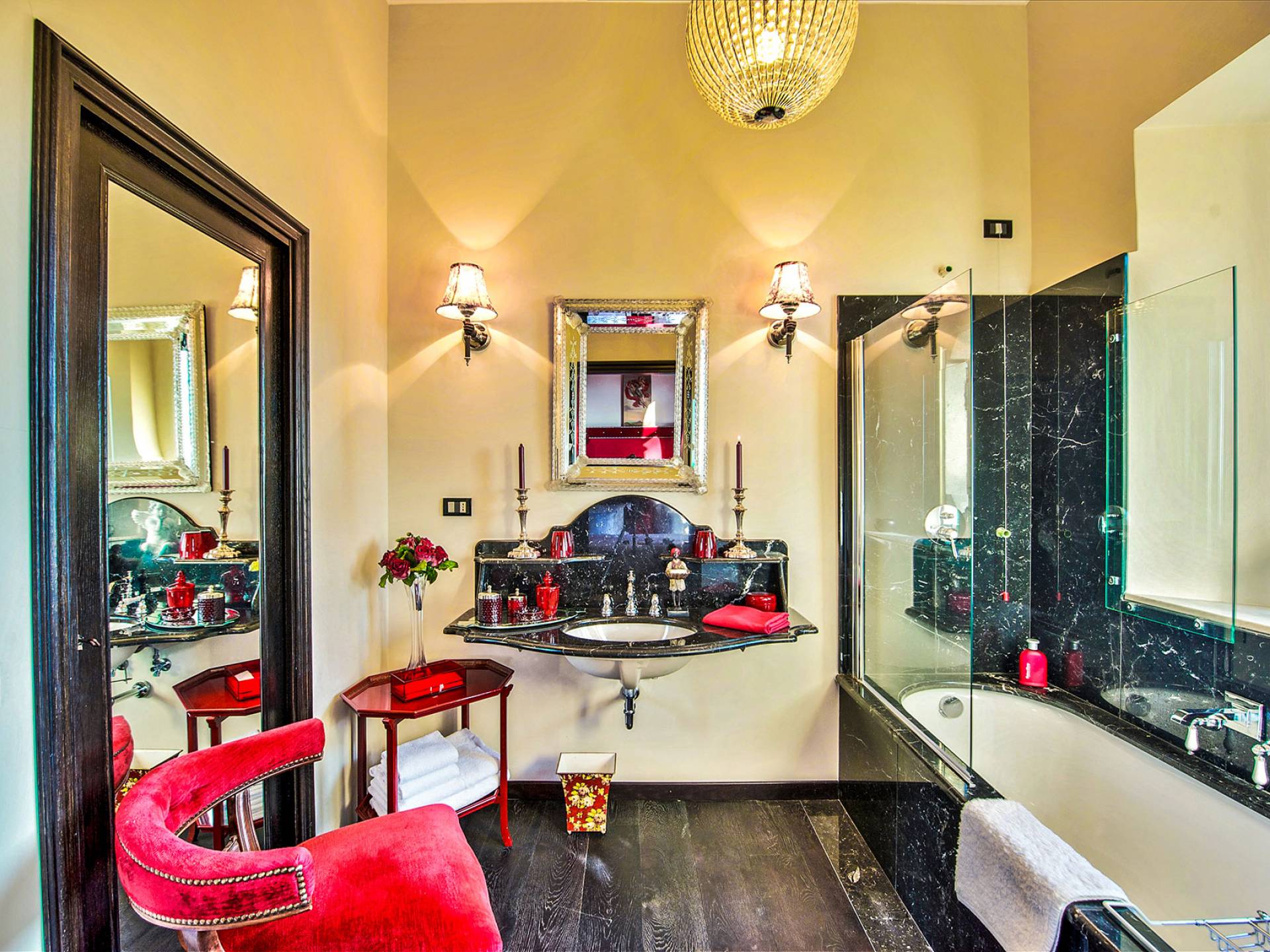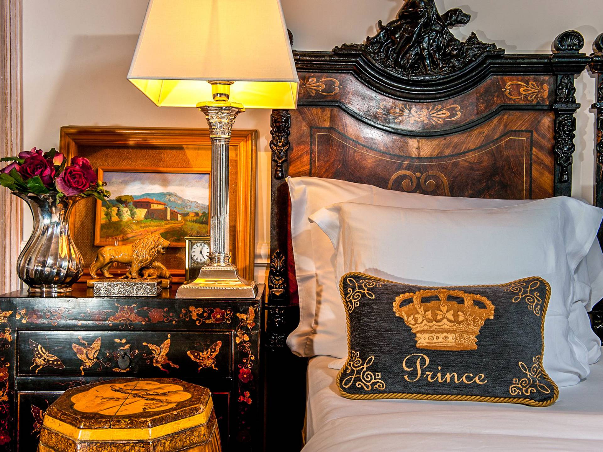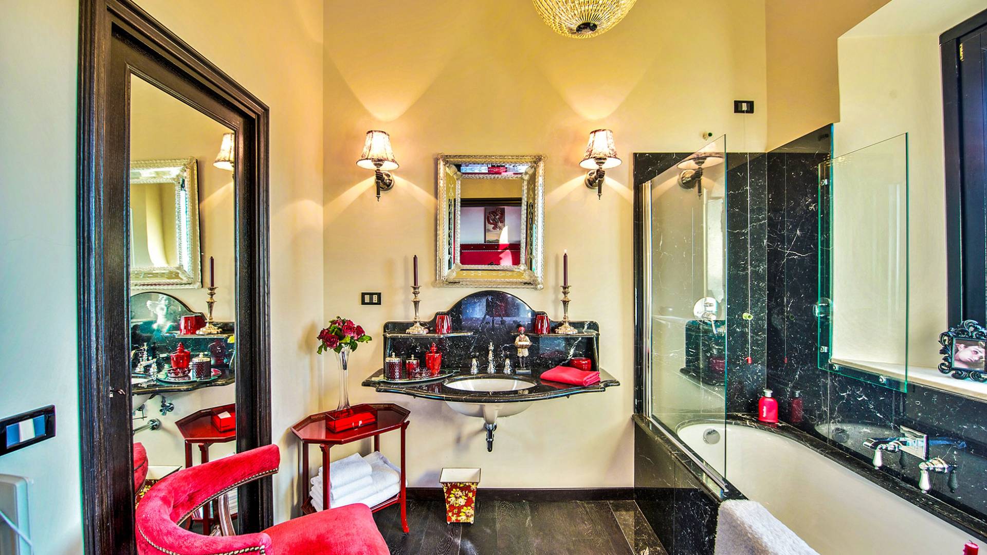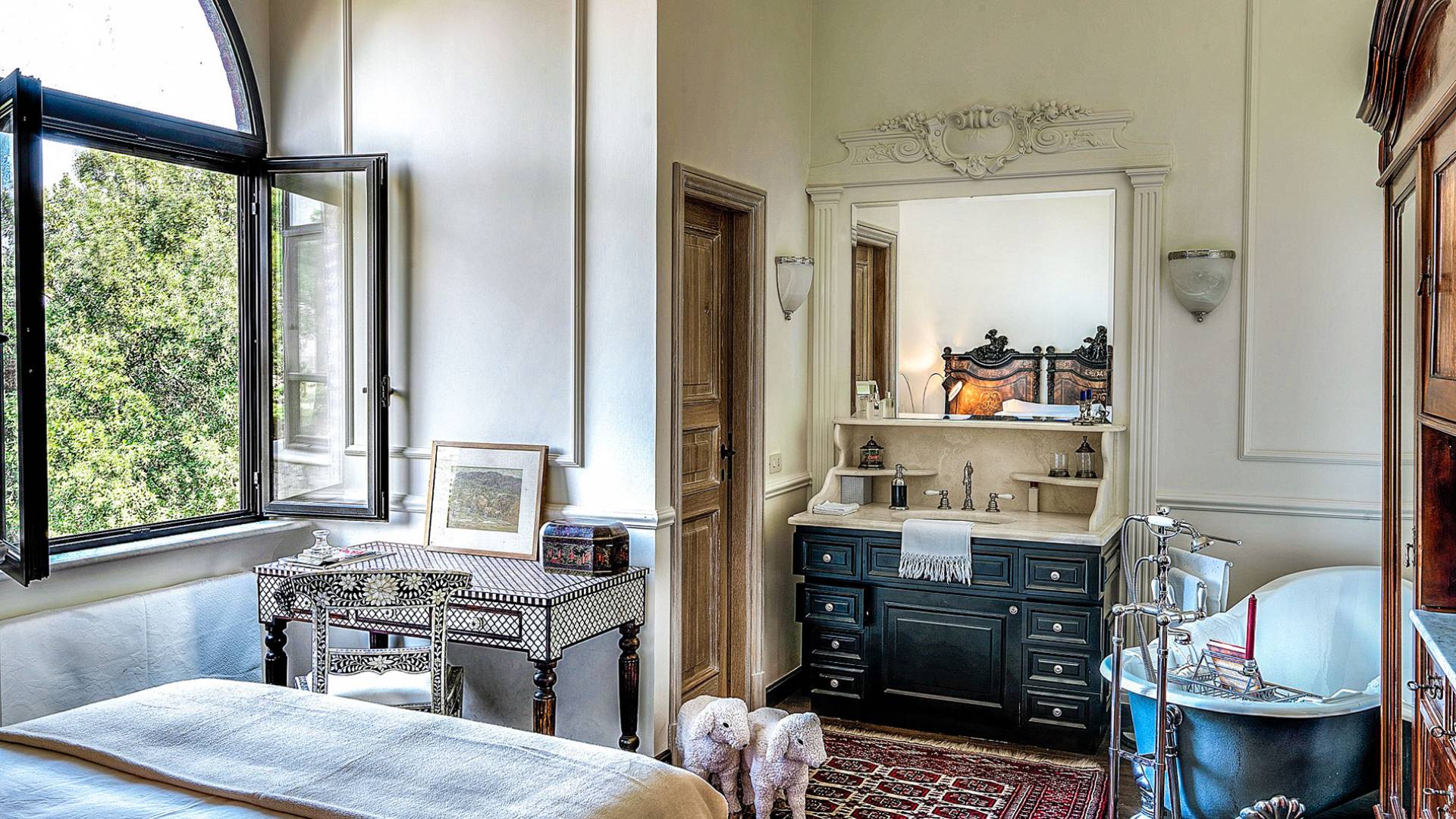 Un gran ojo para los detalles y un estilo inimitable de diseño de interiores se siente en toda la propiedad: este es un lugar de autenticidad con un alma verdaderamente poética. Otros proyectos de diseño completados por el propietario incluyen la remodelación del Hotel Hassler, Roma, y la 'Academia Internacional del Vino de Roma', también conocida como 'Il Palazzetto' en la parte superior de la Plaza de España.