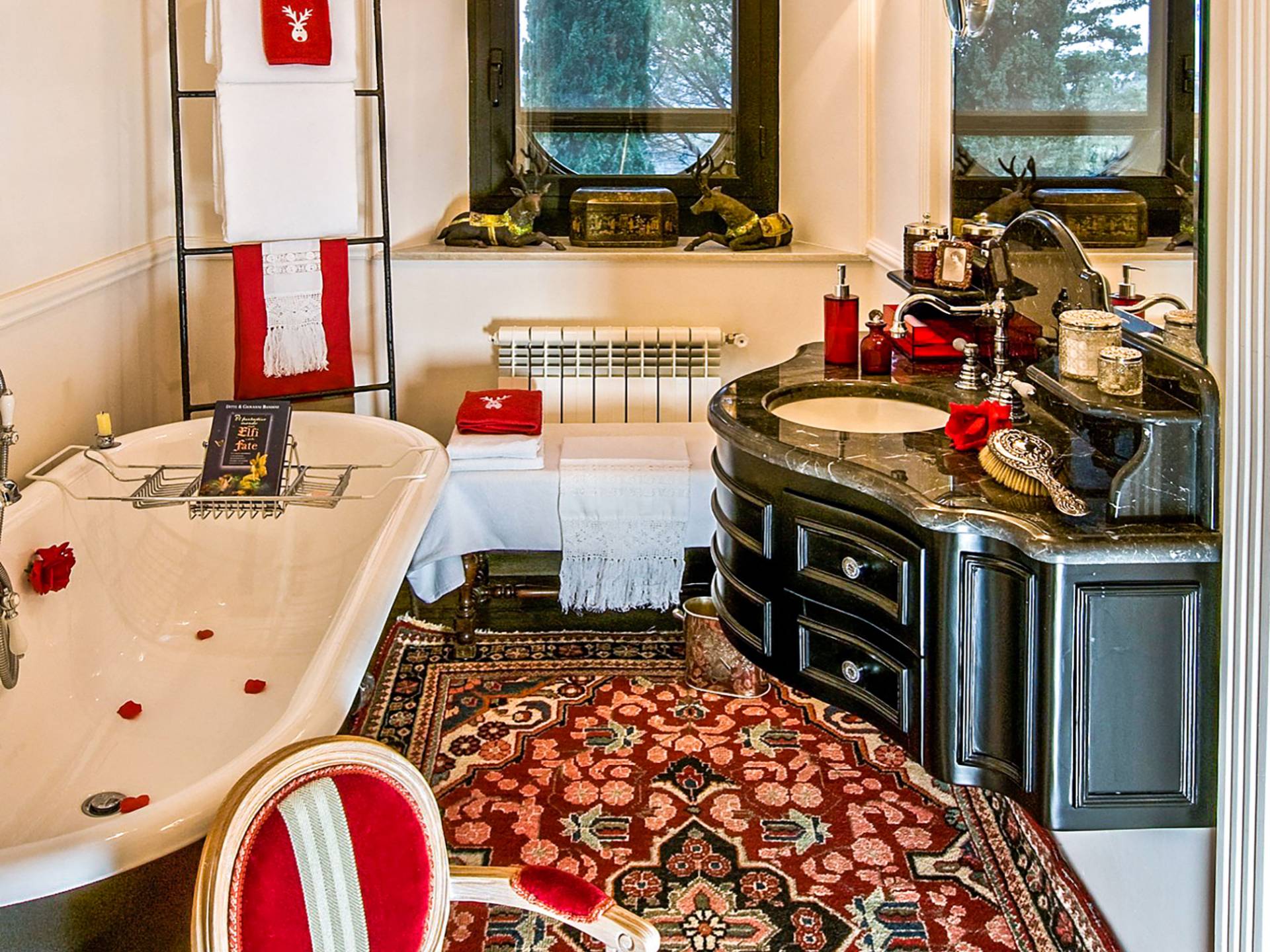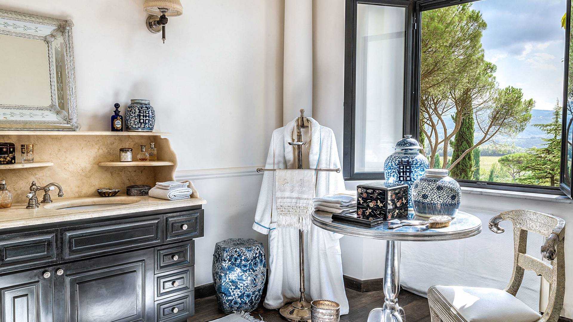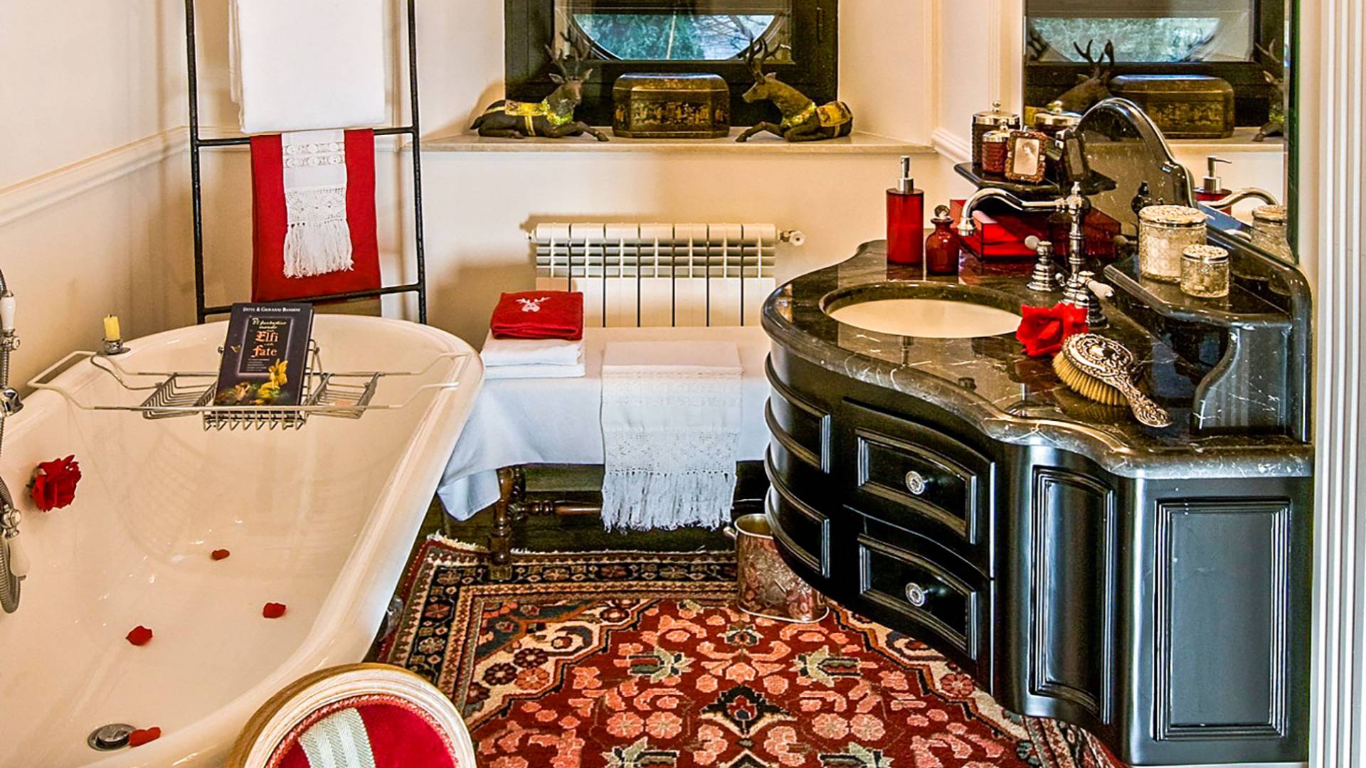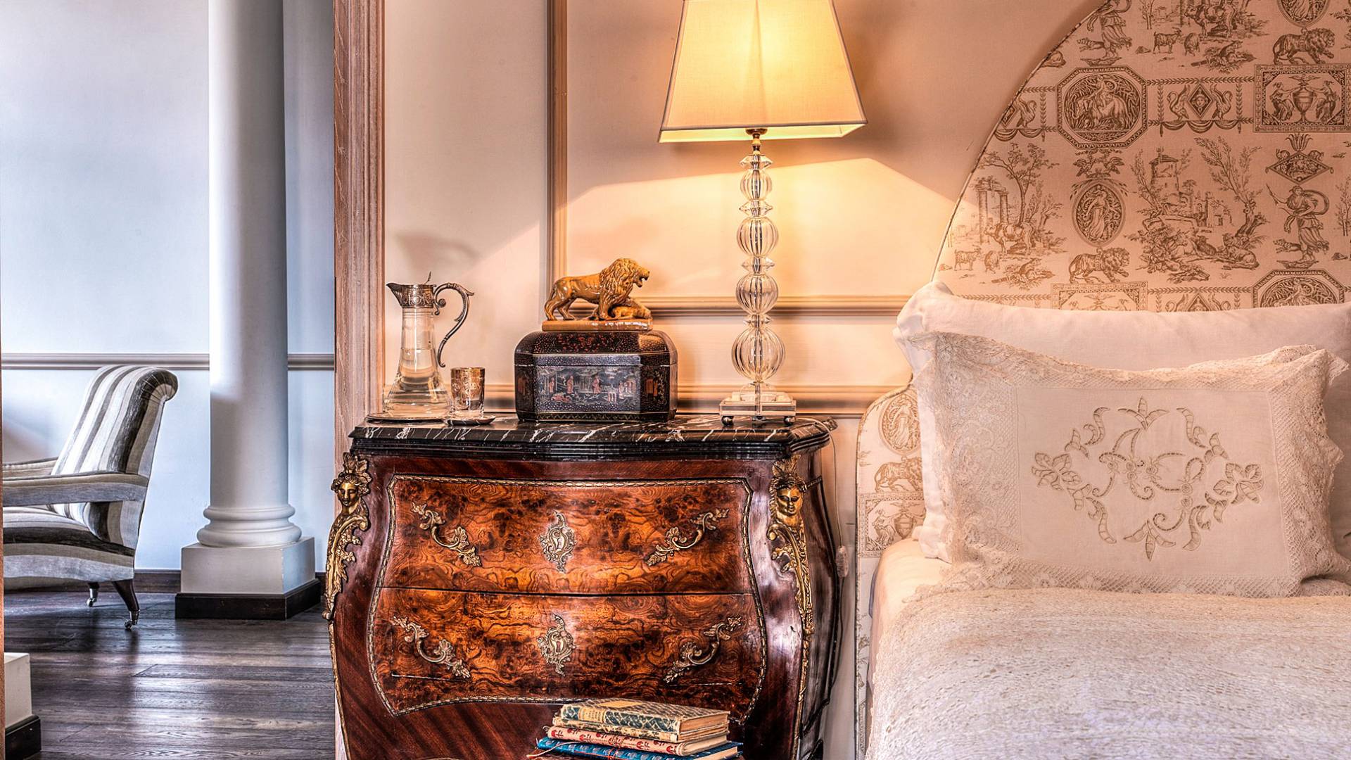 Un gran ojo para los detalles y un estilo inimitable de diseño de interiores se siente en toda la propiedad: este es un lugar de autenticidad con un alma verdaderamente poética. Otros proyectos de diseño completados por el propietario incluyen la remodelación del Hotel Hassler, Roma, y la 'Academia Internacional del Vino de Roma', también conocida como 'Il Palazzetto' en la parte superior de la Plaza de España.