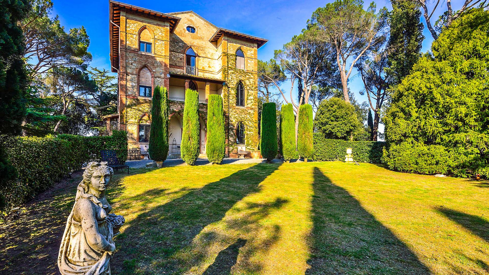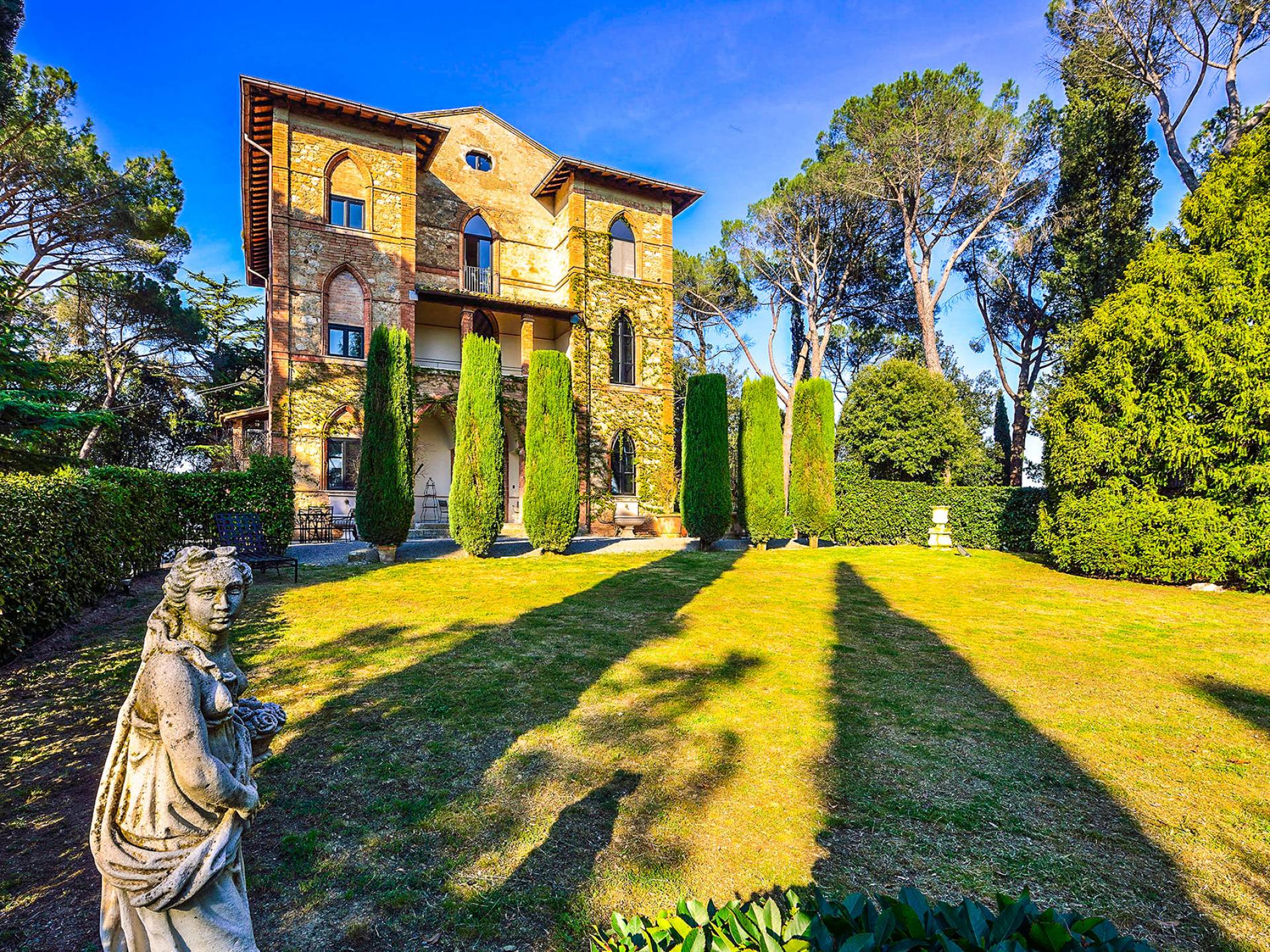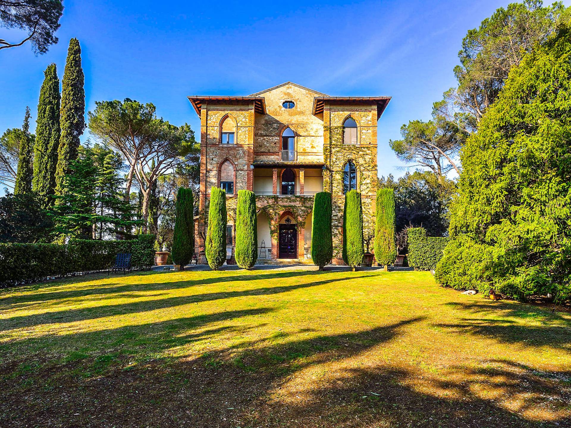 La característica principal de esta villa es la ecléctica mezcla de lo clásico y lo contemporáneo, todo refinado por un gusto impecable y con una interesante elección de materiales de primera calidad. La villa ofrece una gran cantidad de espacio y es una propiedad perfecta para todas las estaciones. La villa, fundada en 2001, es un edificio neogótico estructurado en tres niveles, que ha sido completamente restaurado.
