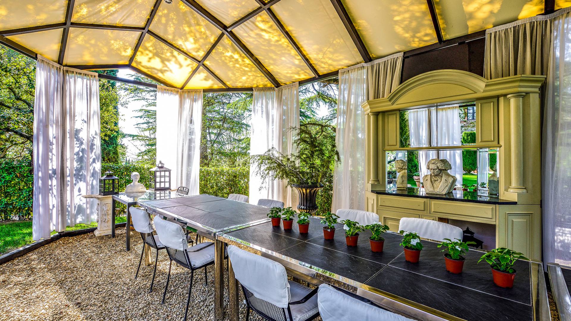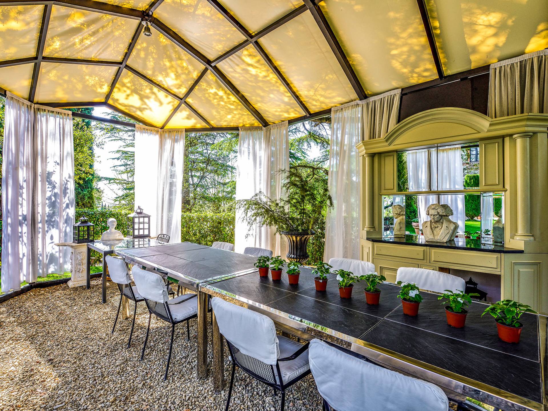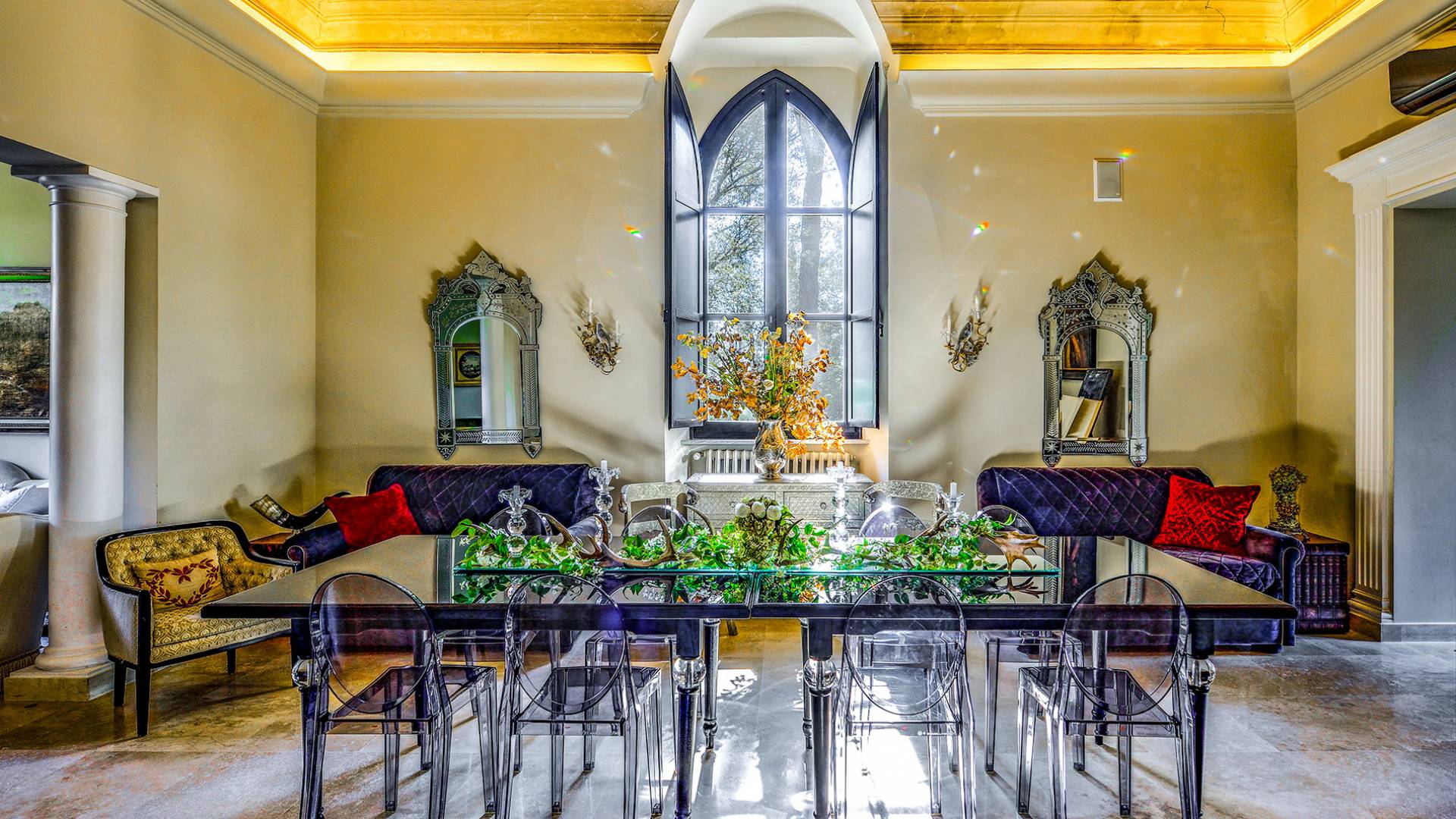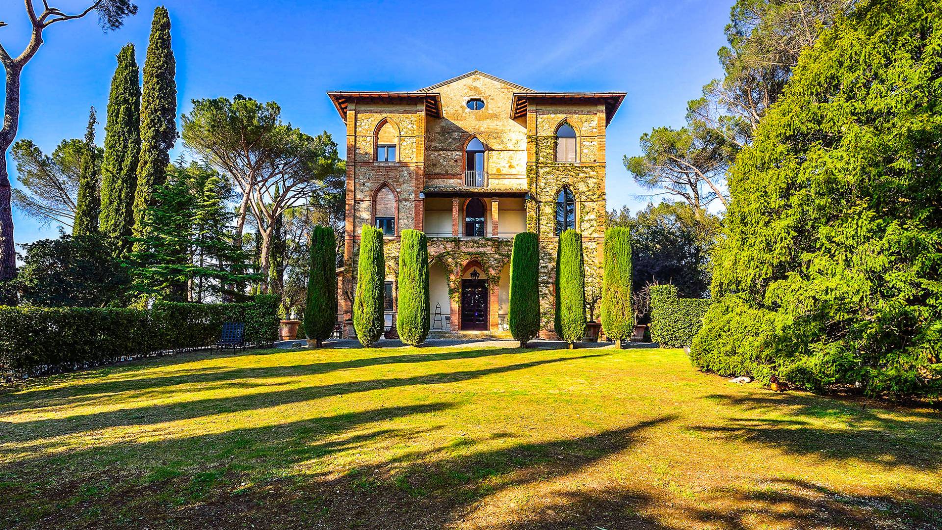 La característica principal de esta villa es la ecléctica mezcla de lo clásico y lo contemporáneo, todo refinado por un gusto impecable y con una interesante elección de materiales de primera calidad. La villa ofrece una gran cantidad de espacio y es una propiedad perfecta para todas las estaciones. La villa, fundada en 2001, es un edificio neogótico estructurado en tres niveles, que ha sido completamente restaurado.