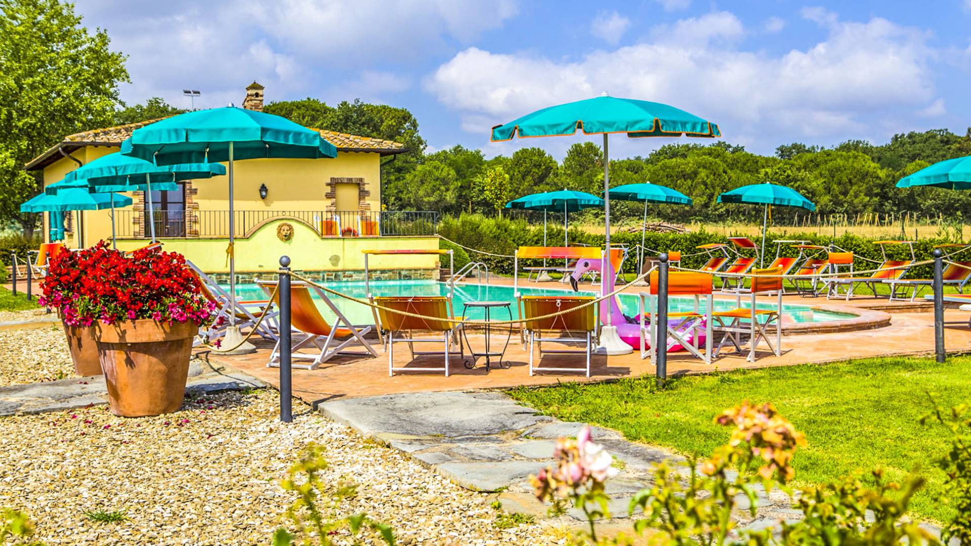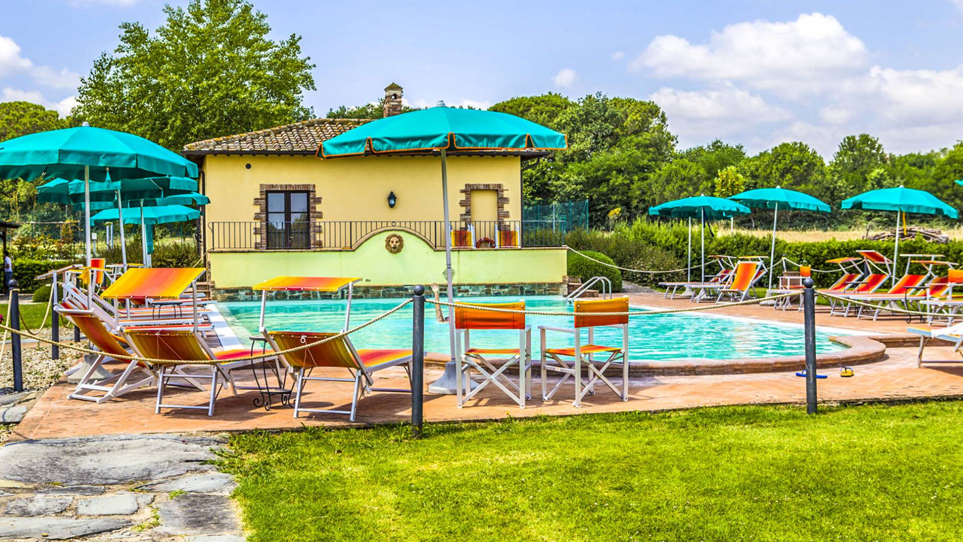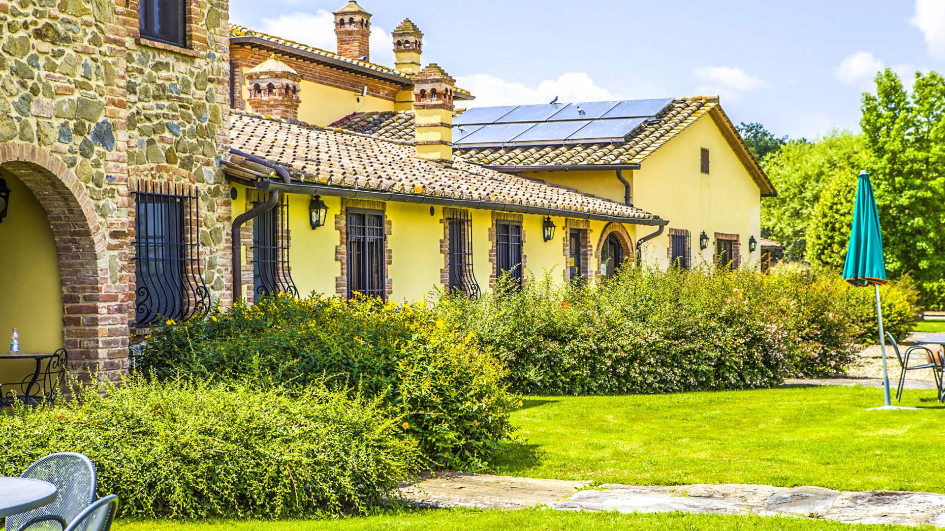 Villa del Lago Umbria es una villa de lujo en alquiler con 19 habitaciones y piscina privada. Villa del Lago es un hogar lejos del hogar. Fue concebido por los propietarios así: como un lugar de vacaciones capaz de hacer que los huéspedes se sientan mimados como si estuvieran en su propia casa. El proyecto partió de la idea de la Sra. Manuela para reformar una antigua masía que perteneció a su padre Arturo, donde vivían los campesinos que trabajaban las tierras aledañas.