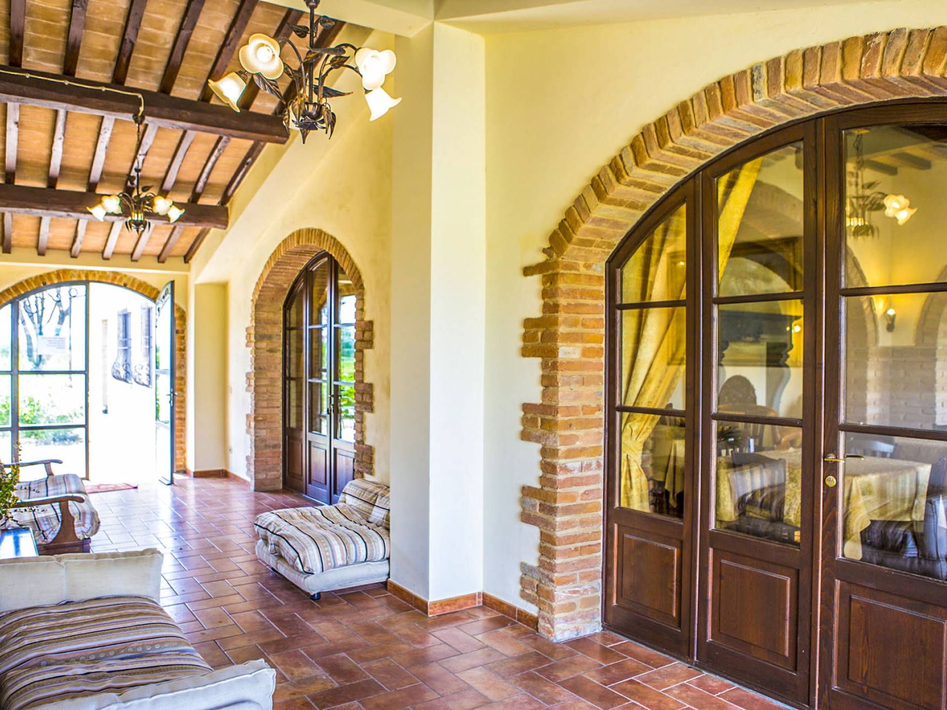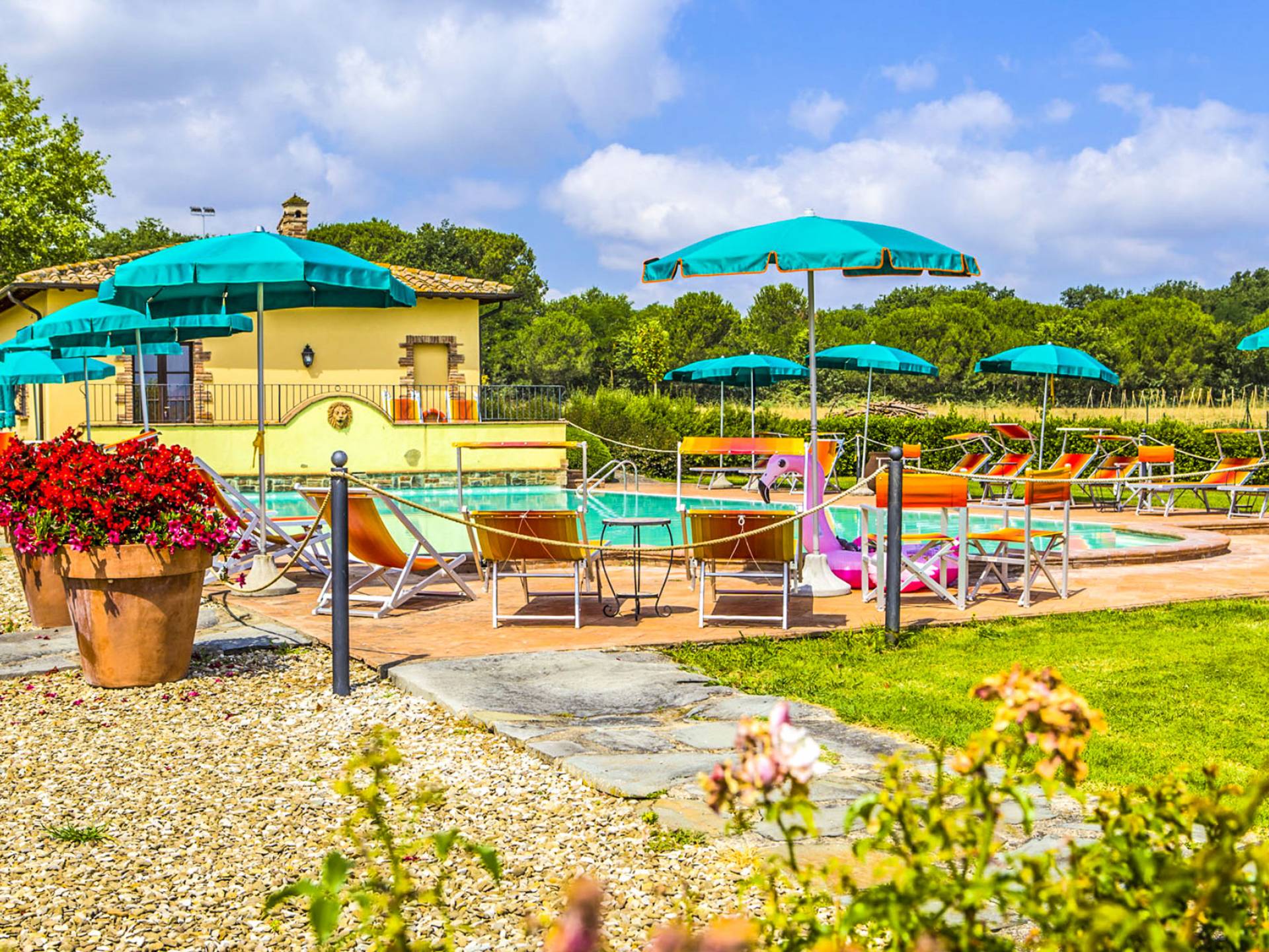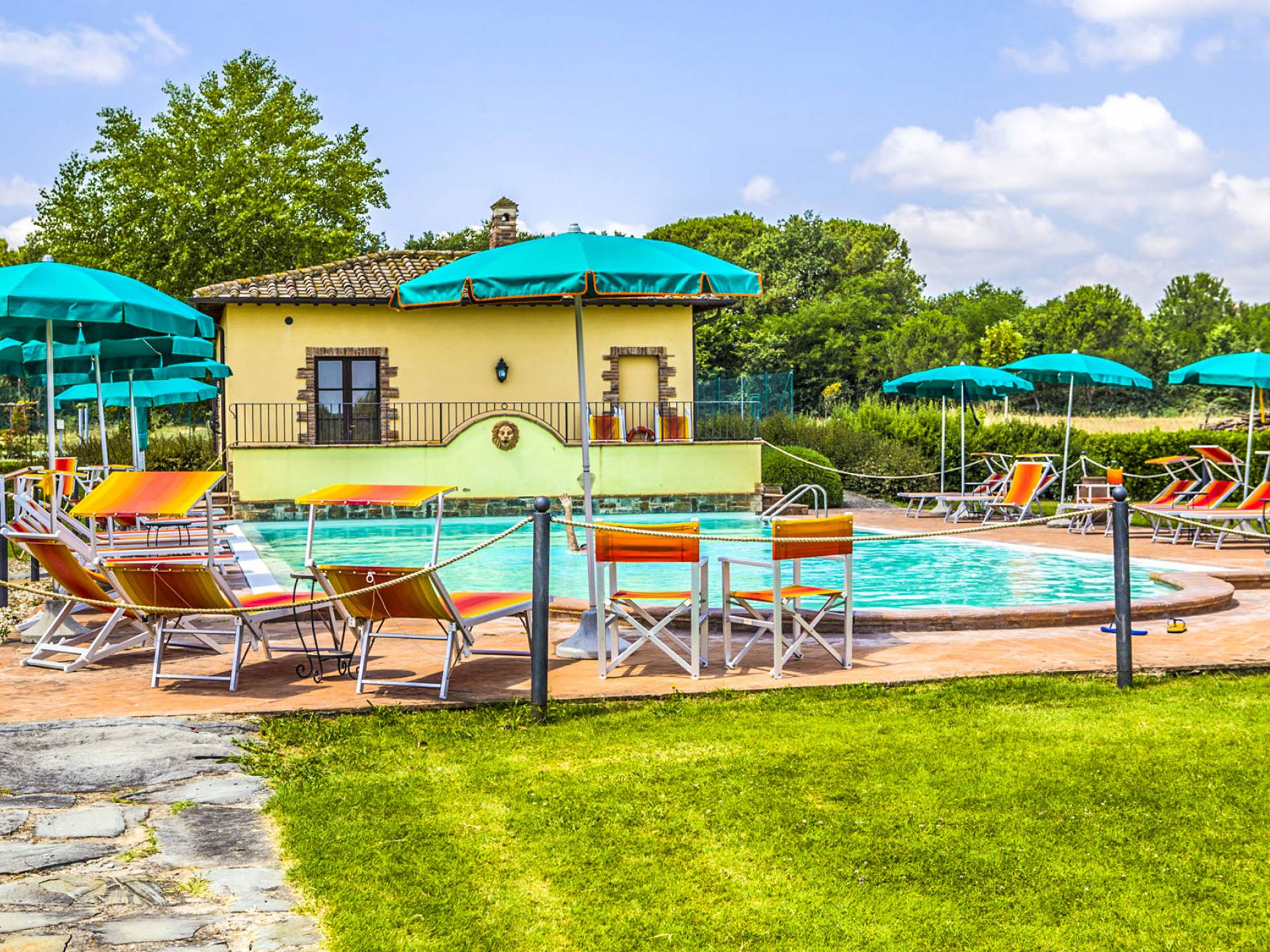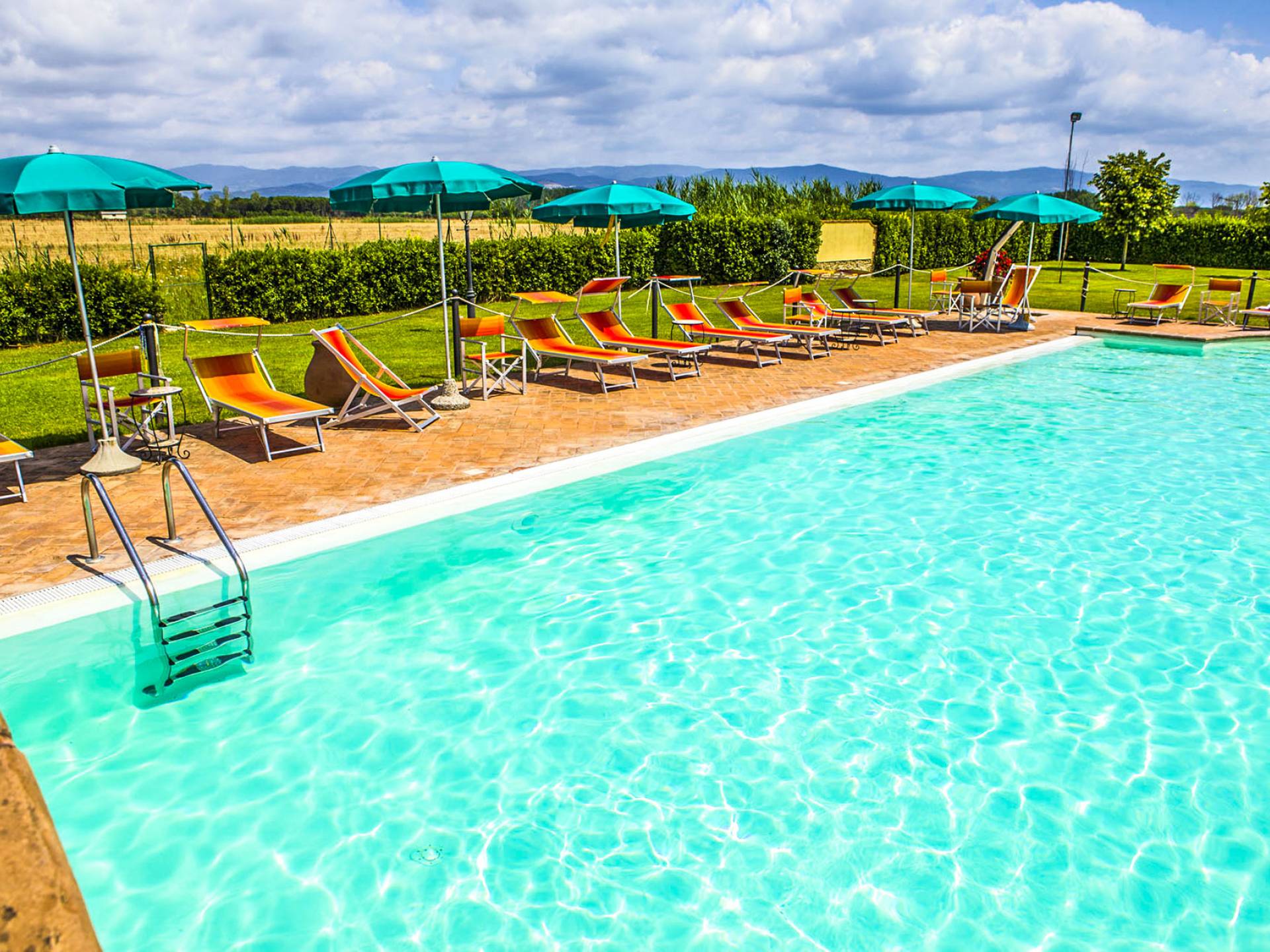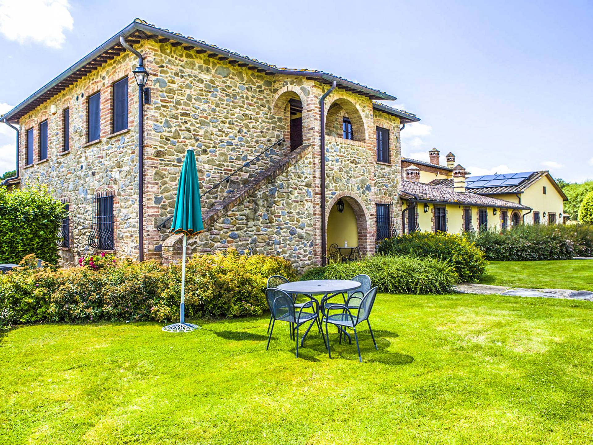 La propiedad ofrece una gran piscina totalmente equipada junto con un área al aire libre, en mampostería, con horno de piedra, ideal para desayunos al aire libre y para disfrutar de deliciosas especialidades a la parrilla o de la Toscana y Umbría. En la sala de estar interior, donde hay una gran chimenea, puede encontrarse charlando o leyendo en paz. En el exterior también hay una bonita pista de tenis y una zona de aparcamiento totalmente vallada. En la villa, encontrará todas las indicaciones para seguir recorridos y catas de comida y vino en la zona, pero también información sobre la convención para el alquiler de bicicletas.