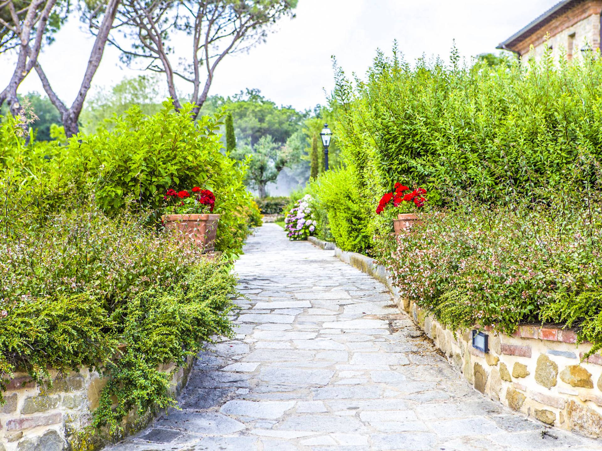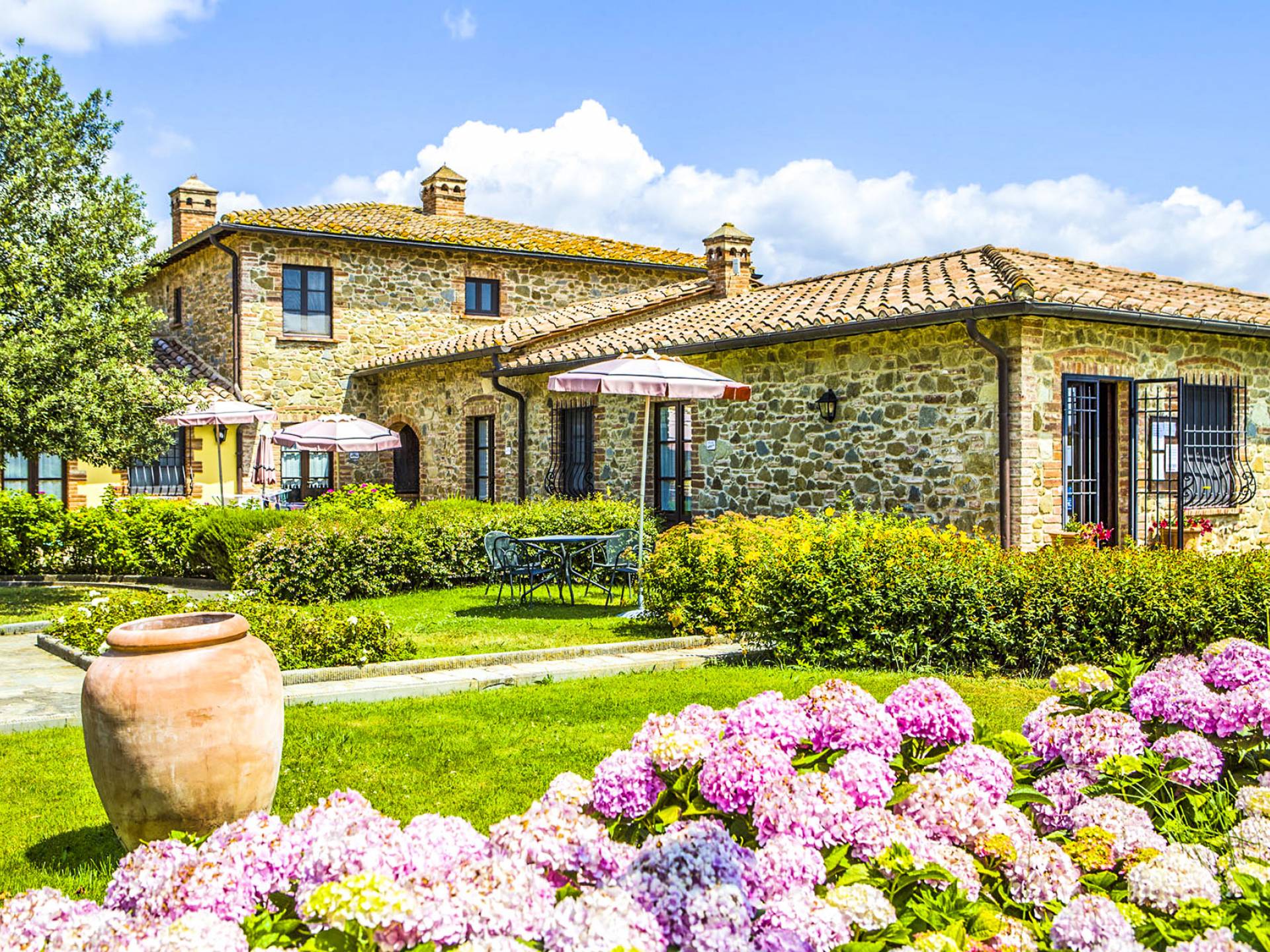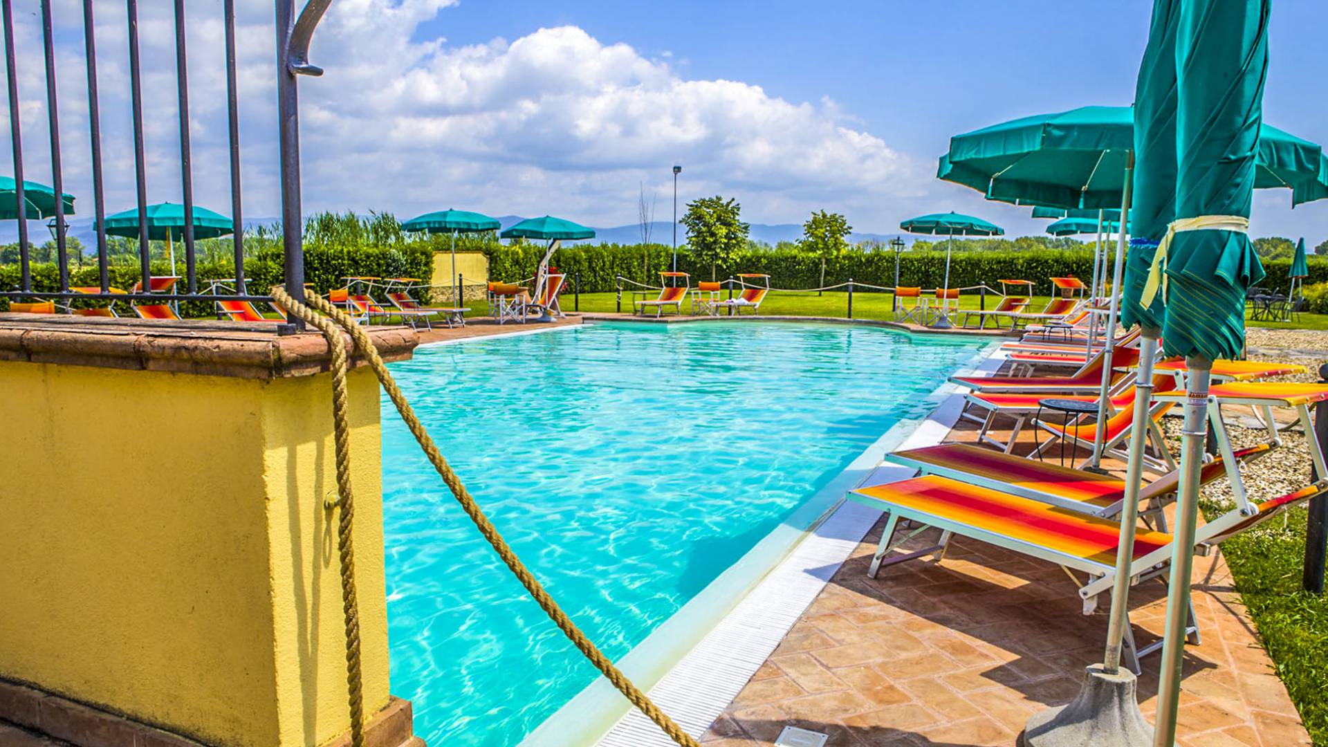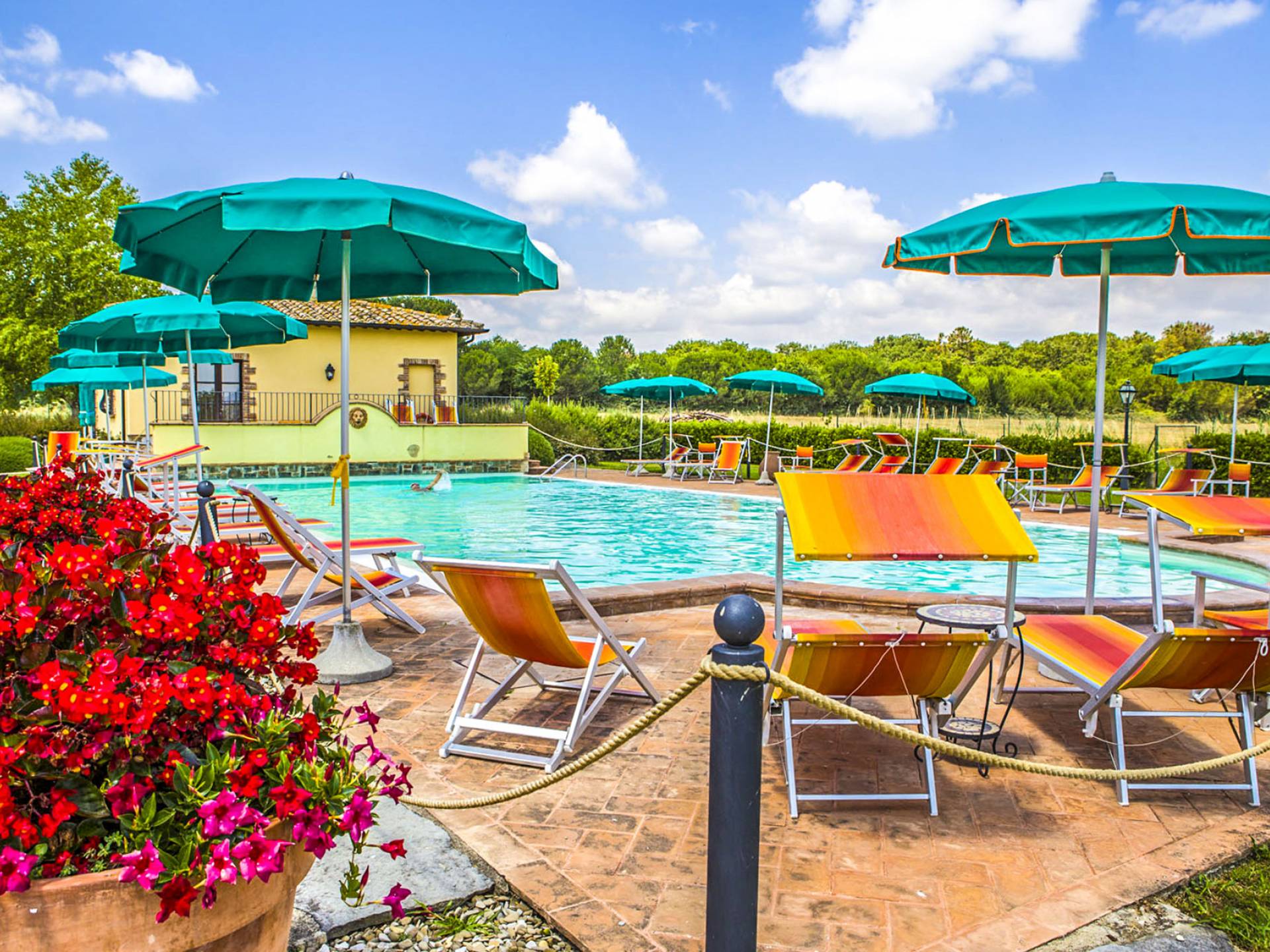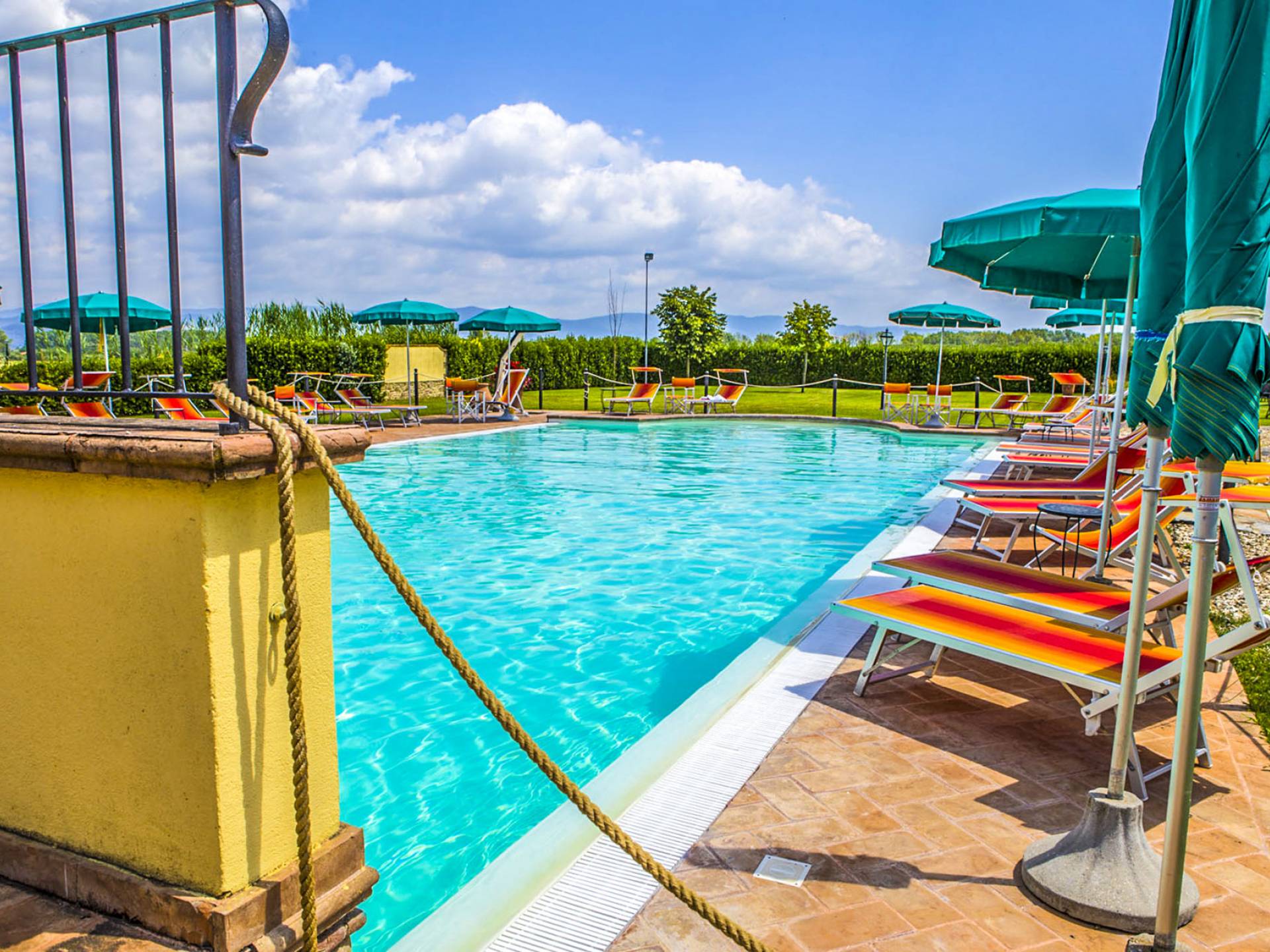 La propiedad ofrece una gran piscina totalmente equipada junto con un área al aire libre, en mampostería, con horno de piedra, ideal para desayunos al aire libre y para disfrutar de deliciosas especialidades a la parrilla o de la Toscana y Umbría. En la sala de estar interior, donde hay una gran chimenea, puede encontrarse charlando o leyendo en paz. En el exterior también hay una bonita pista de tenis y una zona de aparcamiento totalmente vallada. En la villa, encontrará todas las indicaciones para seguir recorridos y catas de comida y vino en la zona, pero también información sobre la convención para el alquiler de bicicletas.