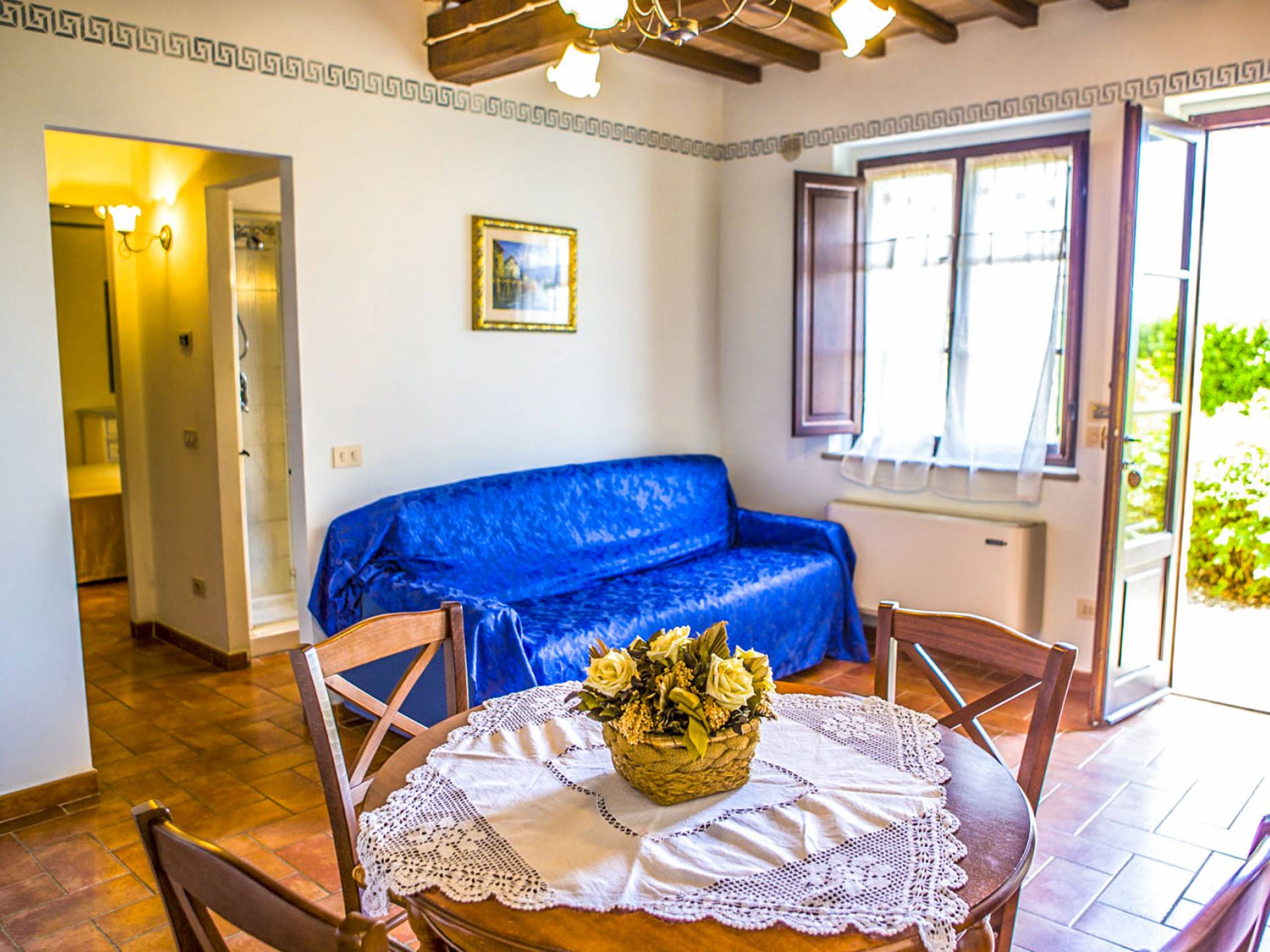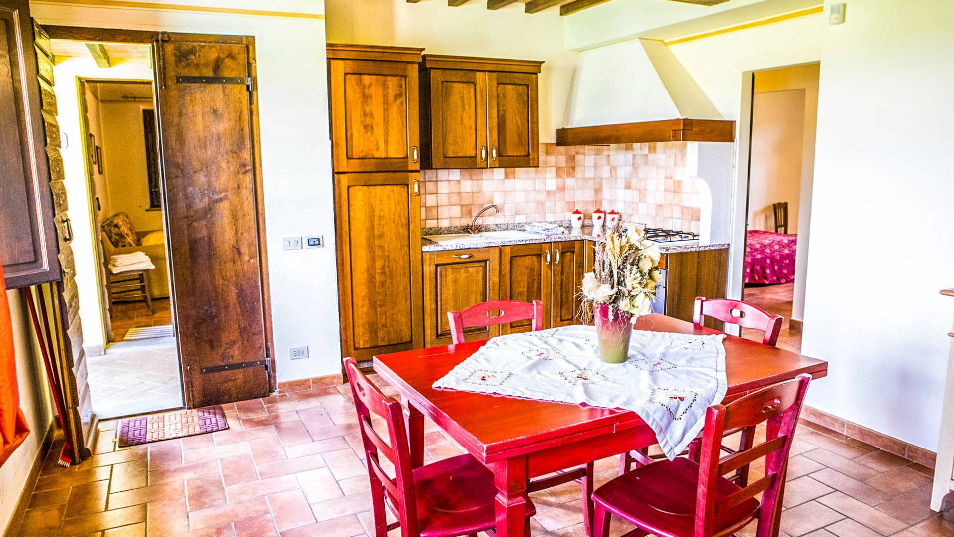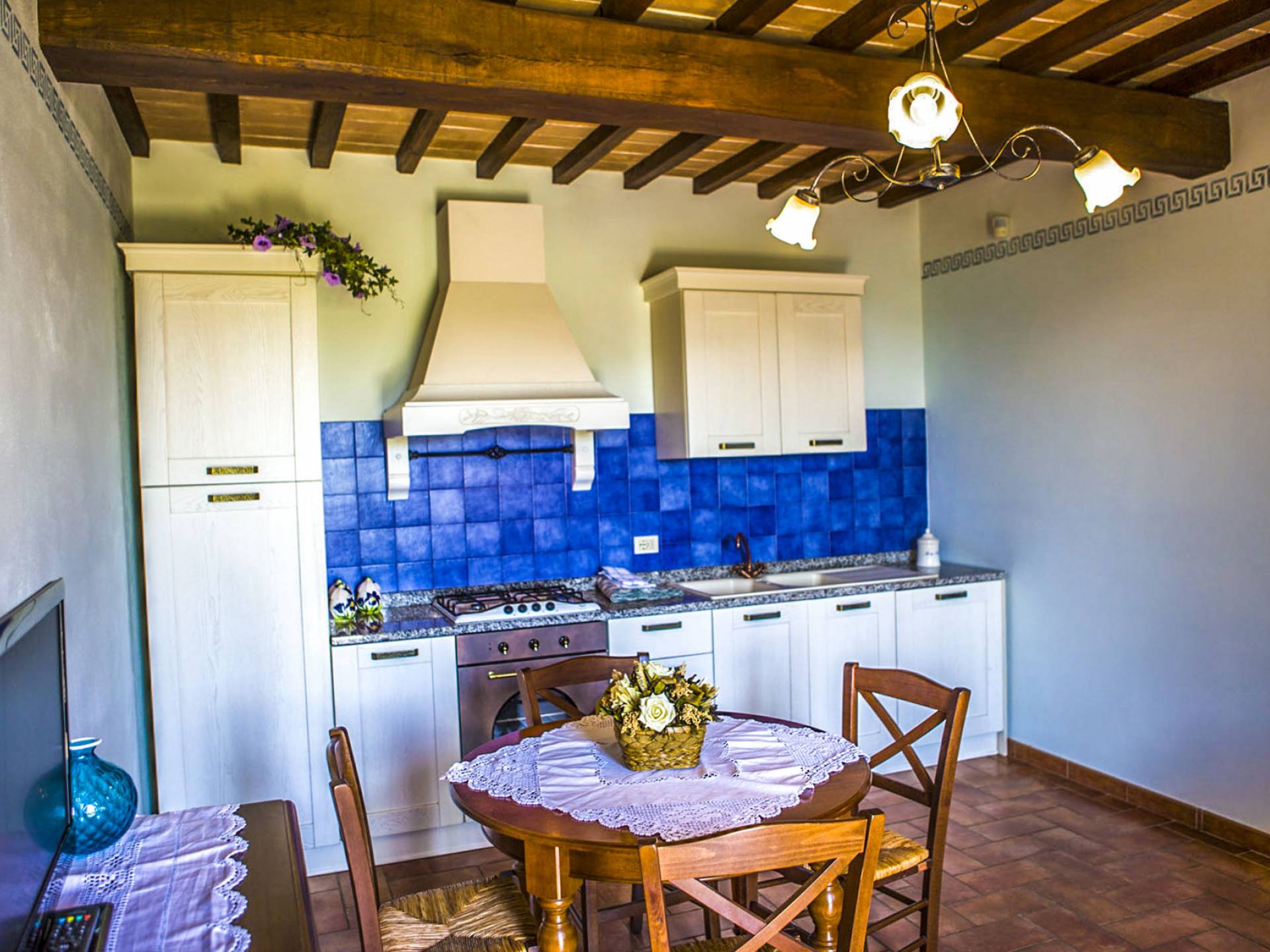 Durante la temporada de verano, un panadero llegará todas las mañanas con pan fresco y croissants, mientras que a cero kilómetros, en la propiedad, podrá disfrutar de verduras de temporada cultivadas en los terrenos circundantes. La propiedad disfruta de un fácil acceso a las áreas de la zona de Trasimeno, como Castiglione del Lago, Tuoro, San Feliciano y Passignano, desde donde parten los ferries hacia las islas.
