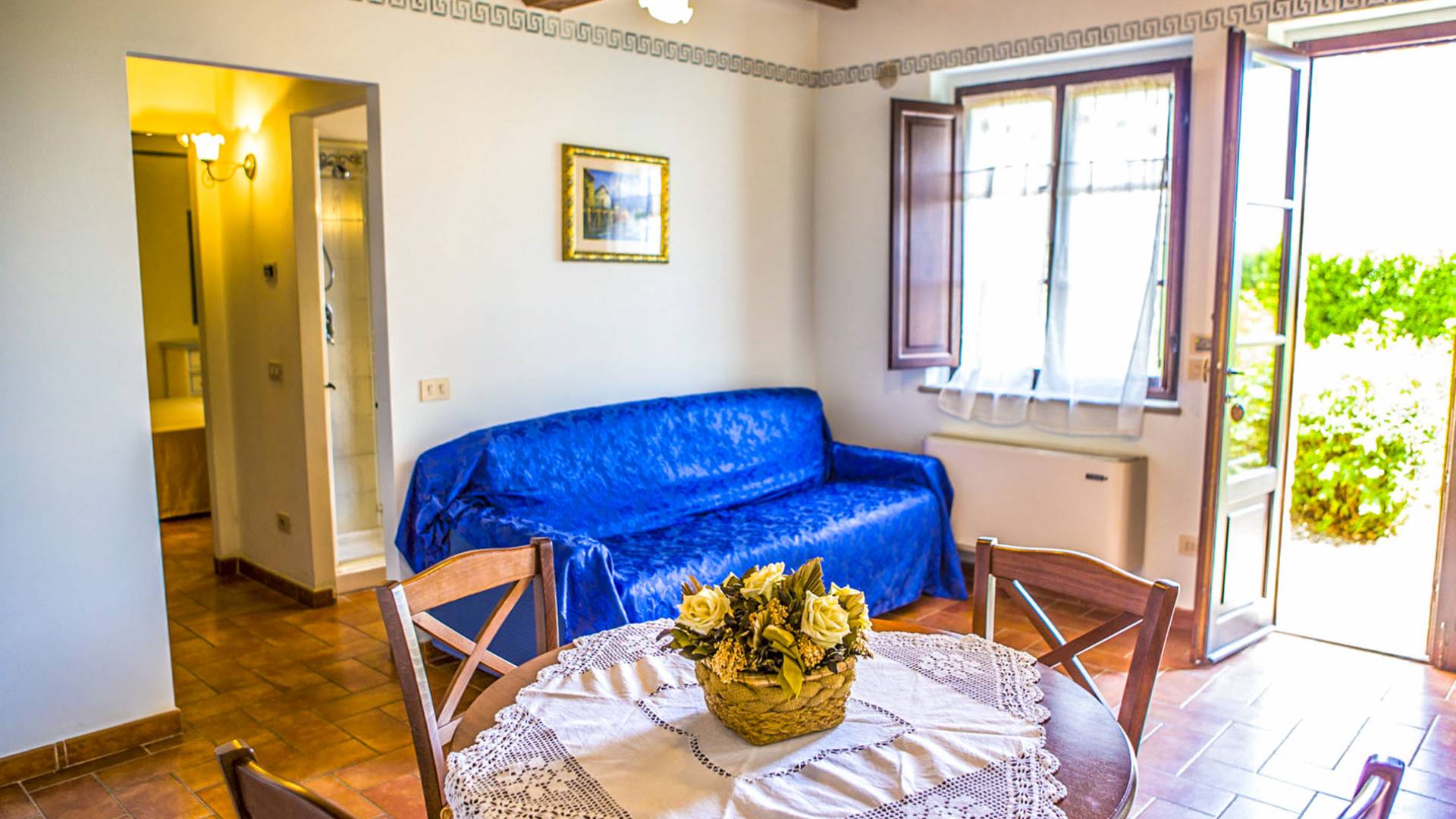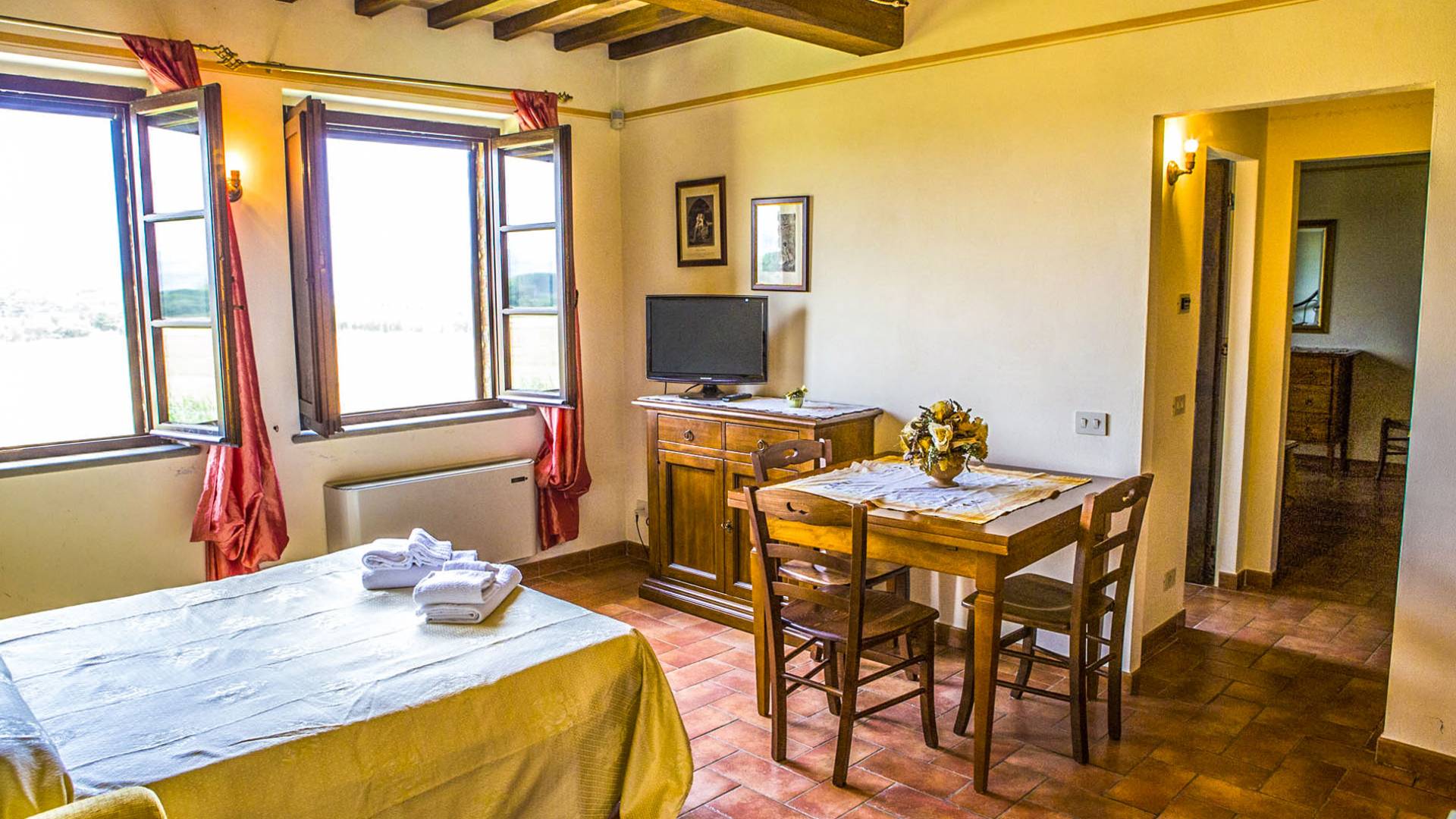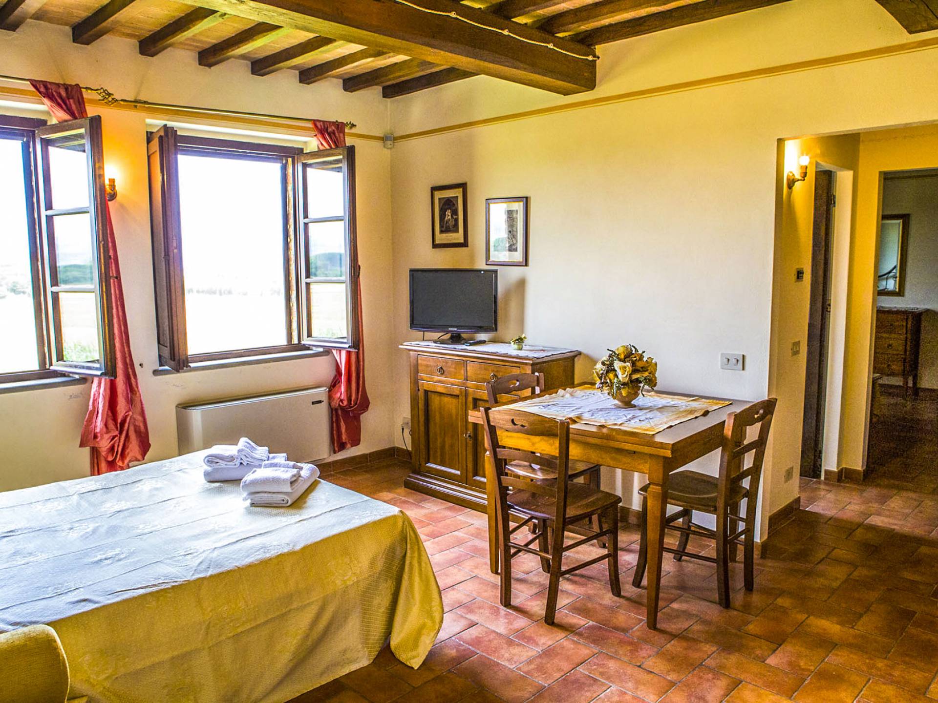 Durante la temporada de verano, un panadero llegará todas las mañanas con pan fresco y croissants, mientras que a cero kilómetros, en la propiedad, podrá disfrutar de verduras de temporada cultivadas en los terrenos circundantes. La propiedad disfruta de un fácil acceso a las áreas de la zona de Trasimeno, como Castiglione del Lago, Tuoro, San Feliciano y Passignano, desde donde parten los ferries hacia las islas.