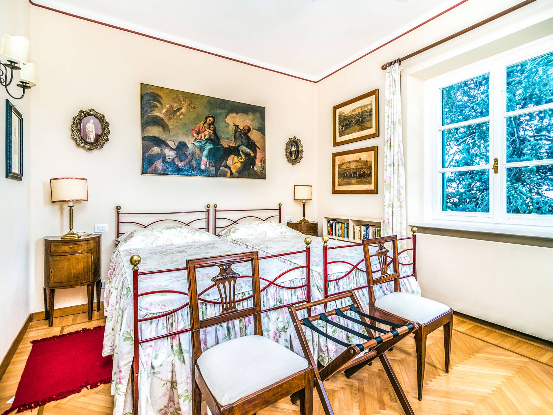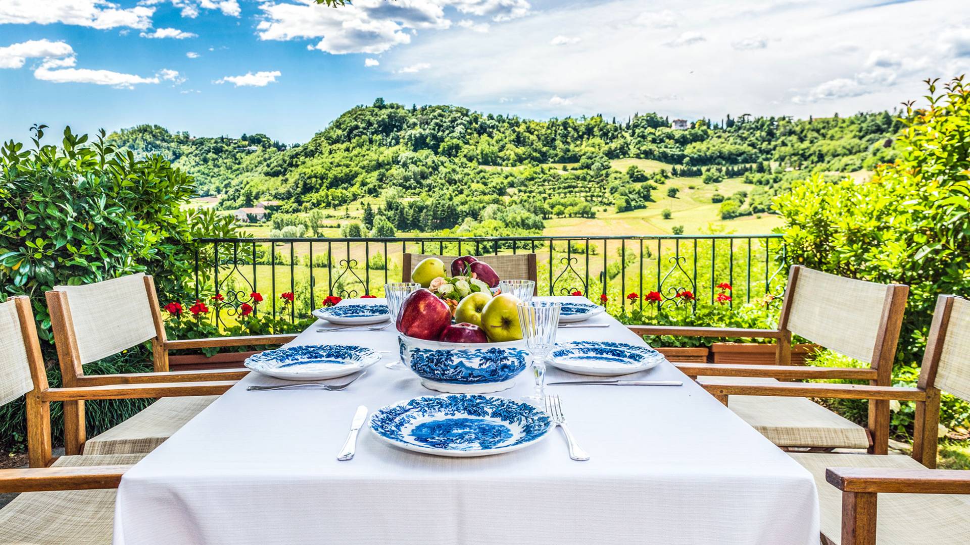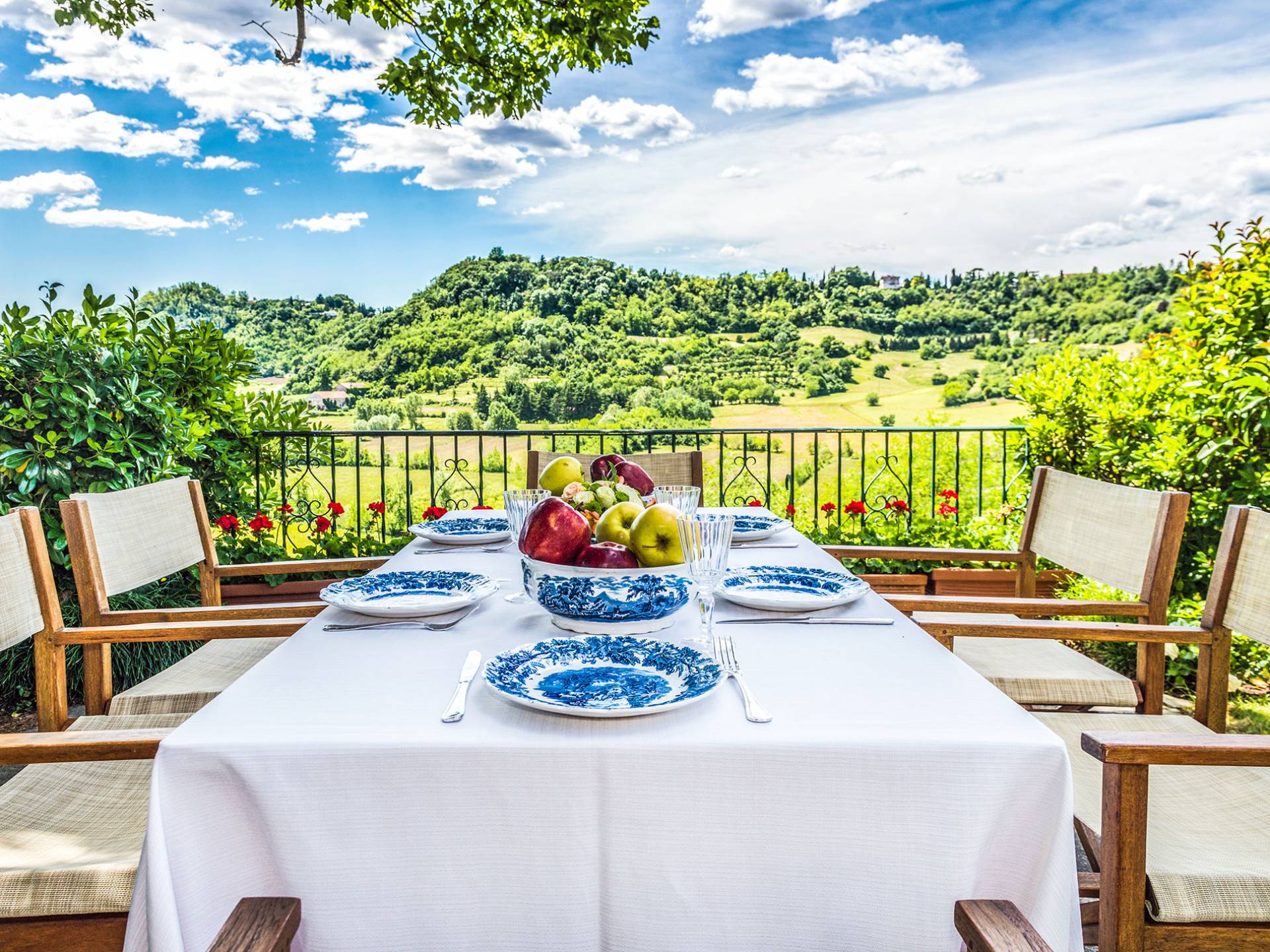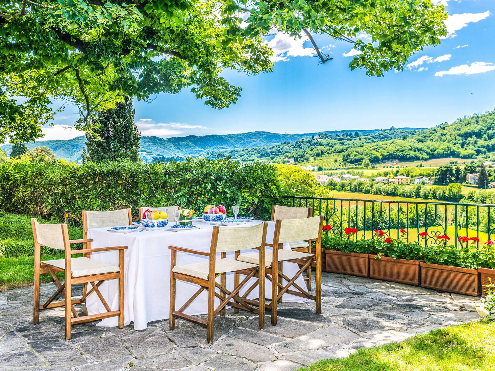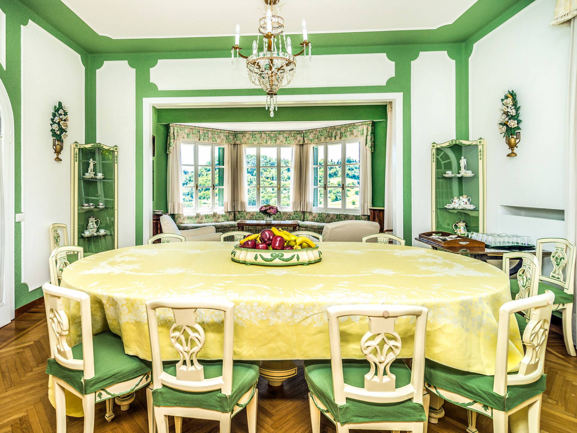 Esta mansión increíblemente elegante ha sido bendecida por muchos invitados distinguidos a lo largo del tiempo y pintores como Gianbattista y Giandomenico Tiepolo, cuyos frescos de obra maestra adornan la cercana Villa Valmarana ai Nani también se inspiraron en la belleza de la zona. Con su amplia terraza panorámica frente a los atardeceres dorados en medio de antiguos cipreses, cedros, pinos y las rosas, geranios y lirios más perfumados, esta finca es uno de los mejores ejemplos de villas nobles clásicas en Véneto.