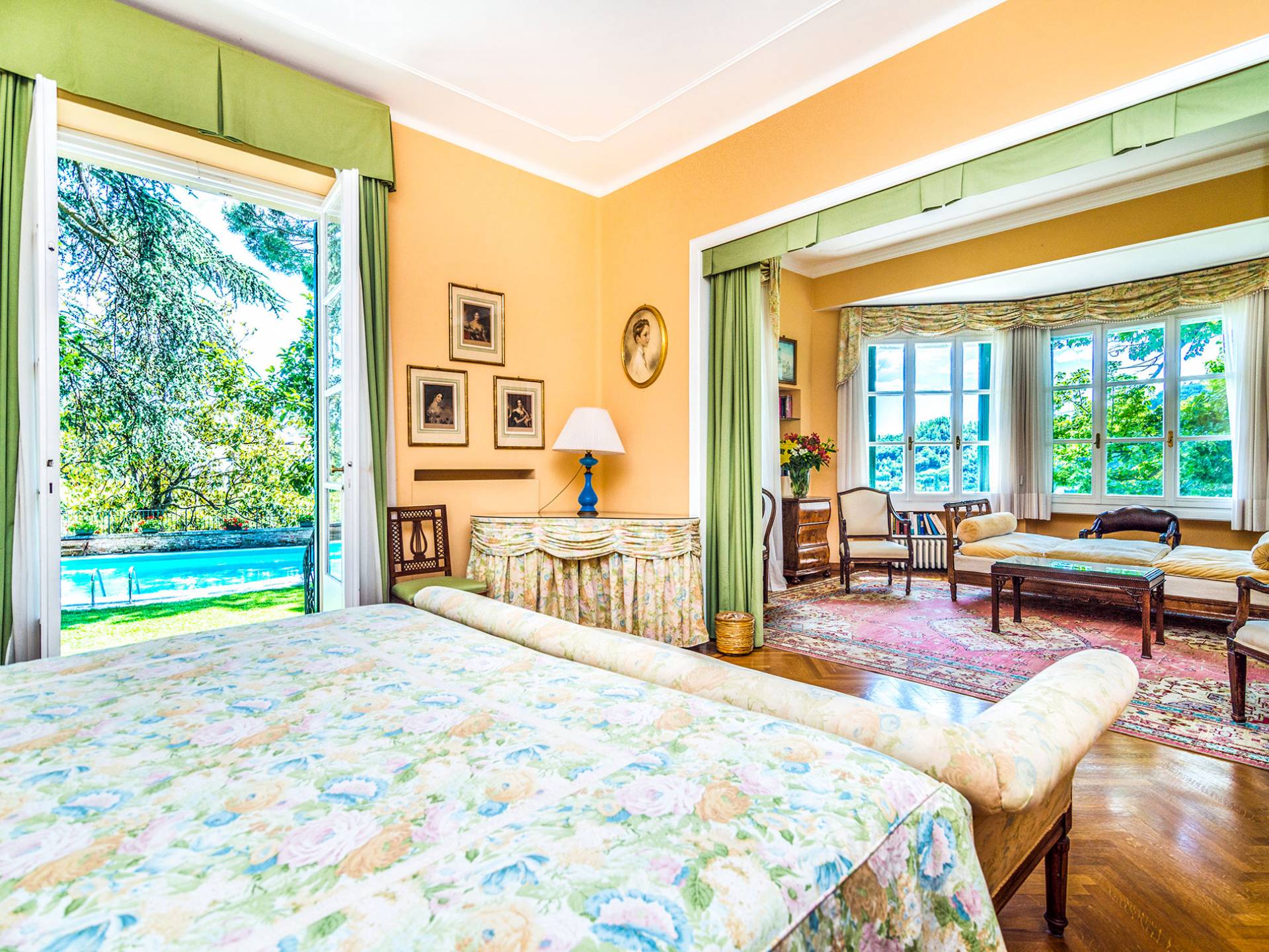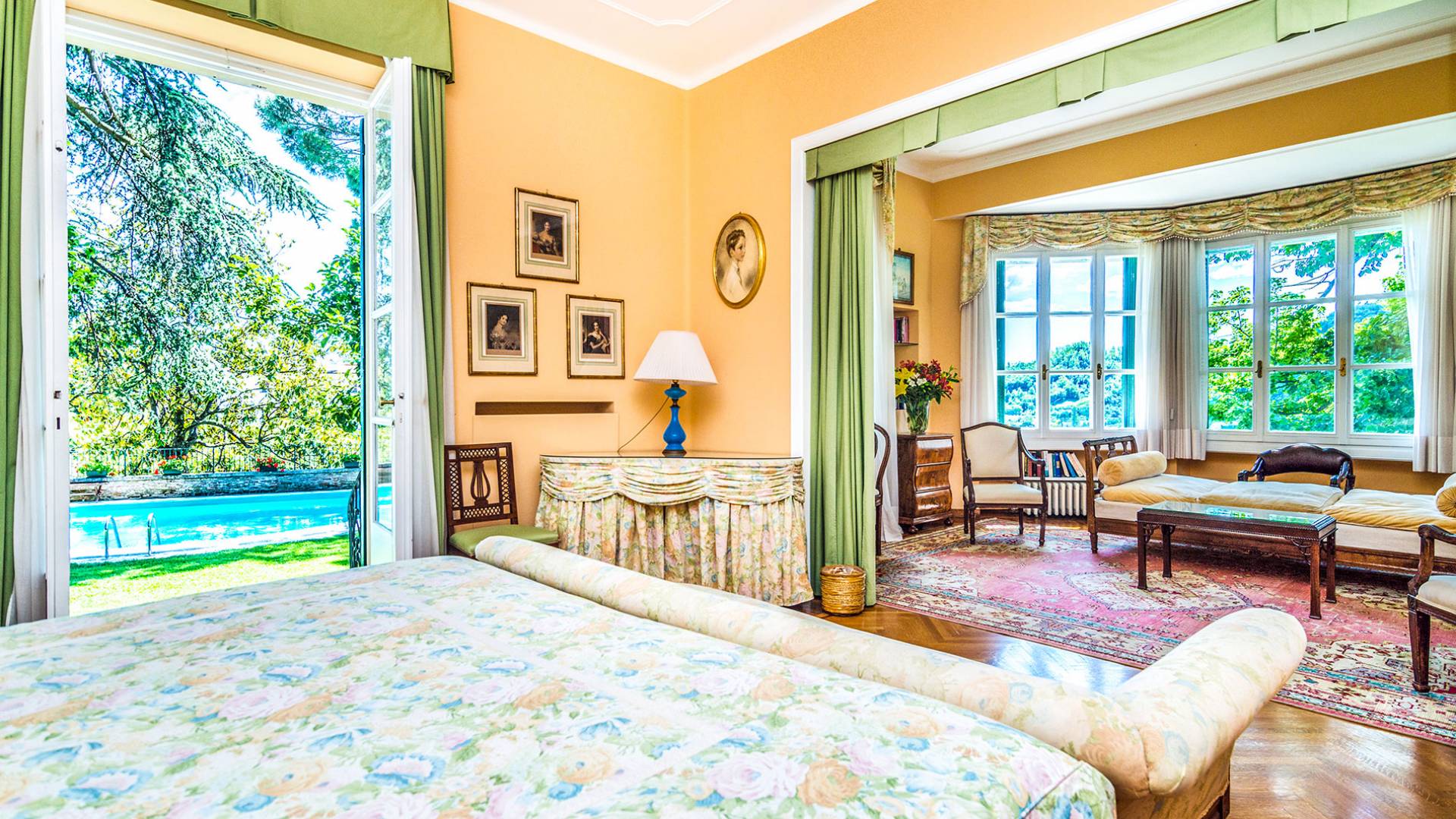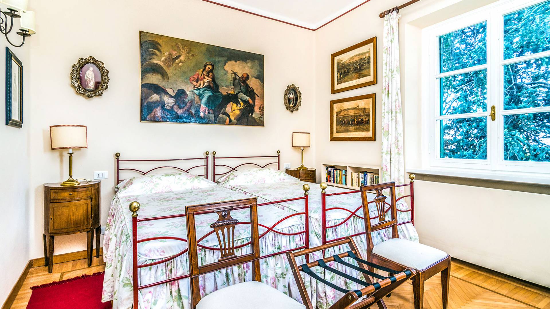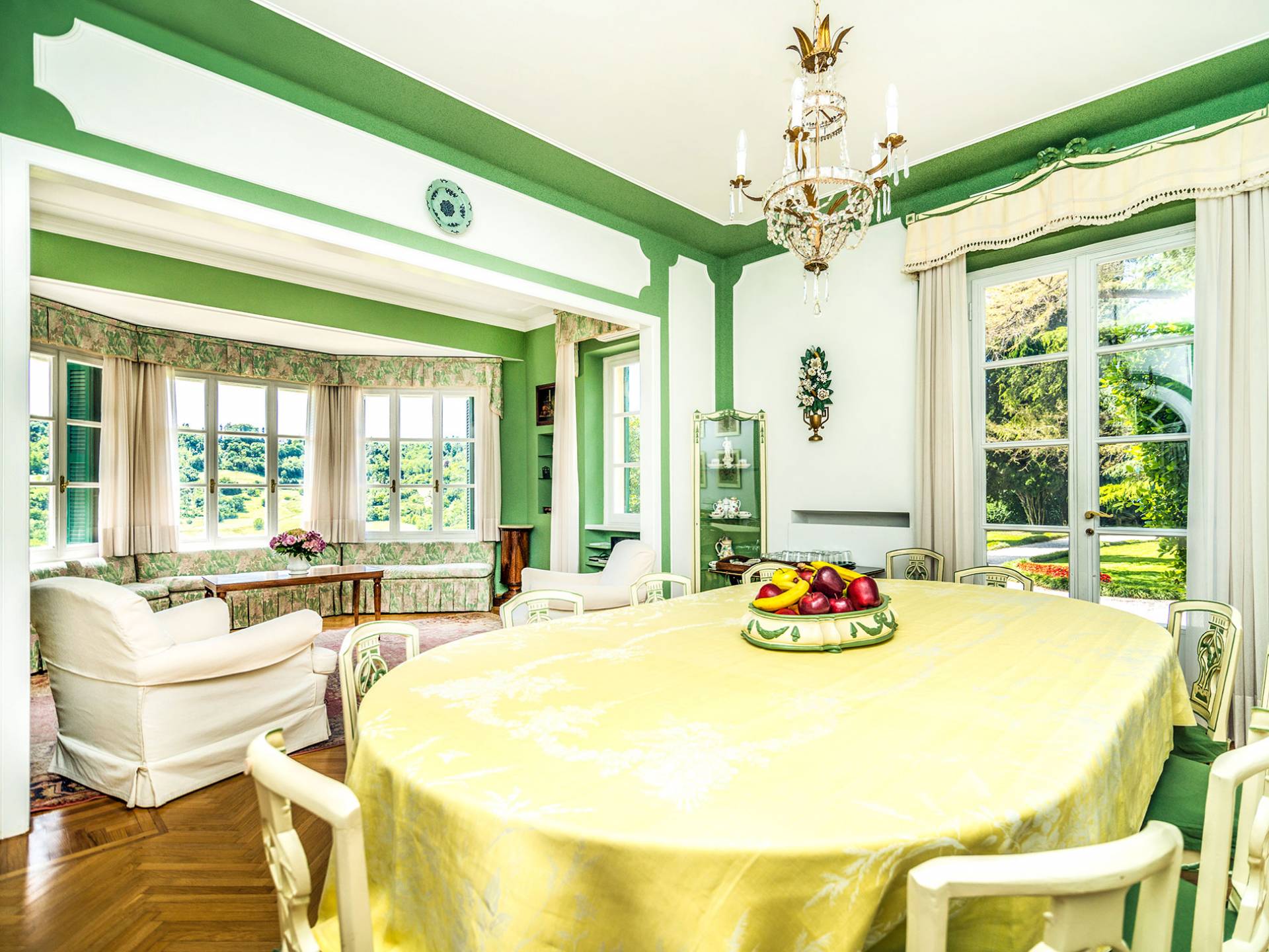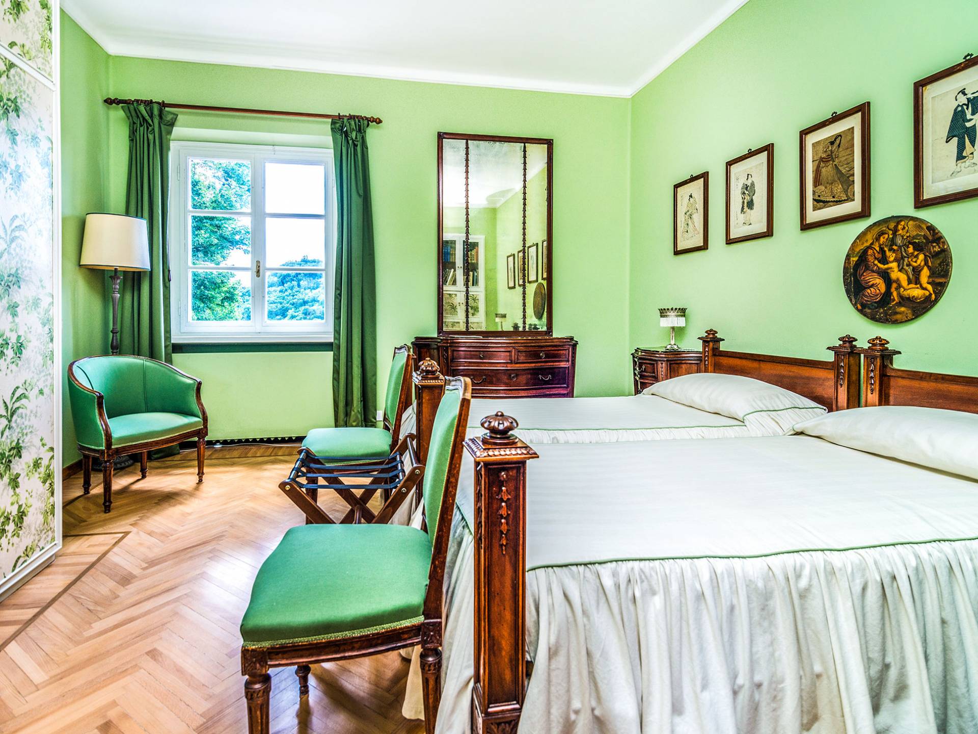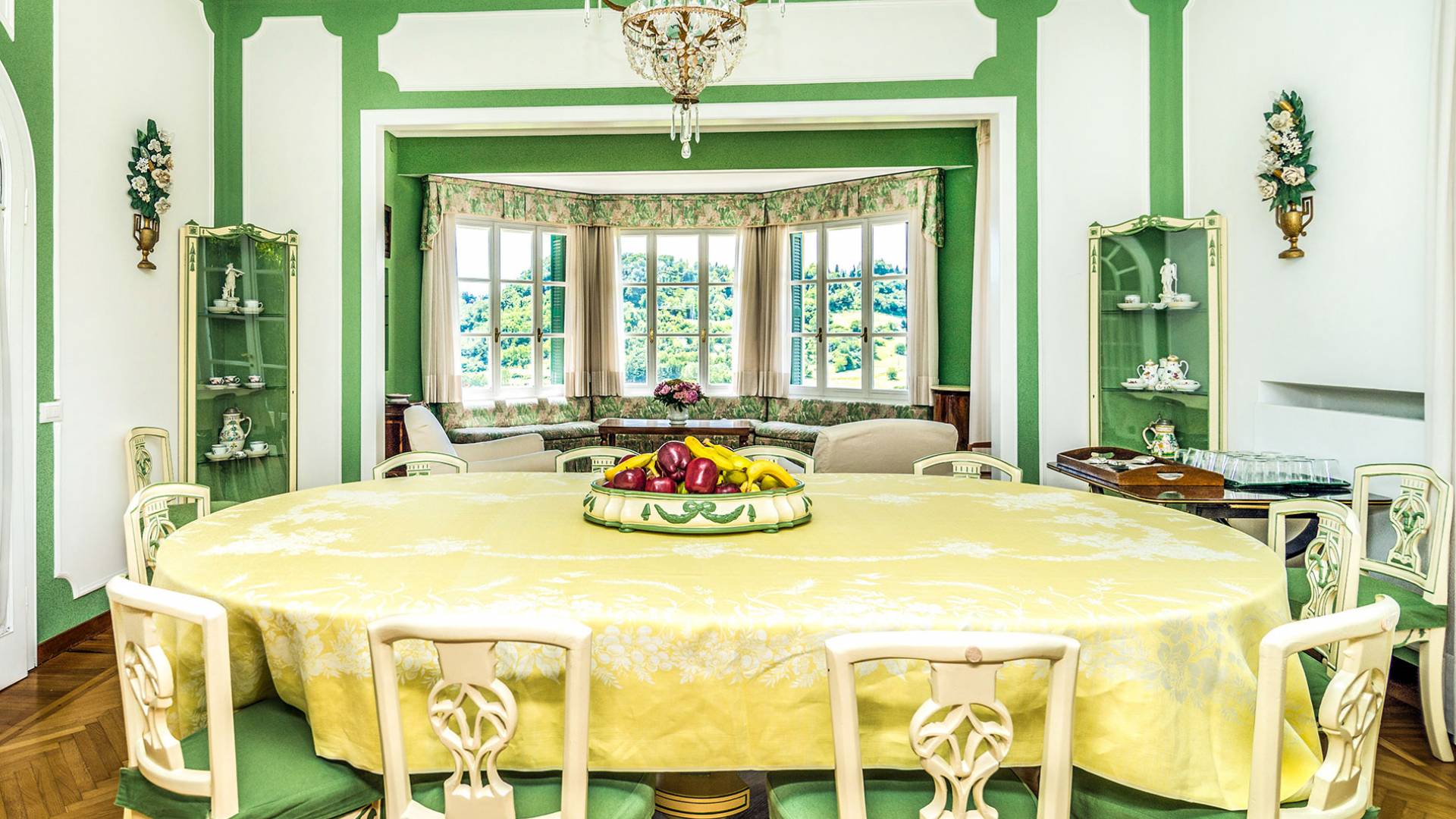 Esta mansión increíblemente elegante ha sido bendecida por muchos invitados distinguidos a lo largo del tiempo y pintores como Gianbattista y Giandomenico Tiepolo, cuyos frescos de obra maestra adornan la cercana Villa Valmarana ai Nani también se inspiraron en la belleza de la zona. Con su amplia terraza panorámica frente a los atardeceres dorados en medio de antiguos cipreses, cedros, pinos y las rosas, geranios y lirios más perfumados, esta finca es uno de los mejores ejemplos de villas nobles clásicas en Véneto.
