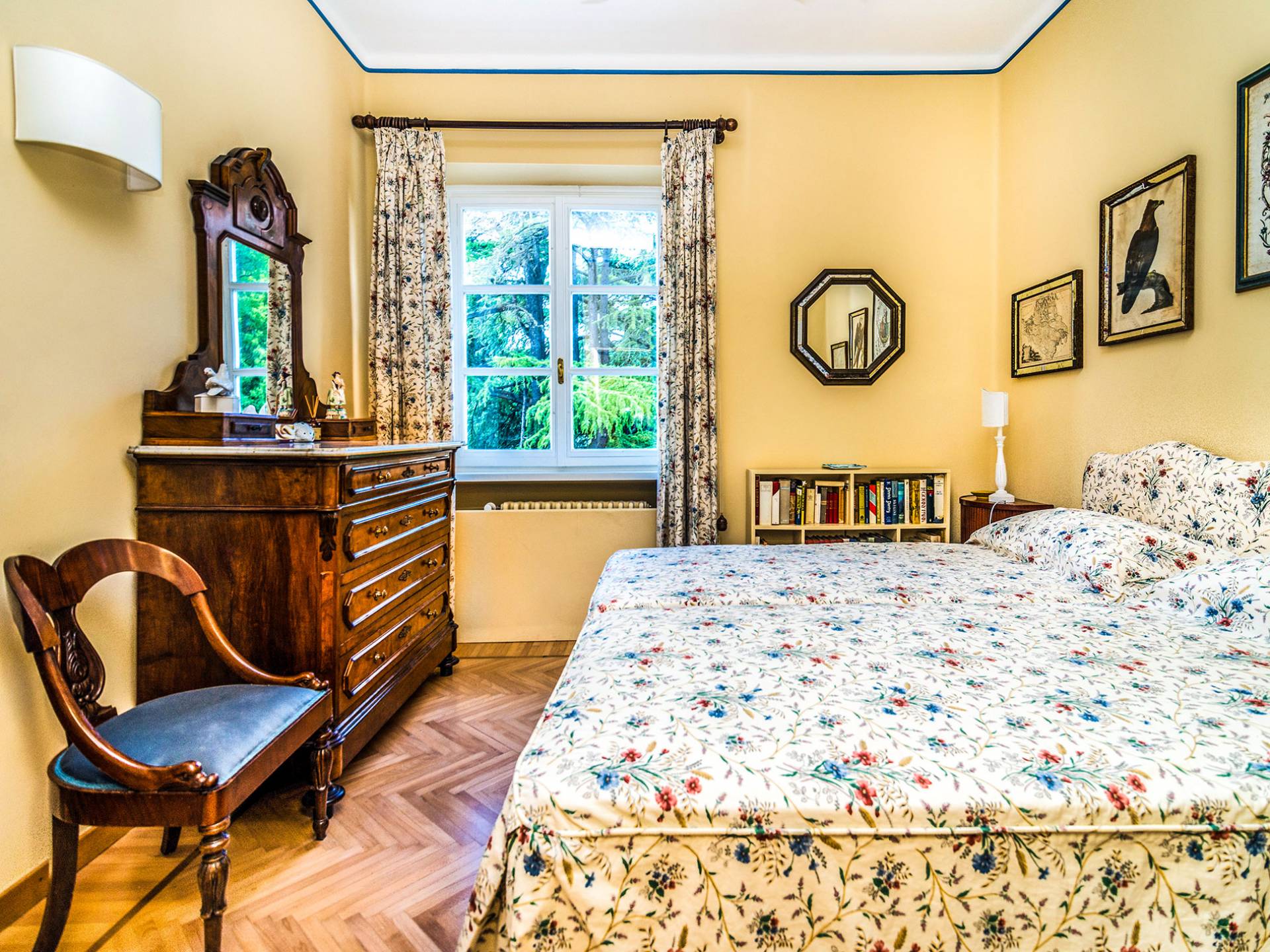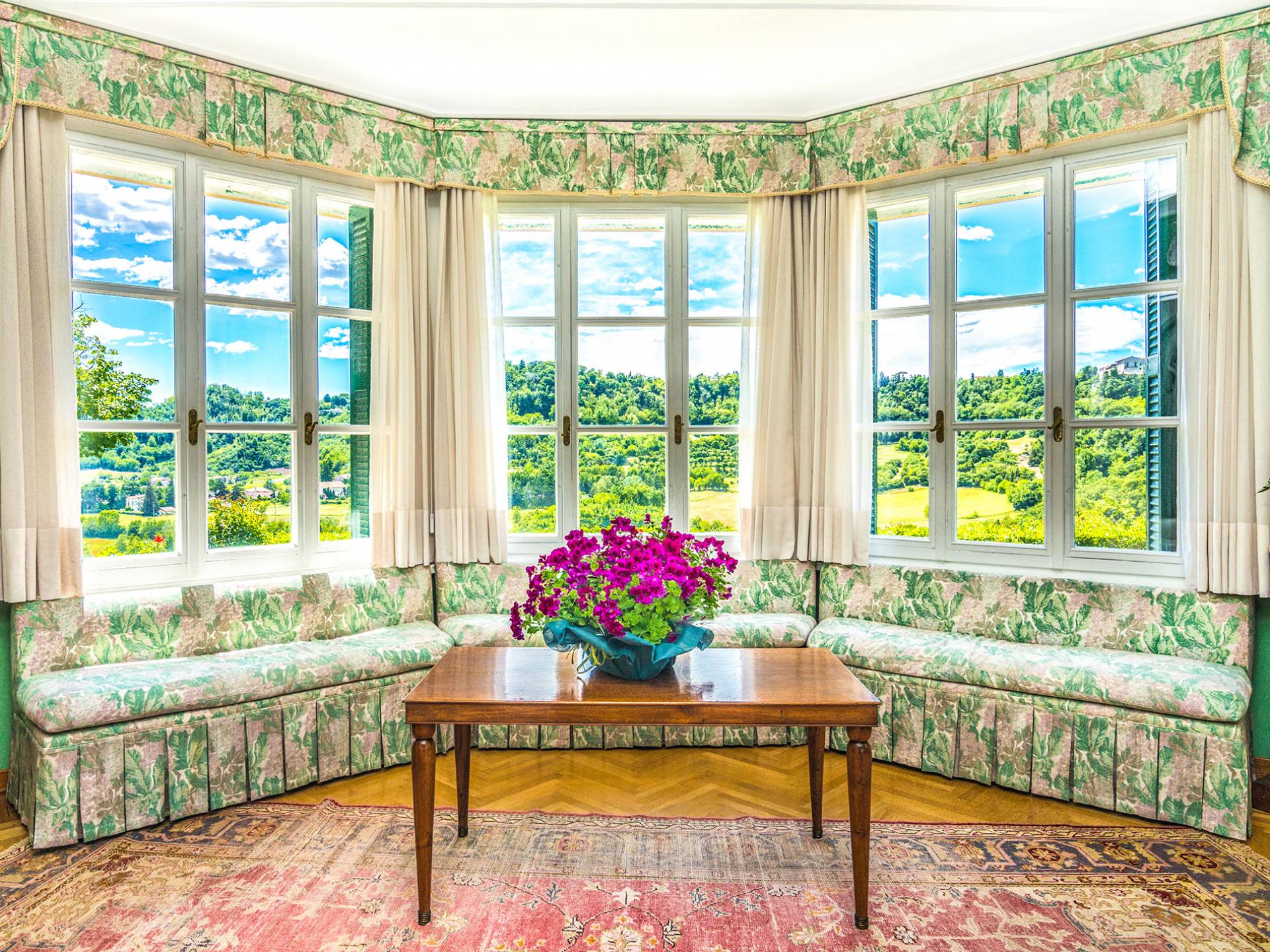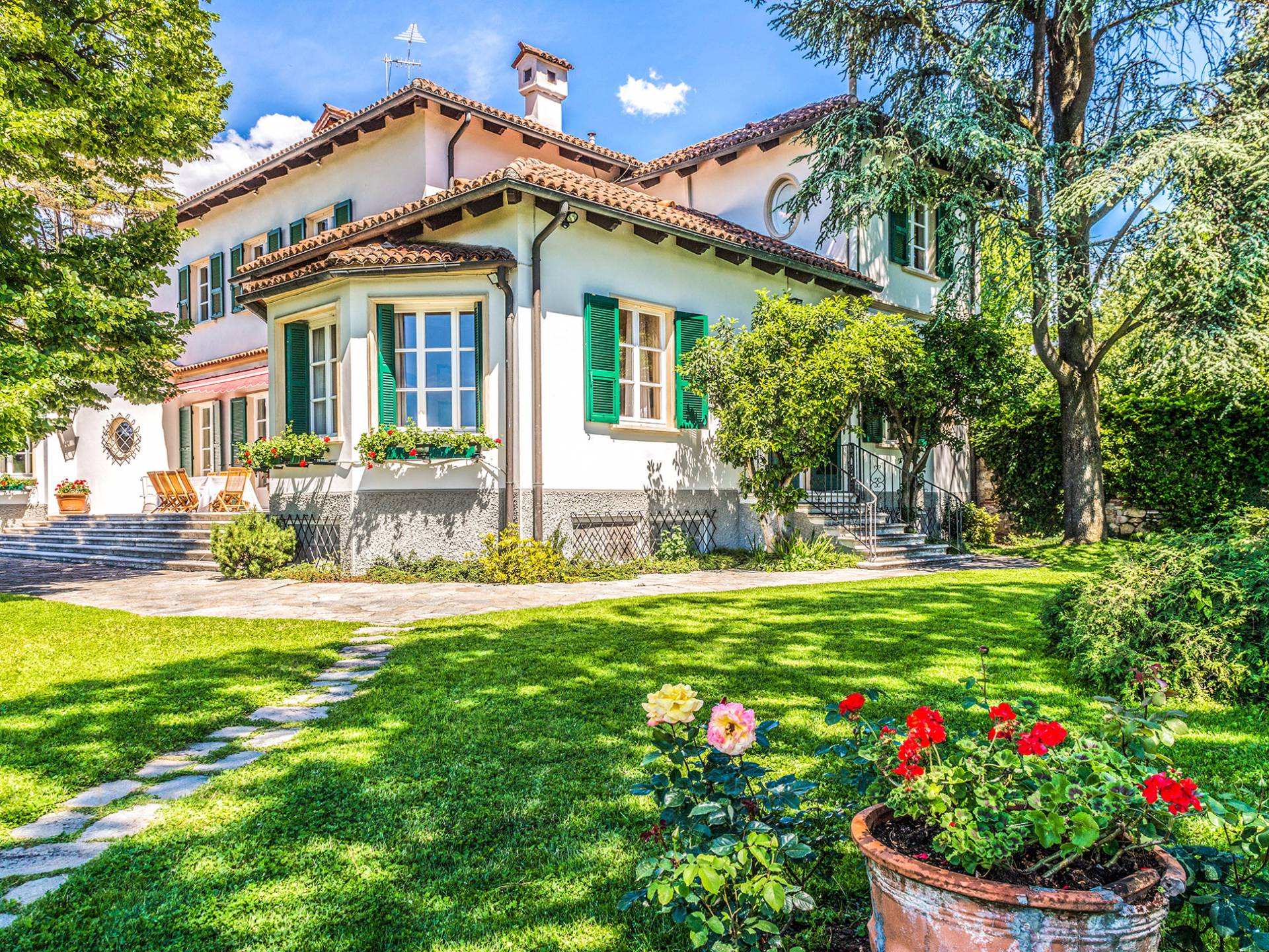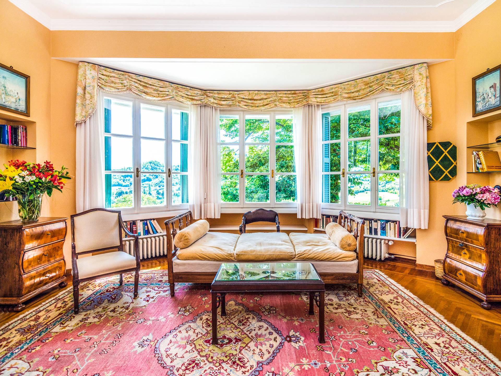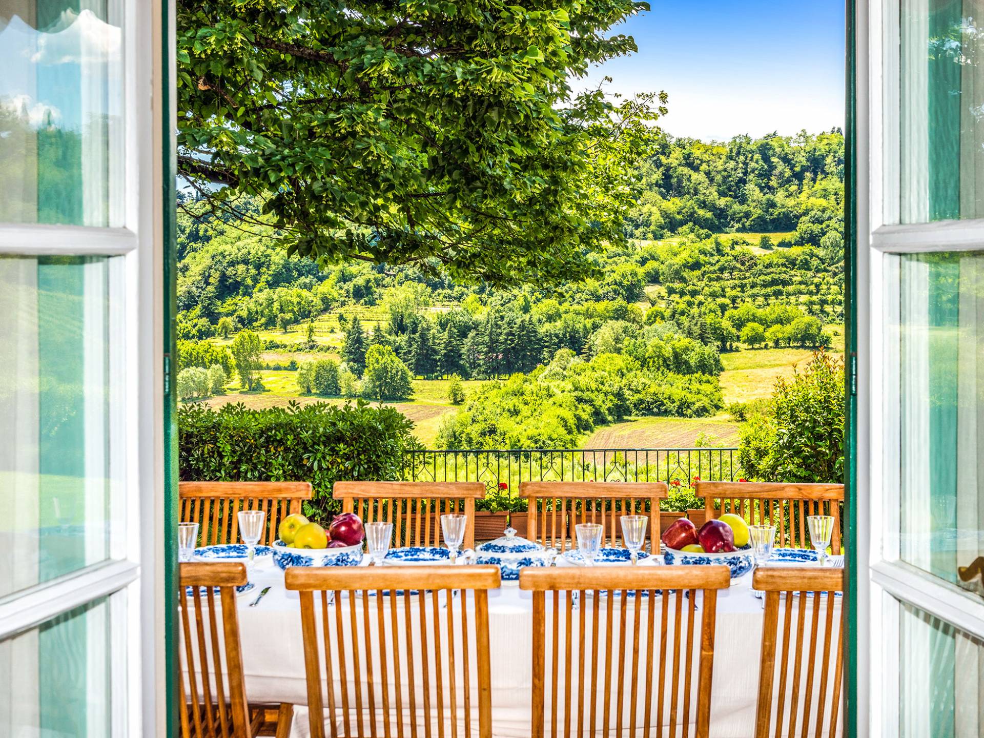Esta mansión increíblemente elegante ha sido bendecida por muchos invitados distinguidos a lo largo del tiempo y pintores como Gianbattista y Giandomenico Tiepolo, cuyos frescos de obra maestra adornan la cercana Villa Valmarana ai Nani también se inspiraron en la belleza de la zona. Con su amplia terraza panorámica frente a los atardeceres dorados en medio de antiguos cipreses, cedros, pinos y las rosas, geranios y lirios más perfumados, esta finca es uno de los mejores ejemplos de villas nobles clásicas en Véneto.