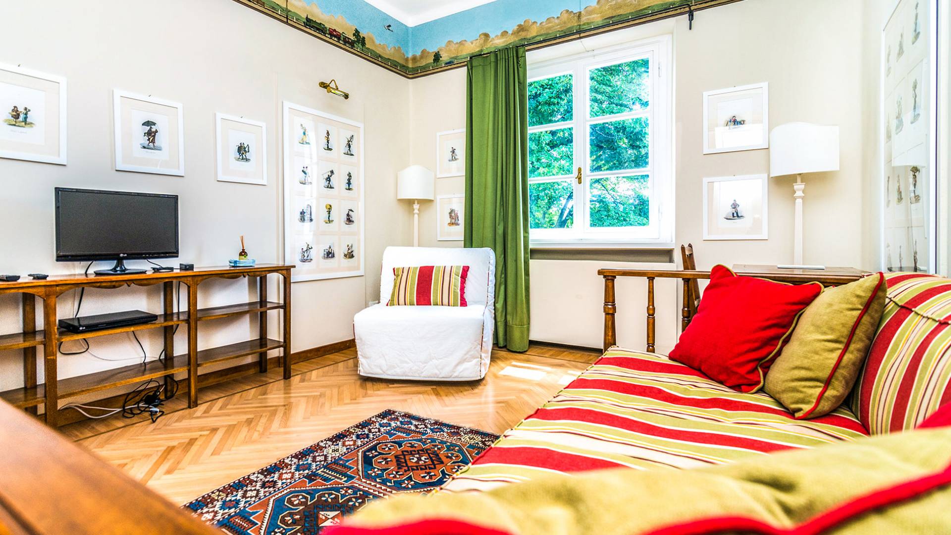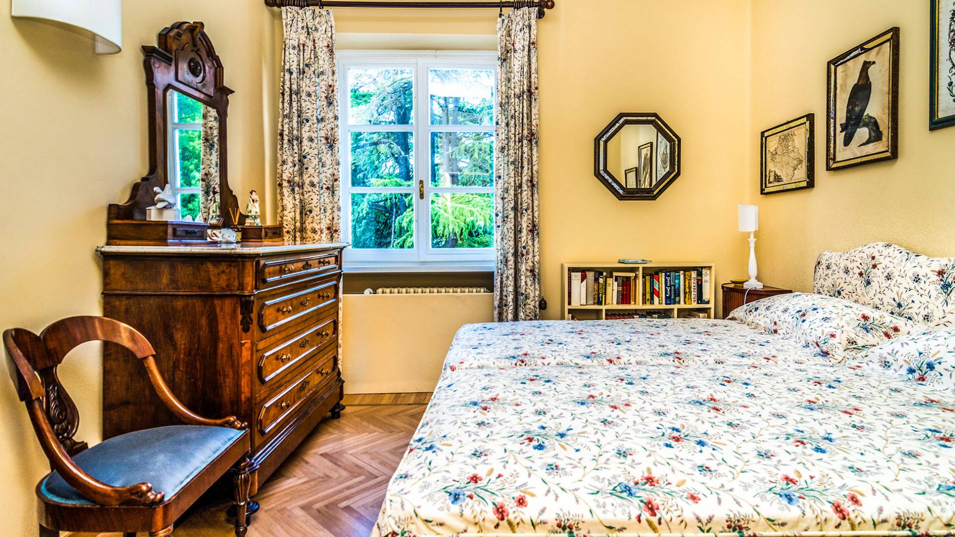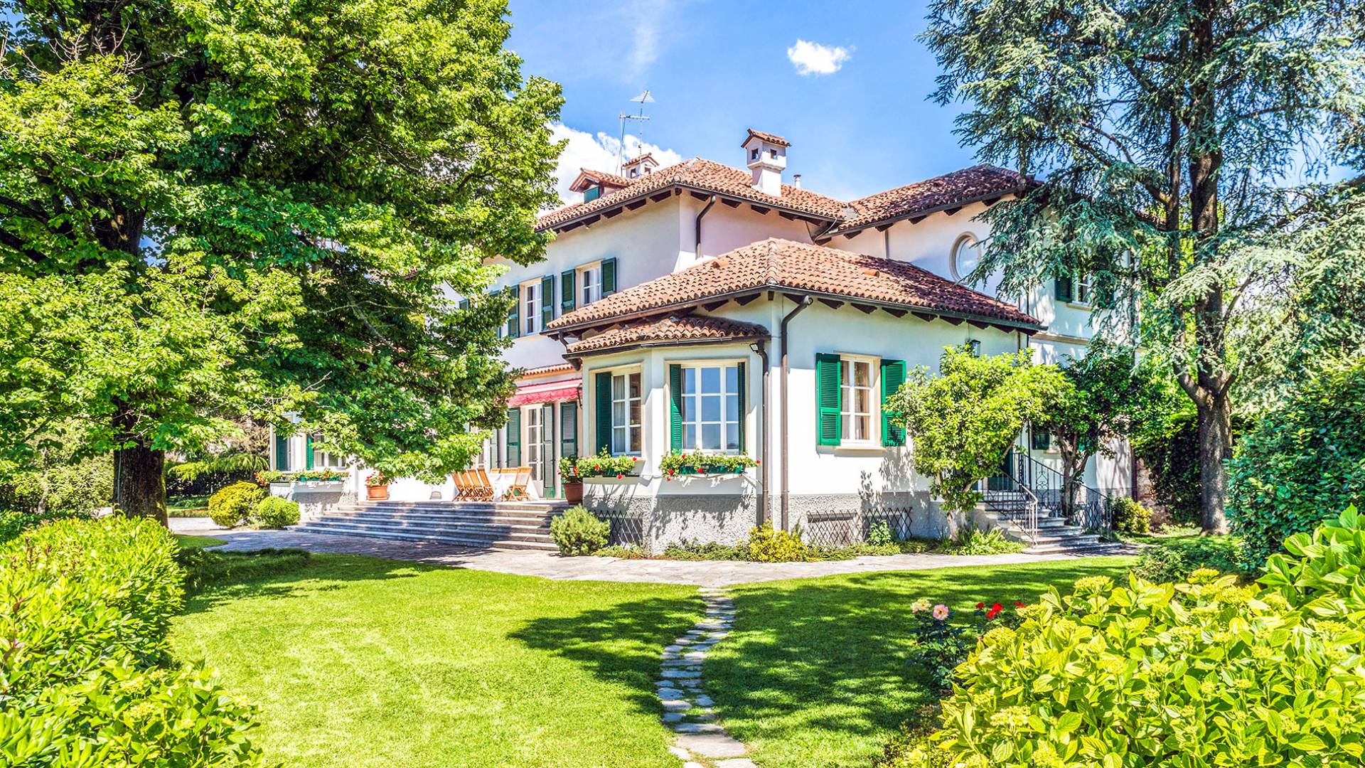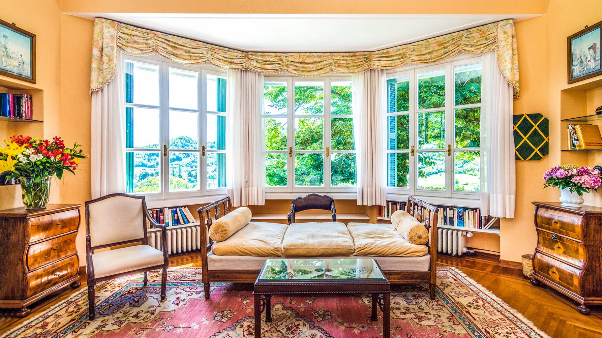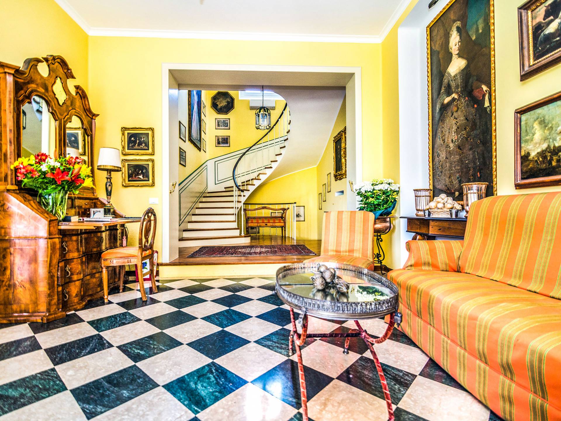 Esta mansión increíblemente elegante ha sido bendecida por muchos invitados distinguidos a lo largo del tiempo y pintores como Gianbattista y Giandomenico Tiepolo, cuyos frescos de obra maestra adornan la cercana Villa Valmarana ai Nani también se inspiraron en la belleza de la zona. Con su amplia terraza panorámica frente a los atardeceres dorados en medio de antiguos cipreses, cedros, pinos y las rosas, geranios y lirios más perfumados, esta finca es uno de los mejores ejemplos de villas nobles clásicas en Véneto.
