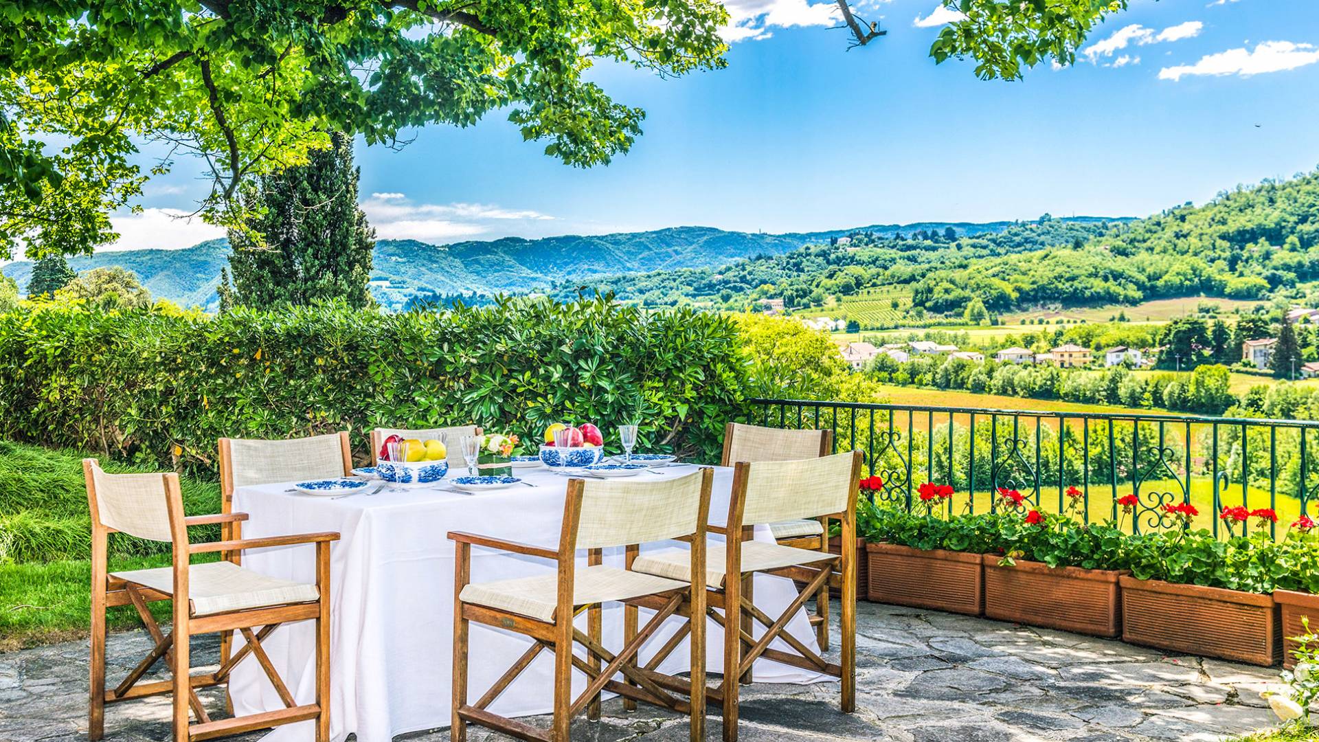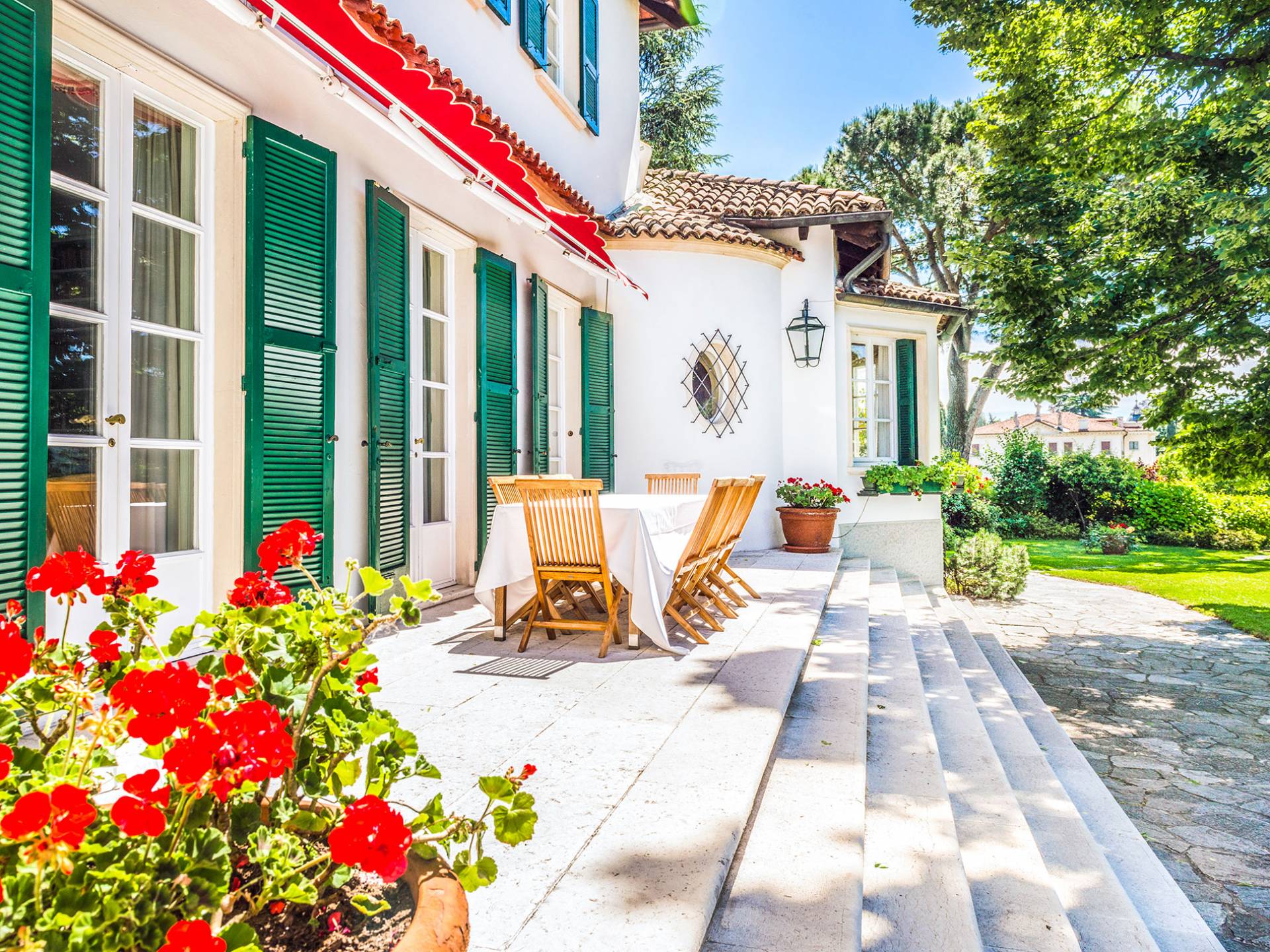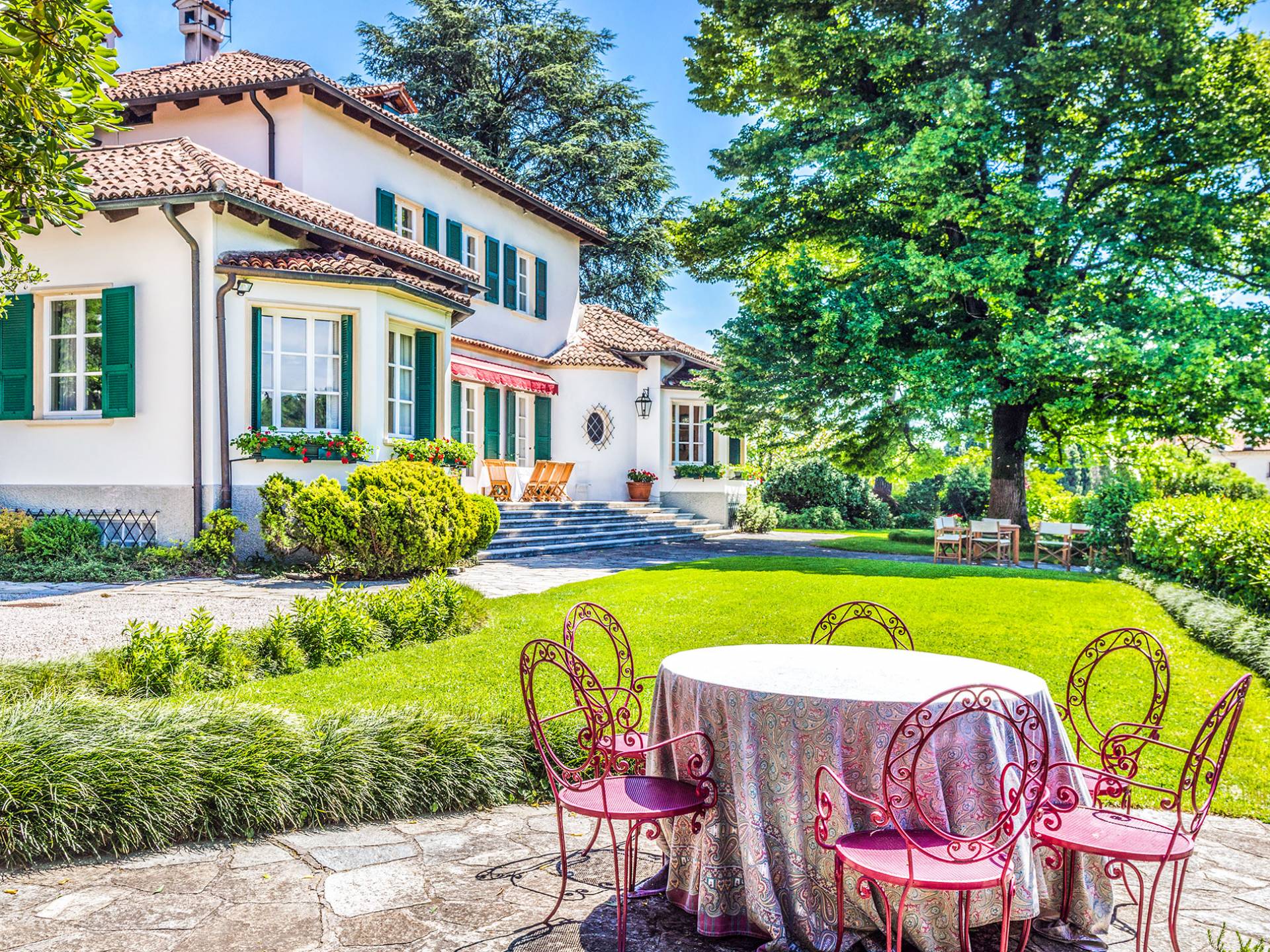 Si bien los gourmets y los entusiastas del Prosecco no creerán lo que ven al comparar la calidad de las comidas y las facturas recibidas, los viajeros que buscan historia y arquitectura no podrán encajar todo en un solo viaje y terminan reservando una segunda estadía: Veneto es , en una palabra, asombroso. Mientras que los interiores de la villa son elegantes, elegantes y se actualizan constantemente, el exterior es tranquilo y extraordinariamente panorámico: uno puede disfrutar del aura dorada de esa puesta de sol veneciana en medio de antiguos cipreses, cedros, pinos y arbustos de osmanto bellamente perfumados desde la hermosa terraza de la villa, frente a La Valeta. del Silenzio (Silence Little Valley). El agradable y amplio jardín presenta rosas, geranios y lirios. Una piscina con vista y un cuidado al aire libre completan el jardín.