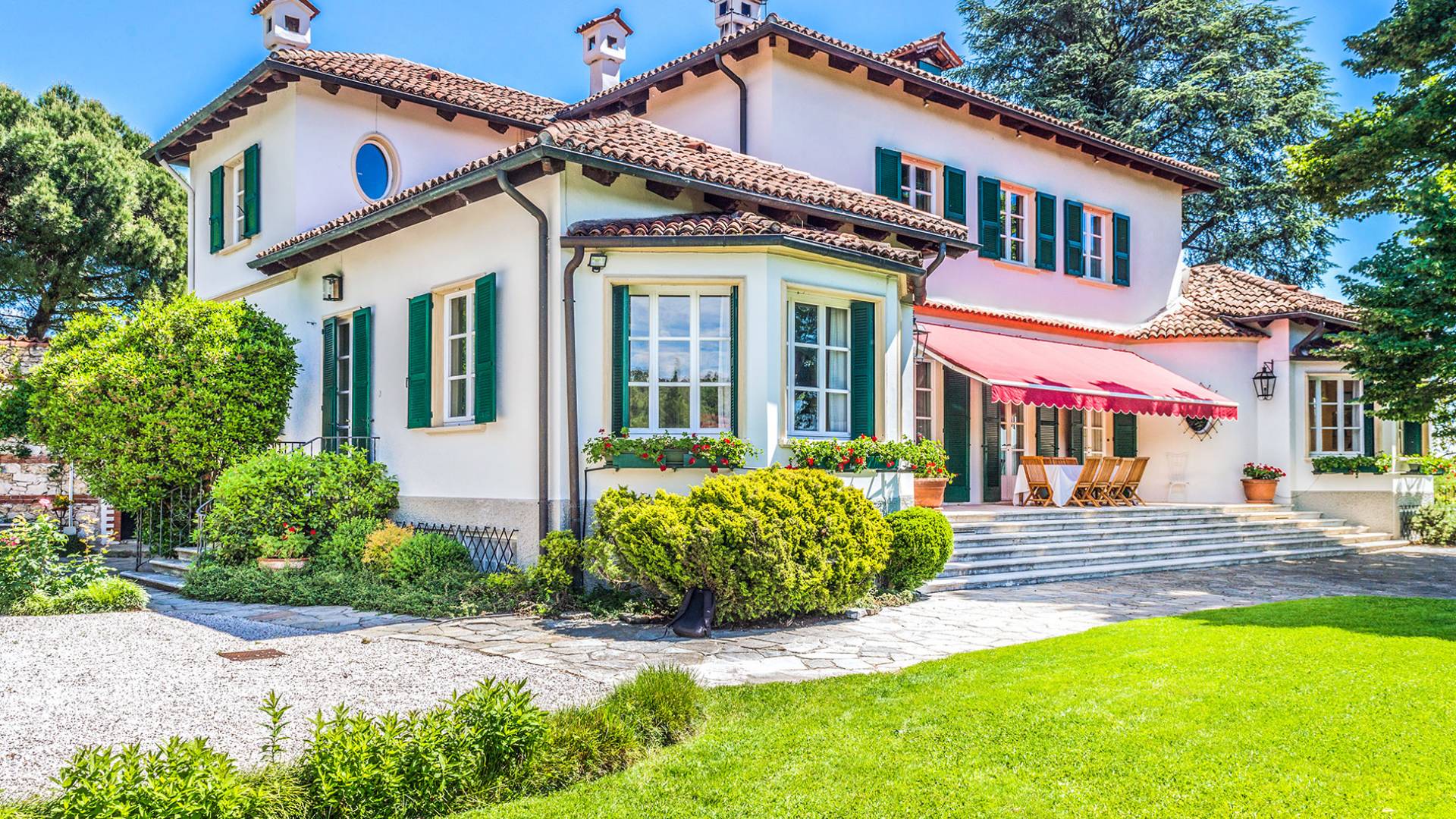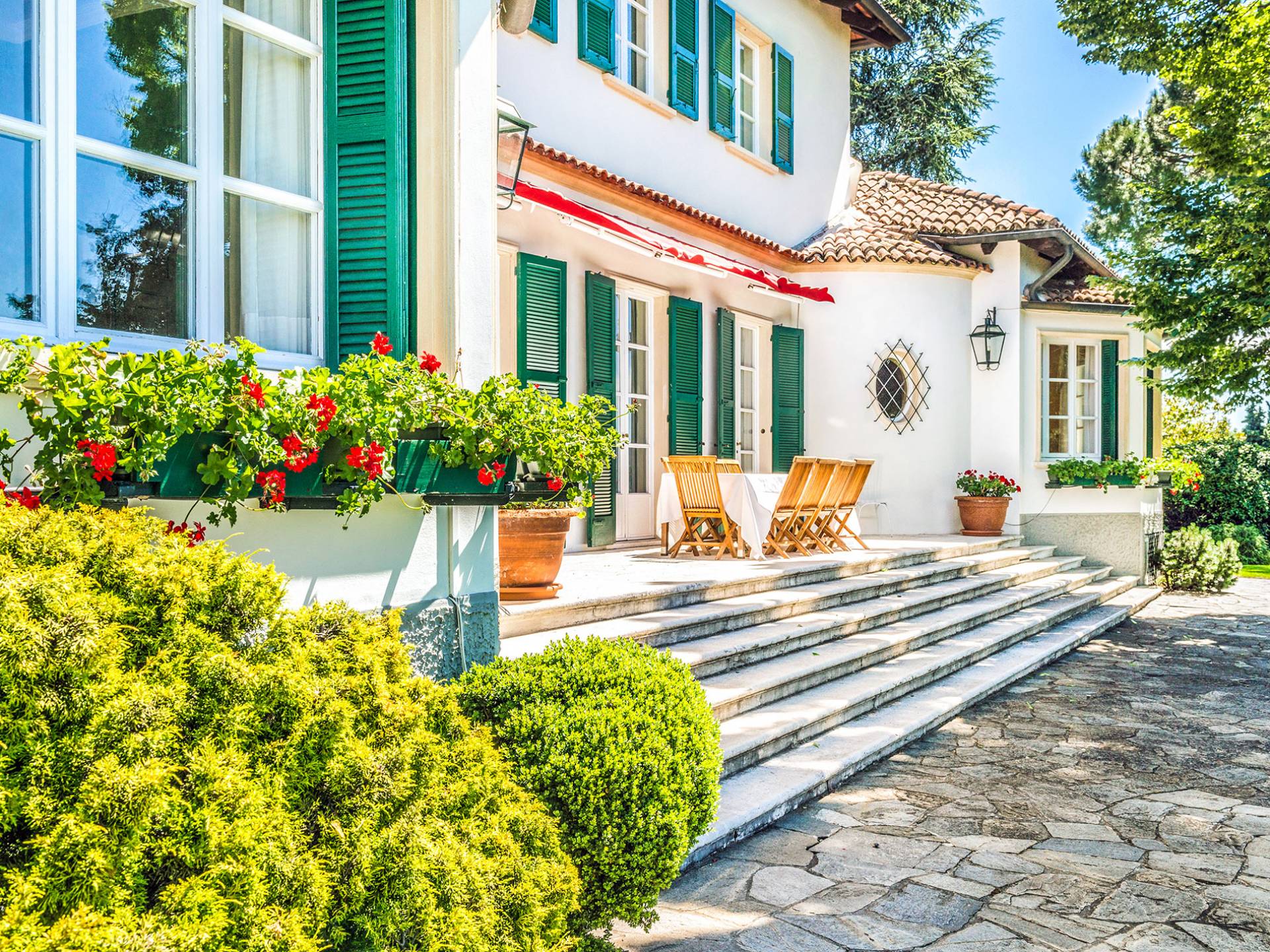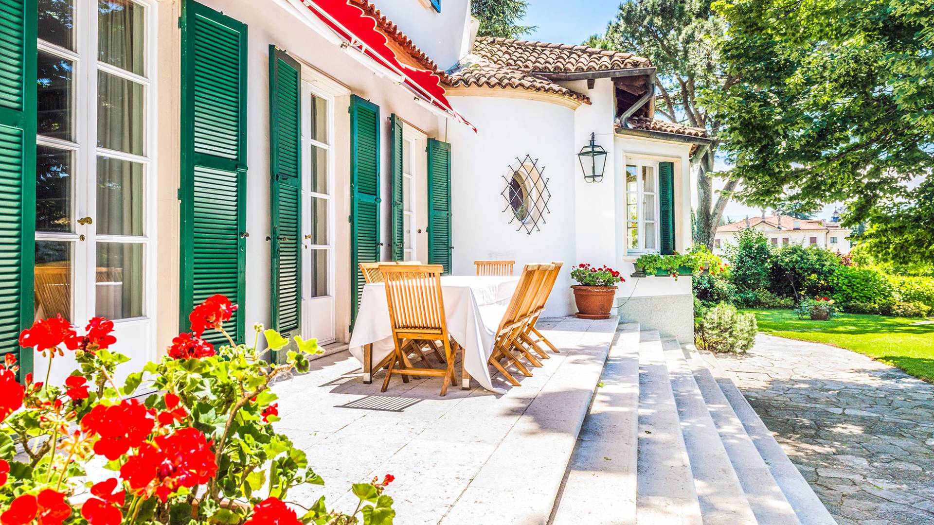 Si bien los gourmets y los entusiastas del Prosecco no creerán lo que ven al comparar la calidad de las comidas y las facturas recibidas, los viajeros que buscan historia y arquitectura no podrán encajar todo en un solo viaje y terminan reservando una segunda estadía: Veneto es , en una palabra, asombroso. Mientras que los interiores de la villa son elegantes, elegantes y se actualizan constantemente, el exterior es tranquilo y extraordinariamente panorámico: uno puede disfrutar del aura dorada de esa puesta de sol veneciana en medio de antiguos cipreses, cedros, pinos y arbustos de osmanto bellamente perfumados desde la hermosa terraza de la villa, frente a La Valeta. del Silenzio (Silence Little Valley). El agradable y amplio jardín presenta rosas, geranios y lirios. Una piscina con vista y un cuidado al aire libre completan el jardín.