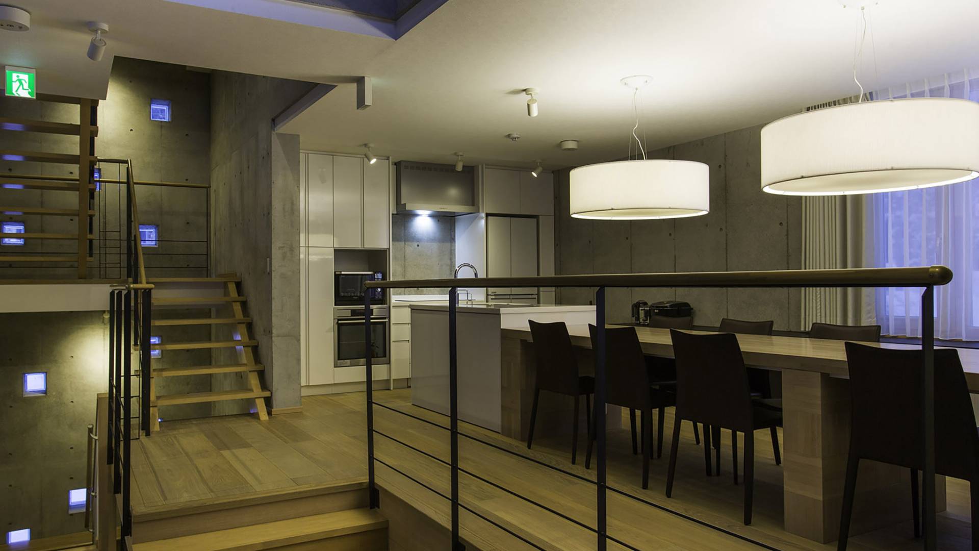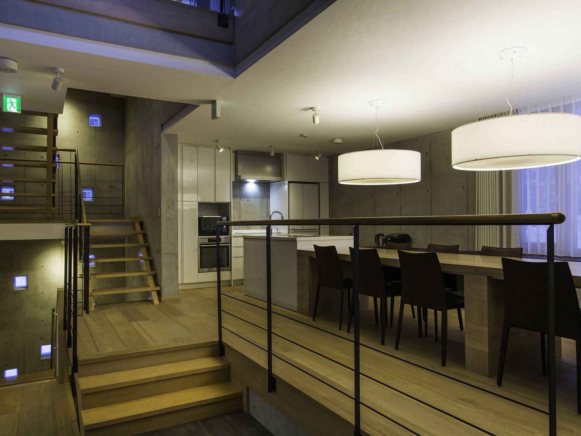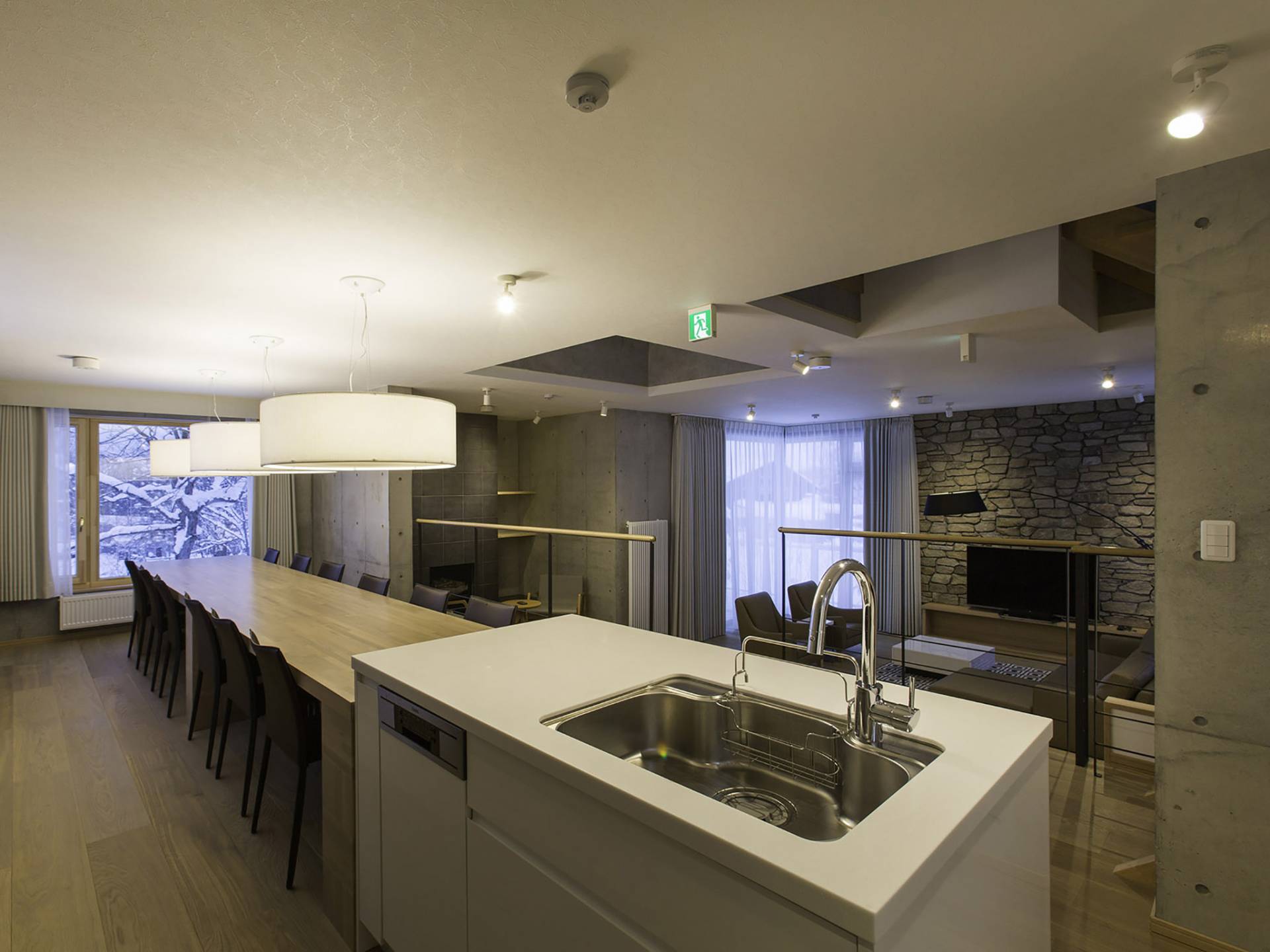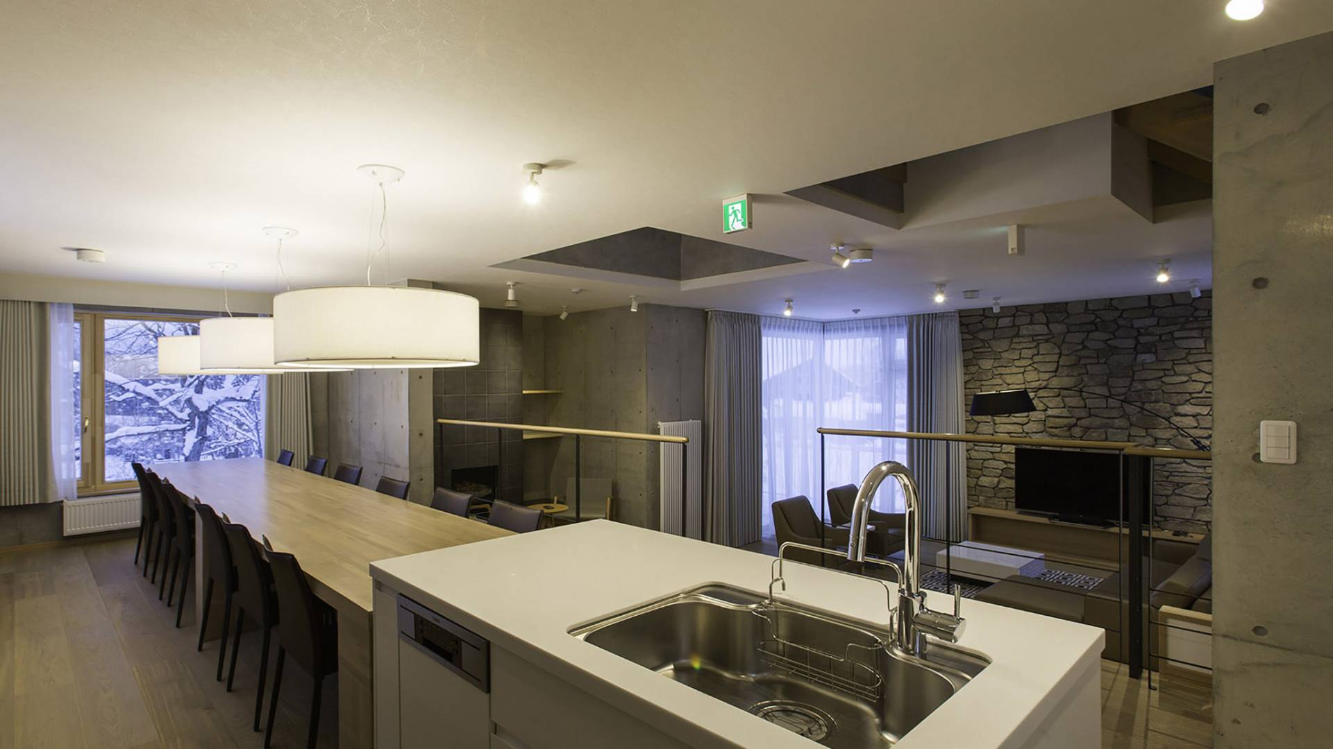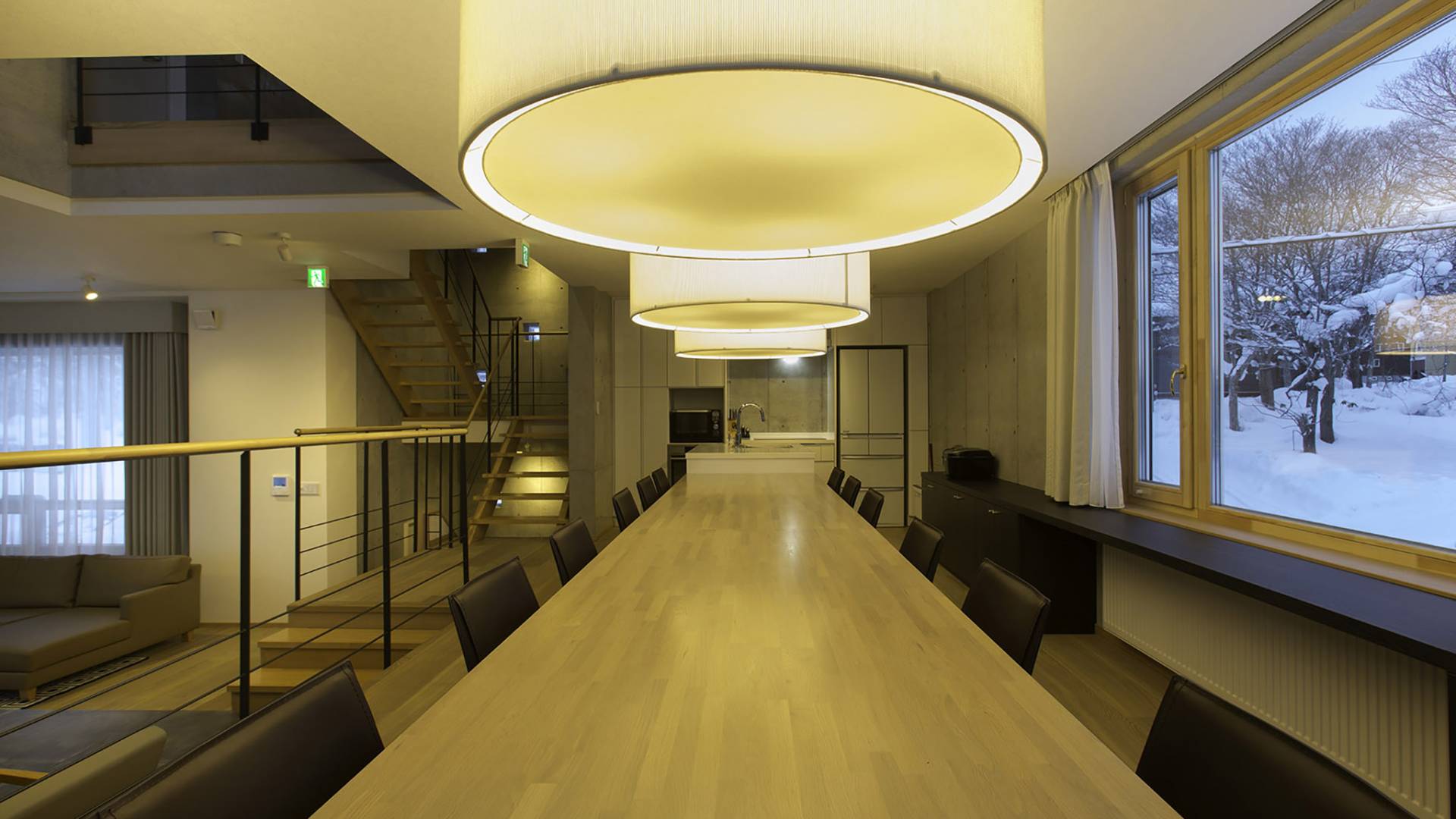 El interior se completó con un estándar extremadamente alto. El chalet de lujo Mizunara consta de tres plantas y está construido principalmente con madera y piedra. El diseño y la decoración modernos del interior son simplemente asombrosos. La sensación del aire predominante de la madera crea un ambiente acogedor que te calentará en el invierno. Deléitese con el lujo entre una de las vistas más buscadas de Japón y cree nuevos recuerdos en este entorno idílico. Aquí es donde la sencillez se encuentra con el lujo para complacer todos tus sentidos.