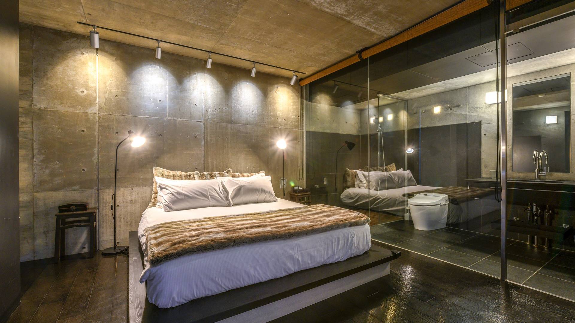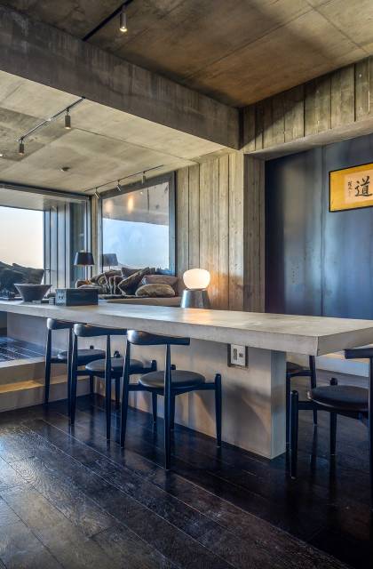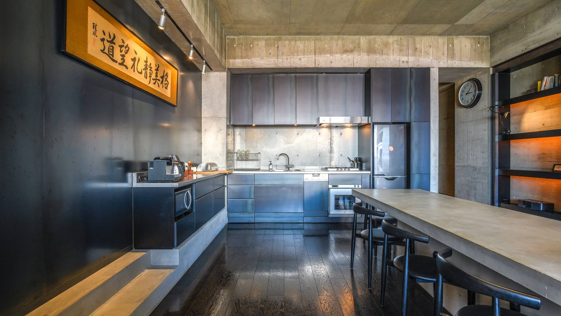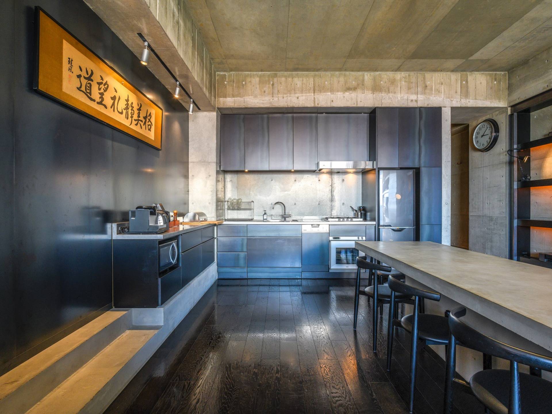 La estética industrial se atempera por completo con la calidez y el carácter que emanan de los materiales no artificiales y los lujosos acentos japoneses.