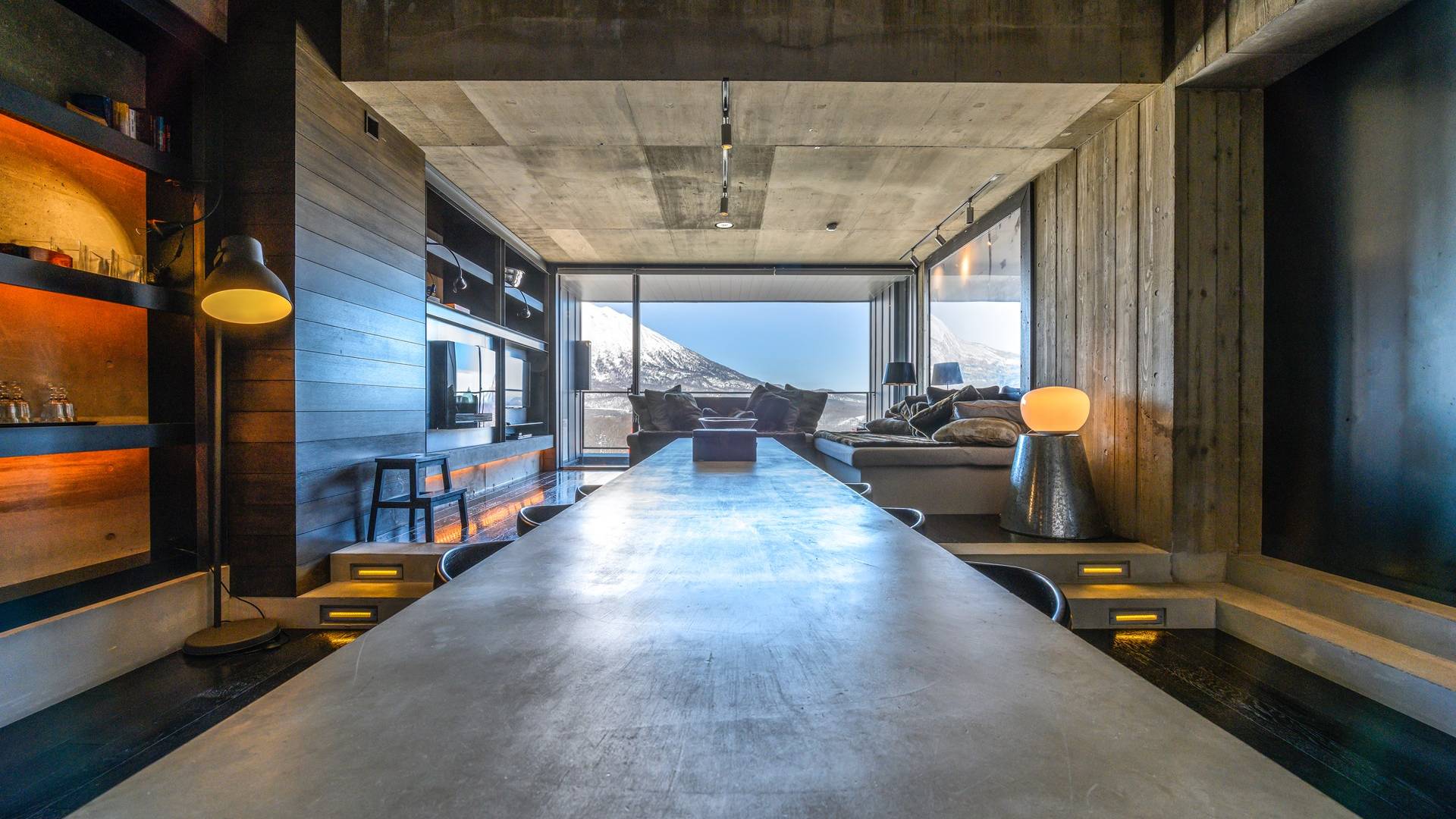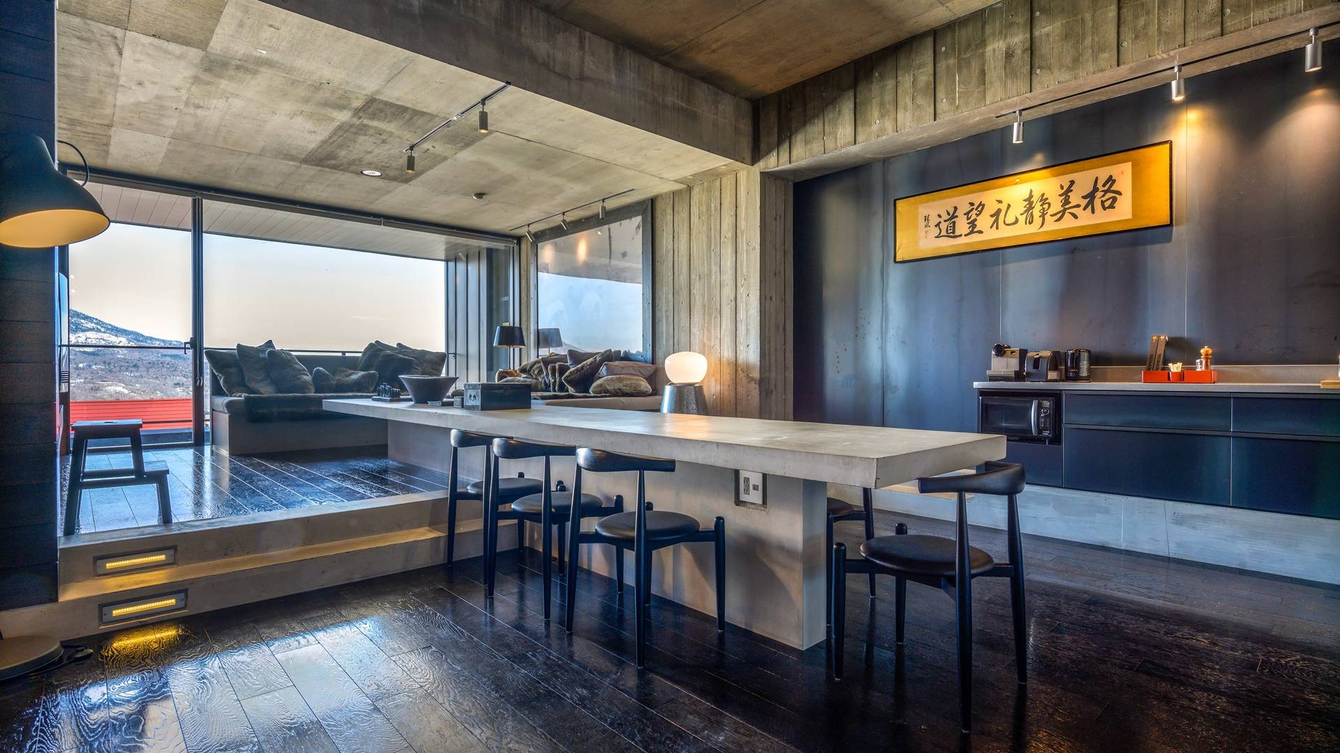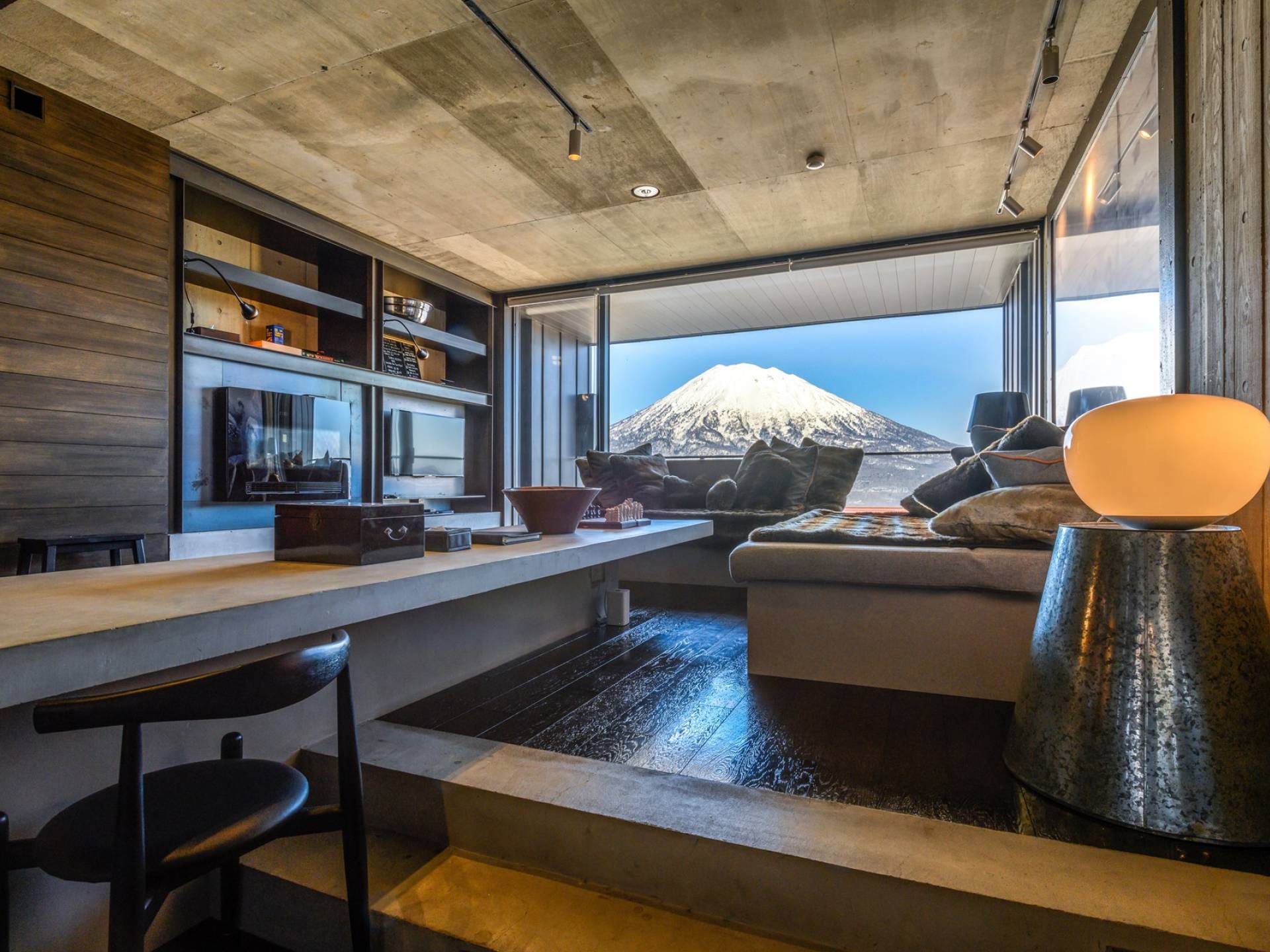 El apartamento Suiboku de 2 habitaciones Niseko cuenta con vistas enmarcadas de un monte Yotei cubierto de nieve. El loft está diseñado con un alto nivel que combina una estética industrial con características tradicionales japonesas. Durante su visita, experimentará las delicias sensuales de los baños de ofuro de granito, las alfombras de estera de paja mushiro, los futones de plumas, los pisos de madera de Nara y las pantallas de bambú.