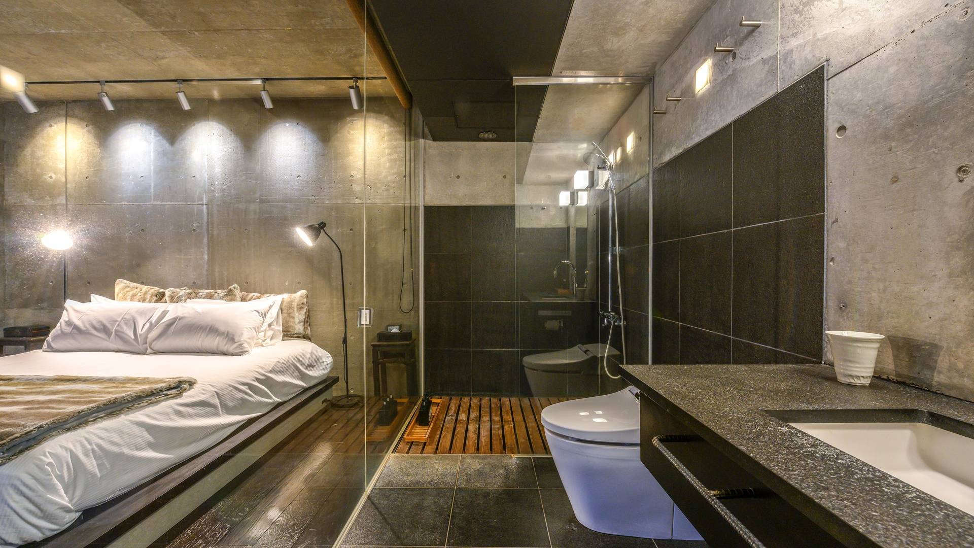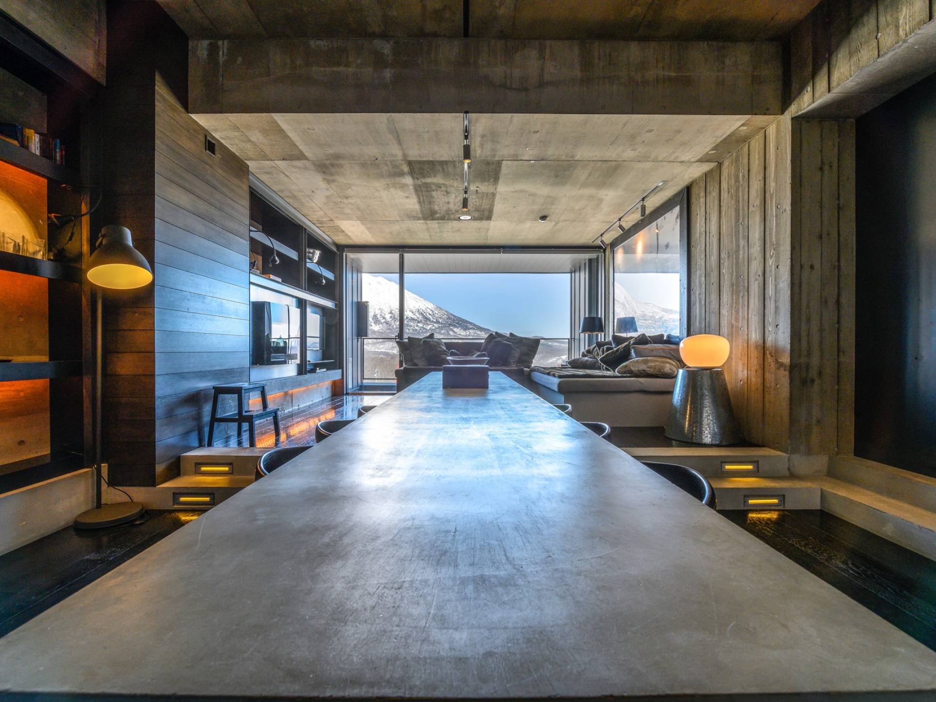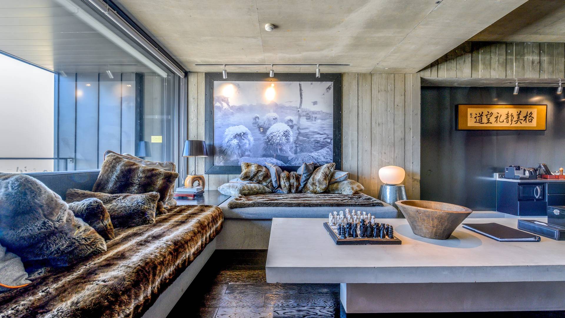 El apartamento Suiboku de 2 habitaciones Niseko cuenta con vistas enmarcadas de un monte Yotei cubierto de nieve. El loft está diseñado con un alto nivel que combina una estética industrial con características tradicionales japonesas. Durante su visita, experimentará las delicias sensuales de los baños de ofuro de granito, las alfombras de estera de paja mushiro, los futones de plumas, los pisos de madera de Nara y las pantallas de bambú.