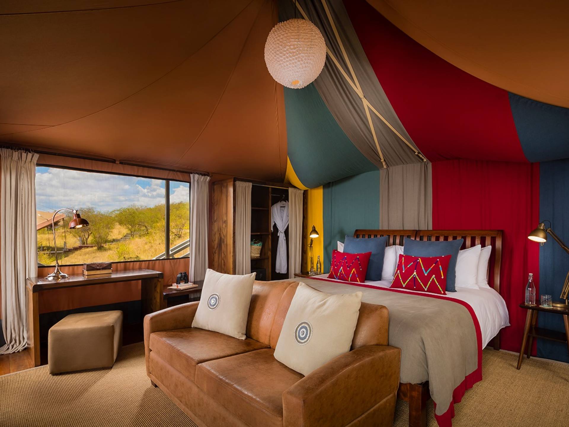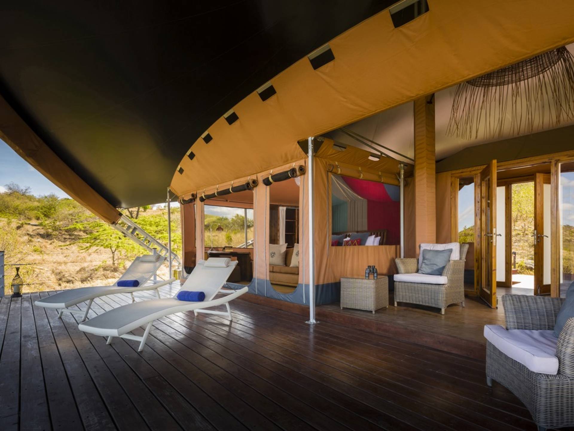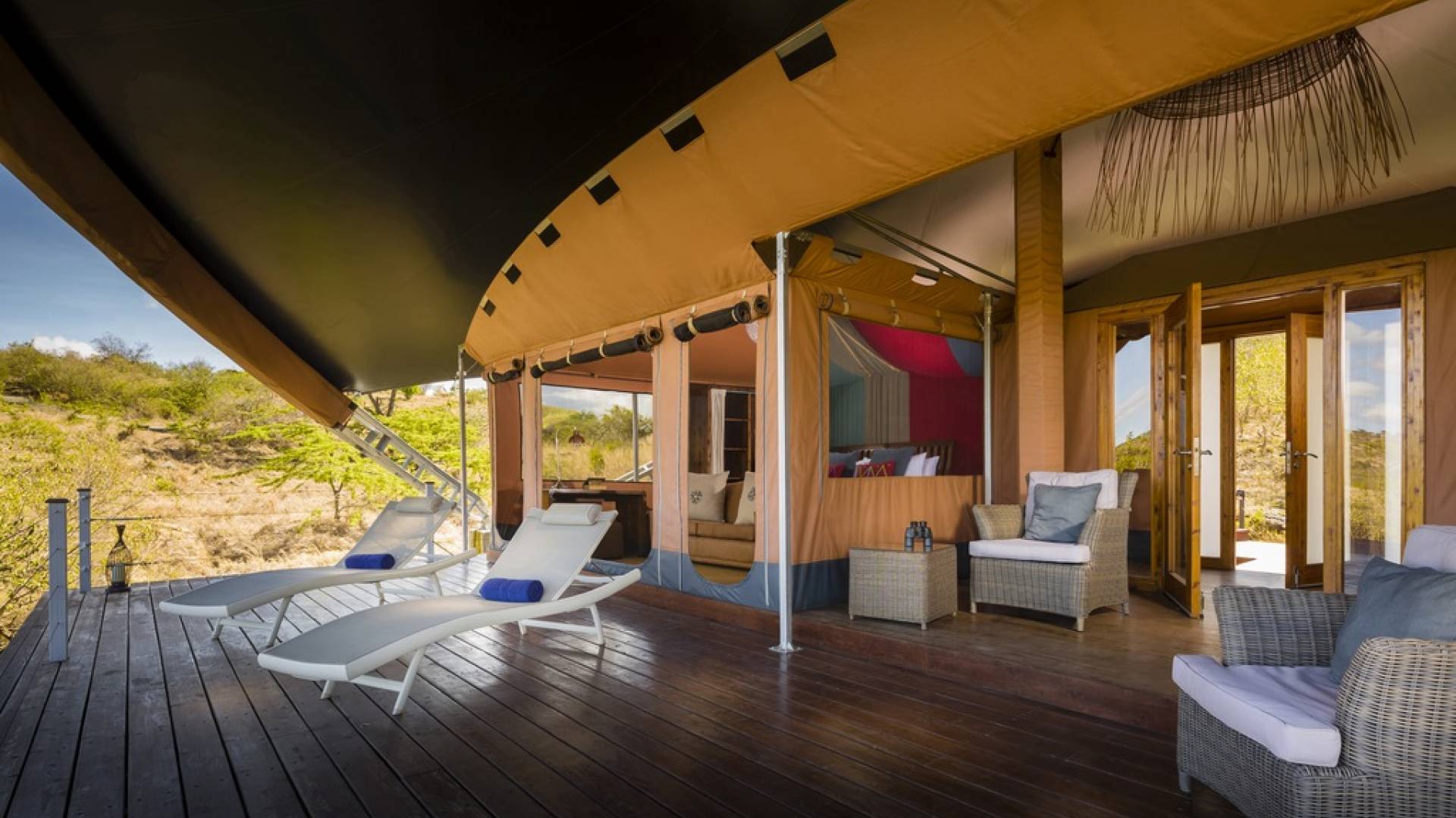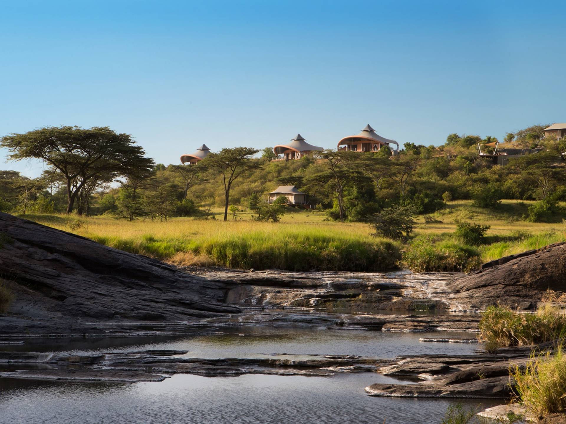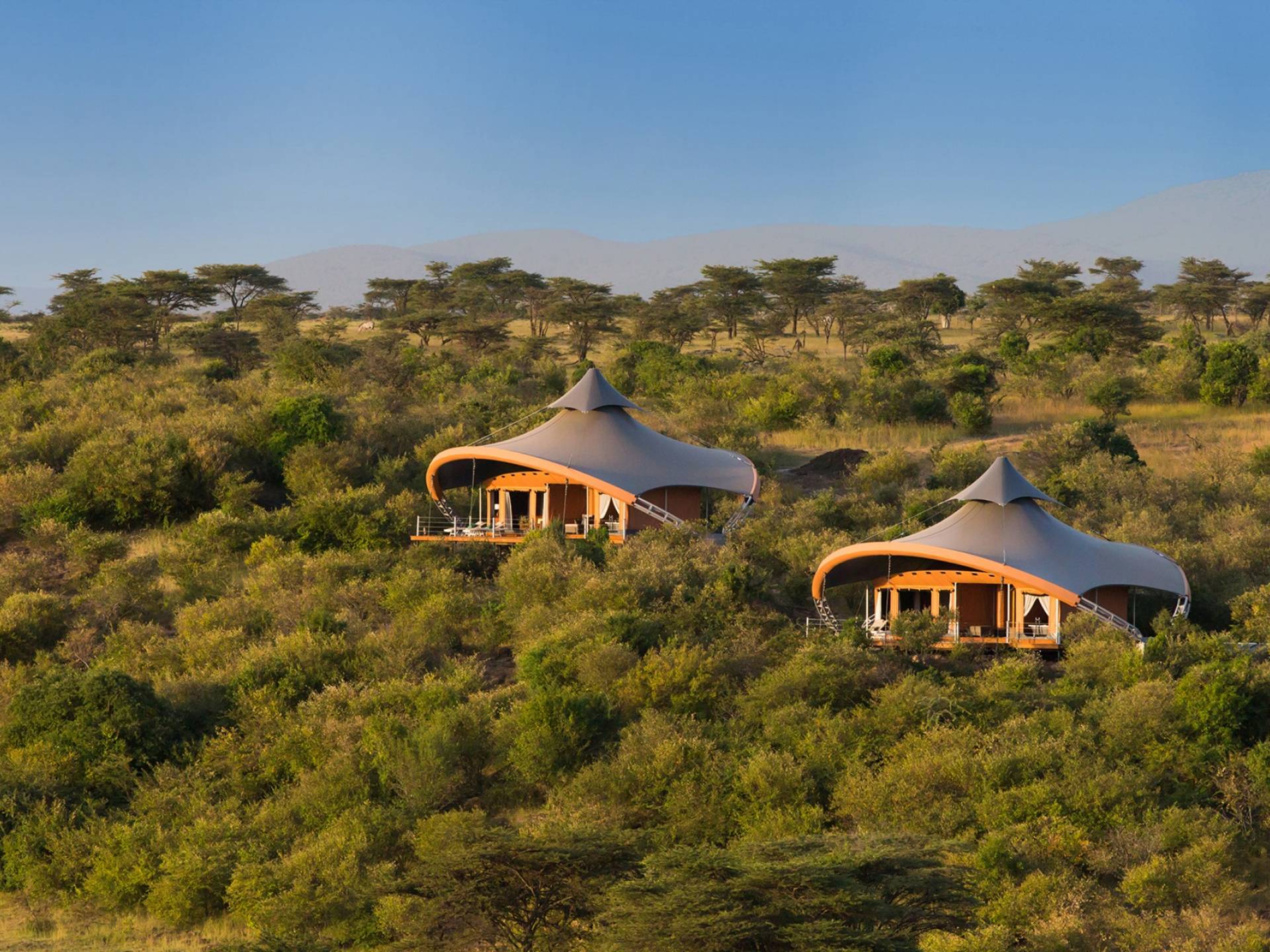 Durante nuestras unidades de juego dos veces al día, tendrá la oportunidad de ver leones, ñus, elefantes, jirafas y guepardos, ¡pero eso es solo para empezar! Además de disfrutar de la abundante vida silvestre en experiencias de safaris dos veces al día, hay una piscina infinita al aire libre de 12 metros, un spa y recorridos comunitarios especiales para conocer a los miembros de la tribu Maasai. En Mahali Mzuri, nuestras suites con tiendas de campaña súper elegantes son el refugio perfecto durante su estadía. Las carpas están encaramadas en una cresta con vista al valle con un diseño distintivo adaptado al clima y el terreno local. El campamento puede albergar hasta 24 invitados en cualquier momento, por lo que los huéspedes tienen garantizada la paz y la tranquilidad, así como un excelente servicio al cliente en todo momento.