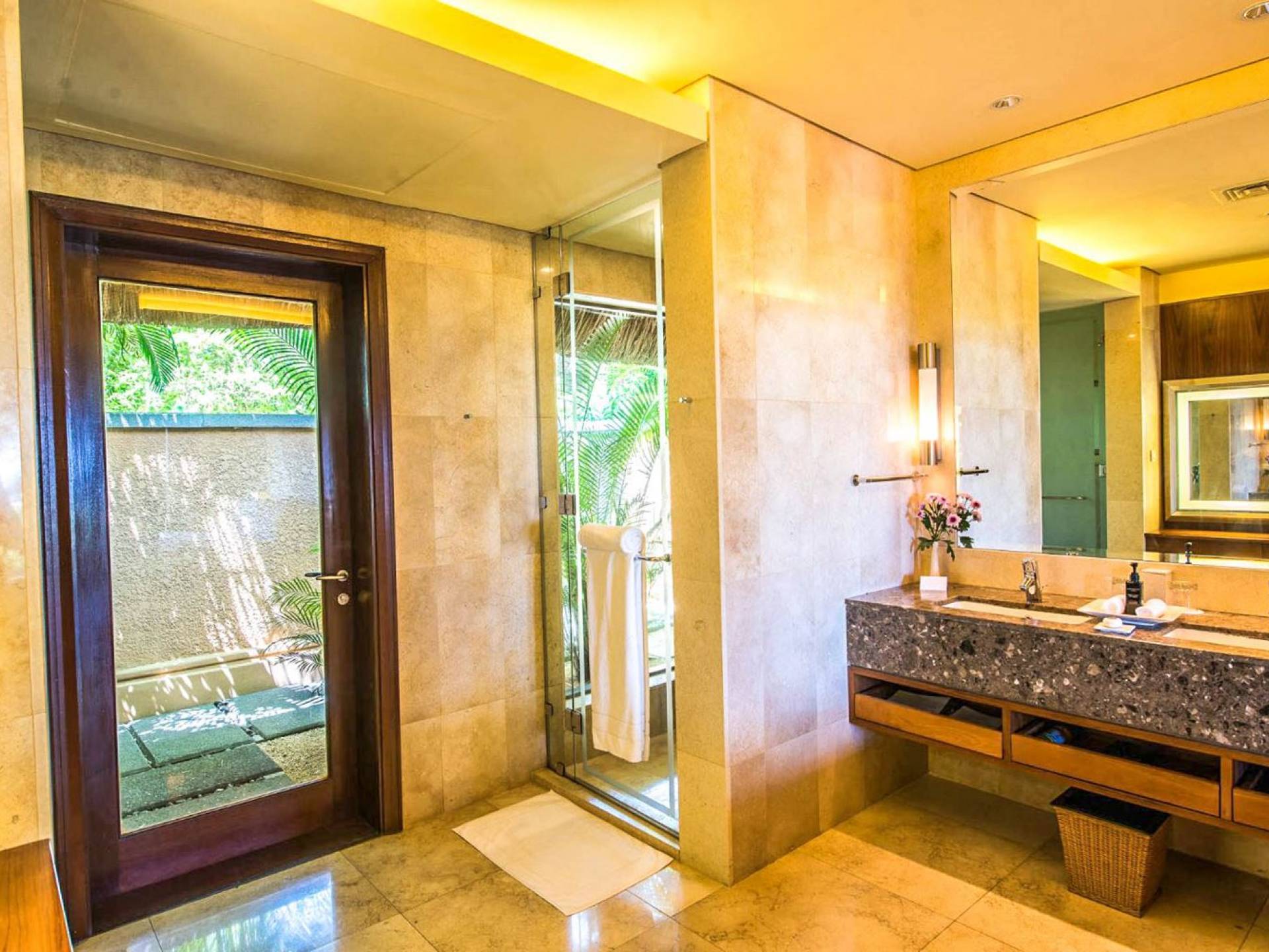 Ubicado en un área apartada con vista directa al mar y un jardín privado con tumbonas, donde la privacidad se combina con el lujo. La Villa tiene una piscina privada con control de temperatura (36M2), una cama con jacuzzi incorporada y un comedor privado. Todas las Villas cuentan con camas king-size y zona de estar con pantalla plana LCD de 55’’, minibar, cafetera Espresso, menaje para preparar té y café, caja fuerte. El baño cuenta con una bañera de gran tamaño, una ducha de efecto lluvia independiente, un vestidor, un tocador, un aseo privado con bidé, 2 lavabos y una ducha exterior independiente.