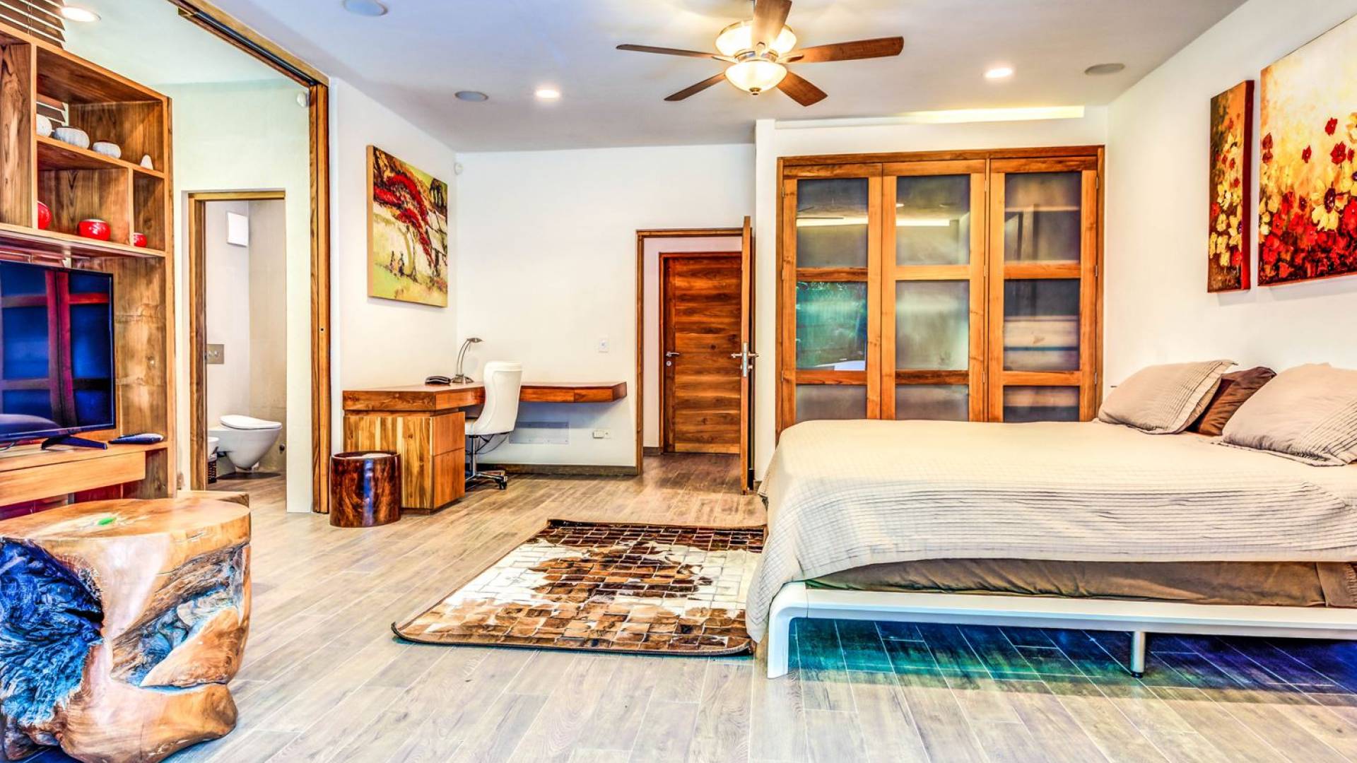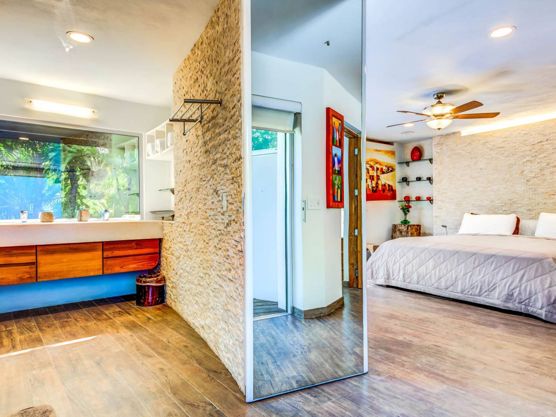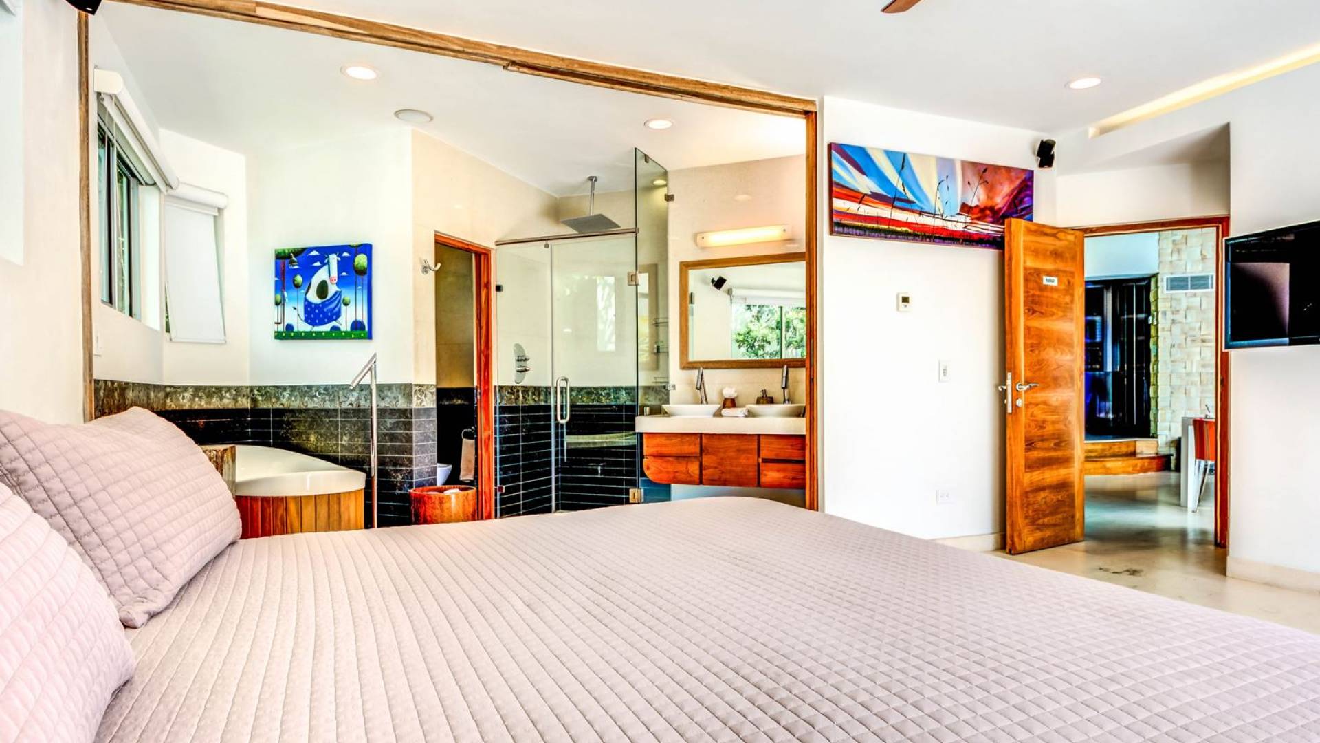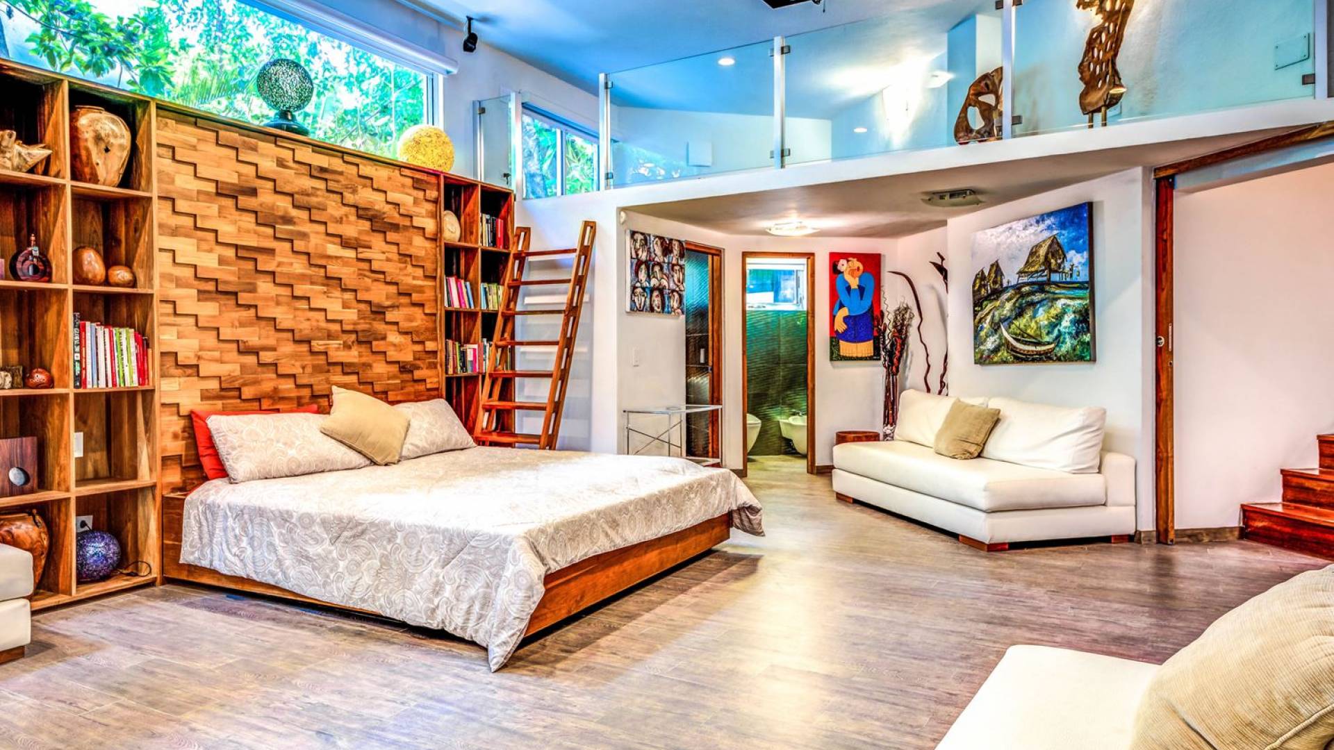Kite House ofrece 4 habitaciones únicas con baño privado con capacidad para 8 adultos y 2 adolescentes. La villa ofrece vistas verdaderamente especiales desde los dormitorios. La suite principal se abre hacia la terraza de la piscina, donde se puede vislumbrar el mar Caribe. El segundo dormitorio, también conocido como dormitorio maya, cuenta con vistas únicas de las antiguas ruinas mayas. El tercer dormitorio se considera el dormitorio de la jungla, ya que su terraza se abre a exuberantes jardines tropicales y jungla, y por lo tanto captura esa sensación de privacidad y aislamiento, ¡pero a solo minutos de la bulliciosa Playa del Carmen! El cuarto dormitorio se considera un loft con su cama king-size extraíble, y el entrepiso superior también tiene espacio para alojar a otros 2 huéspedes con una segunda cama king-size.