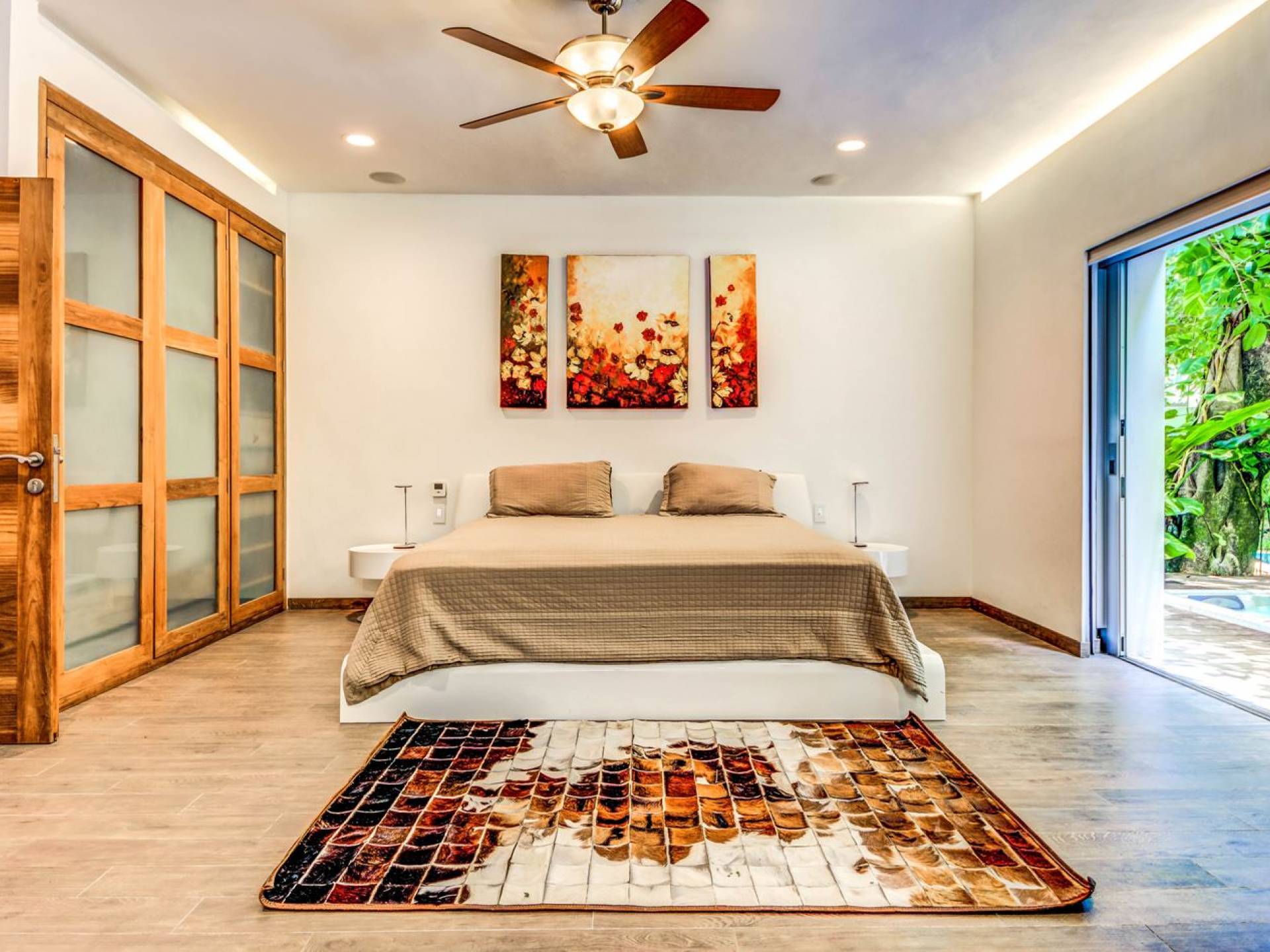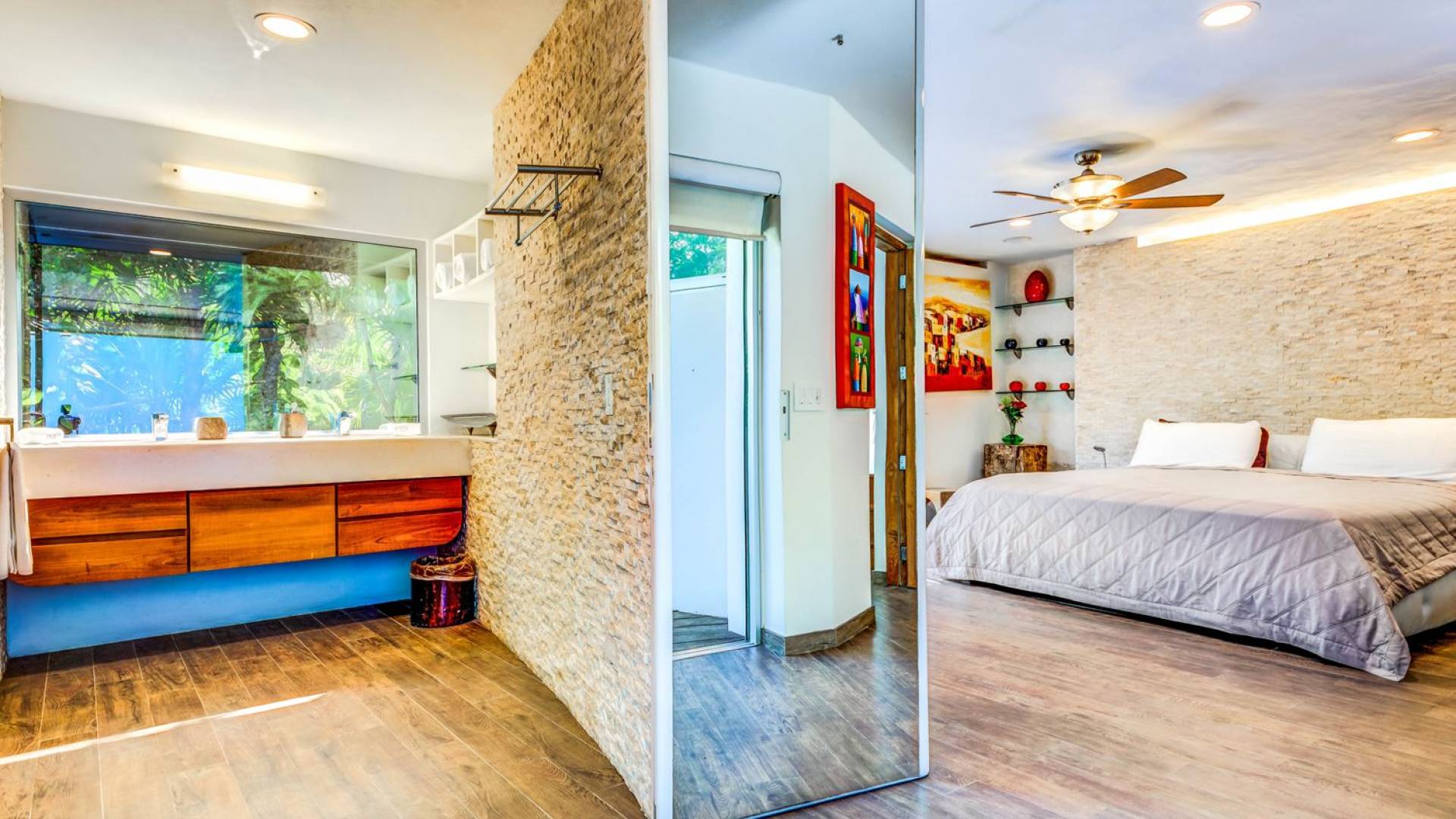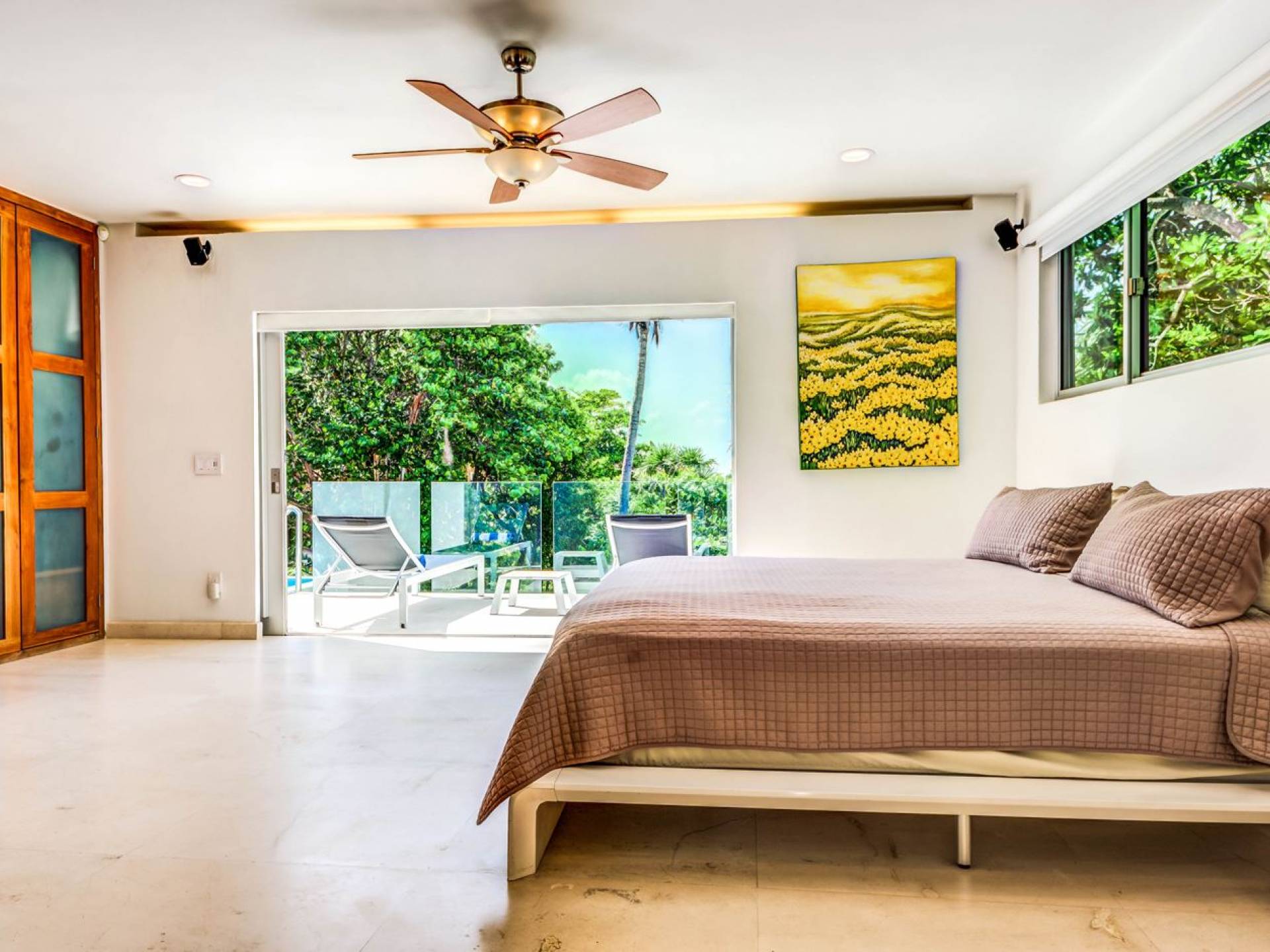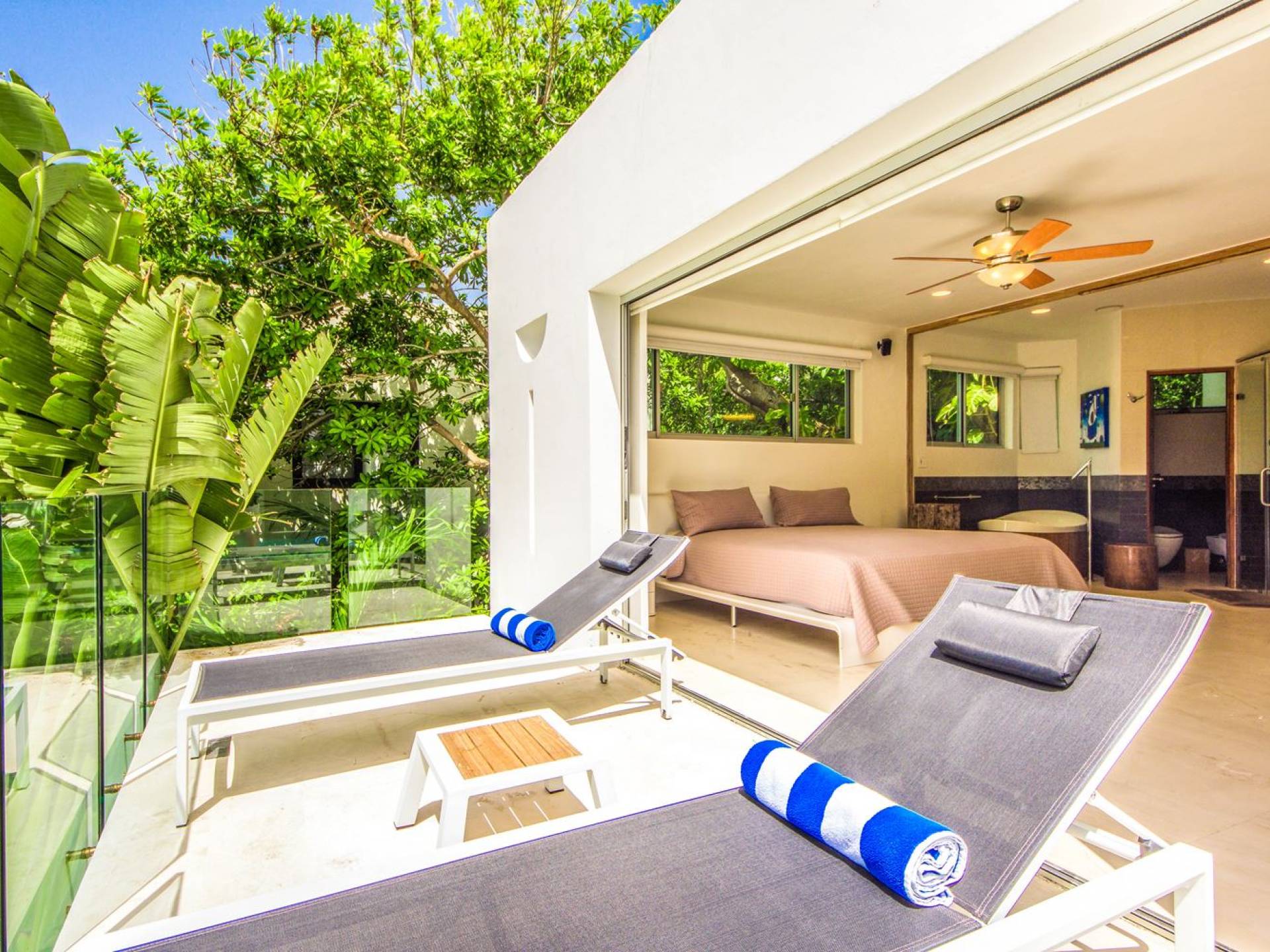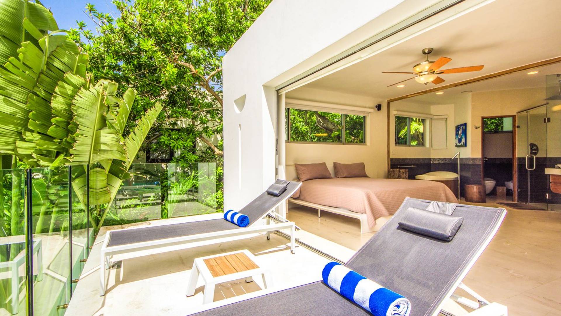Kite House ofrece 4 habitaciones únicas con baño privado con capacidad para 8 adultos y 2 adolescentes. La villa ofrece vistas verdaderamente especiales desde los dormitorios. La suite principal se abre hacia la terraza de la piscina, donde se puede vislumbrar el mar Caribe. El segundo dormitorio, también conocido como dormitorio maya, cuenta con vistas únicas de las antiguas ruinas mayas. El tercer dormitorio se considera el dormitorio de la jungla, ya que su terraza se abre a exuberantes jardines tropicales y jungla, y por lo tanto captura esa sensación de privacidad y aislamiento, ¡pero a solo minutos de la bulliciosa Playa del Carmen! El cuarto dormitorio se considera un loft con su cama king-size extraíble, y el entrepiso superior también tiene espacio para alojar a otros 2 huéspedes con una segunda cama king-size.