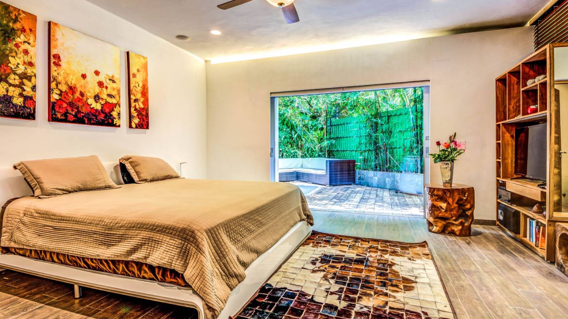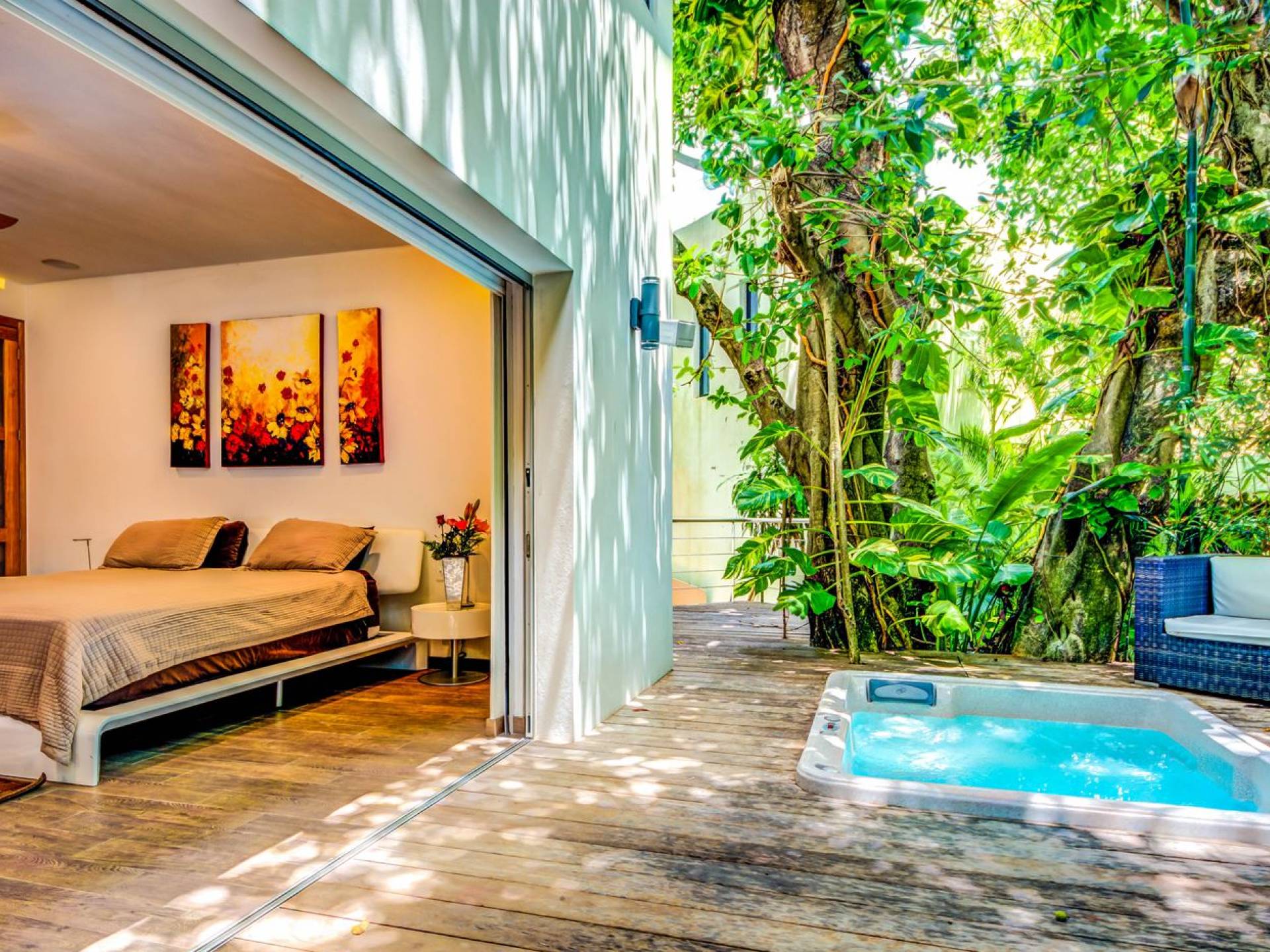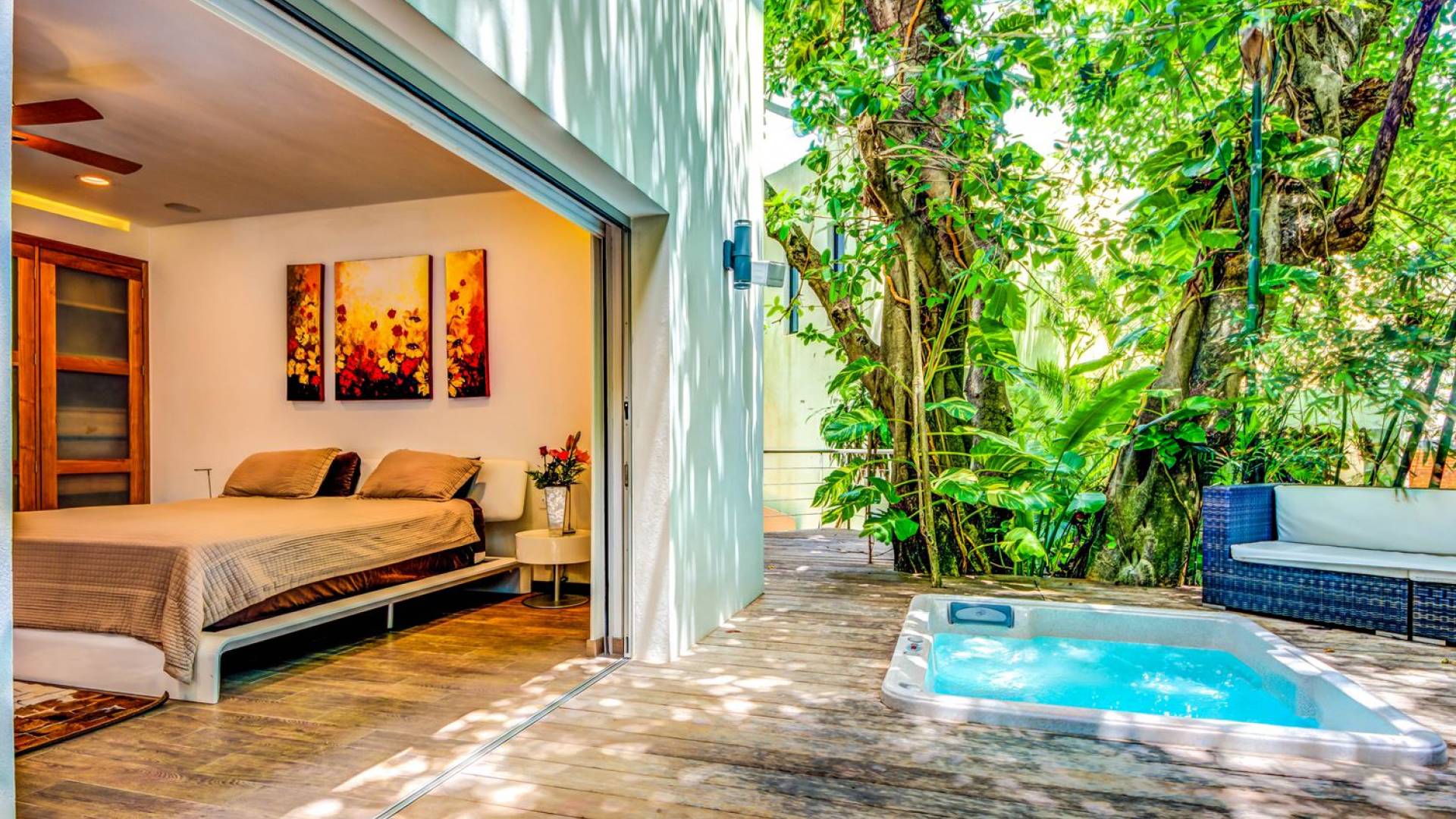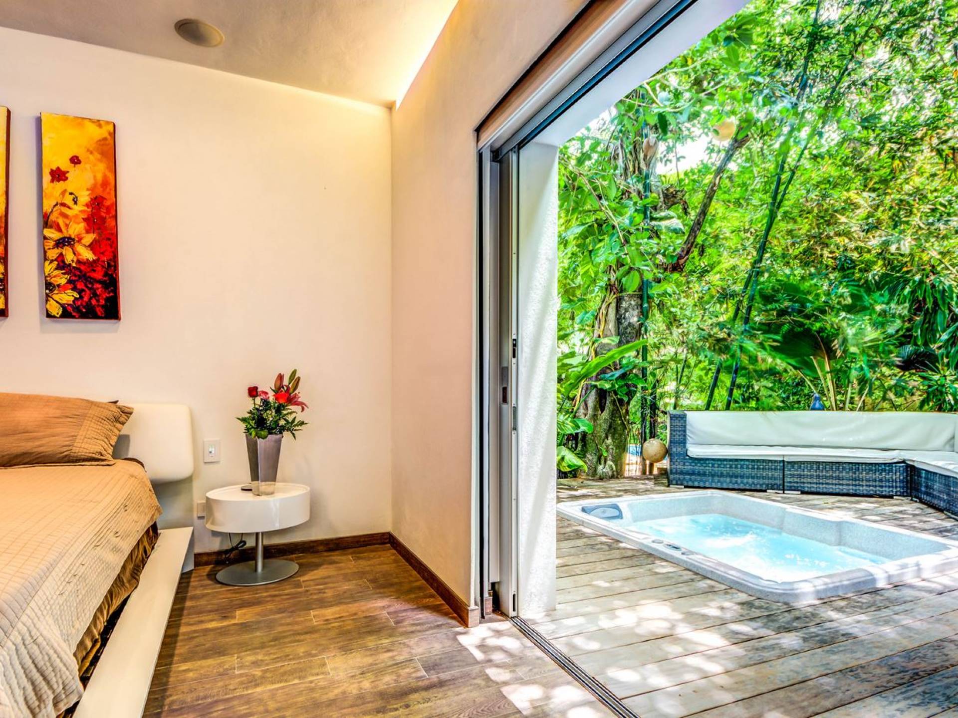 Kite House ofrece 4 habitaciones únicas con baño privado con capacidad para 8 adultos y 2 adolescentes. La villa ofrece vistas verdaderamente especiales desde los dormitorios. La suite principal se abre hacia la terraza de la piscina, donde se puede vislumbrar el mar Caribe. El segundo dormitorio, también conocido como dormitorio maya, cuenta con vistas únicas de las antiguas ruinas mayas. El tercer dormitorio se considera el dormitorio de la jungla, ya que su terraza se abre a exuberantes jardines tropicales y jungla, y por lo tanto captura esa sensación de privacidad y aislamiento, ¡pero a solo minutos de la bulliciosa Playa del Carmen! El cuarto dormitorio se considera un loft con su cama king-size extraíble, y el entrepiso superior también tiene espacio para alojar a otros 2 huéspedes con una segunda cama king-size.