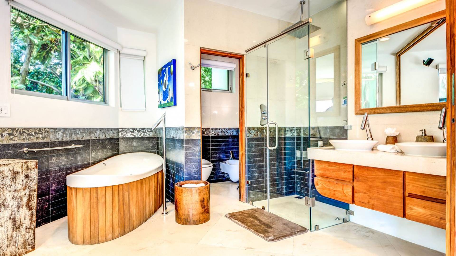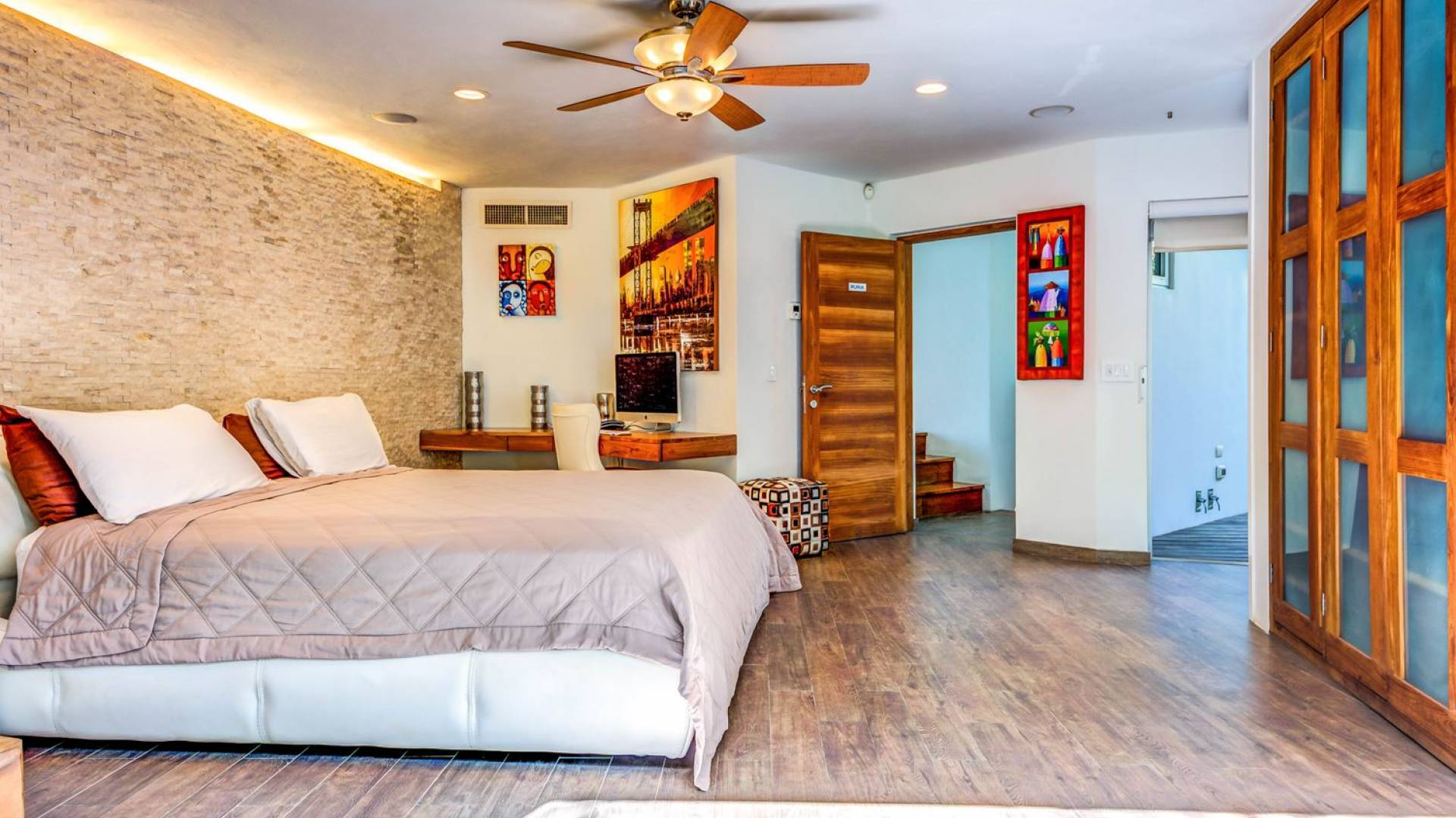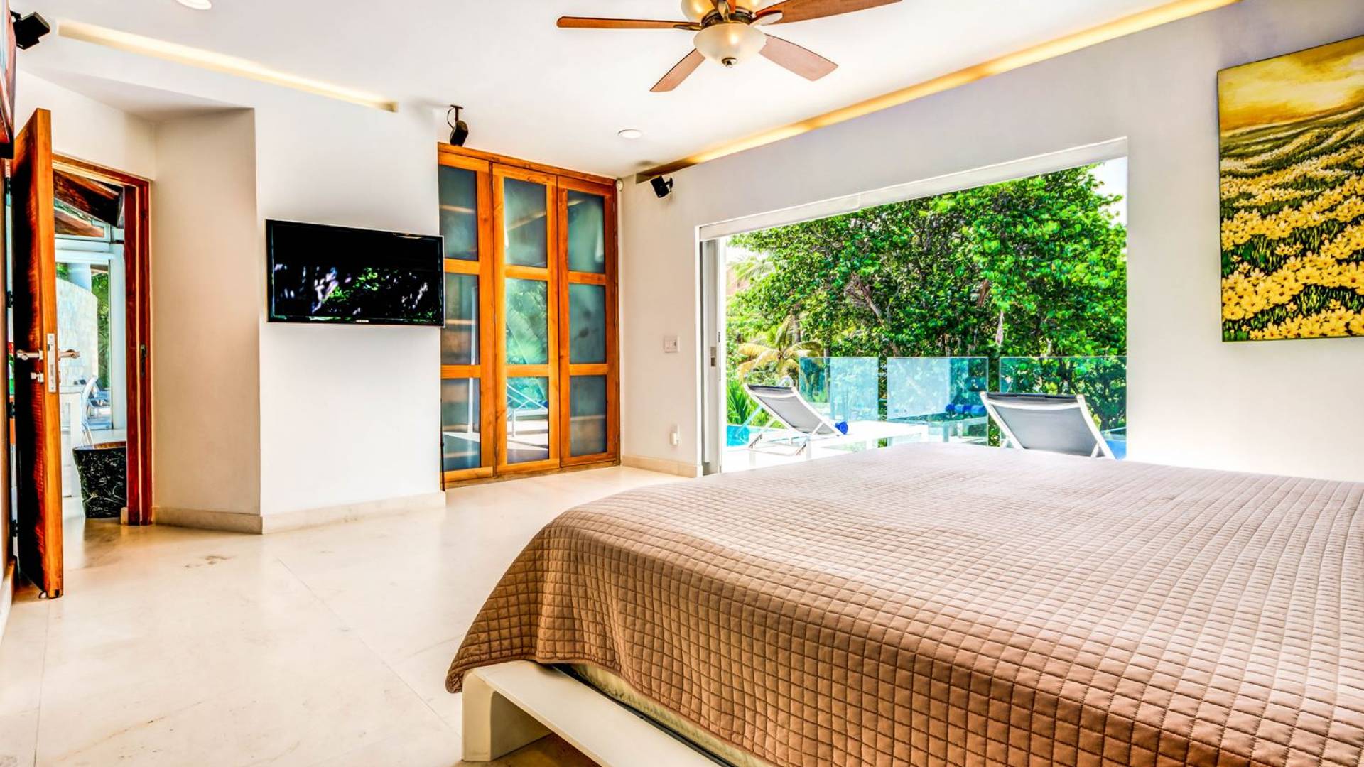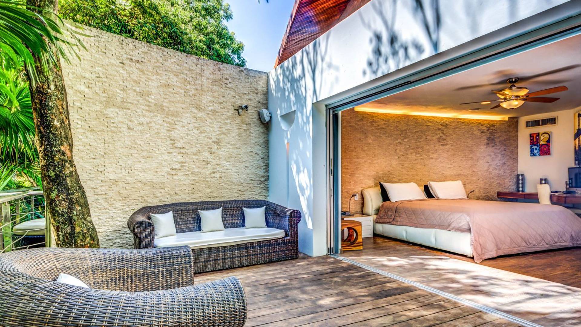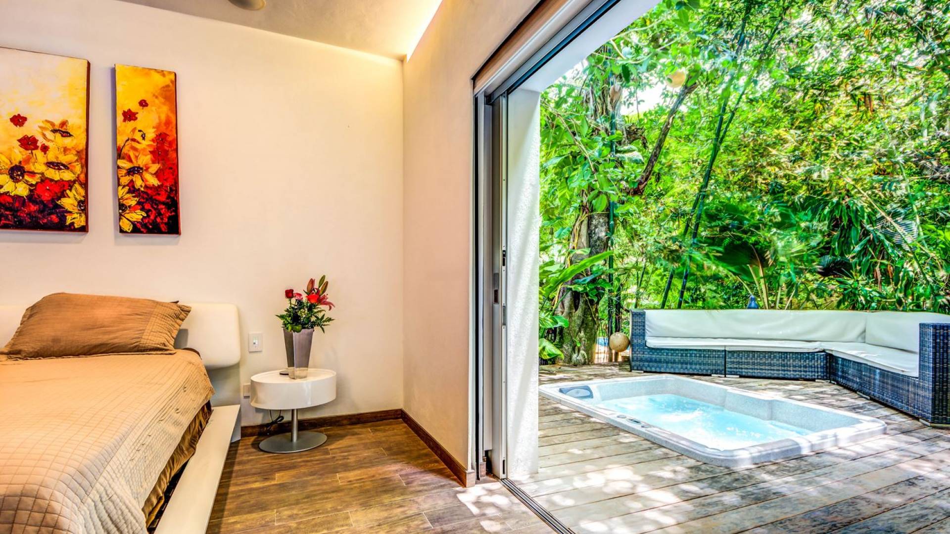 Kite House ofrece 4 habitaciones únicas con baño privado con capacidad para 8 adultos y 2 adolescentes. La villa ofrece vistas verdaderamente especiales desde los dormitorios. La suite principal se abre hacia la terraza de la piscina, donde se puede vislumbrar el mar Caribe. El segundo dormitorio, también conocido como dormitorio maya, cuenta con vistas únicas de las antiguas ruinas mayas. El tercer dormitorio se considera el dormitorio de la jungla, ya que su terraza se abre a exuberantes jardines tropicales y jungla, y por lo tanto captura esa sensación de privacidad y aislamiento, ¡pero a solo minutos de la bulliciosa Playa del Carmen! El cuarto dormitorio se considera un loft con su cama king-size extraíble, y el entrepiso superior también tiene espacio para alojar a otros 2 huéspedes con una segunda cama king-size.