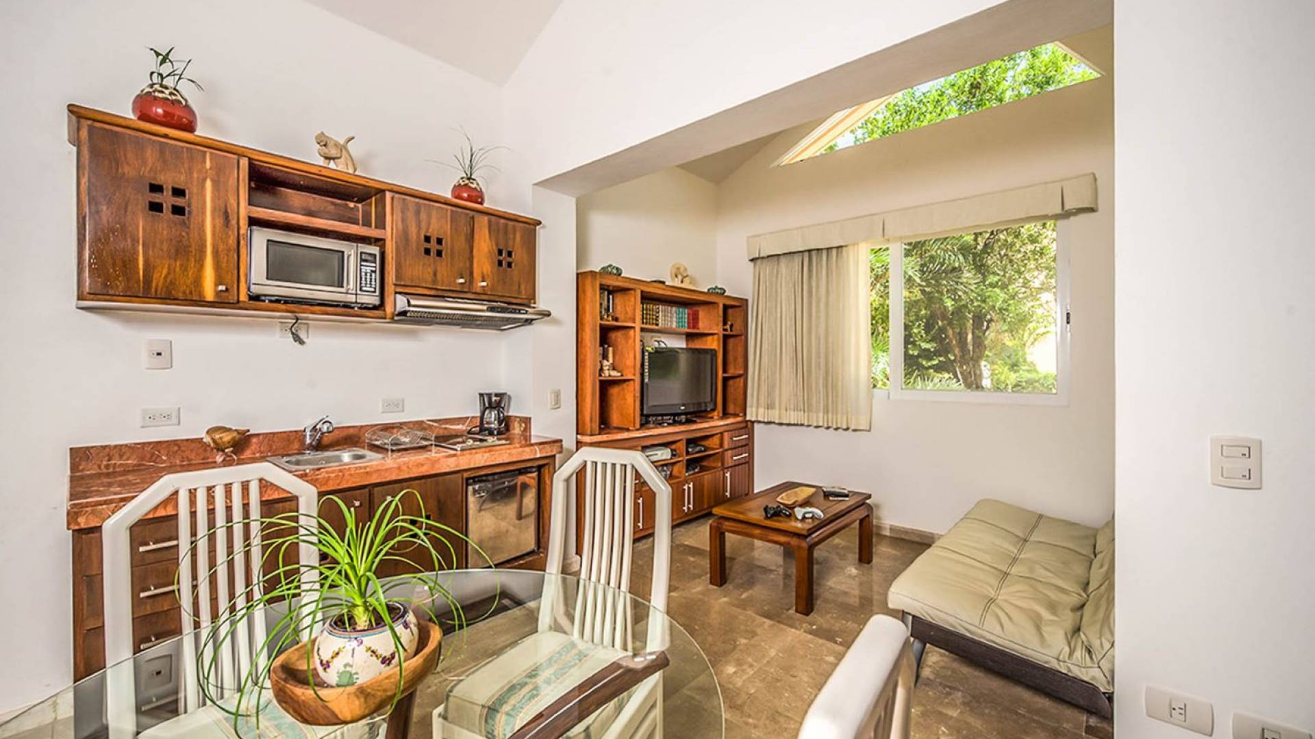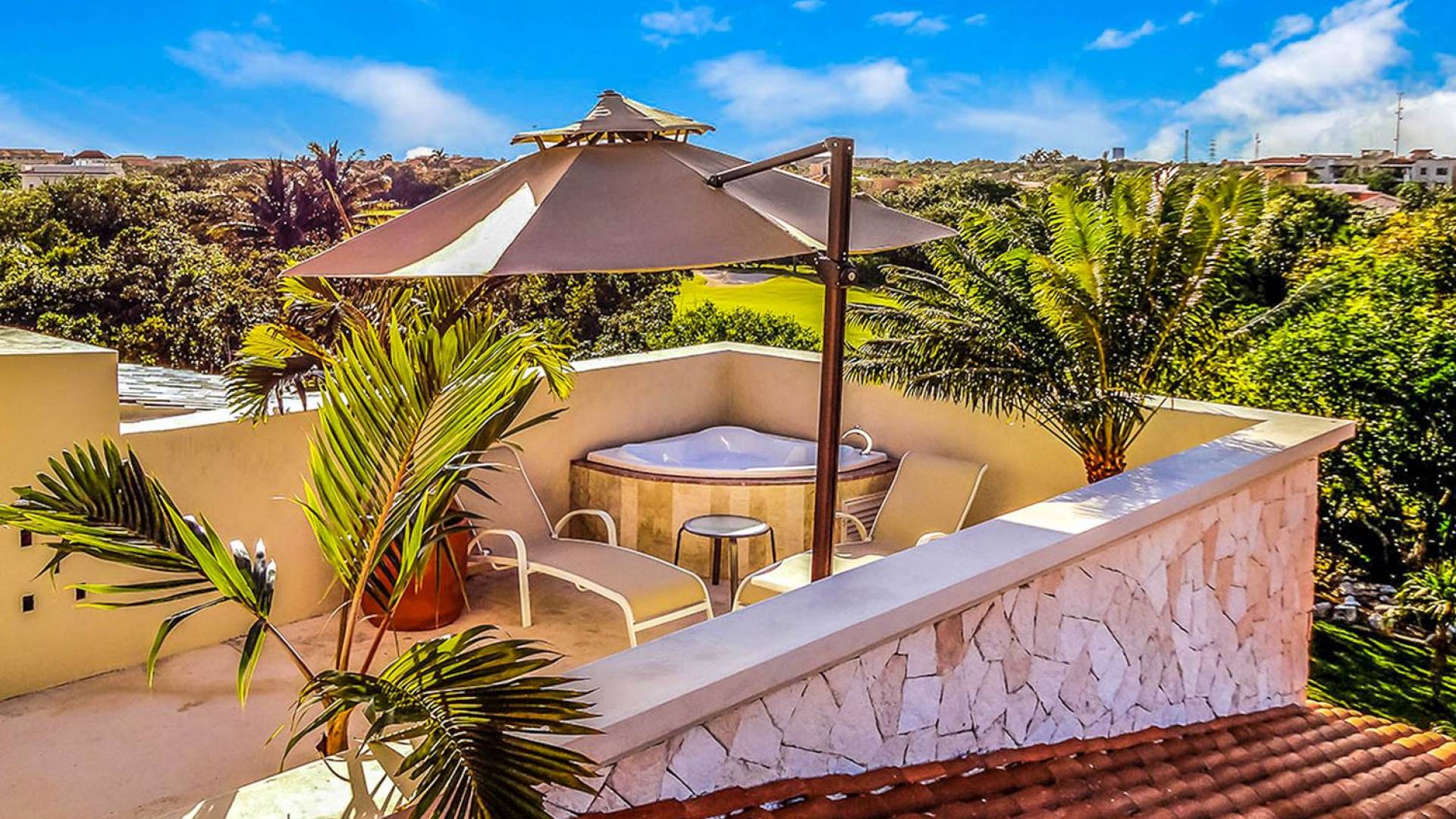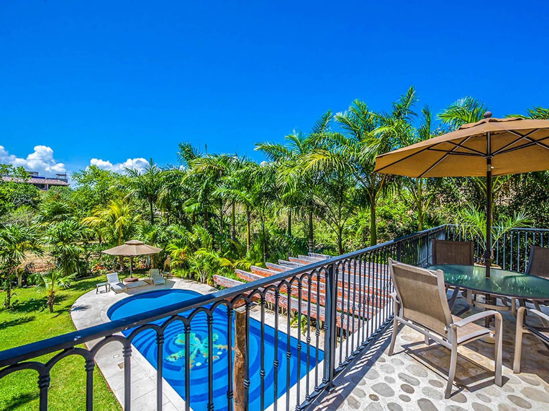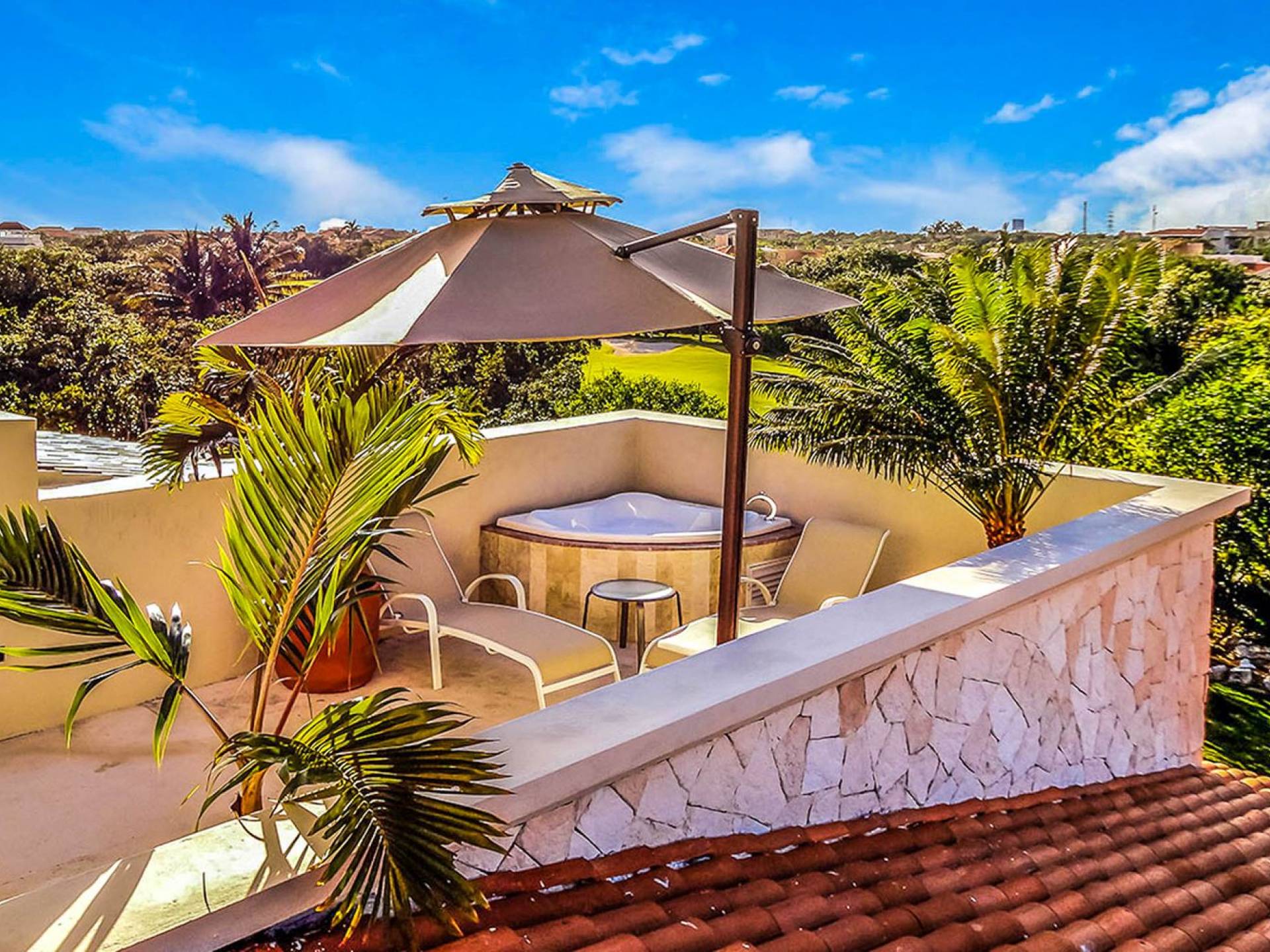 Disfrute de las vistas del jardín y la piscina desde la terraza de la azotea, todo desde sus cómodas sillas de descanso. Todos los balcones de 3 habitaciones ofrecen una vista de la piscina, el jardín, la exuberante vegetación del vecindario y el campo de golf. No pierda la oportunidad de disfrutar de veladas románticas en el salón ubicado en la terraza superior, donde podrá utilizar el gran jacuzzi y cómodos sillones. Hay una barbacoa exterior y muebles de jardín donde usted y su familia también pueden disfrutar de la piscina; es adecuado para niños porque es poco profundo.