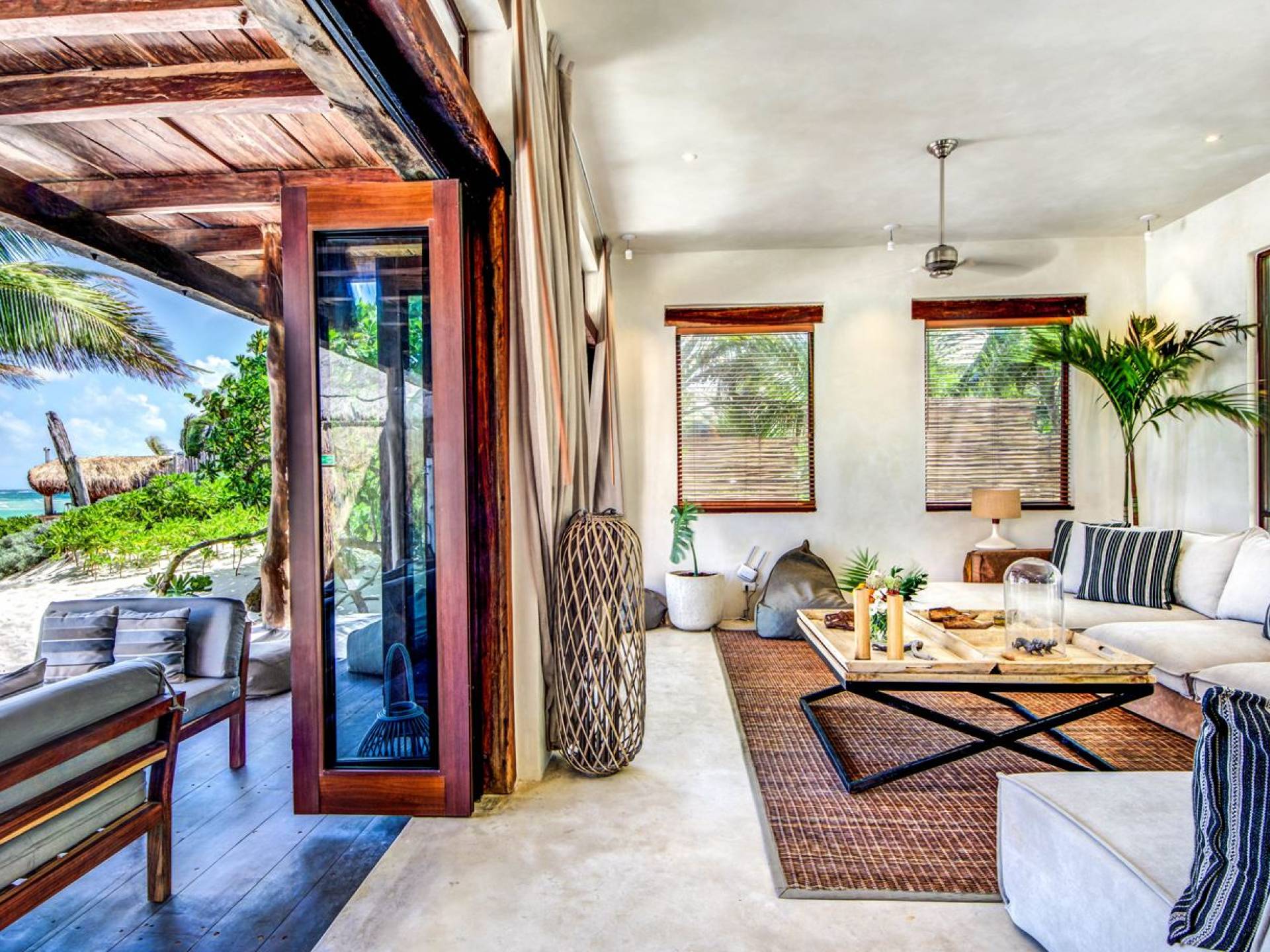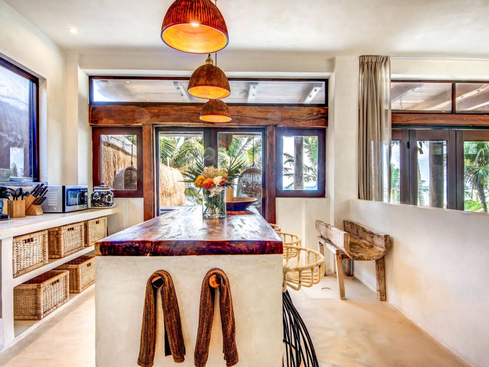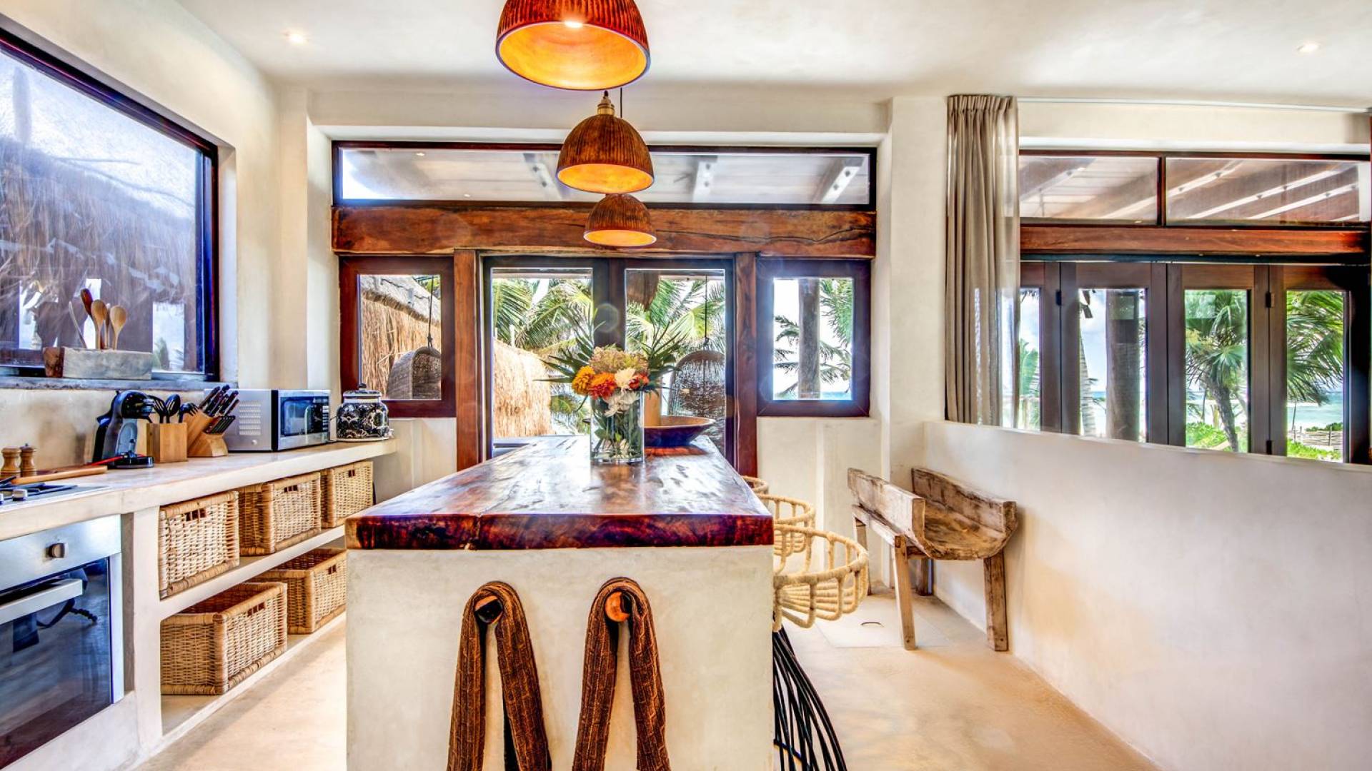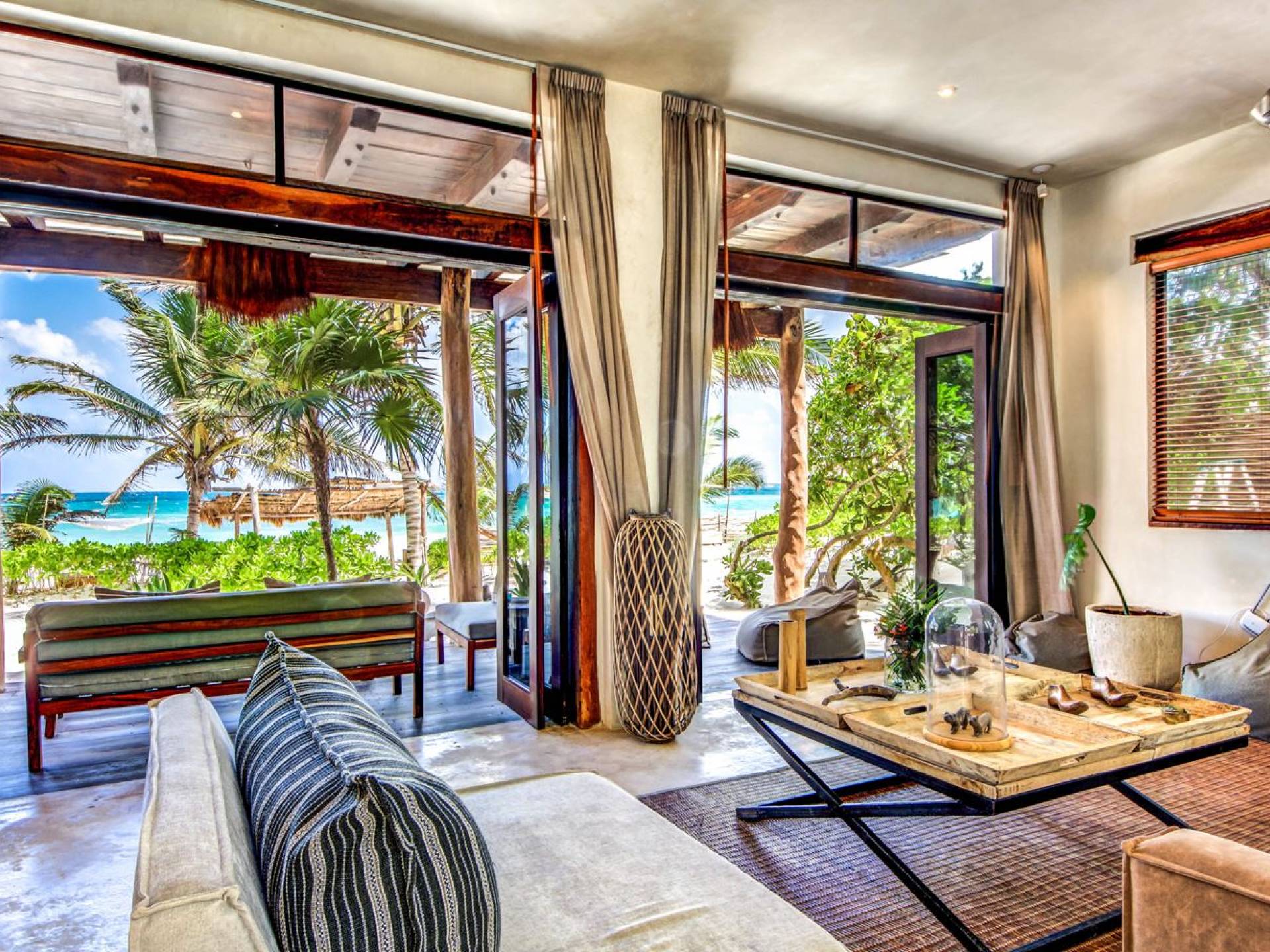 Casa Chukum Tulum es una renta vacacional de lujo con 4 recámaras y alberca privada. Una casa única frente al mar en el corazón de la playa de Tulum. La villa más exclusiva de Aldea Canzul tiene impresionantes vistas al mar y la combinación perfecta de construcción mexicana con cálidos detalles en madera y técnicas de construcción tradicionales. La casa brinda privacidad, comodidad y una inigualable sensación de espacio y tranquilidad.