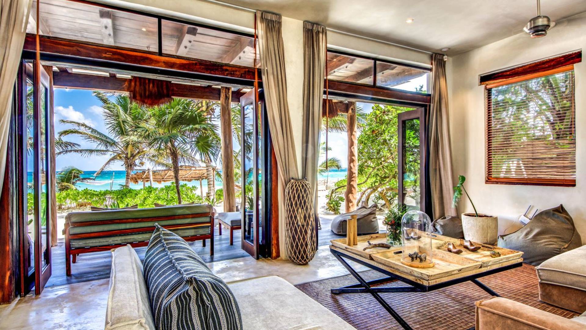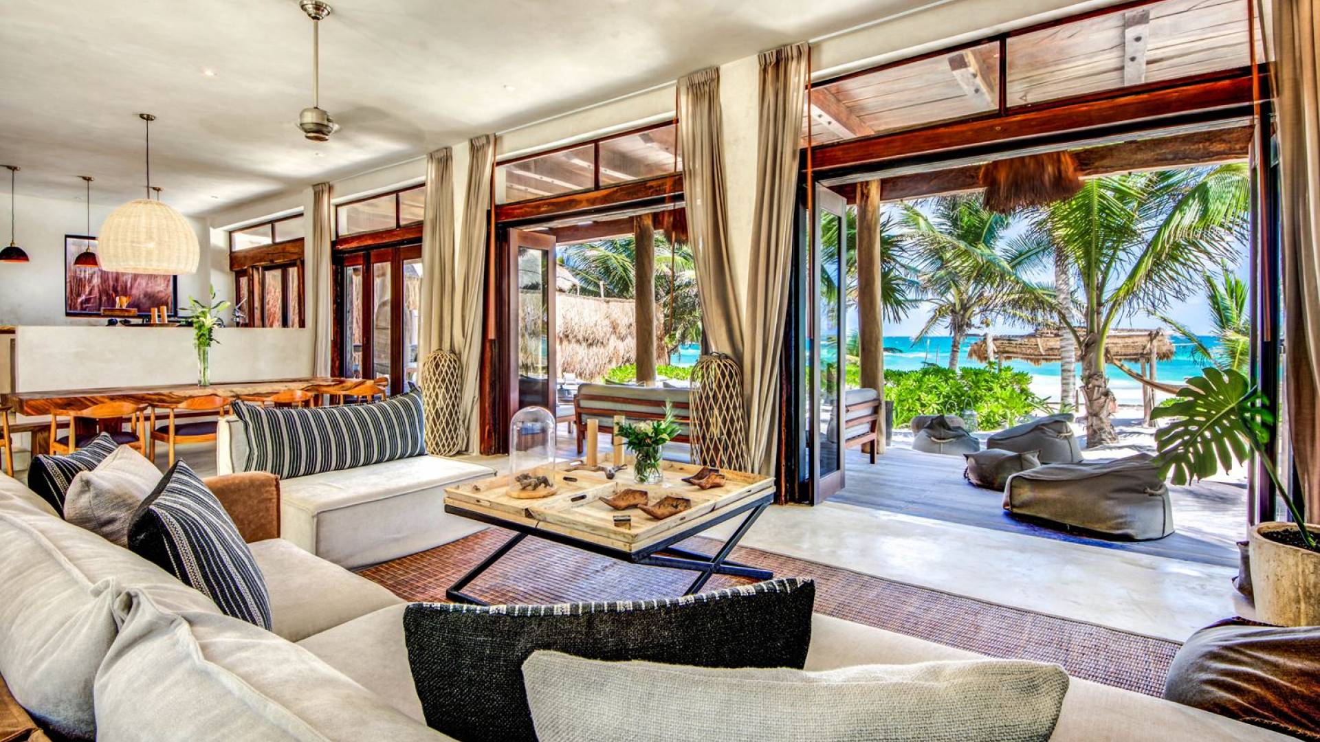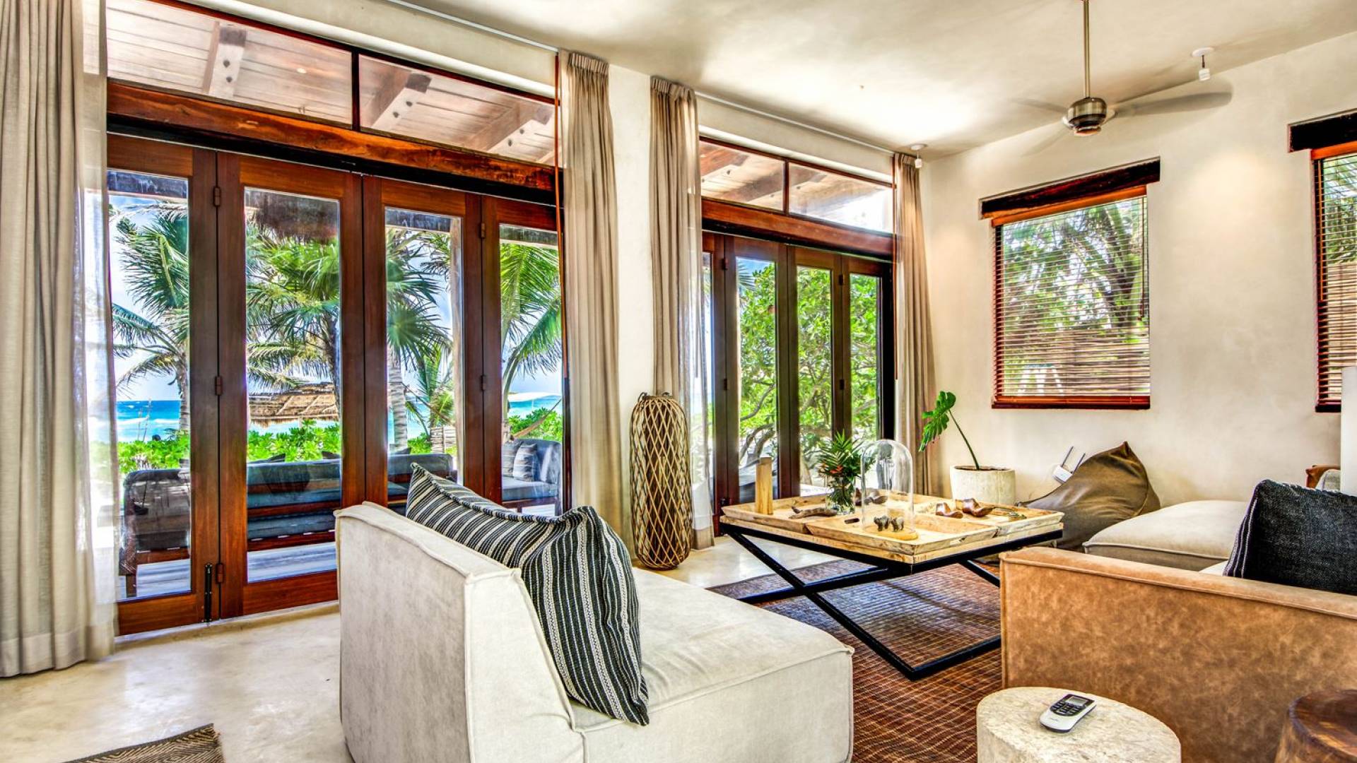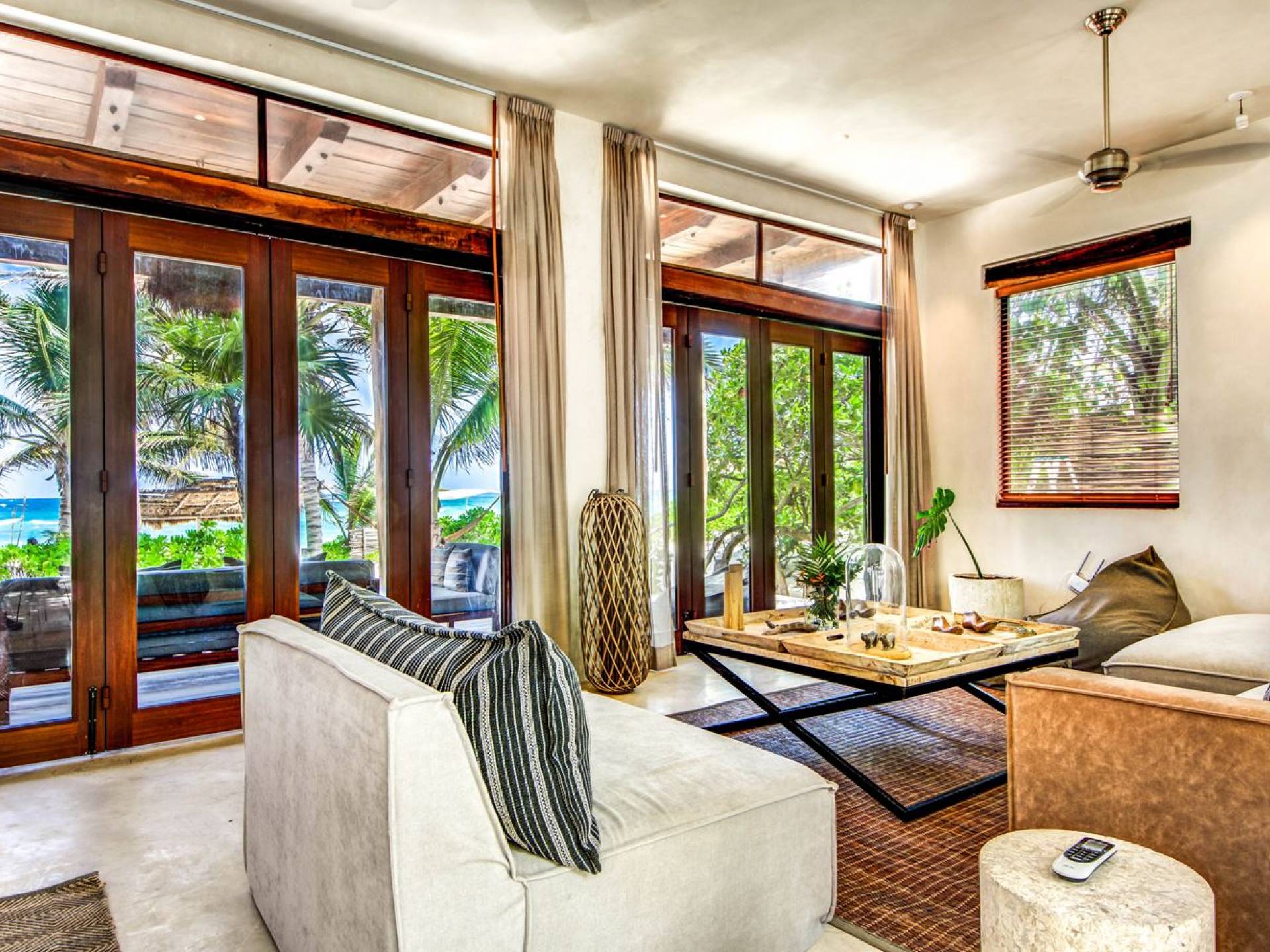 Casa Chukum Tulum es una renta vacacional de lujo con 4 recámaras y alberca privada. Una casa única frente al mar en el corazón de la playa de Tulum. La villa más exclusiva de Aldea Canzul tiene impresionantes vistas al mar y la combinación perfecta de construcción mexicana con cálidos detalles en madera y técnicas de construcción tradicionales. La casa brinda privacidad, comodidad y una inigualable sensación de espacio y tranquilidad.