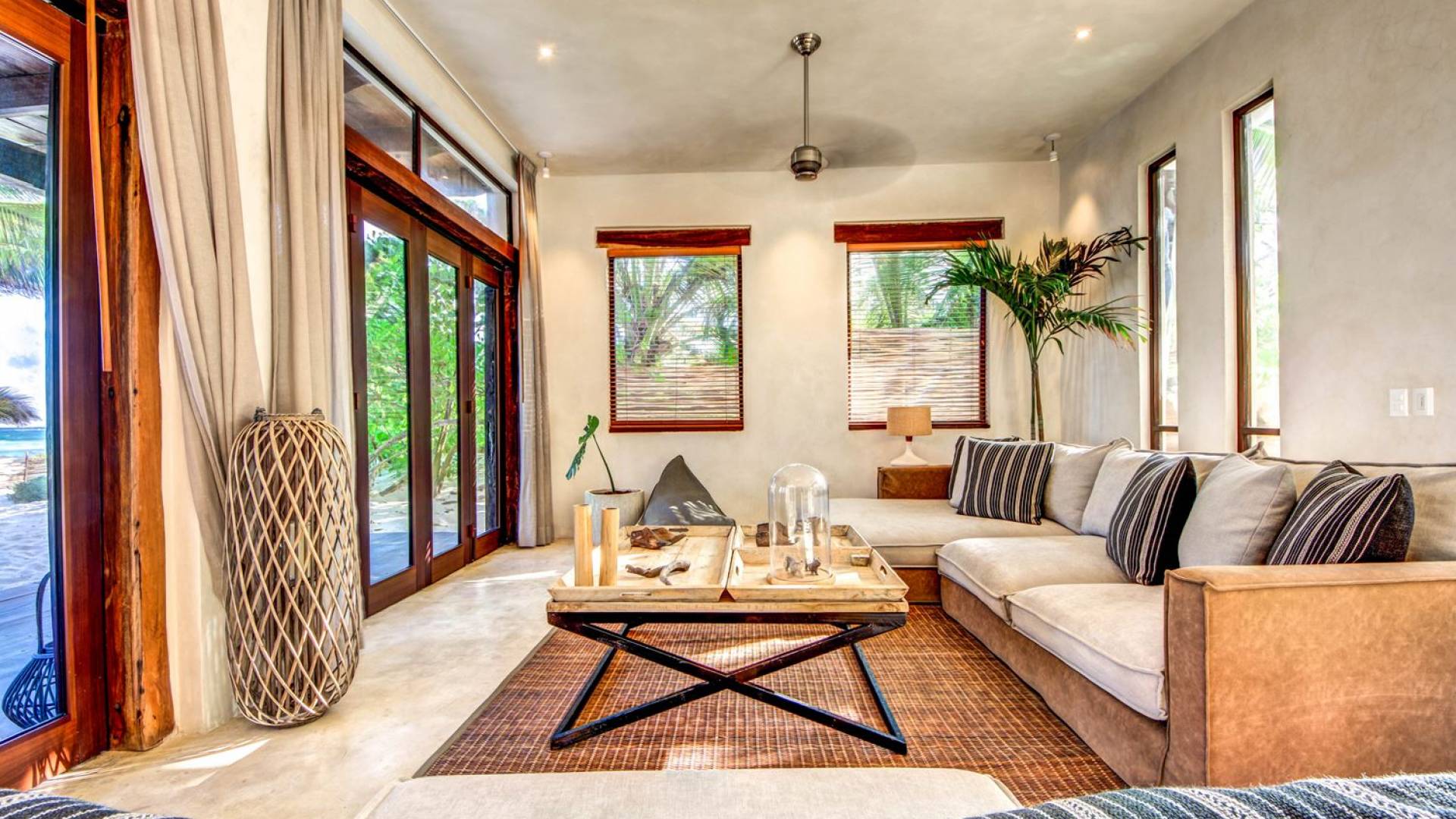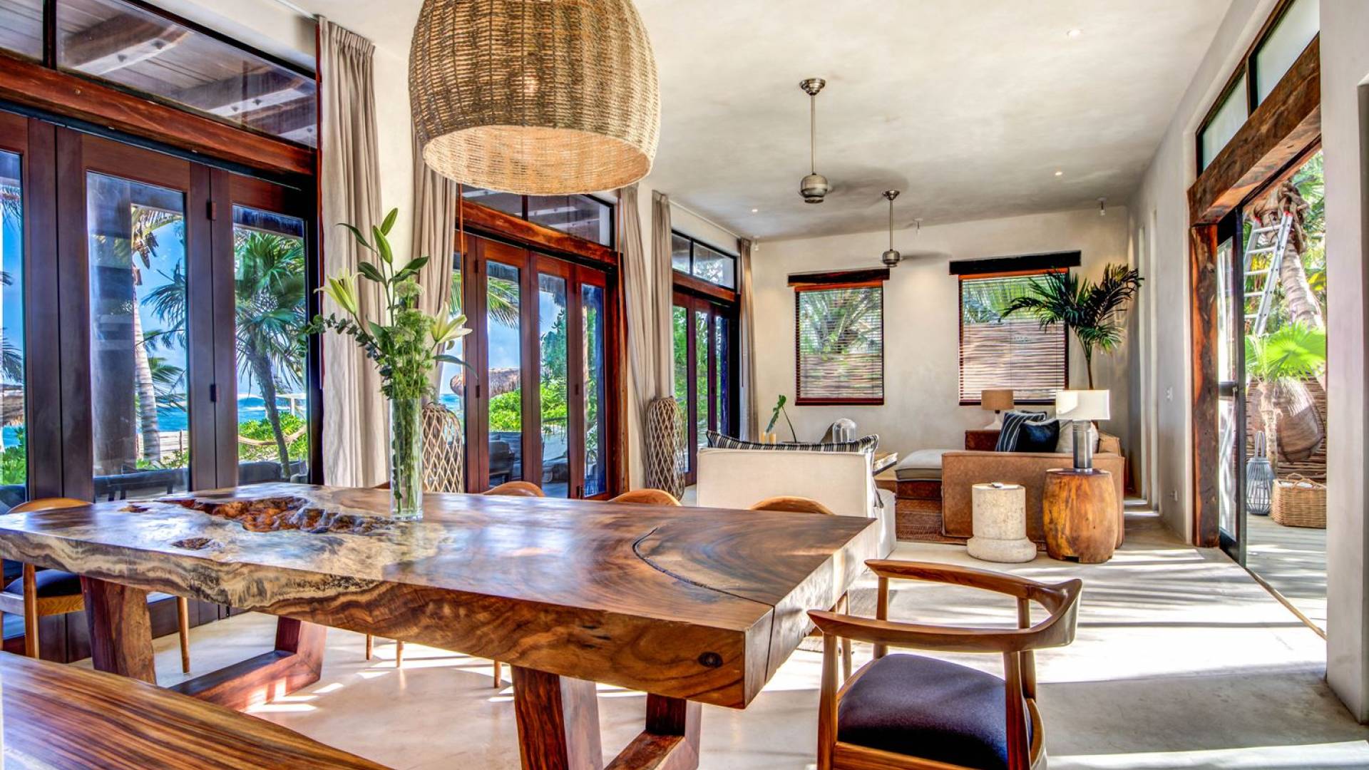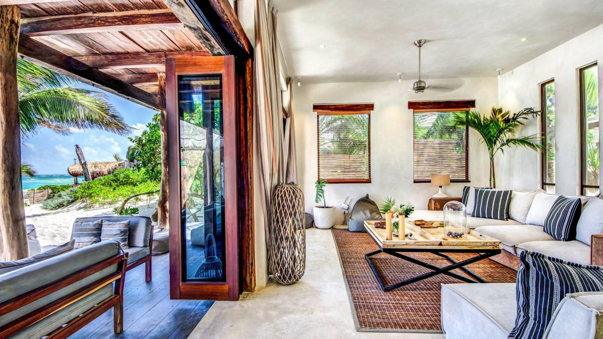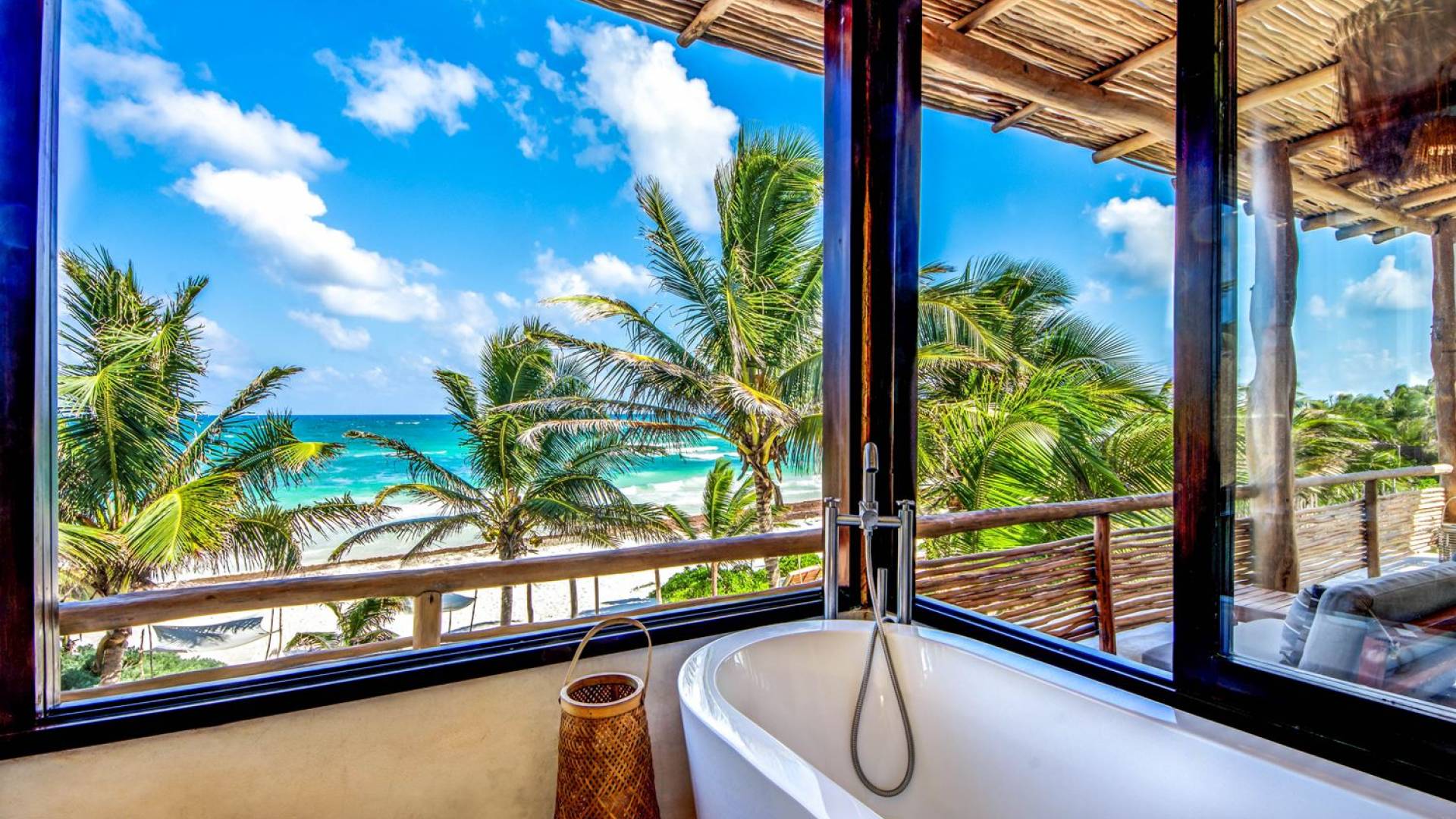 Casa Chukum Tulum es una renta vacacional de lujo con 4 recámaras y alberca privada. Una casa única frente al mar en el corazón de la playa de Tulum. La villa más exclusiva de Aldea Canzul tiene impresionantes vistas al mar y la combinación perfecta de construcción mexicana con cálidos detalles en madera y técnicas de construcción tradicionales. La casa brinda privacidad, comodidad y una inigualable sensación de espacio y tranquilidad.