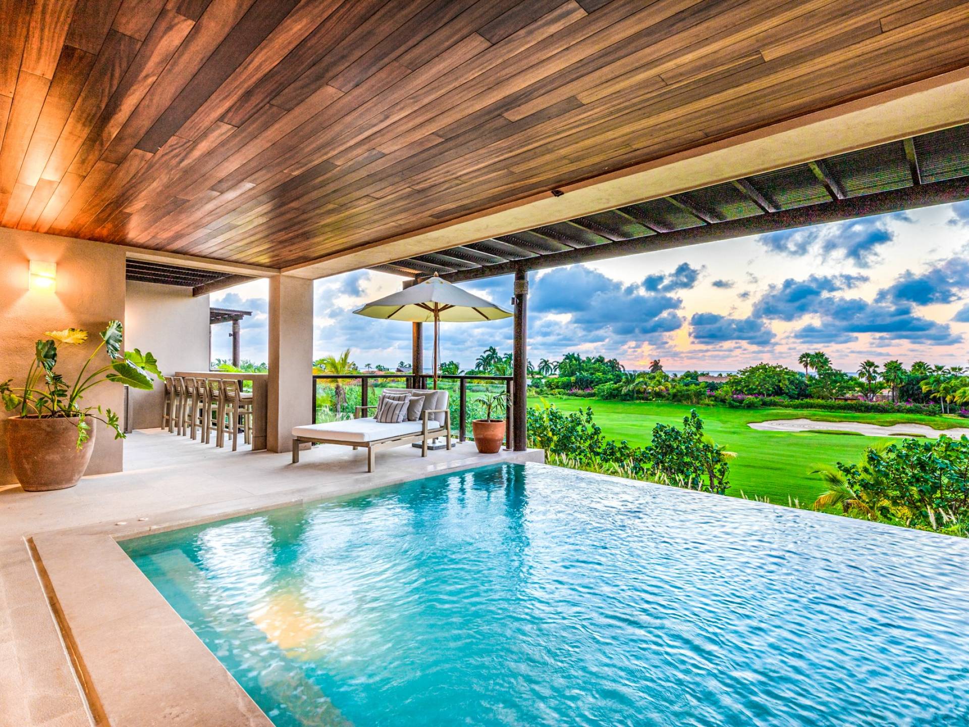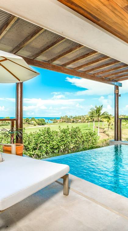 En Condo Ocaso Lindo puede disfrutar de las hermosas vistas de la exuberante vegetación, el hoyo 18 frente al mar del campo Jack Nicklaus Bahía y una impresionante vista de 180 grados del océano Pacífico. Mientras te relajas en la gran terraza al aire libre, date un chapuzón en la hermosa piscina infinita, observa las espectaculares puestas de sol y las ballenas jugar desde el bar al atardecer del condominio, o visita nuestra piscina de entrenamiento comunitaria y gimnasio convenientemente ubicado justo al lado.