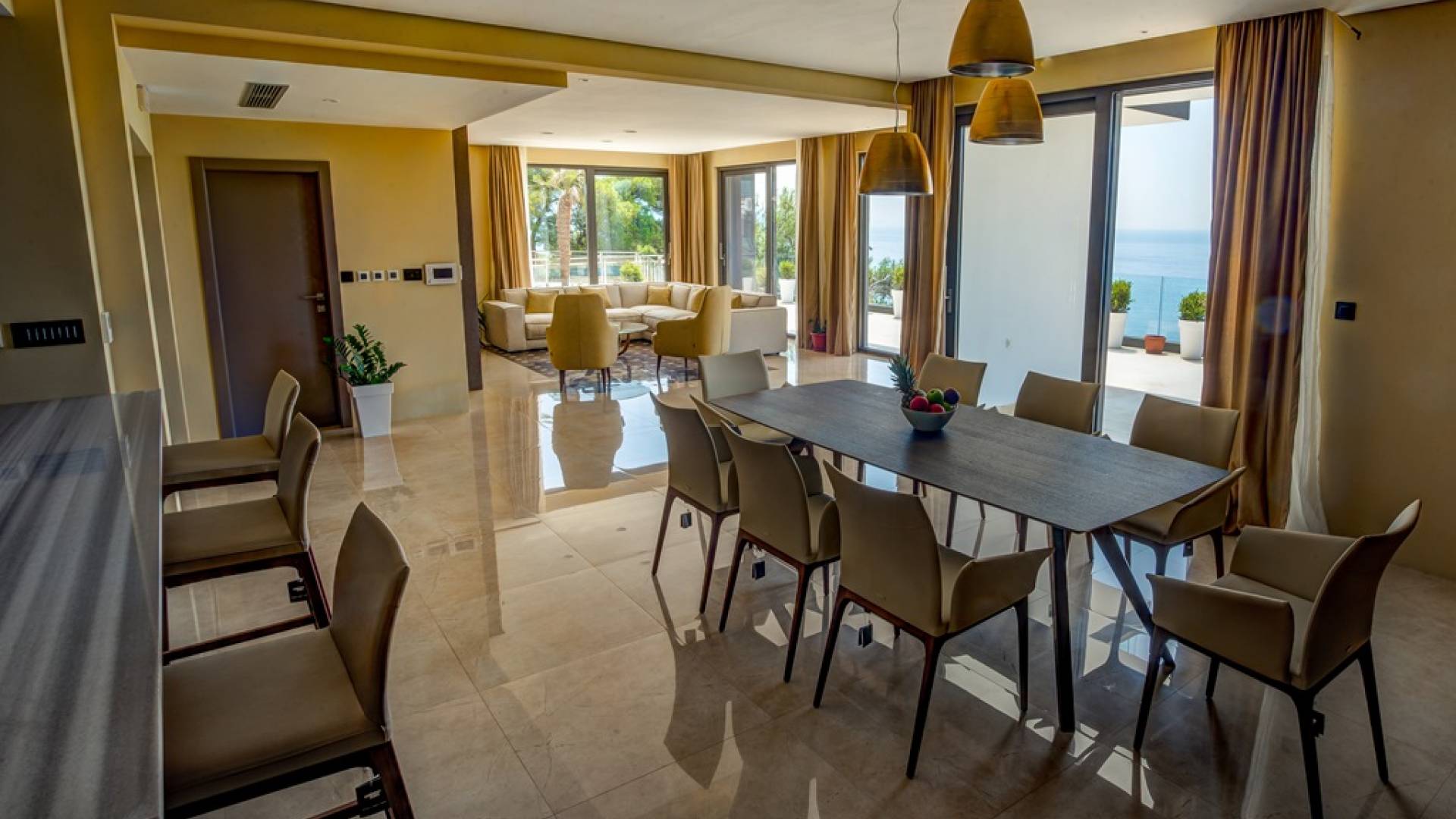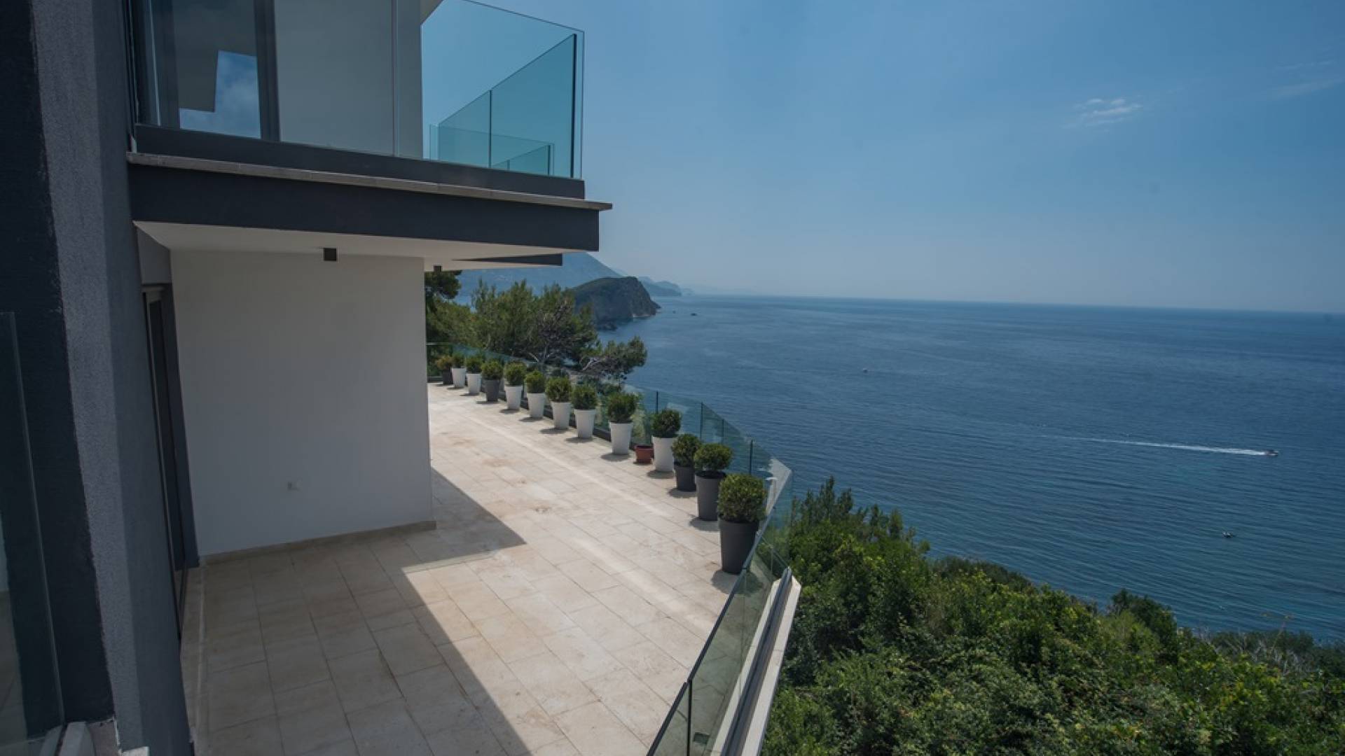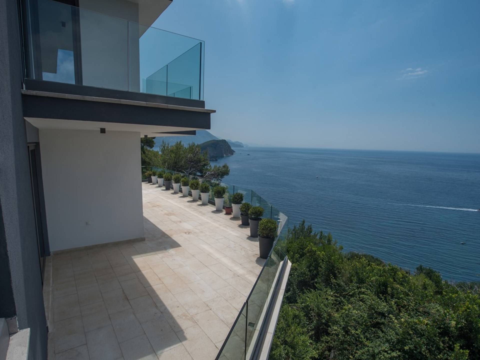 Villa nueva y moderna Diamond tiene una superficie de 331,41m2. Es una villa de lujo con piscina y una vista impresionante del mar abierto. Se encuentra sobre la playa de Mogren, en Budva, Montenegro.