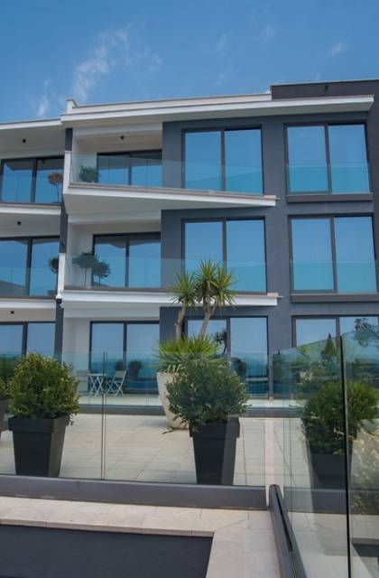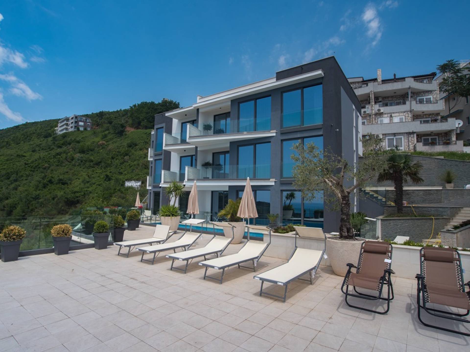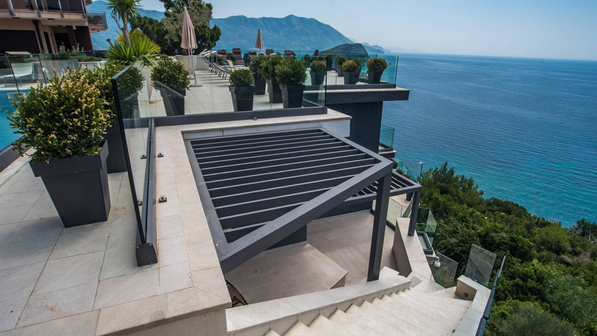 Villa nueva y moderna Diamond tiene una superficie de 331,41m2. Es una villa de lujo con piscina y una vista impresionante del mar abierto. Se encuentra sobre la playa de Mogren, en Budva, Montenegro.