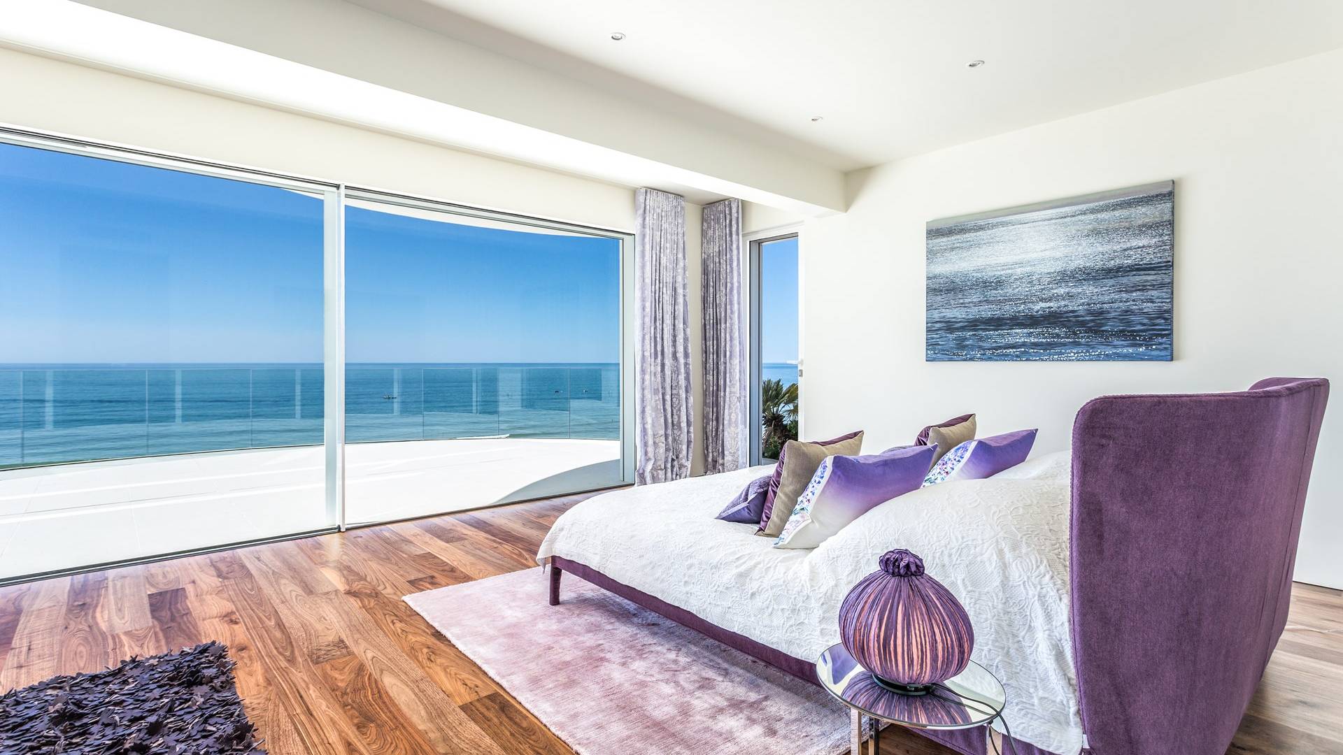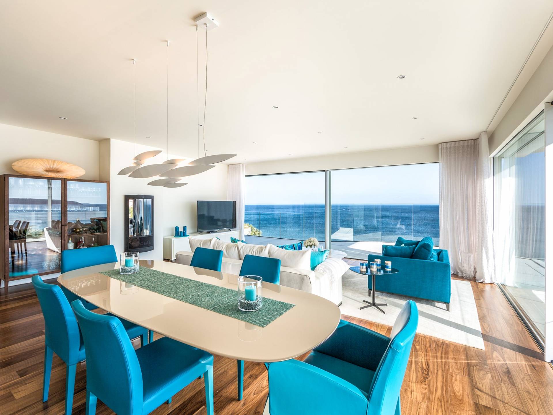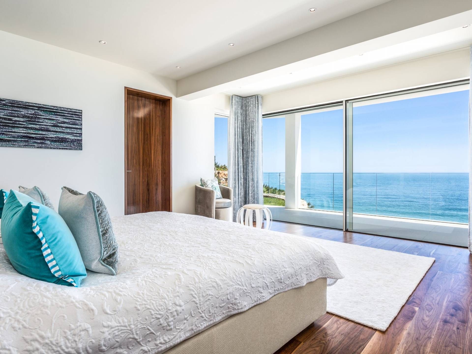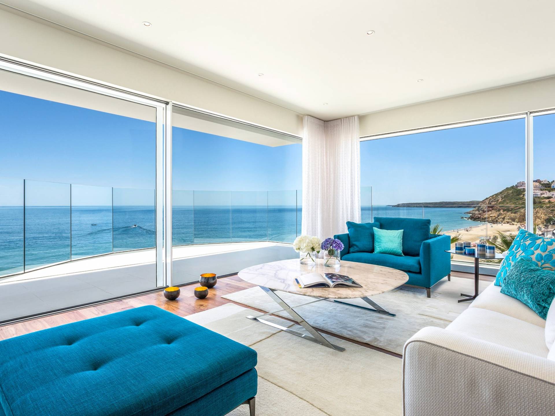 Villa Alegria Algarve consta de 4 dormitorios, amplias puertas corredizas de vidrio que conducen directamente a terrazas, jardines y una piscina privada en la azotea con vista al océano infinito, está decorada en un estilo mediterráneo limpio y contemporáneo, en llamativos blancos, azules, y lilas, con amplias zonas de estar y abundante luz natural que entra por las ventanas.