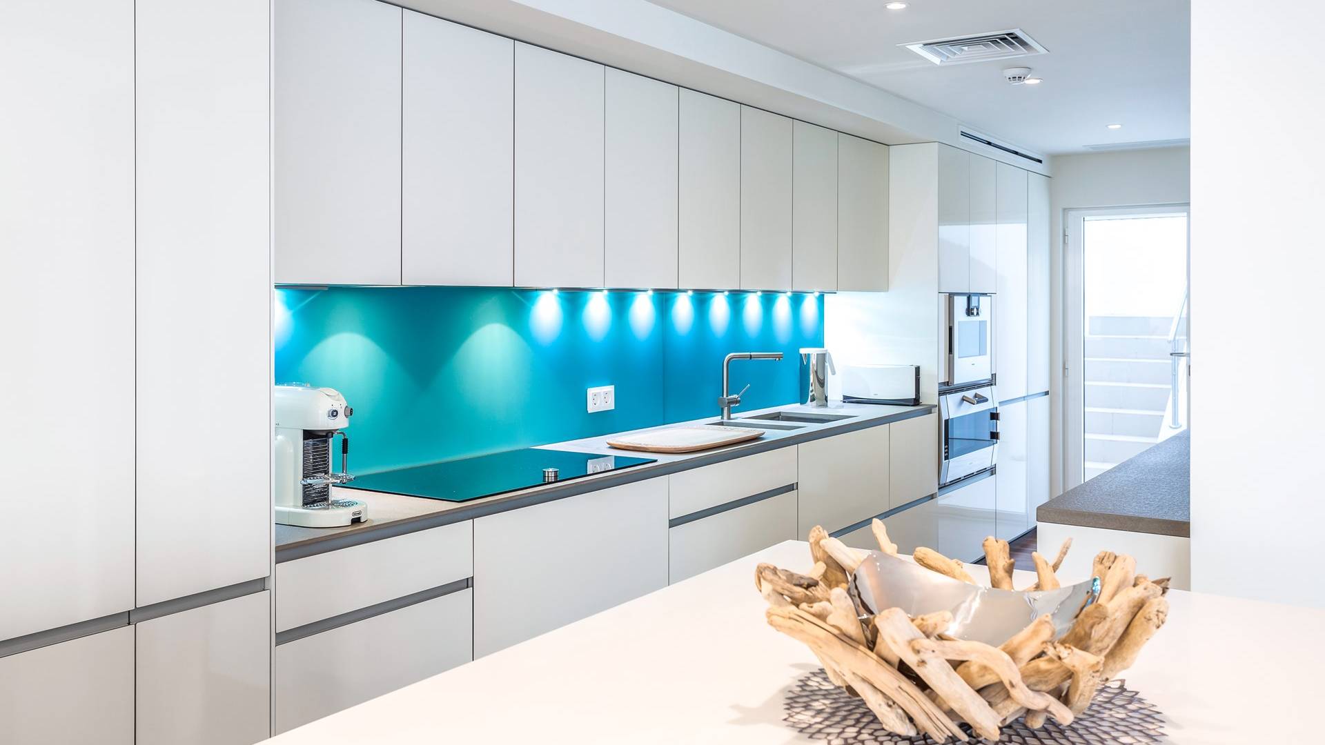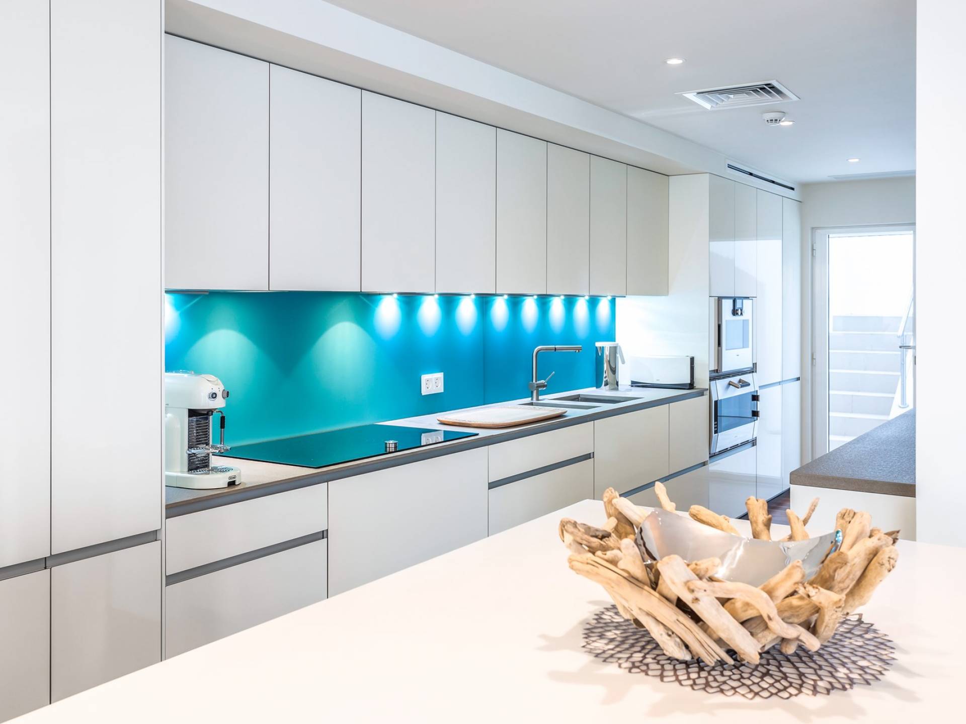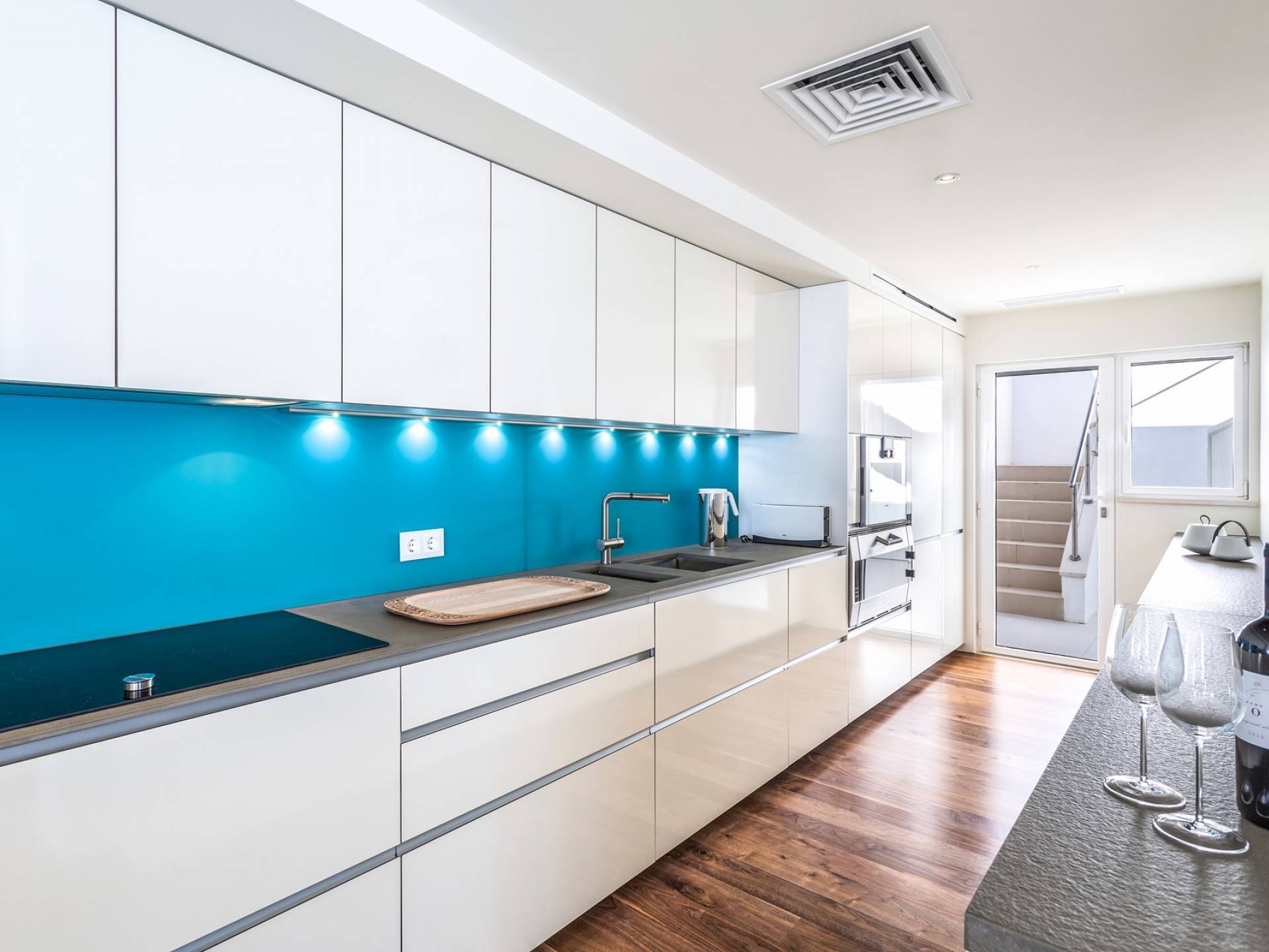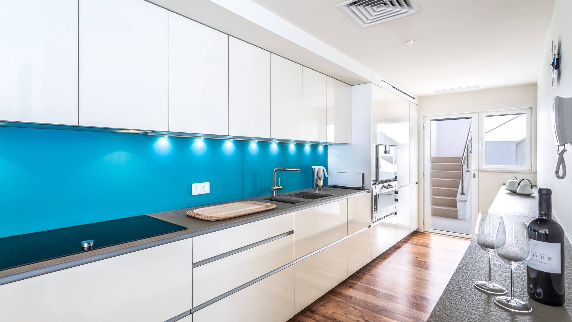 Villa Alegria Algarve consta de 4 dormitorios, amplias puertas corredizas de vidrio que conducen directamente a terrazas, jardines y una piscina privada en la azotea con vista al océano infinito, está decorada en un estilo mediterráneo limpio y contemporáneo, en llamativos blancos, azules, y lilas, con amplias zonas de estar y abundante luz natural que entra por las ventanas.