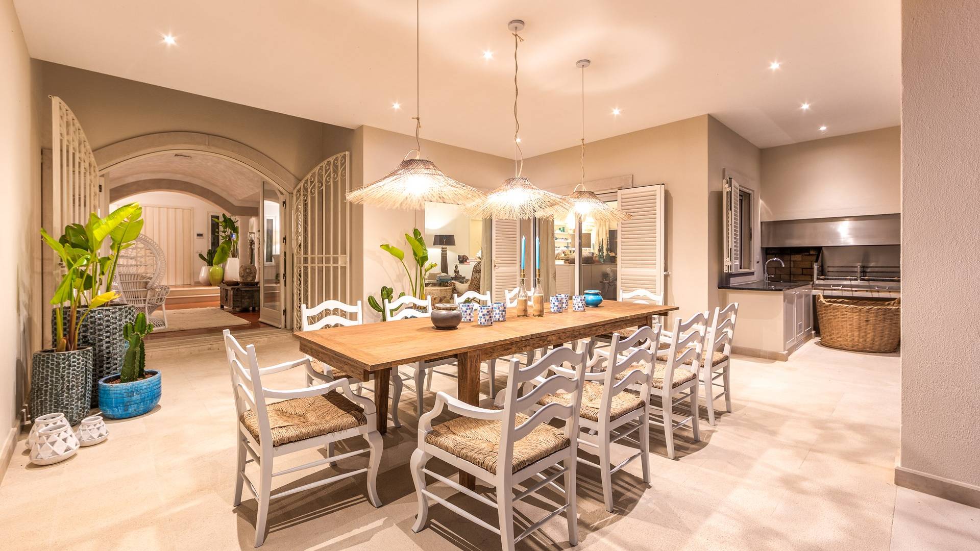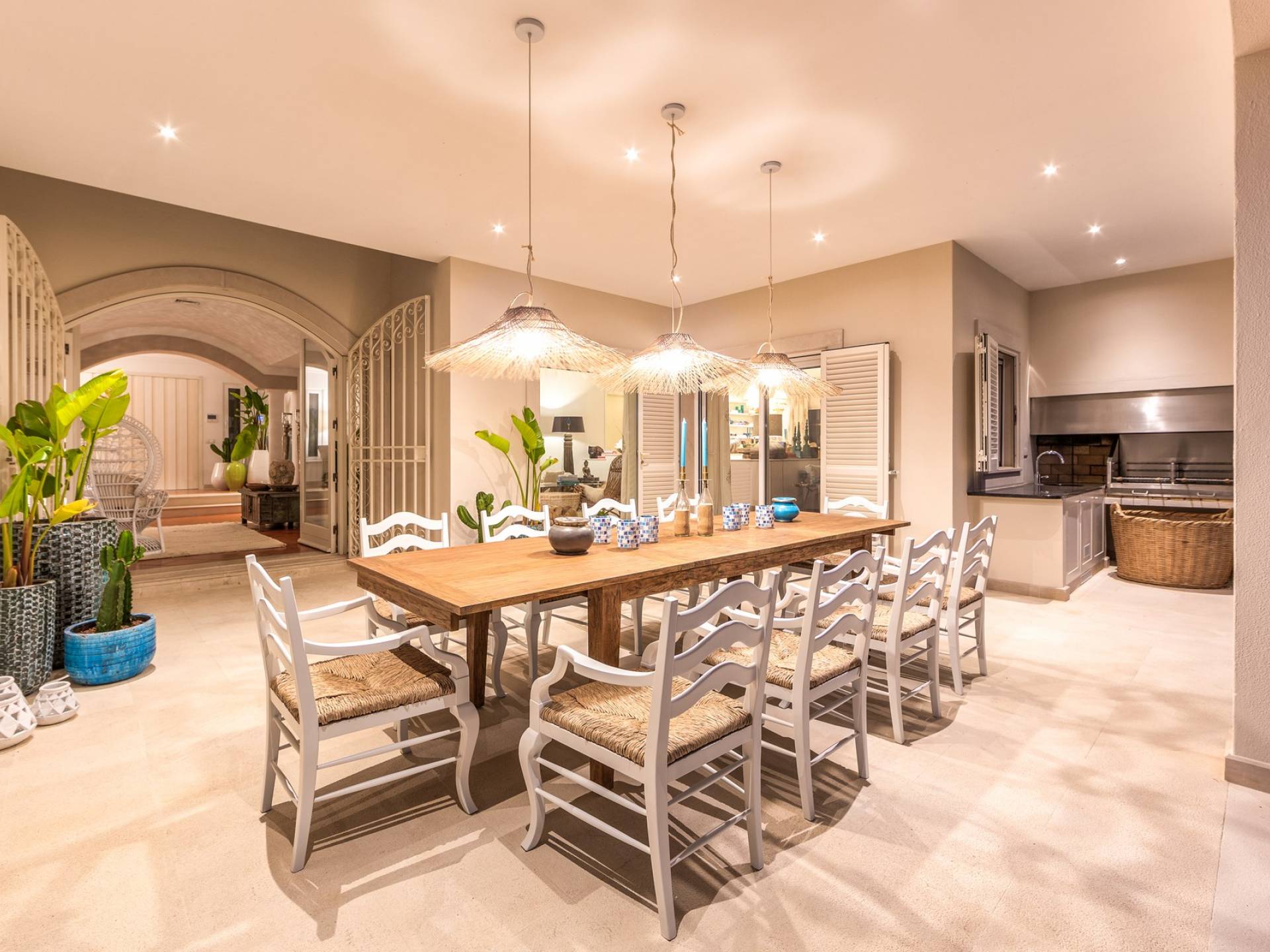 La luminosa villa de 600 metros cuadrados cuenta con cuatro hermosas habitaciones de temática playera, con una habitación más pequeña, ideal para niños pequeños, todas con baño privado. así como una amplia sala de estar y comedor, que conducen directamente a una terraza sombreada completamente amueblada y un garaje, complementan el espacio.