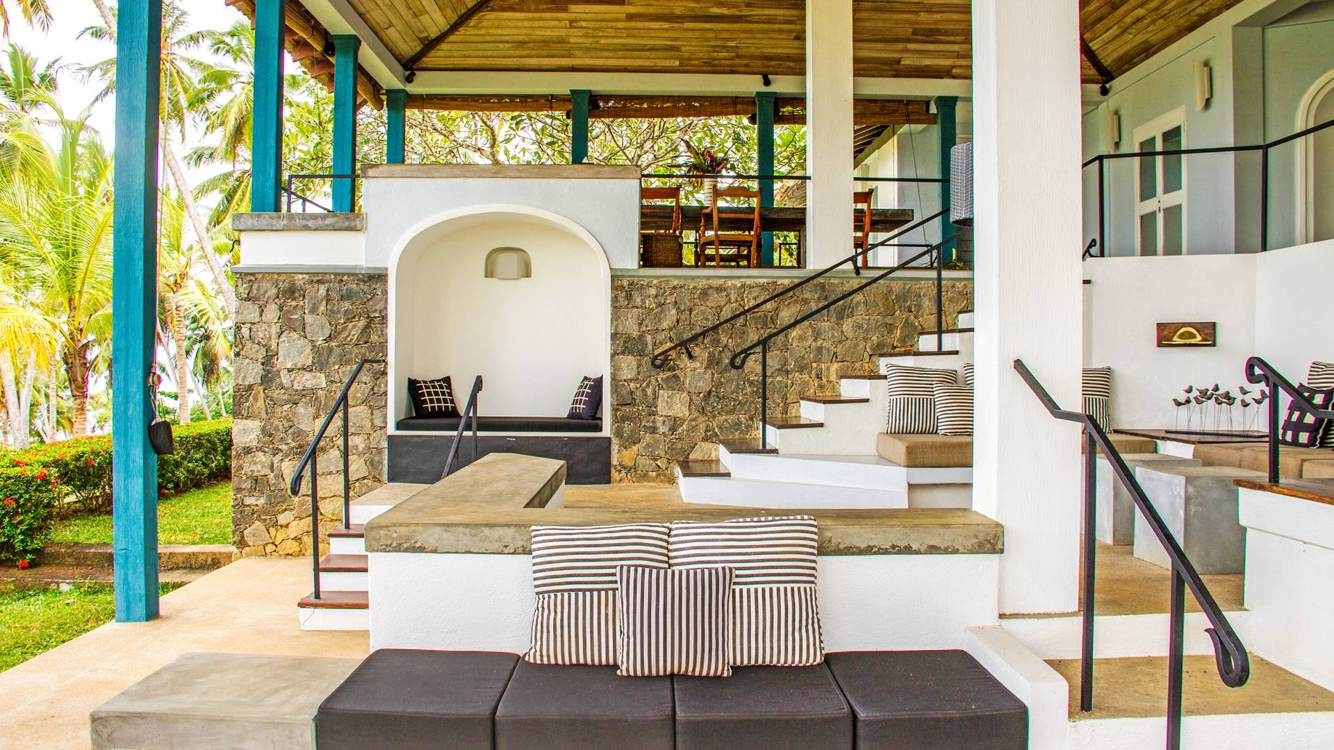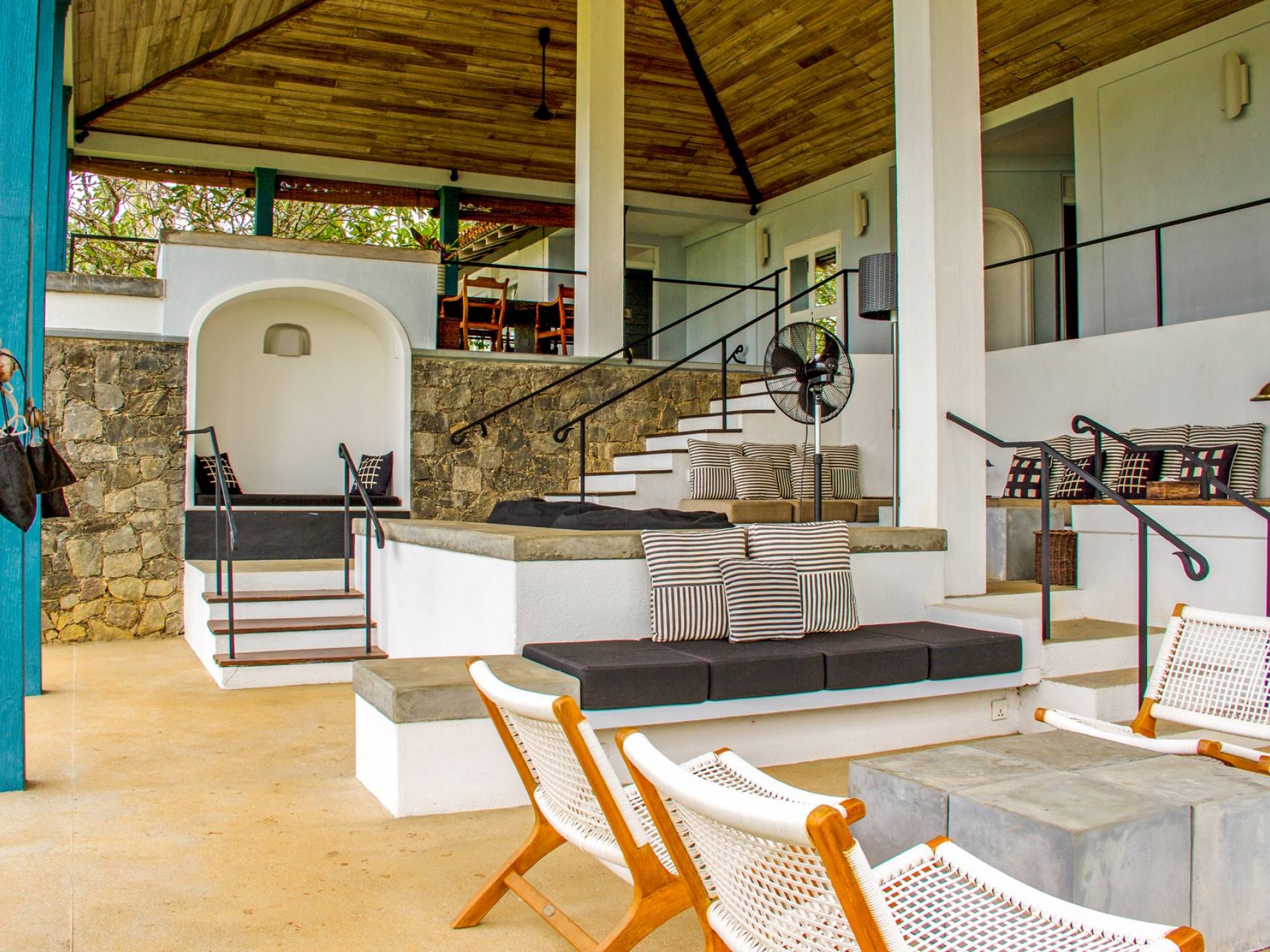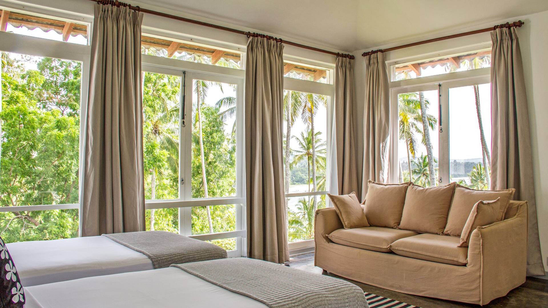 Claughton House es una villa de cinco habitaciones diseñada por el difunto Geoffrey Bawa. La villa cuenta con una sala de estar de planta abierta que comprende el comedor y la sala de estar. El área domina las espectaculares vistas del Océano Índico. La villa se distribuye en tres niveles, todos con fabulosas vistas de la piscina, el jardín, la playa y el océano más allá. También brinda acceso directo a la playa, que es estacionalmente segura para nadar y surfear. La villa está sostenida por altos pilares a lo largo de su fachada, proporcionando una enorme sala de estar donde los huéspedes pueden cenar y también disfrutar de las vistas y la brisa desde tres lados.