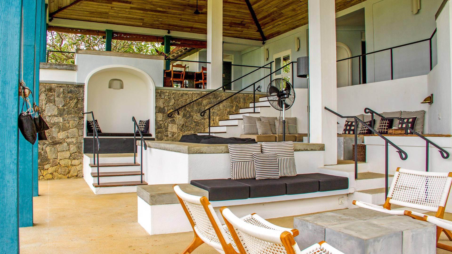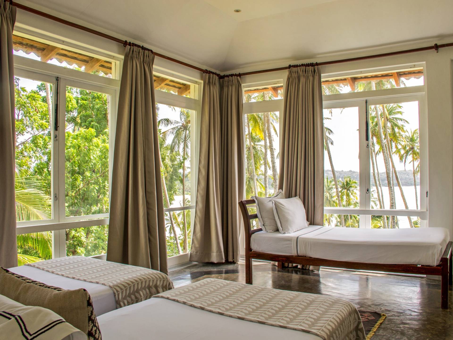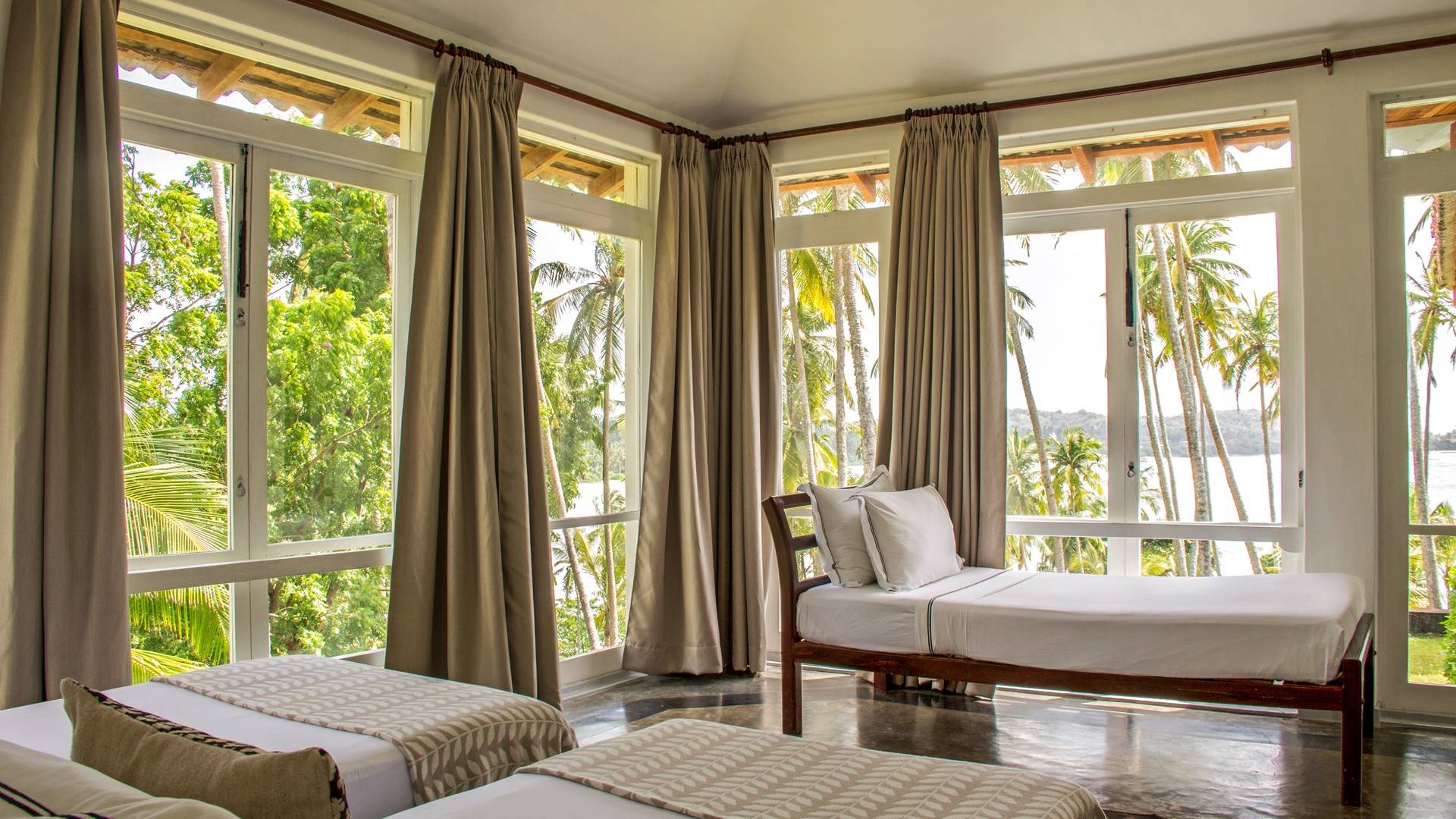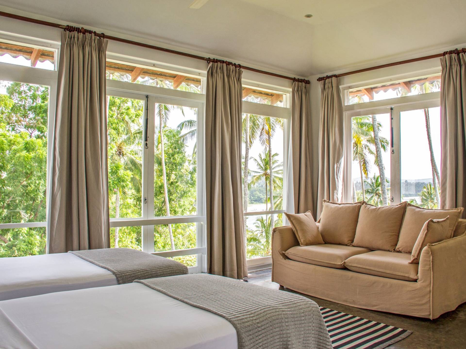 Claughton House es una villa de cinco habitaciones diseñada por el difunto Geoffrey Bawa. La villa cuenta con una sala de estar de planta abierta que comprende el comedor y la sala de estar. El área domina las espectaculares vistas del Océano Índico. La villa se distribuye en tres niveles, todos con fabulosas vistas de la piscina, el jardín, la playa y el océano más allá. También brinda acceso directo a la playa, que es estacionalmente segura para nadar y surfear. La villa está sostenida por altos pilares a lo largo de su fachada, proporcionando una enorme sala de estar donde los huéspedes pueden cenar y también disfrutar de las vistas y la brisa desde tres lados.