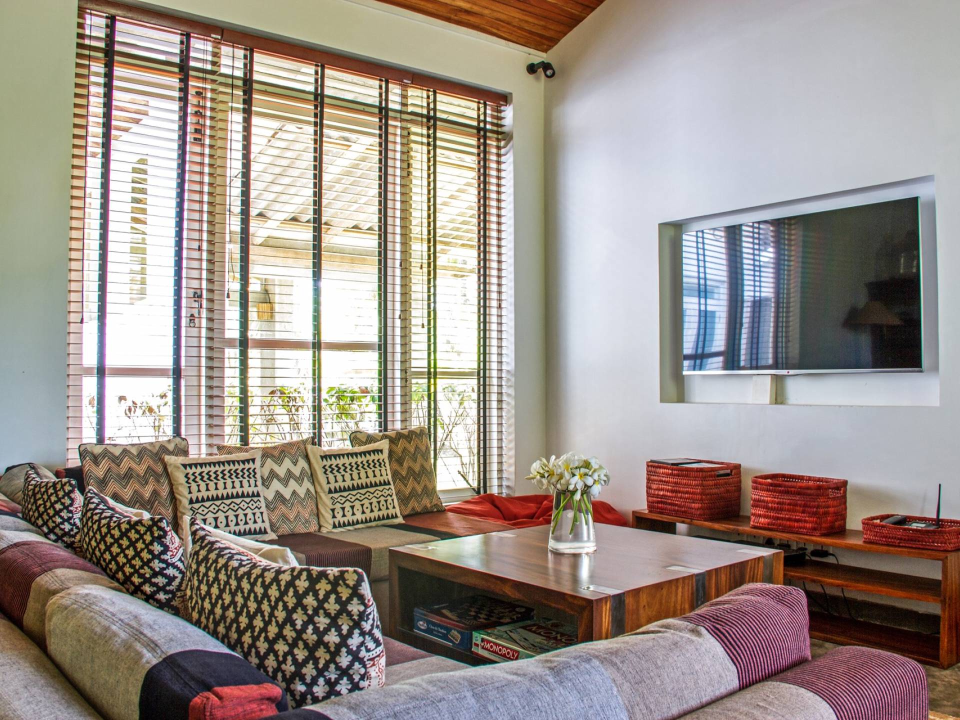 Las cinco habitaciones de Claughton House tienen aire acondicionado y baños en suite. Dormitorio 5 también tiene una sala de televisión con TV vía satélite y tiene una mesa de ping-pong en una habitación contigua. Los cinco baños tienen duchas interiores, mientras que dos también tienen duchas al aire libre. Bellamente decorada y cuidadosamente equipada con todas las comodidades modernas, la villa ofrece un ambiente muy relajado. La playa parece ser una extensión natural del jardín y la piscina, es tranquila y encantadora, y se puede acceder desde el pie del jardín. La piscina está construida para tener vista al océano y las comidas se pueden disfrutar en el interior y alrededor de la piscina. También hay una barbacoa en el jardín, ideal para comidas al atardecer.