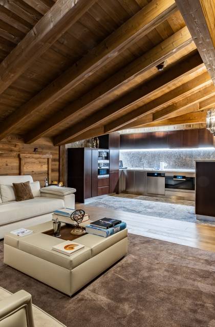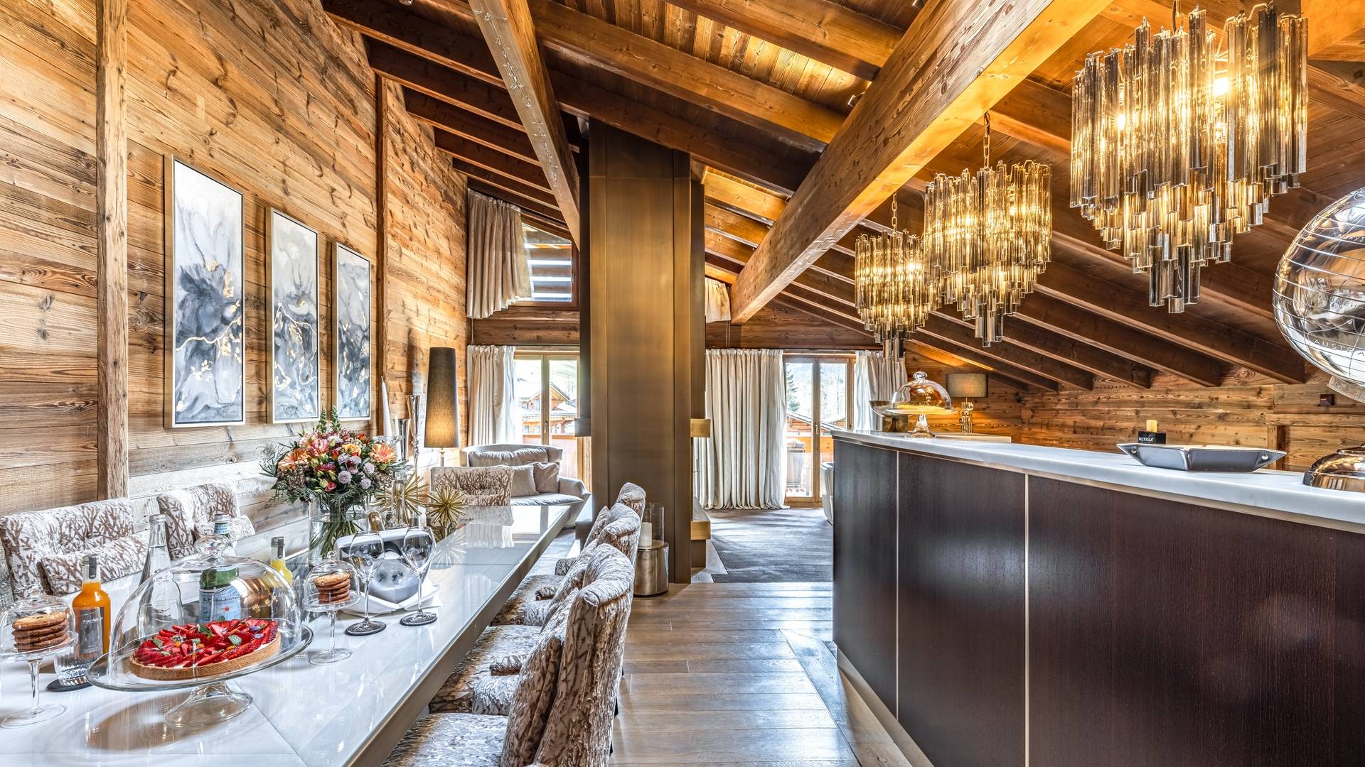 2BD Residence en Ultima Gstaad abre las puertas a un mundo único de lujo. Esta auténtica residencia de 173 m2 ofrece un espacio privado y acogedor para recibir a sus invitados, con un amplio salón y zona de recepción. La cocina totalmente equipada crea la atmósfera de un chalet privado. Los candelabros de vidrio y cristal que cuelgan sobre la mesa del comedor, los sillones tapizados en cuero o terciopelo, la cocina de mármol y más, contribuyen a nuestro diseño Signature, que promete comodidad en el más alto lujo.