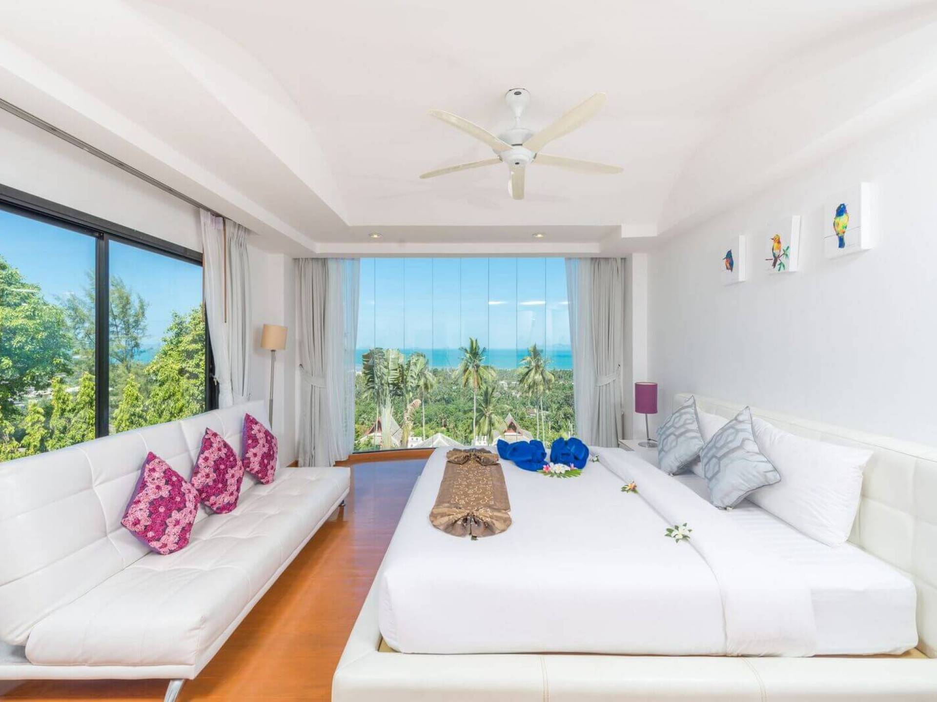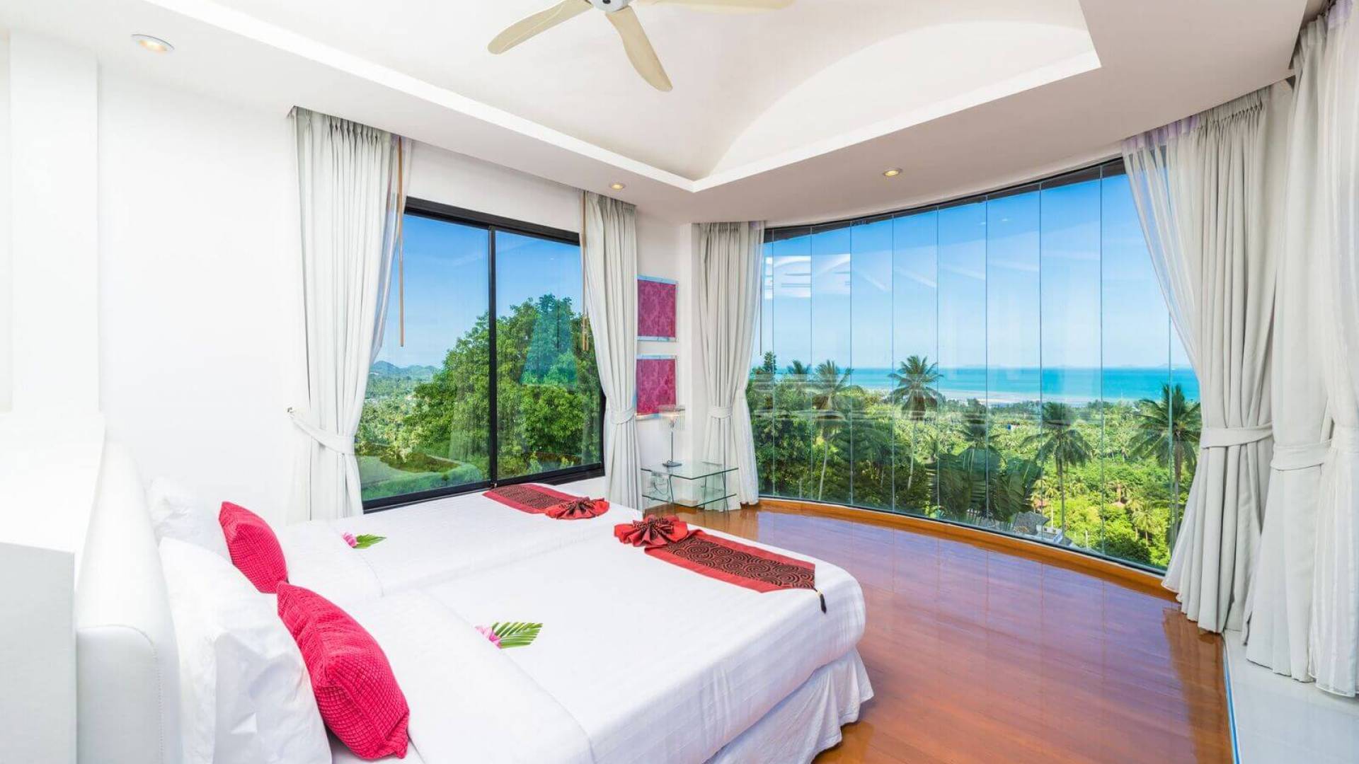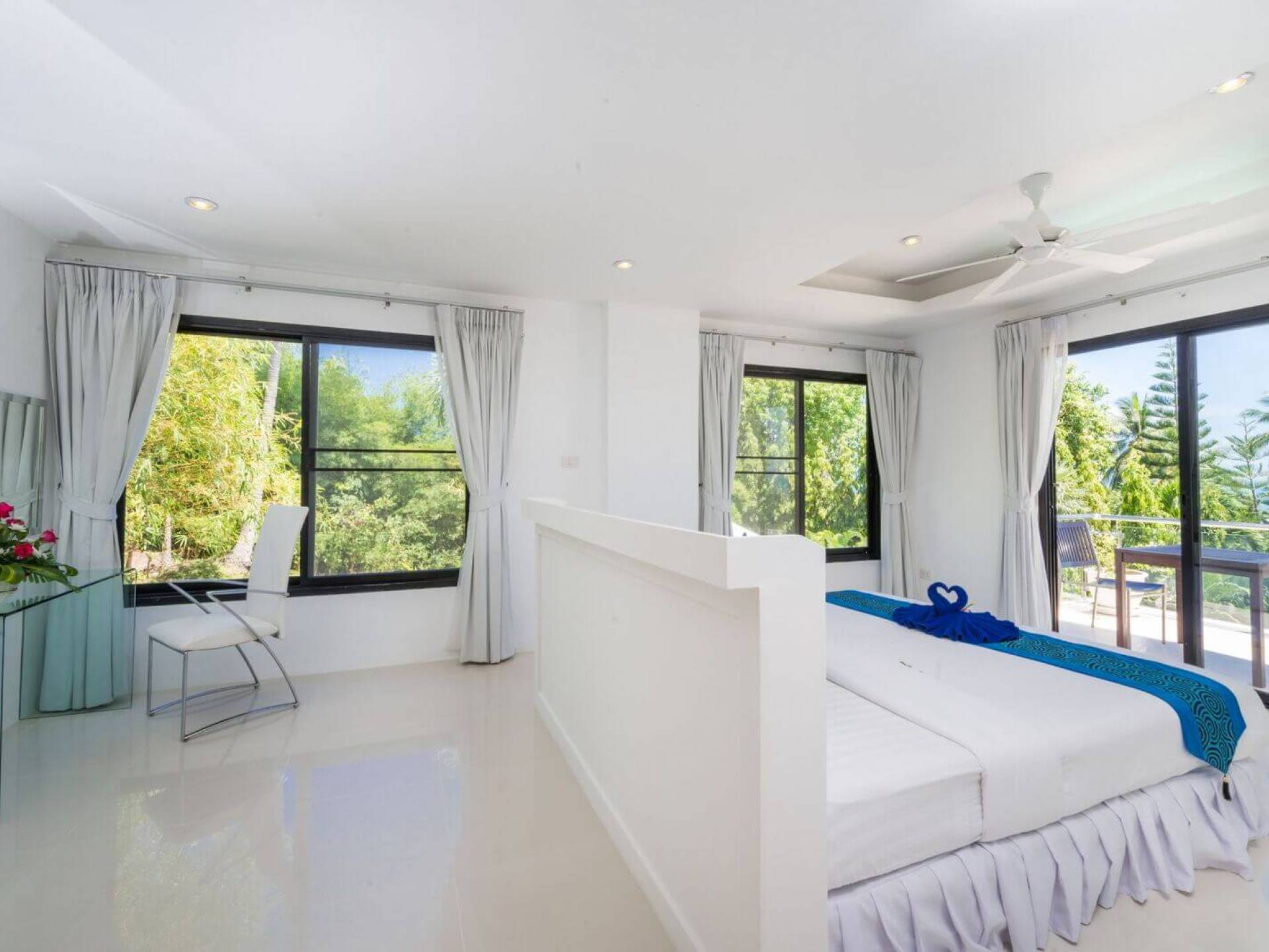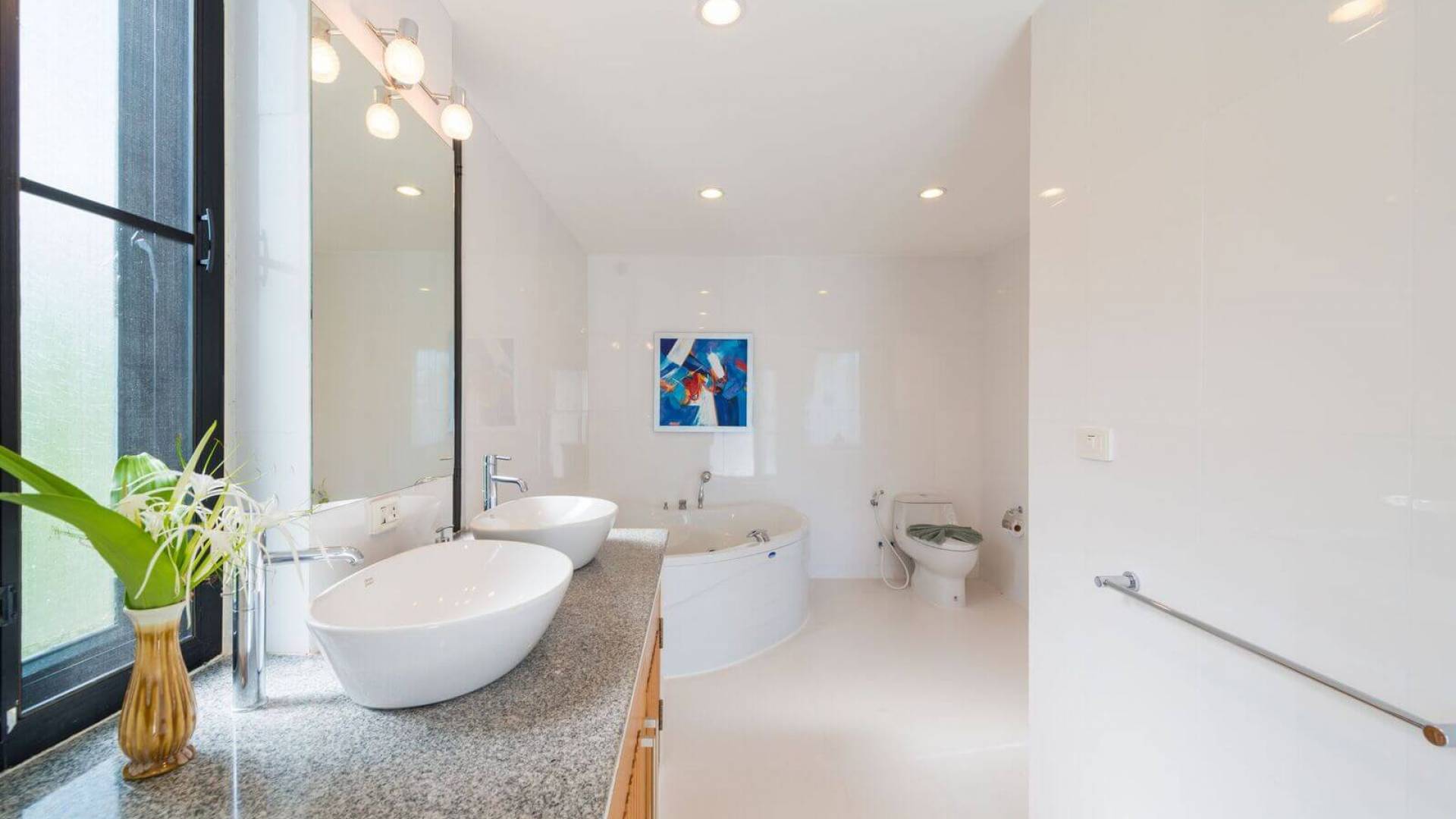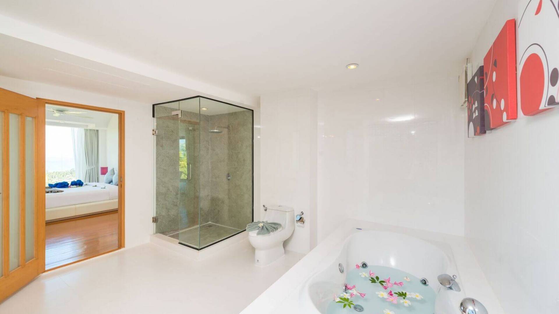 Villa White Stone Samui tiene 4 lujosas habitaciones finamente decoradas con baños privados en suite, todos los cuales cuentan con impresionantes vistas al mar. Los baños incluyen lujosas bañeras de hidromasaje y duchas de lluvia para un momento rejuvenecedor. La villa puede albergar hasta 10 personas con la generosidad de dos colchones extra grandes adicionales sin cargo. Tres de los dormitorios están equipados con camas tamaño king, mientras que el cuarto tiene dos camas individuales que son ideales para niños.
