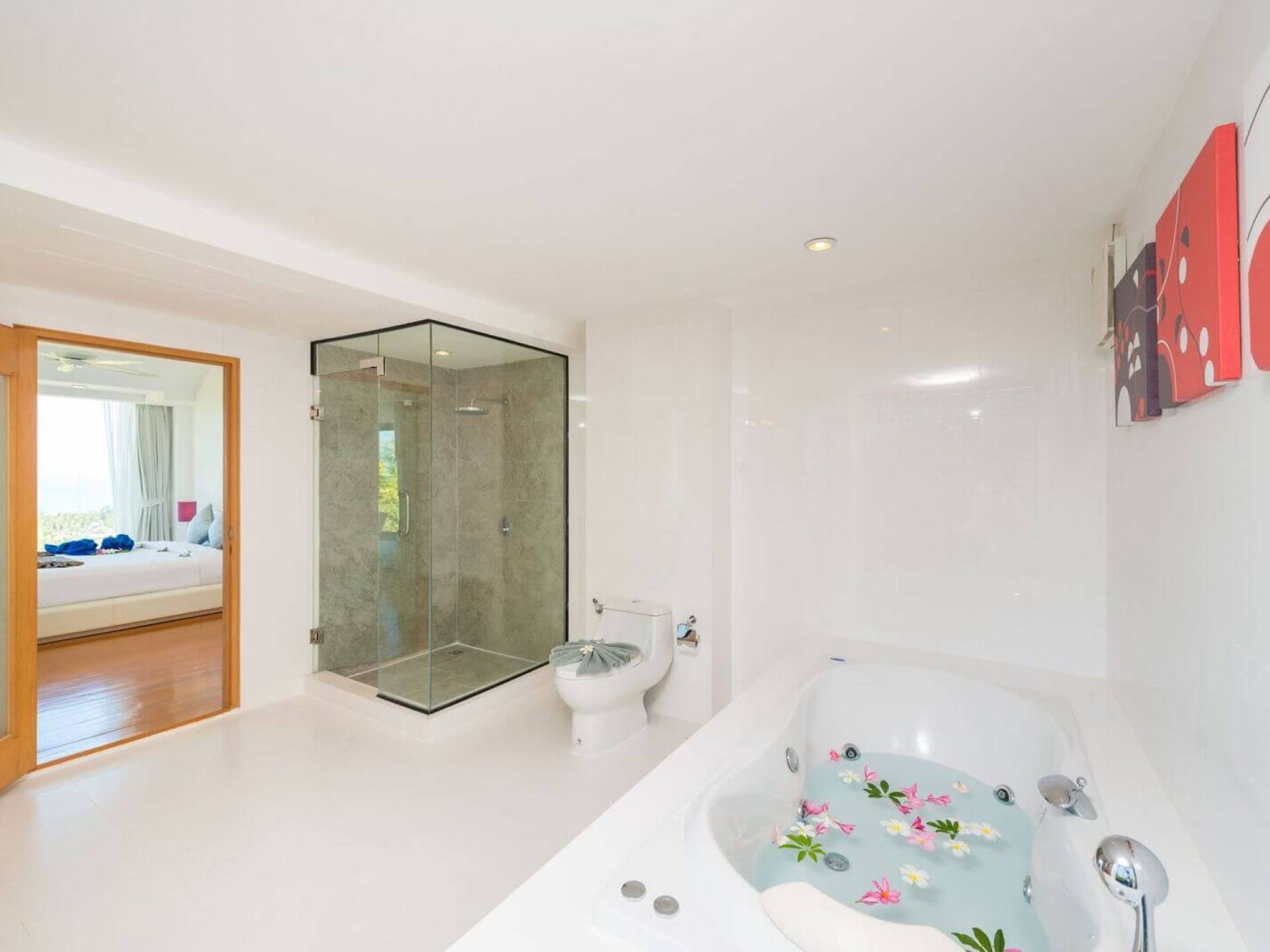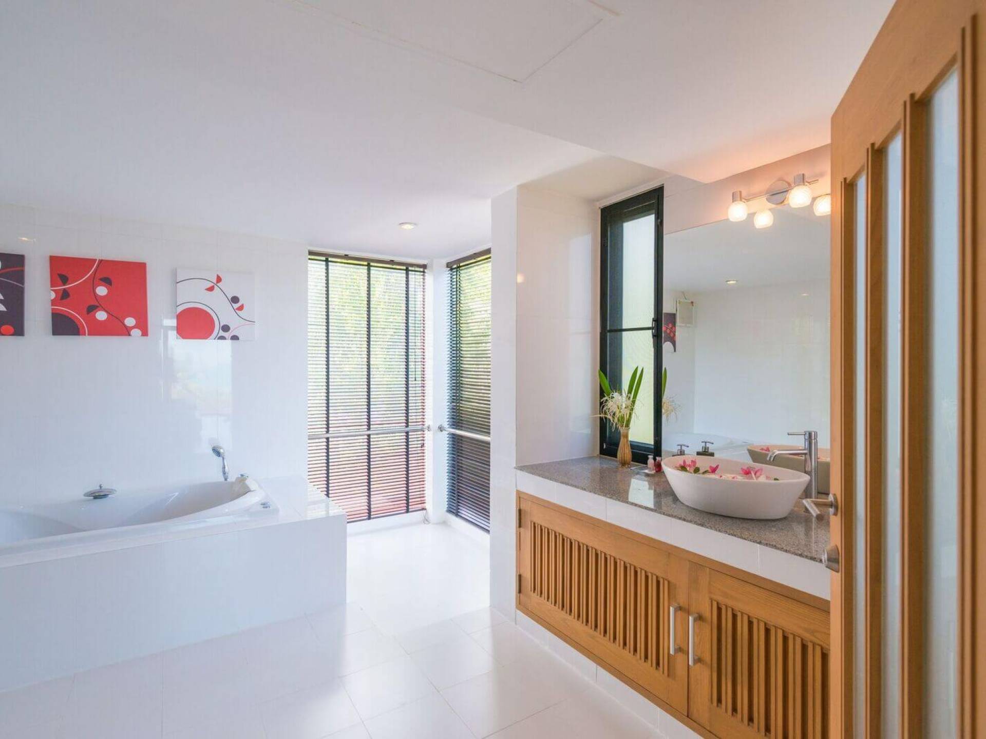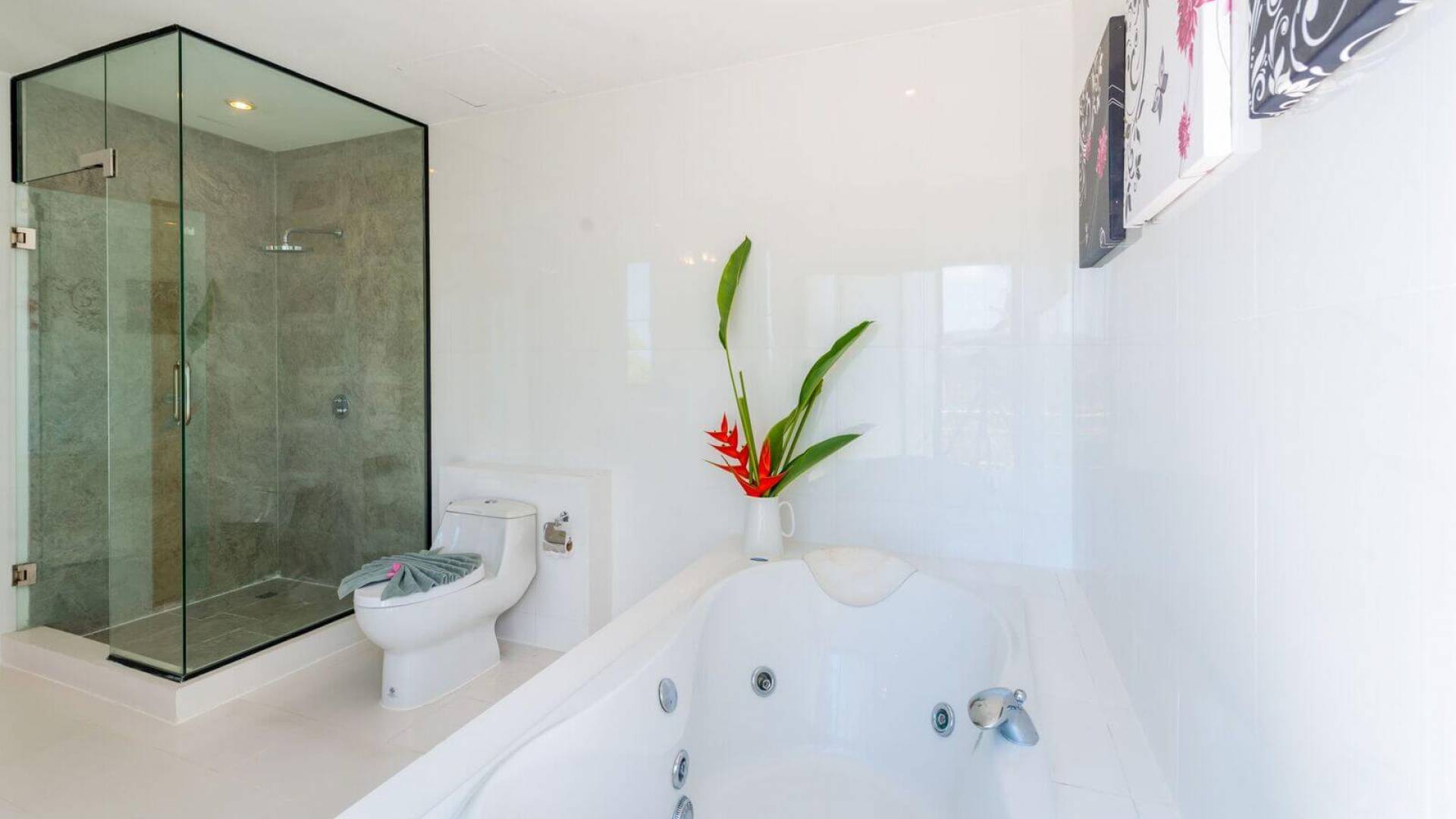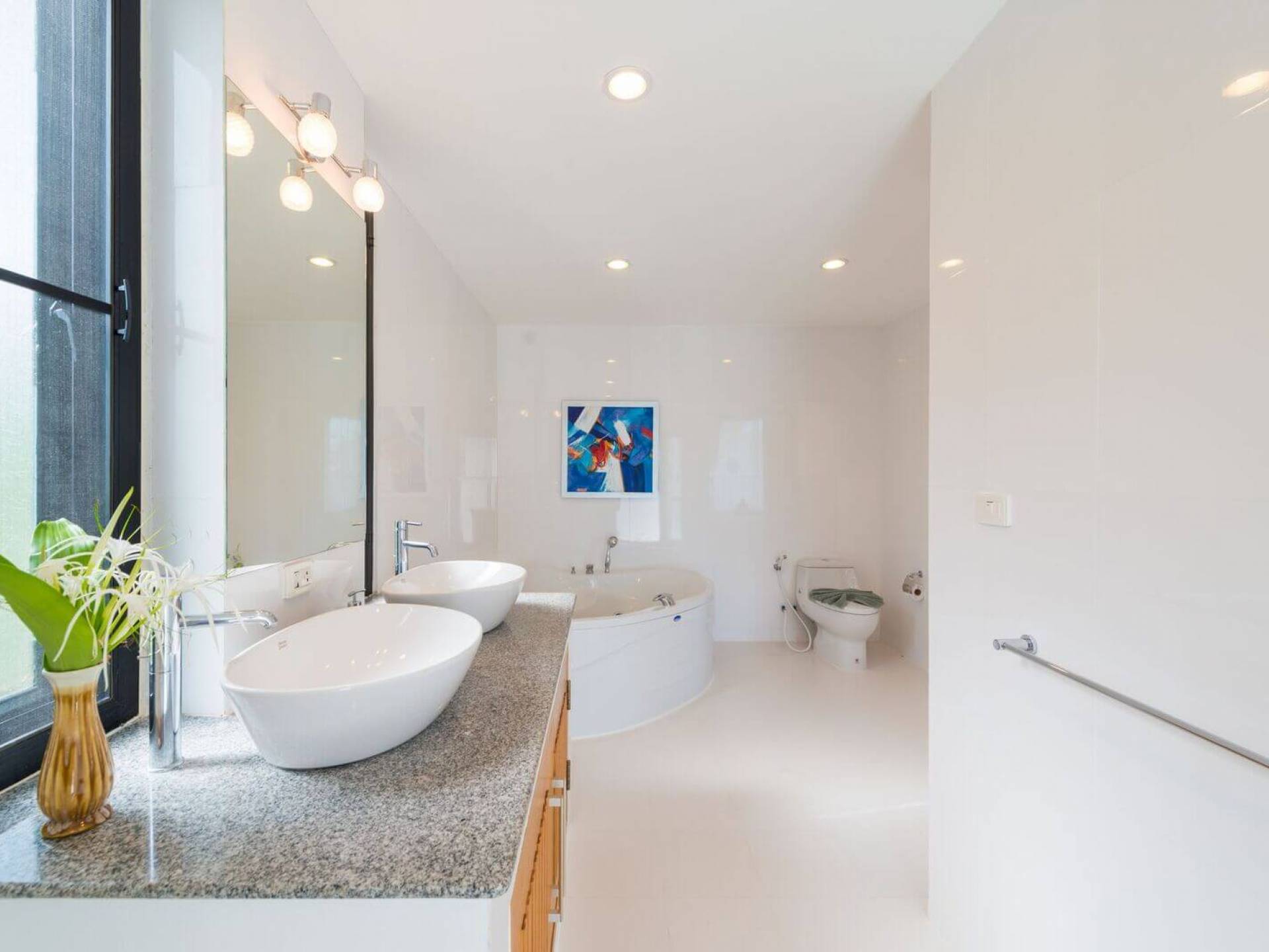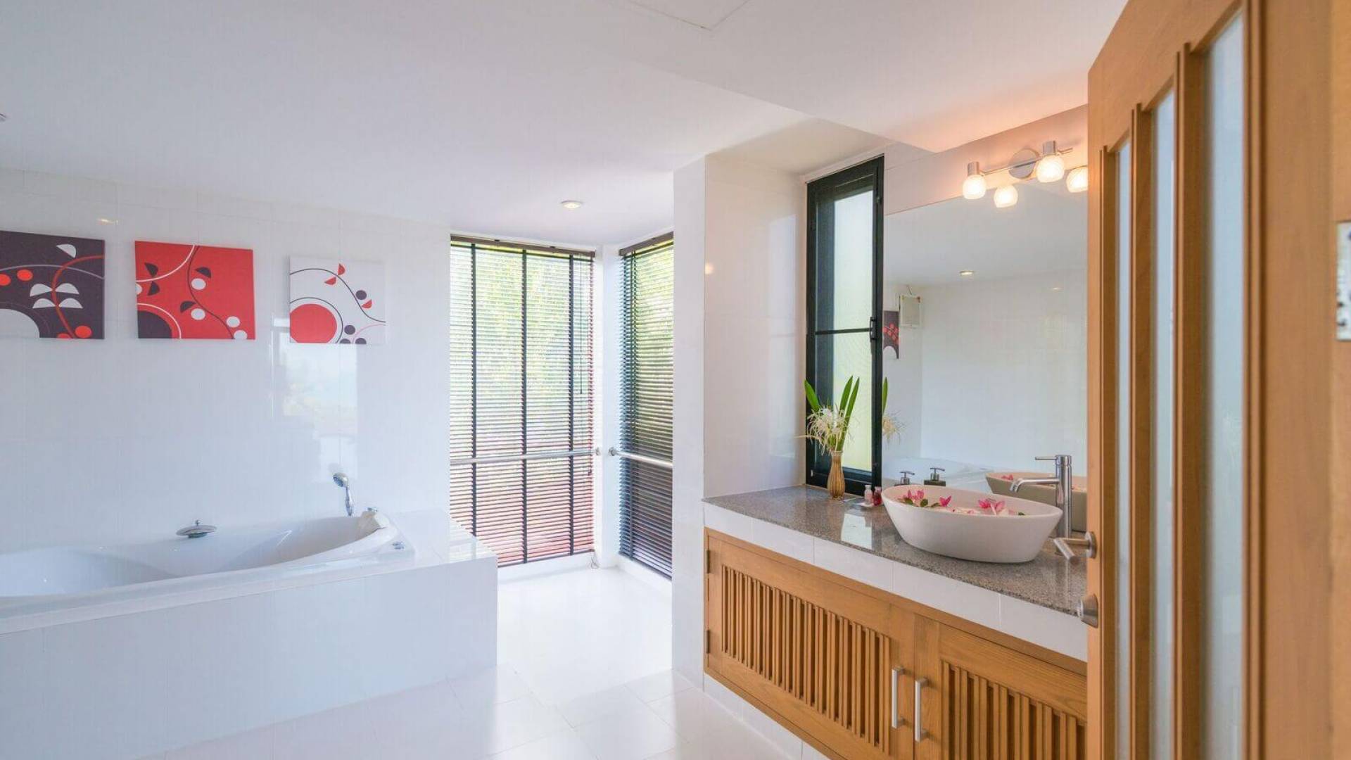 Villa White Stone Samui tiene 4 lujosas habitaciones finamente decoradas con baños privados en suite, todos los cuales cuentan con impresionantes vistas al mar. Los baños incluyen lujosas bañeras de hidromasaje y duchas de lluvia para un momento rejuvenecedor. La villa puede albergar hasta 10 personas con la generosidad de dos colchones extra grandes adicionales sin cargo. Tres de los dormitorios están equipados con camas tamaño king, mientras que el cuarto tiene dos camas individuales que son ideales para niños.