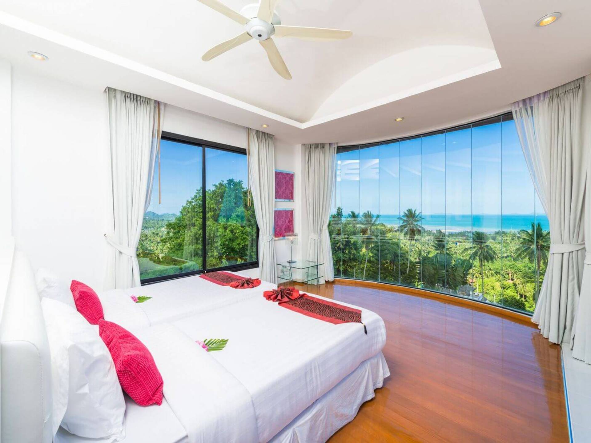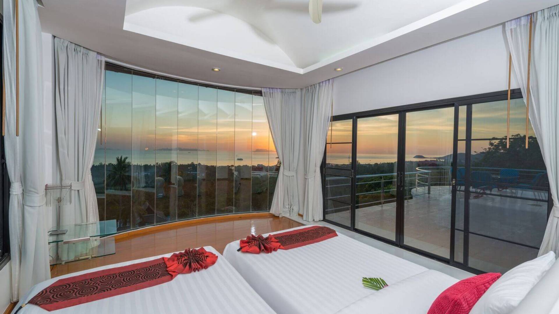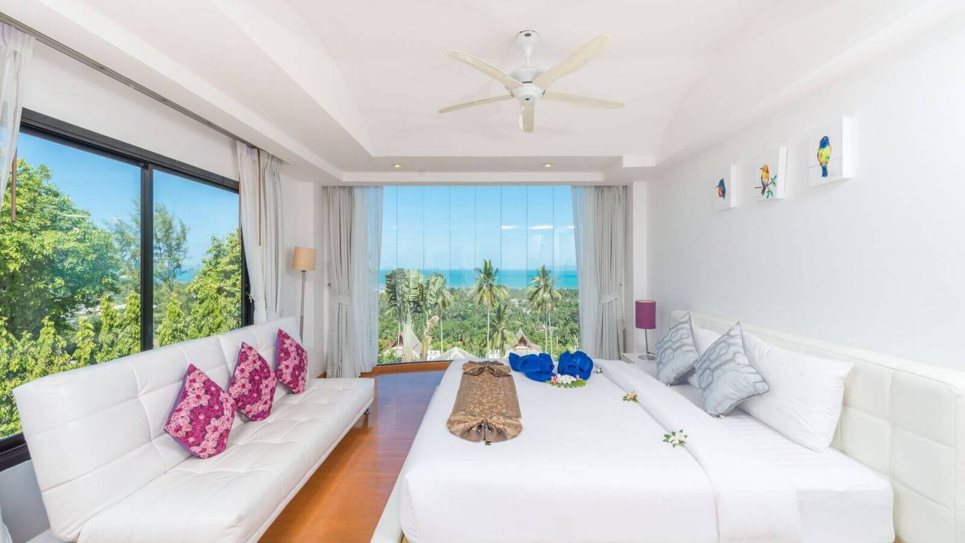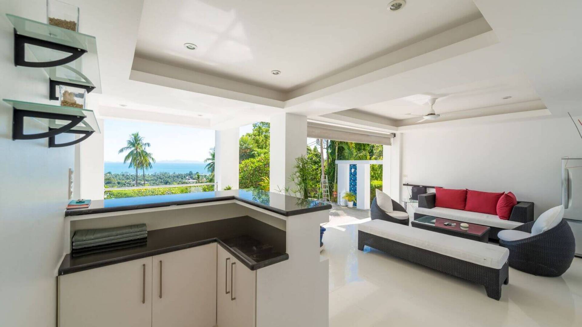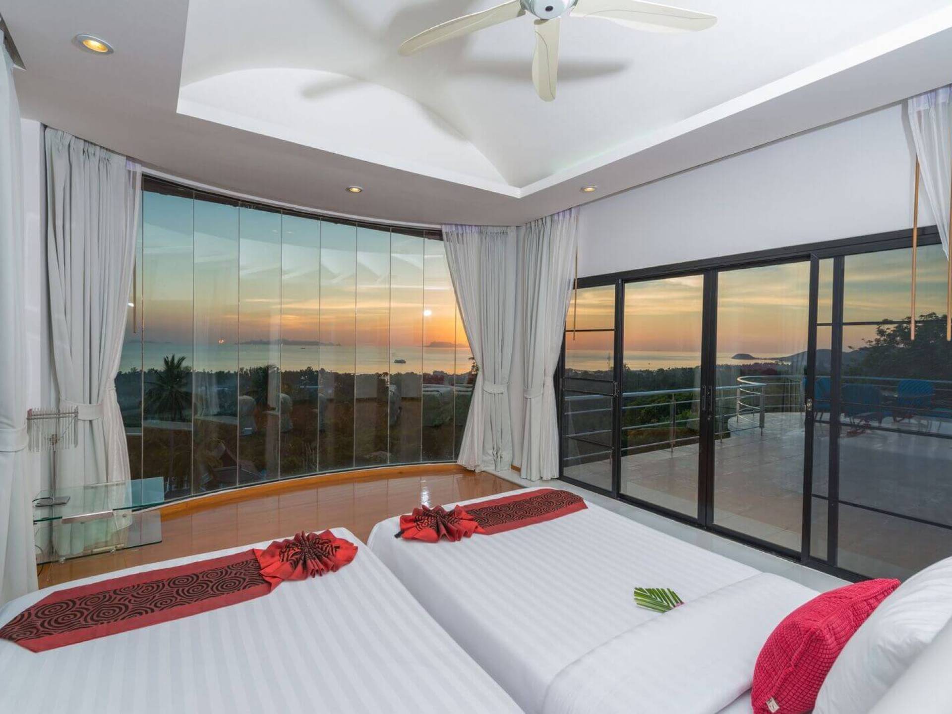 Villa White Stone Samui tiene 4 lujosas habitaciones finamente decoradas con baños privados en suite, todos los cuales cuentan con impresionantes vistas al mar. Los baños incluyen lujosas bañeras de hidromasaje y duchas de lluvia para un momento rejuvenecedor. La villa puede albergar hasta 10 personas con la generosidad de dos colchones extra grandes adicionales sin cargo. Tres de los dormitorios están equipados con camas tamaño king, mientras que el cuarto tiene dos camas individuales que son ideales para niños.