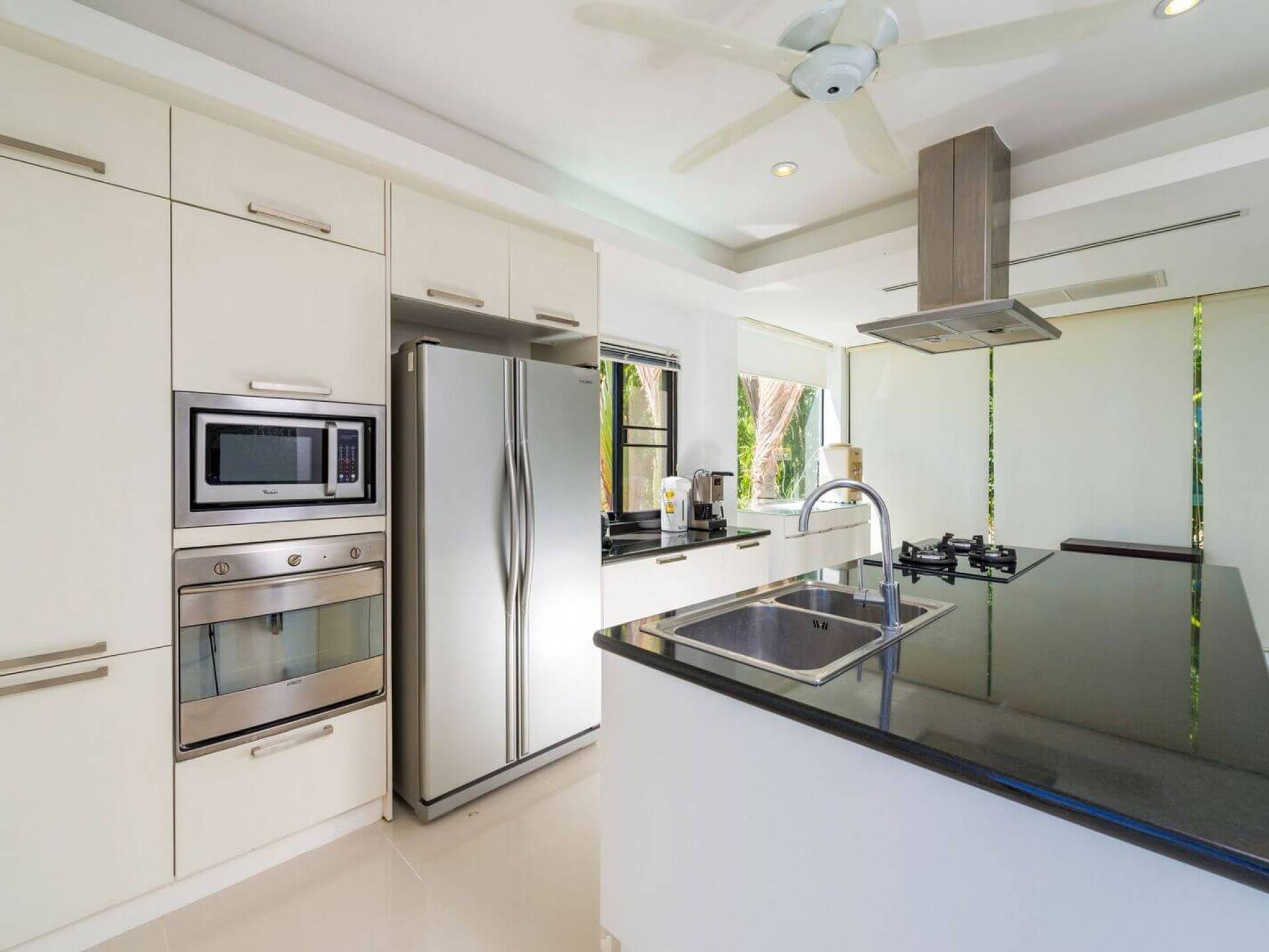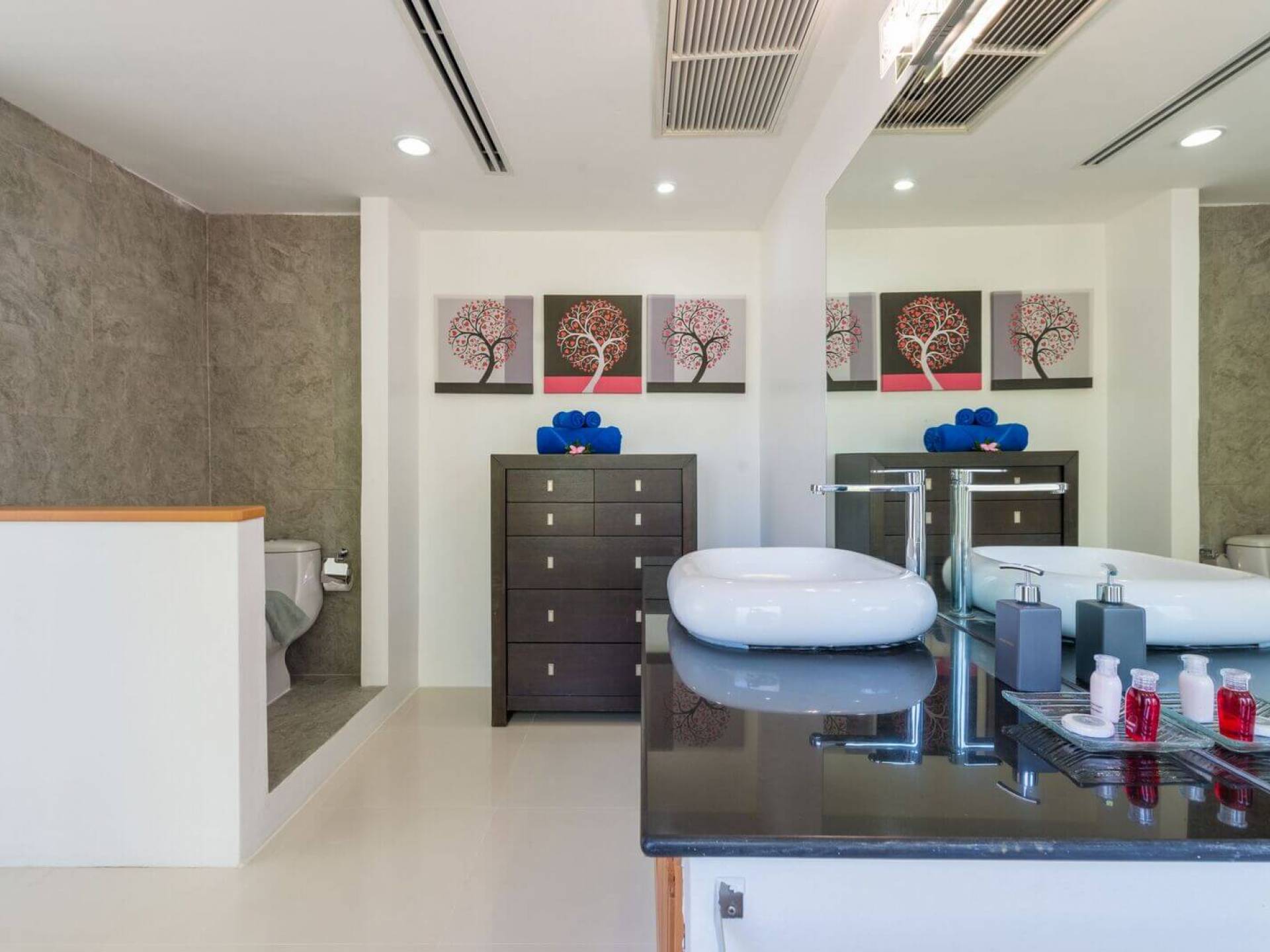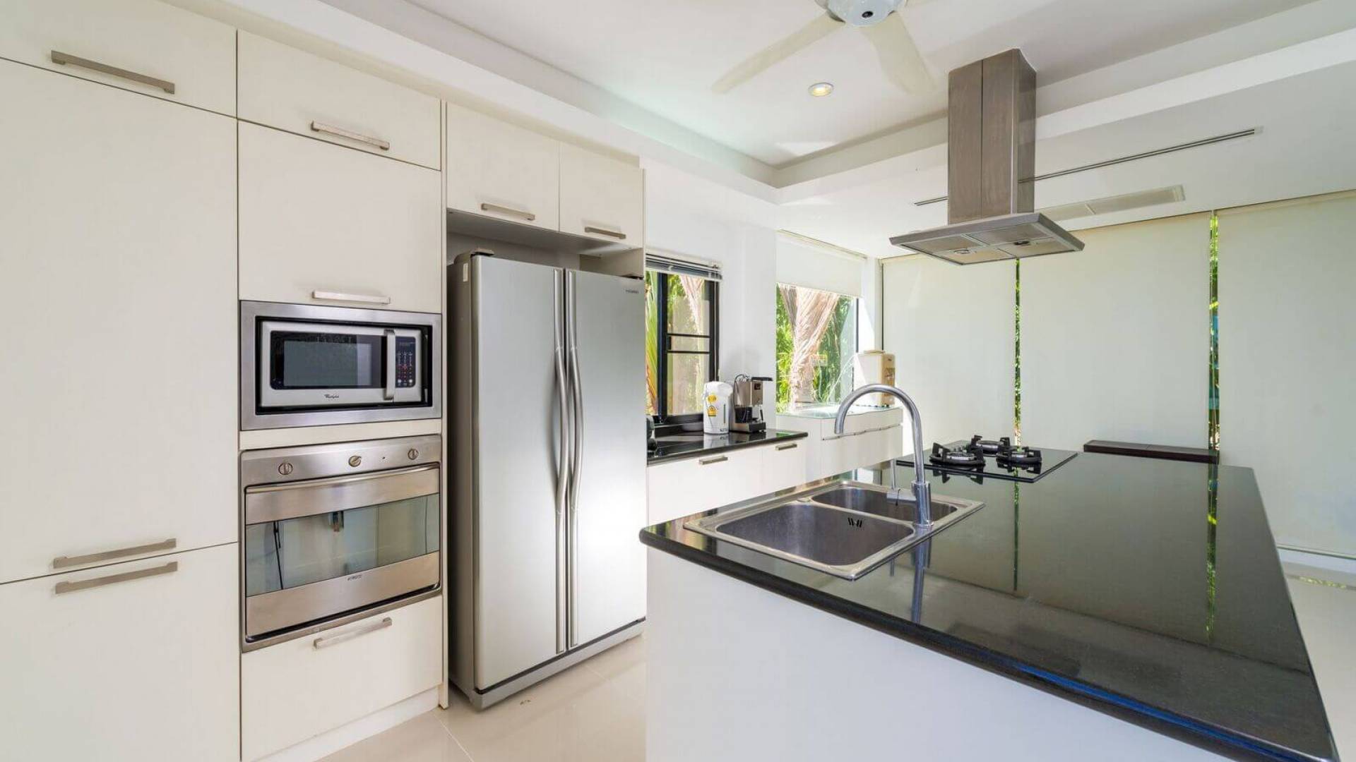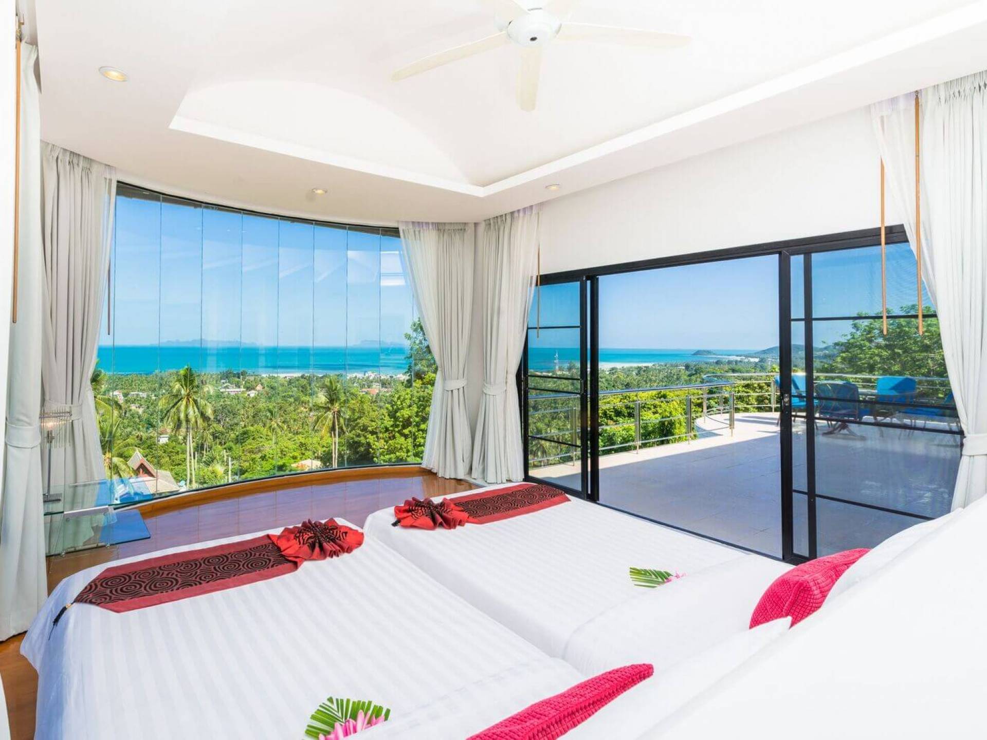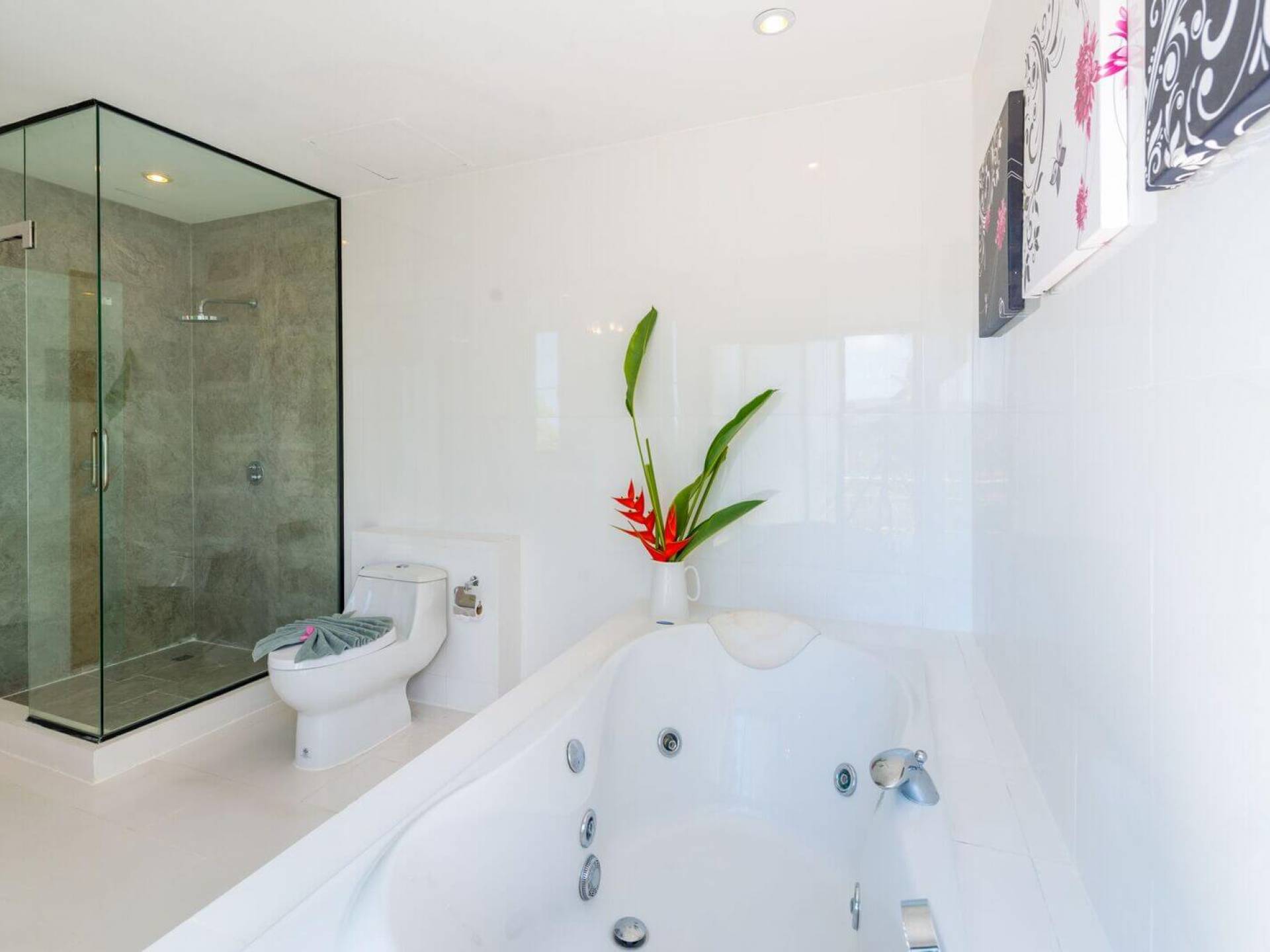 Villa White Stone Samui tiene 4 lujosas habitaciones finamente decoradas con baños privados en suite, todos los cuales cuentan con impresionantes vistas al mar. Los baños incluyen lujosas bañeras de hidromasaje y duchas de lluvia para un momento rejuvenecedor. La villa puede albergar hasta 10 personas con la generosidad de dos colchones extra grandes adicionales sin cargo. Tres de los dormitorios están equipados con camas tamaño king, mientras que el cuarto tiene dos camas individuales que son ideales para niños.