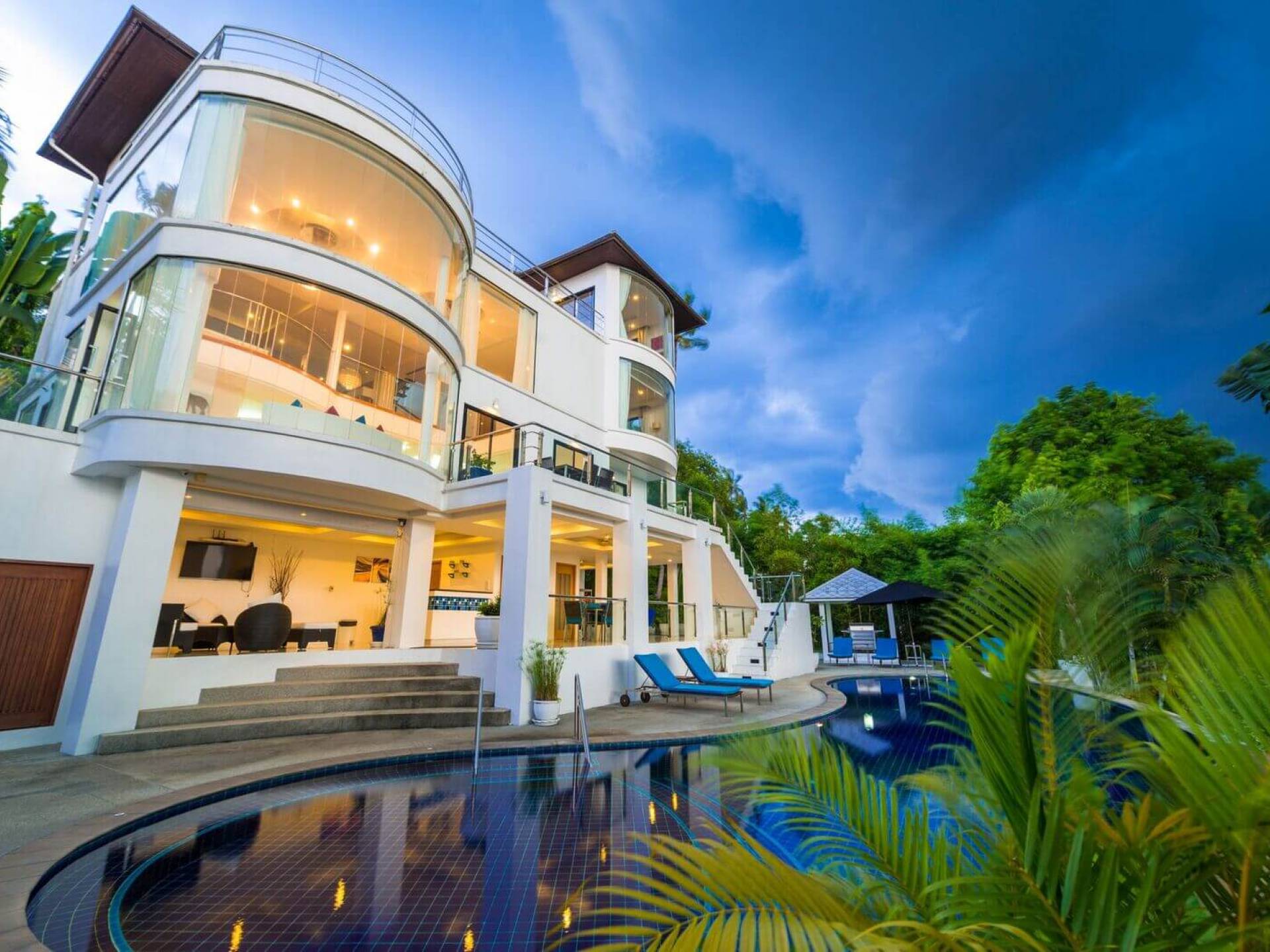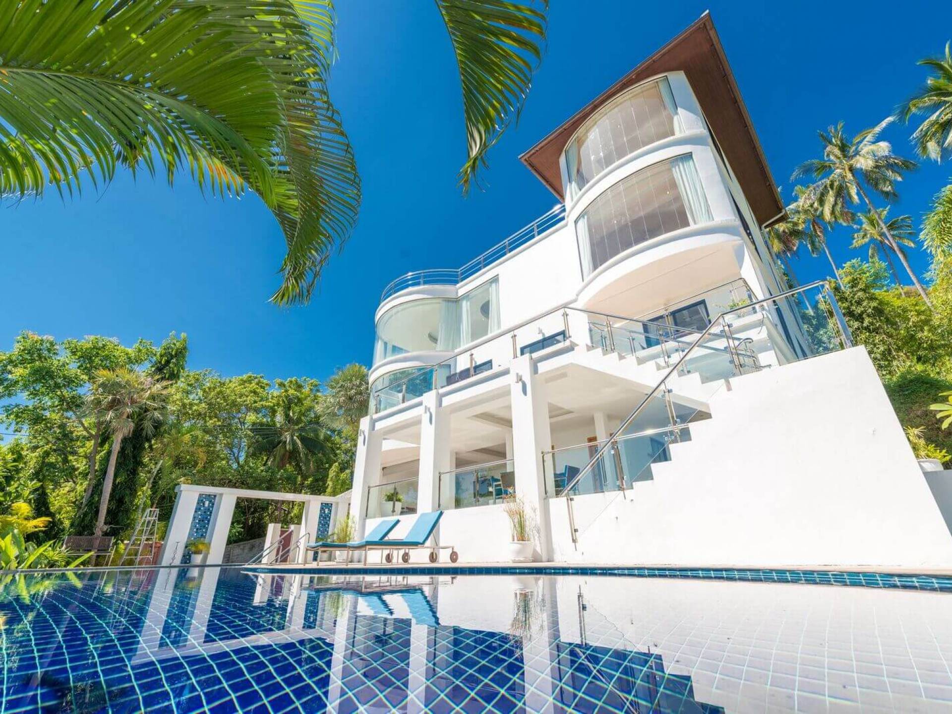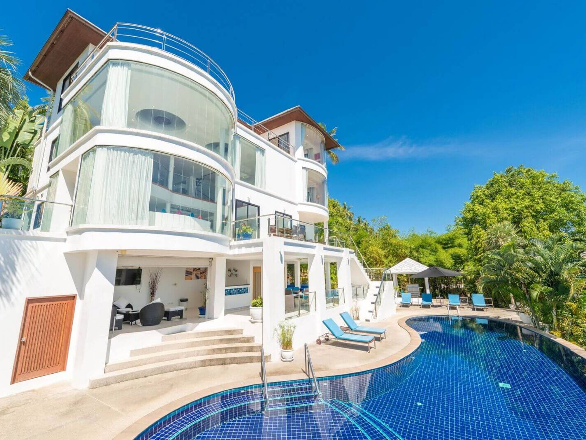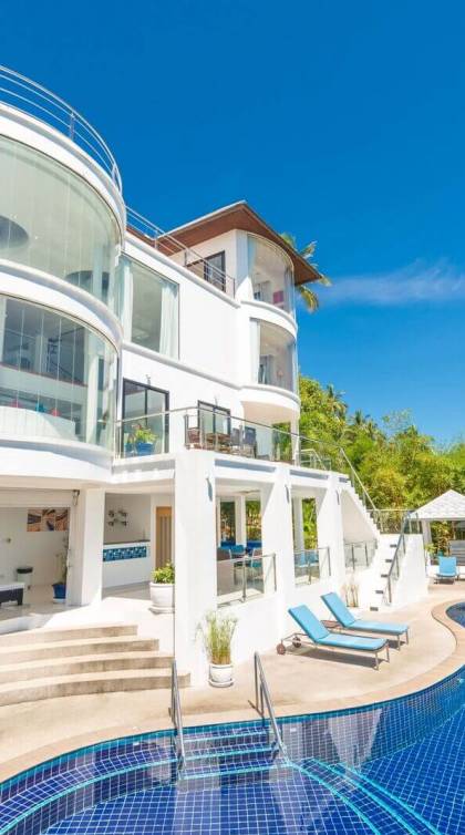 Villa White Stone Samui está situada en la costa oeste de Koh Samui, experimentando así una de las puestas de sol más fascinantes de la isla. Su arquitectura interior y exterior encarna las características de un resort privado, desde grandes ventanales de vidrio, una gran piscina privada y una sala de estar con techos altos. A solo 40 minutos en coche del aeropuerto, esta villa es una escapada de vacaciones ideal para un respiro refrescante.