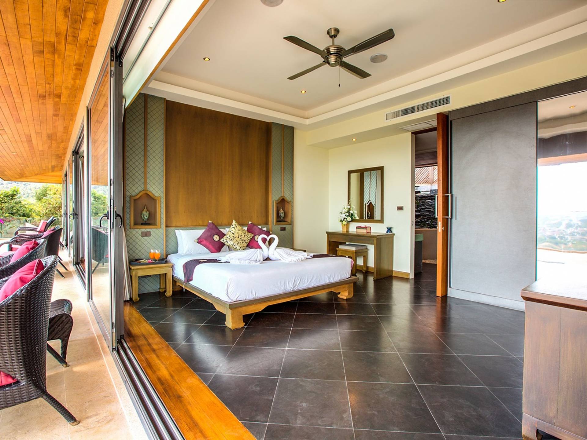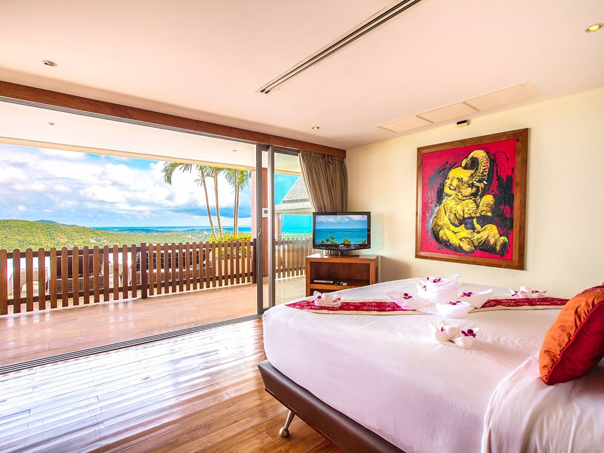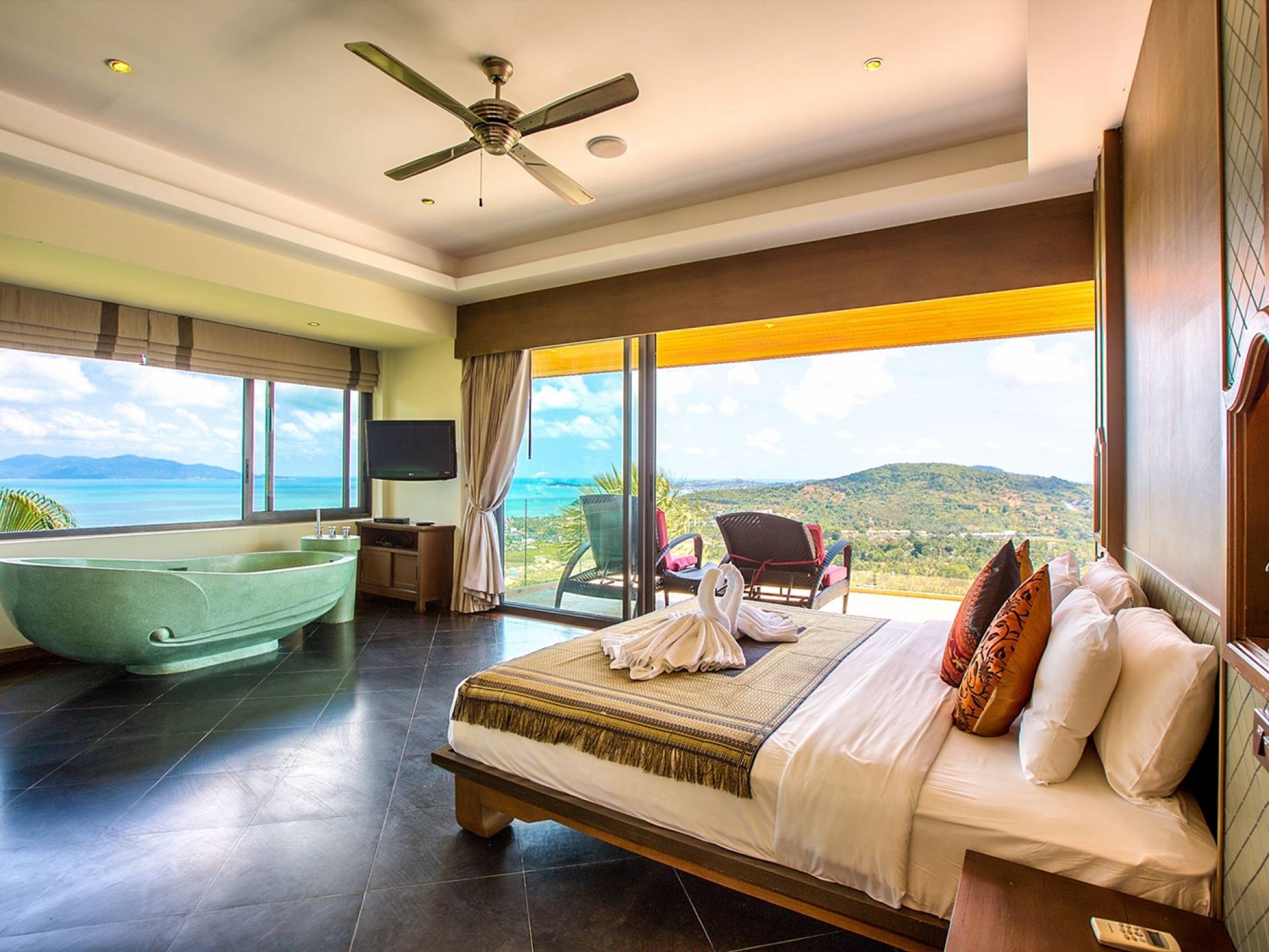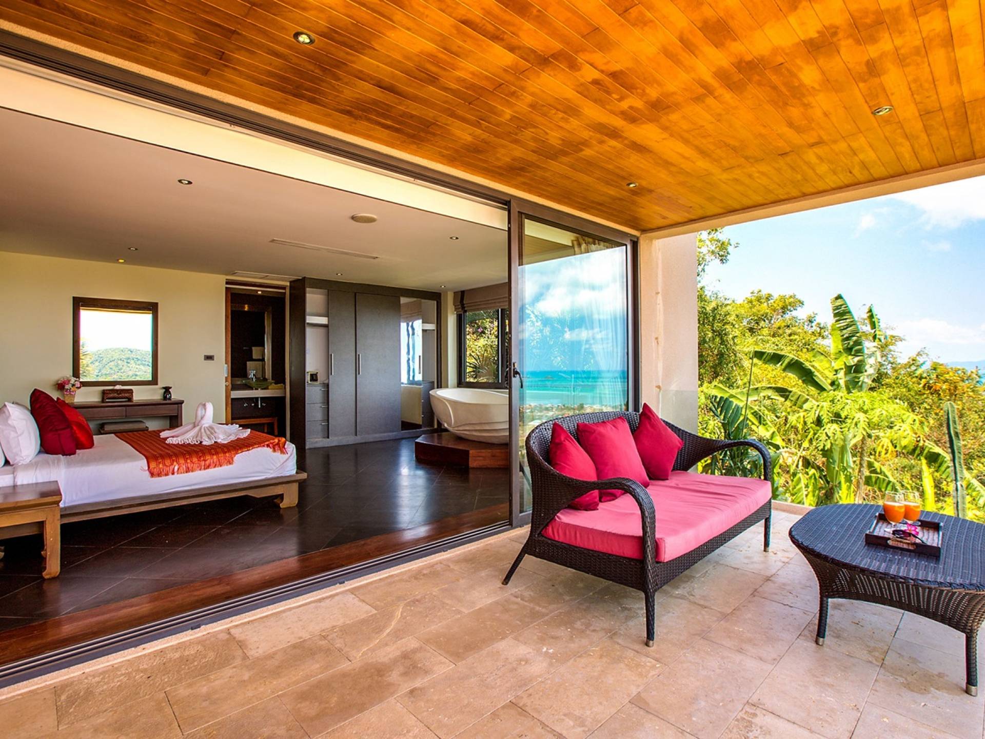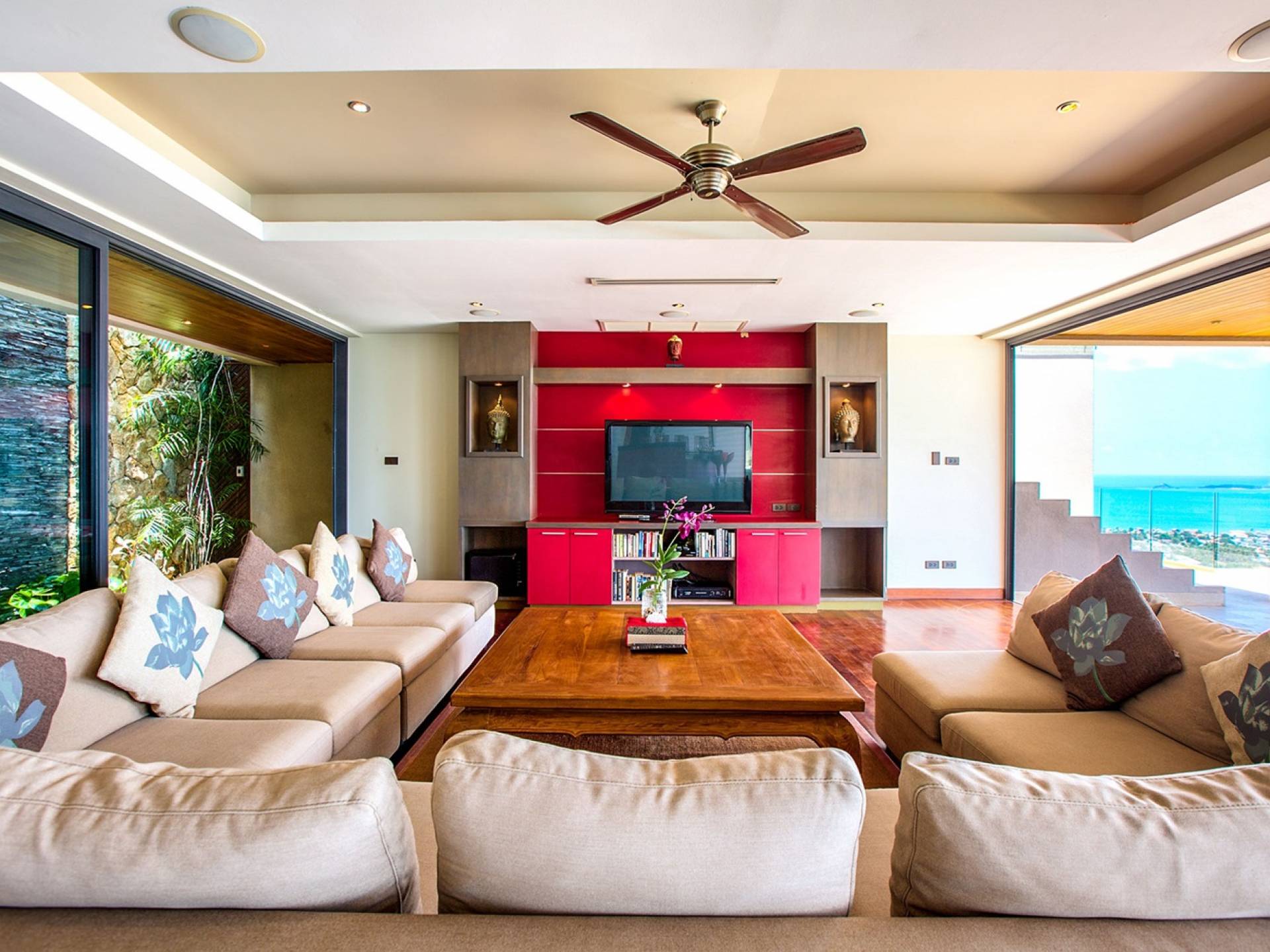 Villa Grand View Samui fue diseñada por un arquitecto galardonado con sede en Hong Kong para crear el estilo de vida ideal de planta abierta manteniendo un alto nivel de privacidad. Al estar ubicado en Bophut Hill y aislado del acceso público, los huéspedes tienen la oportunidad de relajarse y experimentar una relajación pura y sin molestias, lejos del ajetreo y el bullicio de las calles concurridas. Se puede ver una impresionante variedad de vida de jardín tropical floreciendo en toda la villa, que se complementa con cascadas y un jardín de cactus.