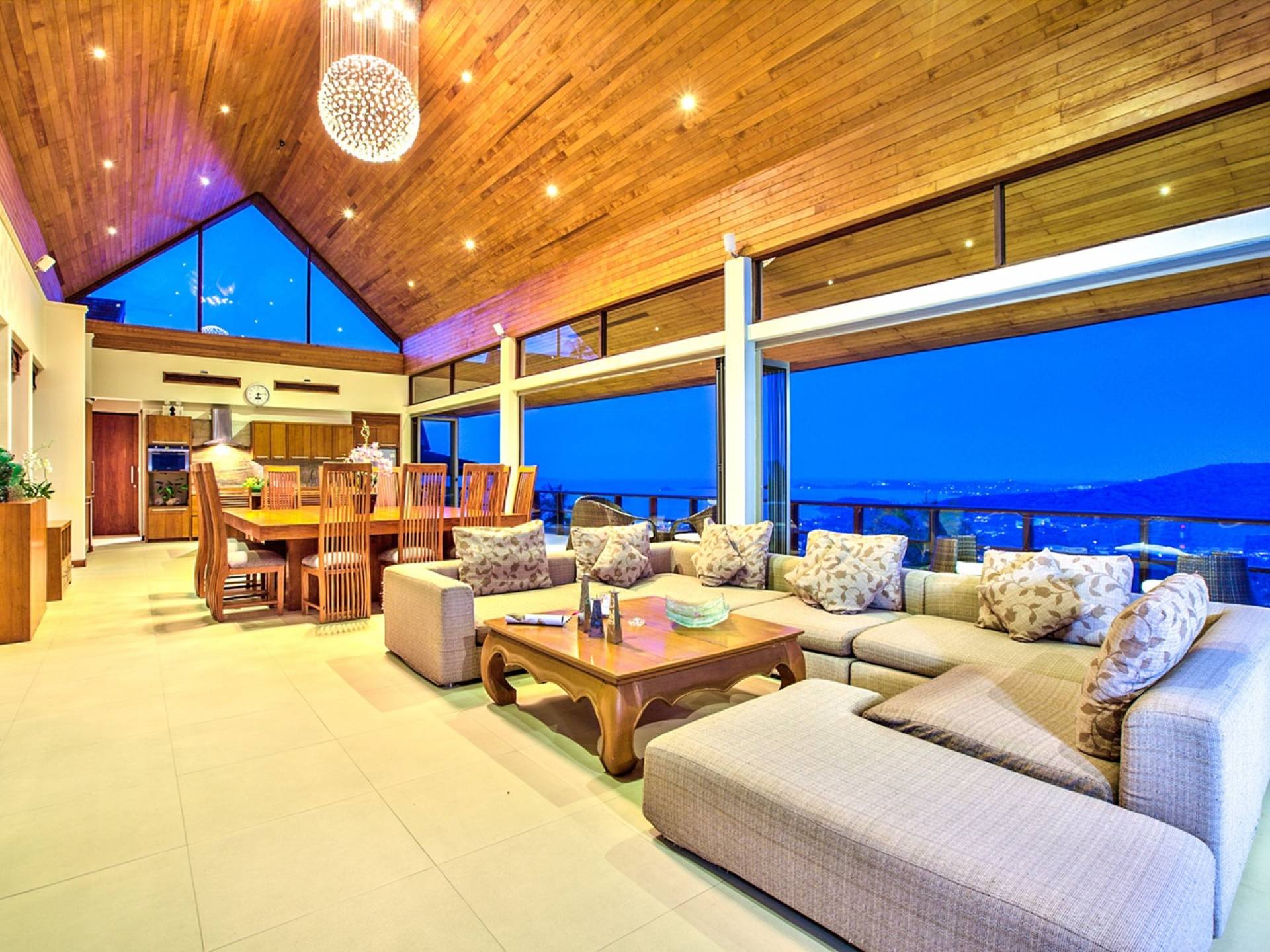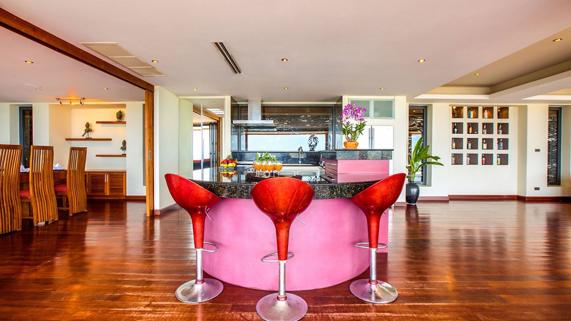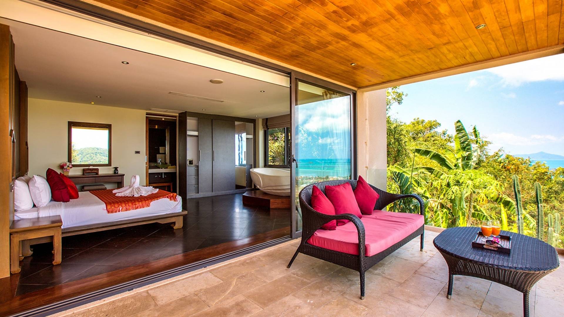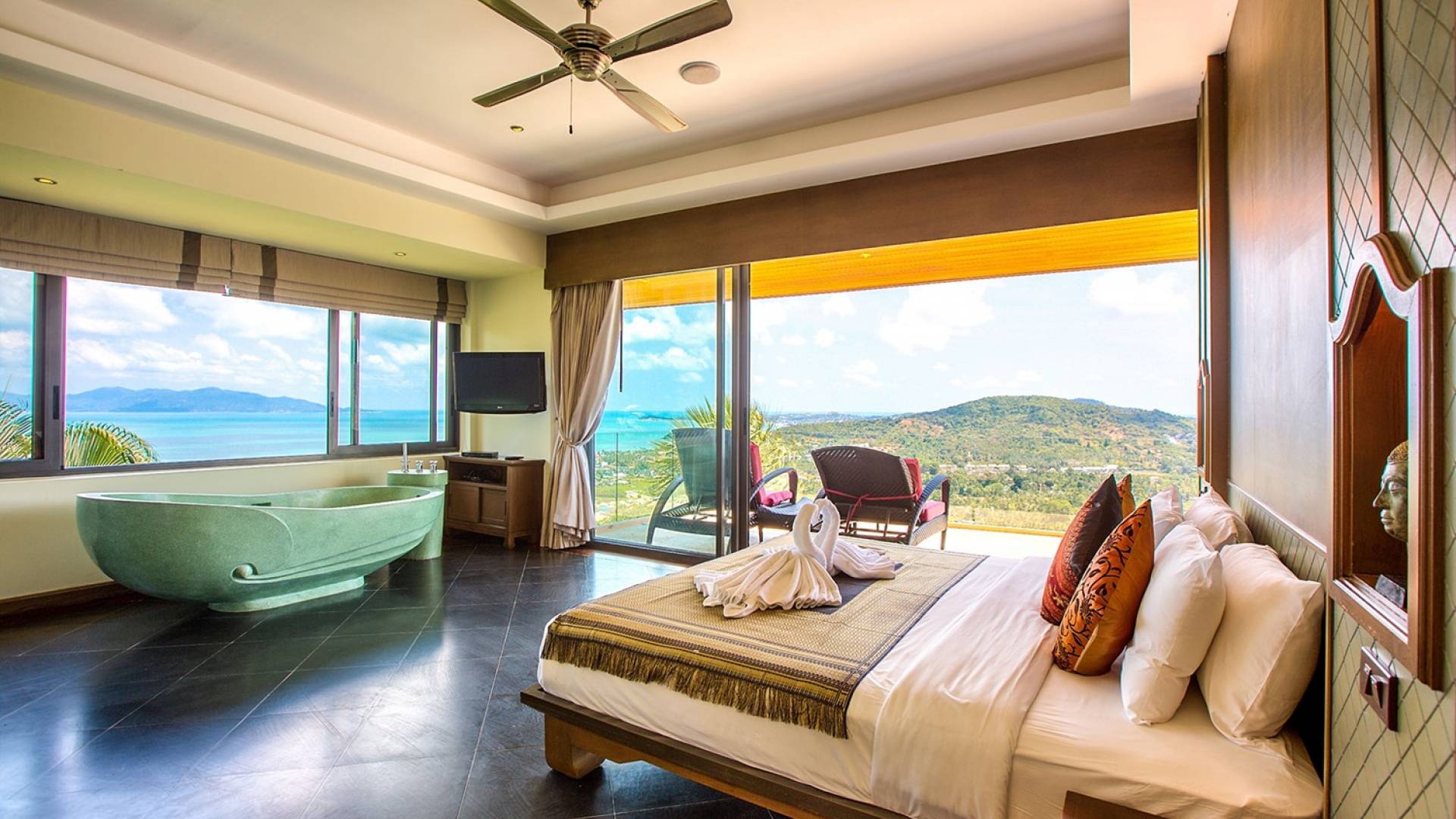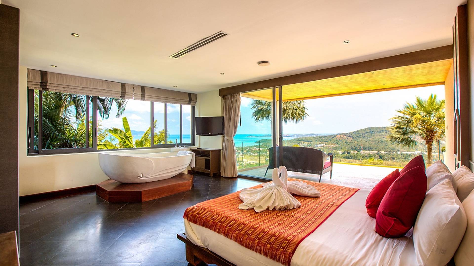 Villa Grand View Samui fue diseñada por un arquitecto galardonado con sede en Hong Kong para crear el estilo de vida ideal de planta abierta manteniendo un alto nivel de privacidad. Al estar ubicado en Bophut Hill y aislado del acceso público, los huéspedes tienen la oportunidad de relajarse y experimentar una relajación pura y sin molestias, lejos del ajetreo y el bullicio de las calles concurridas. Se puede ver una impresionante variedad de vida de jardín tropical floreciendo en toda la villa, que se complementa con cascadas y un jardín de cactus.